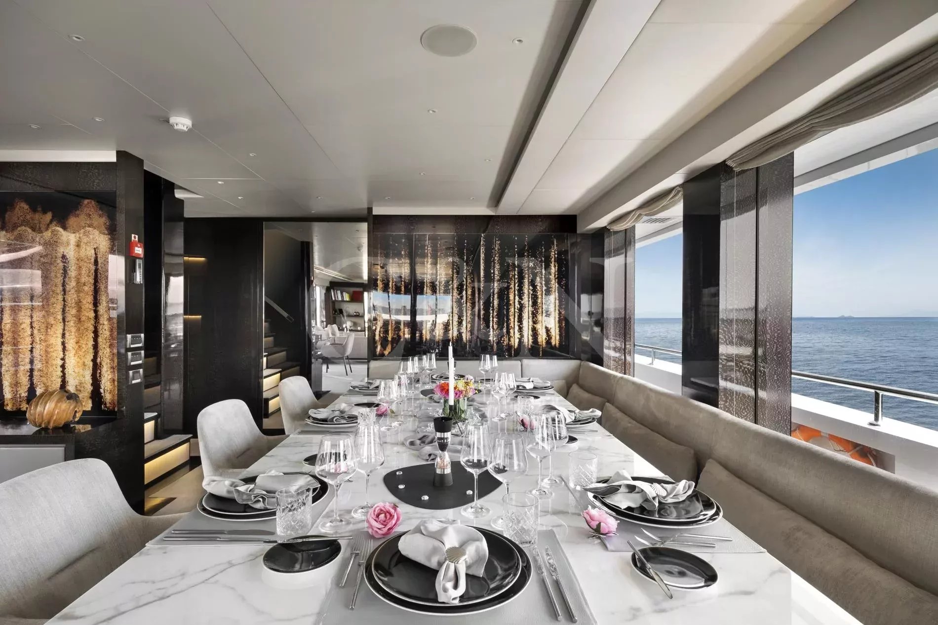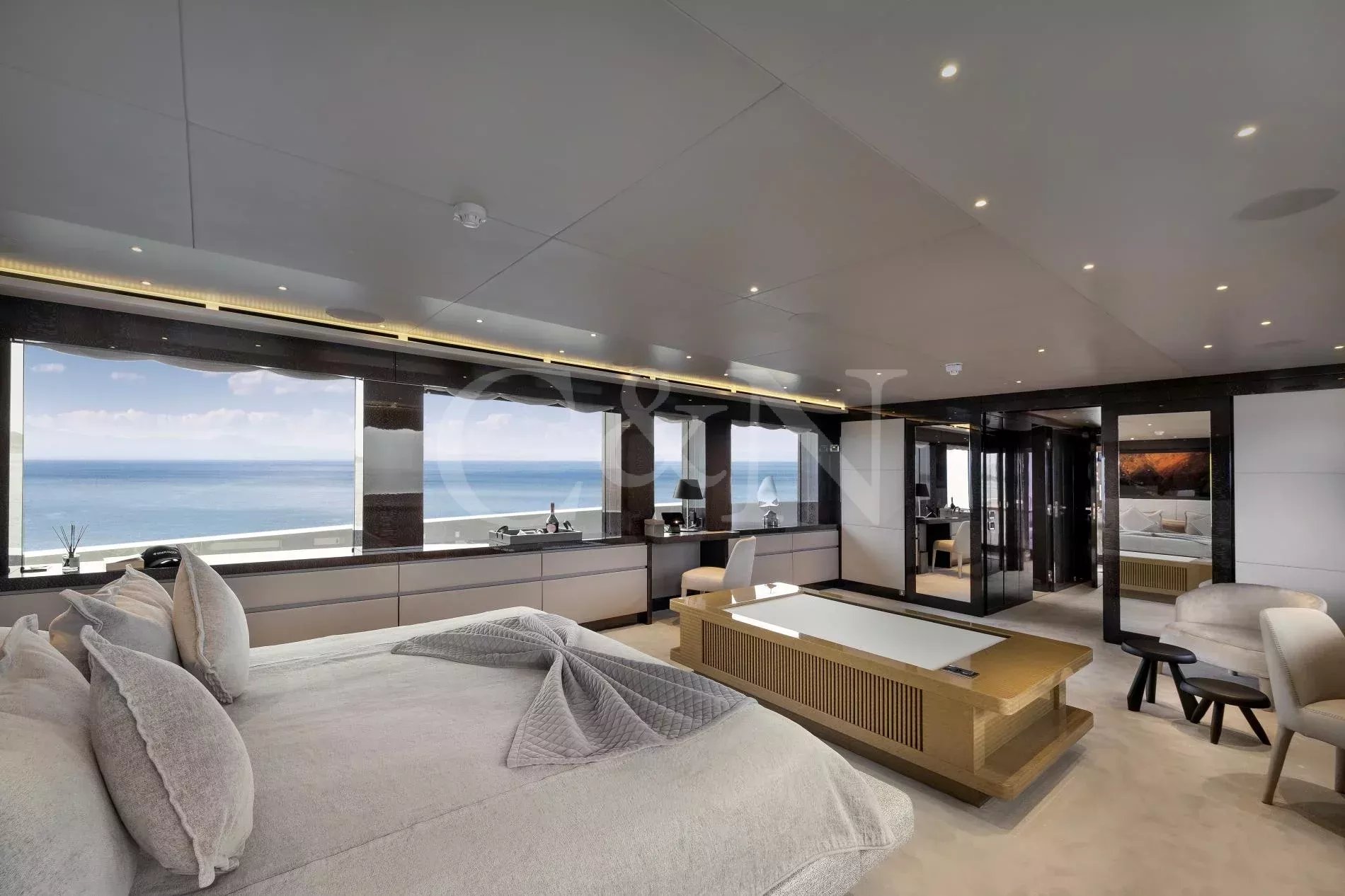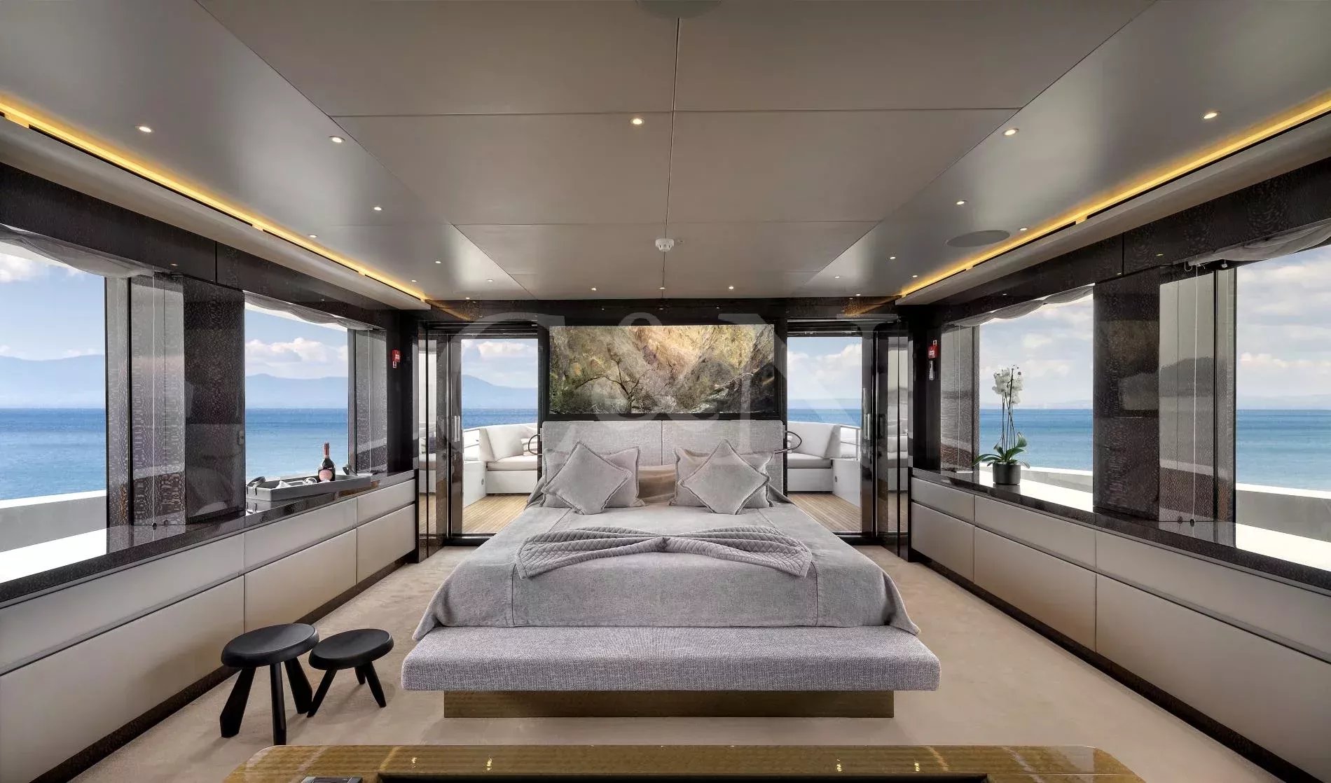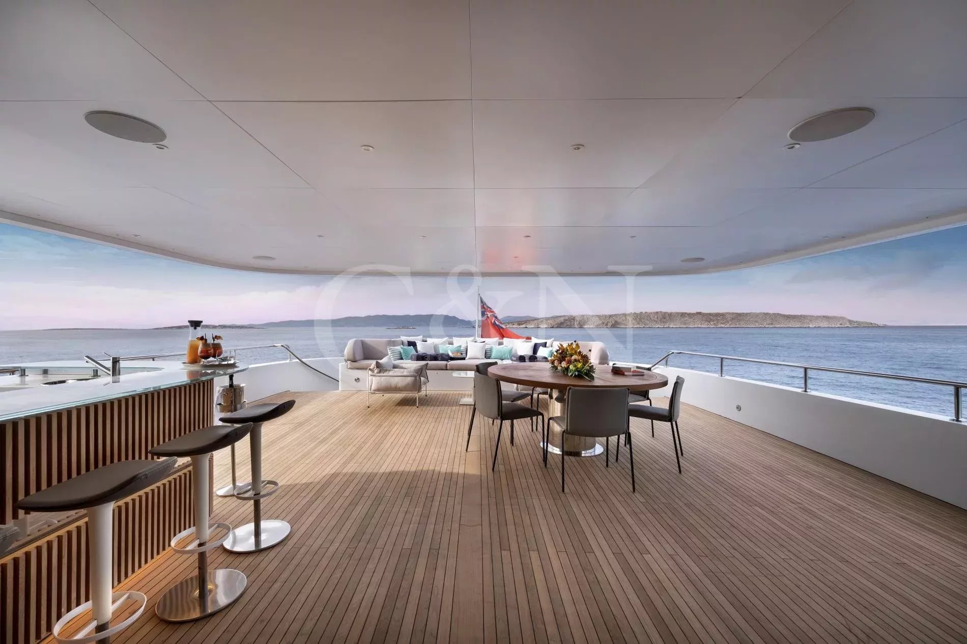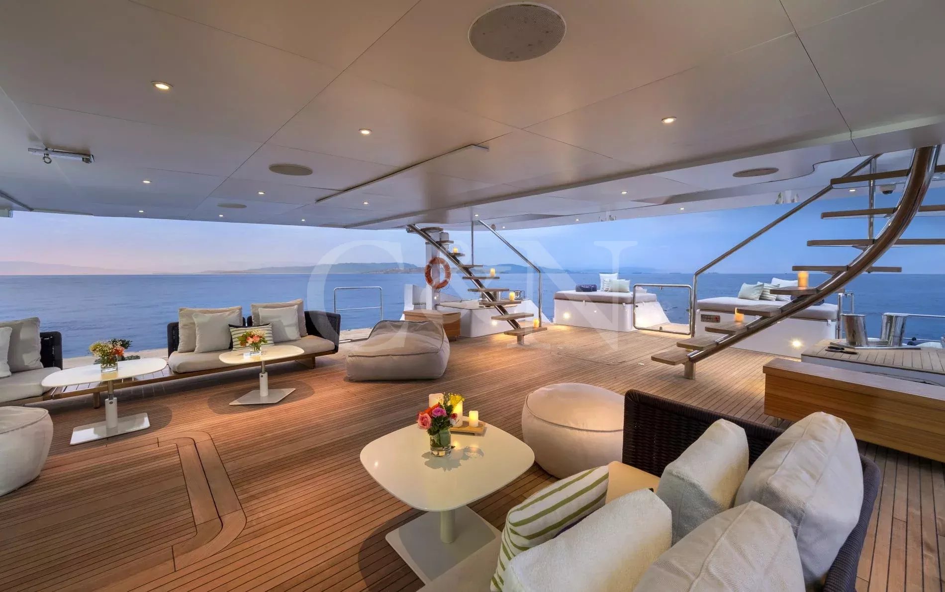 Step aboard My Eden, a stunning 45.42-metre motor yacht built by the renowned Greek shipyard Golden Yachts. Designed with elegance and comfort in mind, My Eden features exquisite interior styling by Ira Petromanolaki - Yacht Design, creating an atmosphere of sophistication and tranquillity.Accommodating up to 12 guests in six luxurious cabins, My Eden offers a platform for fun, led run by a highly experienced Captain and crew. Eden is a gateway to an unforgettable charter, whether guests seek adventure, relaxation, or a seamless blend of both.The interior of My Eden is a sanctuary of style and comfort. Her main salon is a modern space where dining and socialising take centre stage, seamlessly blending sophistication and warmth and decorated with a complementary combination of soft, light colours and marble.Large, floor-to-ceiling windows line the perimeter of the main salon and open up the connection to the water. A luxurious seating area provides an inviting zen retreat for guests, while the interior dining setup is perfect for cosy evening meals. Exterior: Ultimate Outdoor LivingMy Eden is a platform for adventure and fun. The yacht’s expansive deck spaces are perfect for lounging in the sun, enjoying alfresco dining, or simply taking in breath taking ocean views.On the upper deck, a Jacuzzi offers elevated and uninterrupted ocean views, the perfect spot to unwind and relax. For fitness enthusiasts, the main deck can transform into a fully equipped gym, complete with weights, TRX bands, Pilates mats, and a treadmill.My Eden’s large aft deck is a highlight, offering seamless access to the water and a great space to set up her various water toys. A large window connects the spacious aft deck to the galley, allowing for extra interaction between guests and crew.With accommodation for up to 12 guests in six beautifully appointed and thoughtfully designed cabins, My Eden offers unparalleled comfort and flexibility. The master suite features panoramic views, a private exterior deck, and a luxurious hot tub, creating a true oasis at sea.The VIP Suite includes a comfortable double bed and an additional pullman berth for added versatility. Two spacious and refined double cabins provide elegant sleeping arrangements, while two twin cabins can be easily converted into double beds to suit the specific needs of the charter clients.My Eden is fully equipped to deliver an unforgettable experience on the water, with an extensive collection of toys and amenities for every type of guest:Chase Boat: Pirelli 9m with twin 225hp Yamaha engines for coastal exploration.Water Toys: 1 Flite board2 Sea Bobs F52 Stand-up paddleboards2 Paddleboard steppers3 Canoe kayaks3 WakeboardsWater skis equipment2 Tubes and 1 sofa tubeYacht slideBrand new 1 Yamaha VX Commercial Jet SkiOnboard gym equipment for staying active at sea.