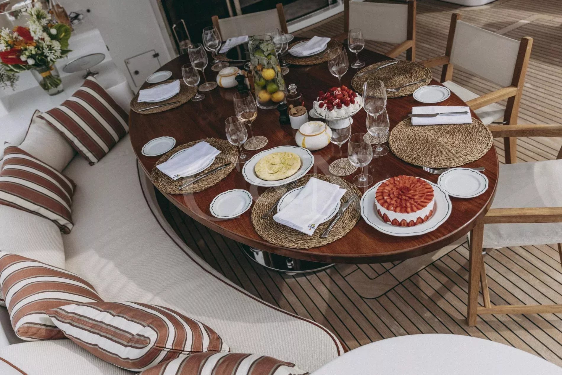 Step aboard Loulou, where the spirit of one of Paris’s most iconic restaurant experiences now sails the Mediterranean. This 35m Benetti brings the same free-spirited elegance, joie de vivre and meticulous attention to detail to the sea. From effortless sophistication to indulgent hospitality, every moment on Loulou feels like an invitation to embrace la belle vie.With three expansive decks to choose from, Loulou invites you to experience life outdoors in true Mediterranean style. Start your day on the sundeck, reclining by the Jacuzzi with views stretching across the sea. Enjoy leisurely lunches on the shaded aft deck and dine alfresco on the upper deck under the stars. Every space is thoughtfully arranged to welcome togetherness and elevate the mood; relaxed, refined, and full of charm.Loulou’s interior blends timeless glamour with comfort, reflecting the aesthetic sensibilities of its fashionable namesake. The main saloon flows into a sleek dining area, separated by floor-toceiling cabinetry and anchored by a glamorous bar. On the upper deck, the skylounge invites casual evenings with plush seating and cocktails served from its second bar — a favourite setting for golden hour gatherings.Loulou accommodates up to 10 guests in five beautifully appointed cabins: Main Deck Master Suite: Full-beam with king-size bed, sofa, desk, and walk-through dressing area. His-and-her en suite bathrooms include a marble bath and walk-in shower.Lower Deck Doubles: Two double cabins, each with queen-size beds and en suite bathrooms. Lower Deck Twins: Two twin cabins with en suite bathrooms, one featuring a Pullman berth for added versatility. This flexible configuration makes Loulou perfect for both families and mixed groups, offering privacy, comfort, and chic luxury throughout.