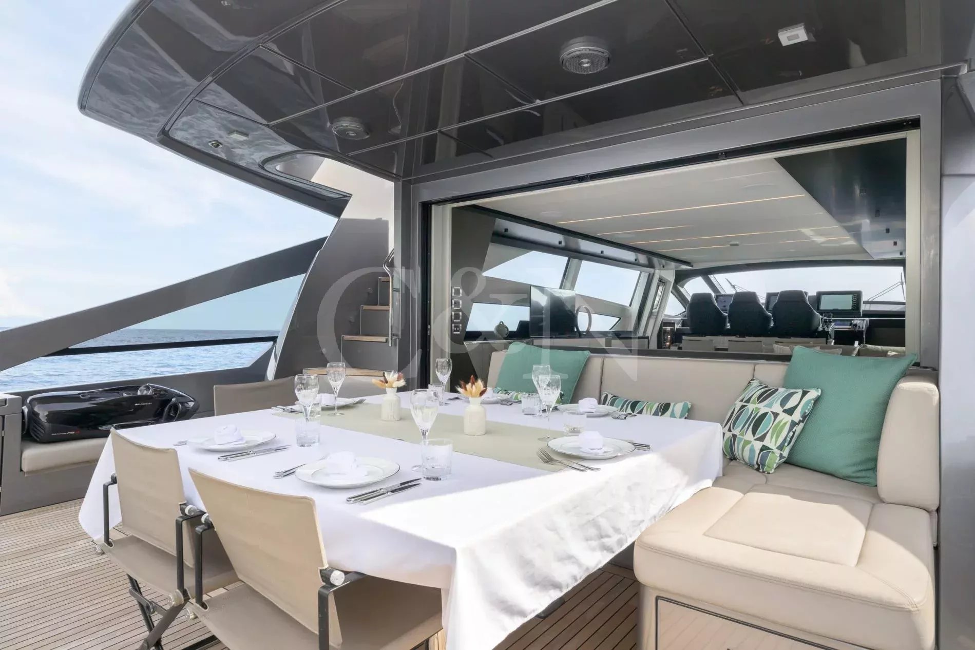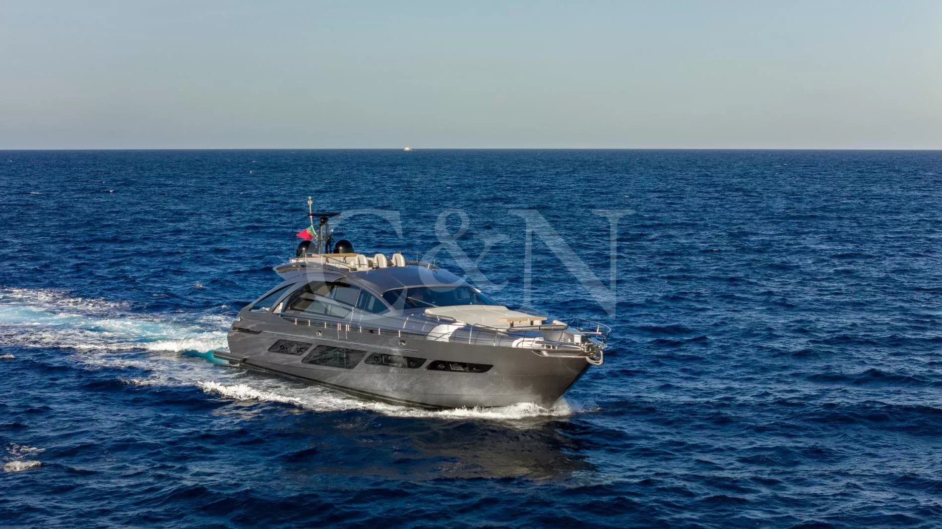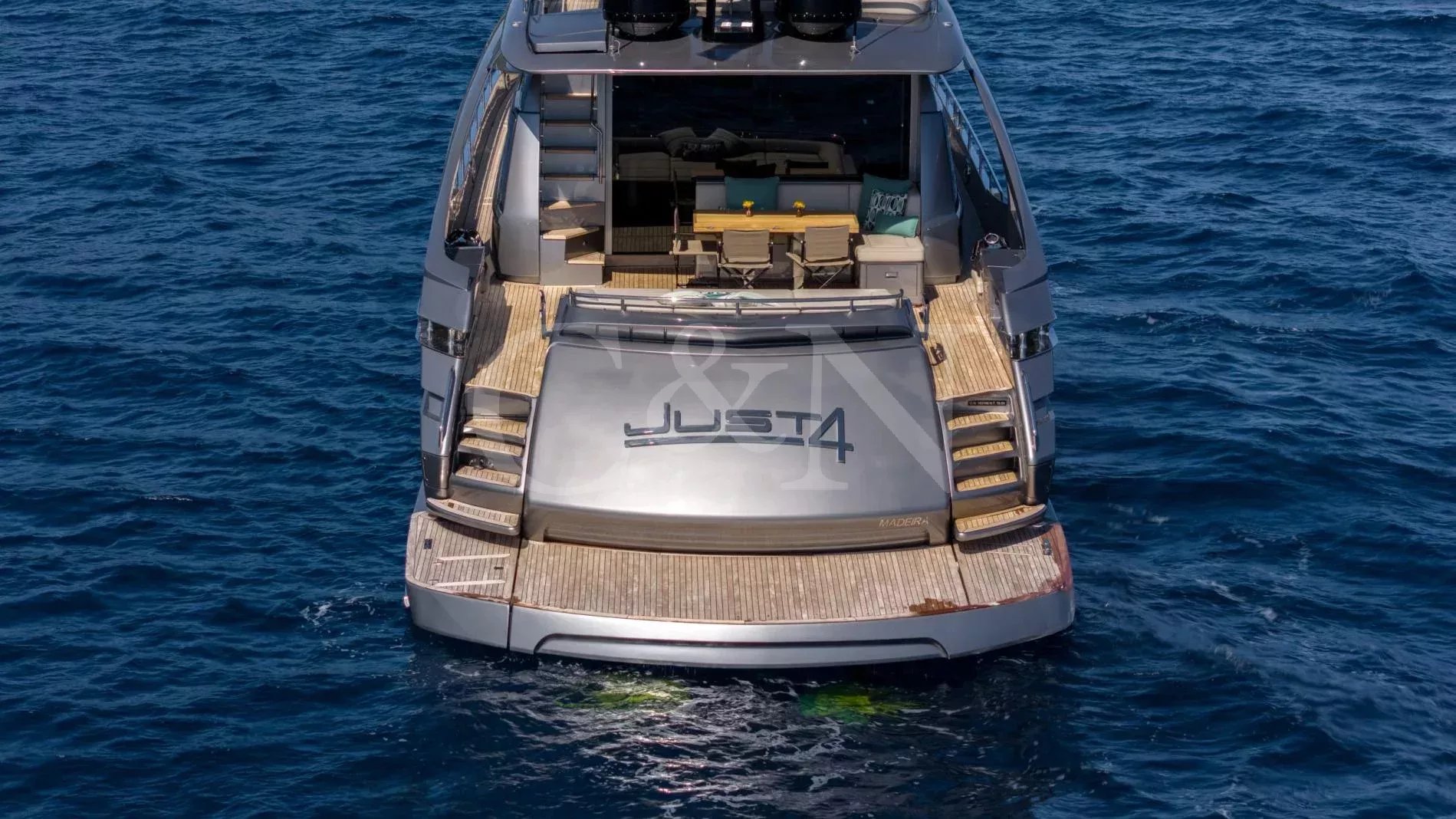 Experience the French Riviera in exhilarating style aboard Just 4, a 28-metre Pershing performance sport yacht built in 2021. Designed by Fulvio De Simoni, she combines cutting-edge aesthetics with impressive speed, stability, and luxury. With a top speed of 42 knots, Just 4 is perfect for thrill-seekers looking to explore the Mediterranean in ultimate comfort. With a prime berth in the heart of St Tropez year-round, she offers seamless access to the region’s most exclusive destinations.With a prime berth in the heart of St Tropez year-round, Just 4 is perfectly positioned for exploring the glamorous hotspots of the Côte d’Azur. Whether it’s a high-speed dash to Monaco or a leisurely cruise along the Riviera, this exceptional yacht delivers an unforgettable charter experience.The interiors of Just 4 are sleek, modern, and effortlessly stylish. The main salon features an open-plan layout with plush leather sofas and a sophisticated dining area for eight, creating the perfect setting for relaxation or entertaining.A row of captain’s chairs at the helm adds a dynamic, sporty touch to the space, while the neutral grey tones and contemporary finishes enhance the yacht’s refined elegance.Designed for outdoor living, Just 4 boasts expansive deck spaces for sunbathing, lounging, and dining. The foredeck is a sociable retreat with sumptuous sunpads, a forward lounge, and a versatile seating area with a table, ideal for drinks at sunset. The sun deck offers even more cushioned sun pads and a U-shaped lounge area surrounding two tables, providing a relaxed atmosphere for alfresco dining or cocktails.The main deck aft continues the theme of indulgent comfort, featuring spacious sun pads and a corner dining setting, perfect for enjoying long, leisurely meals by the sea. A swimming platform offers easy access to the water, ensuring seamless transitions from relaxation to adventure.Sleeping up to eight guests in four luxurious cabins, Just 4 offers a flexible and inviting retreat for families or friends. The full-beam master suite features a king-size bed, providing a spacious and elegant sanctuary. The VIP cabin offers a queen-size bed, ensuring comfort and privacy for guests.In addition, Just 4 includes a twin cabin and a versatile convertible cabin that can be arranged as either a twin or a double, allowing for adaptable accommodation to suit different guest arrangements.Designed for adventure and high-speed thrills, Just 4 carries an impressive selection of water toys for her size, ensuring endless entertainment on the water.Williams Turbo Jet 385 (100 HP) tenderSea-Doo GTX 300 (2023) jet ski2 Seabob F5S for underwater exploration2 Stand-up paddleboards (NorthSail)Inflatable kayakWith at-anchor and underway stabilizers, Just 4 ensures a smooth and comfortable cruising experience at any speed.