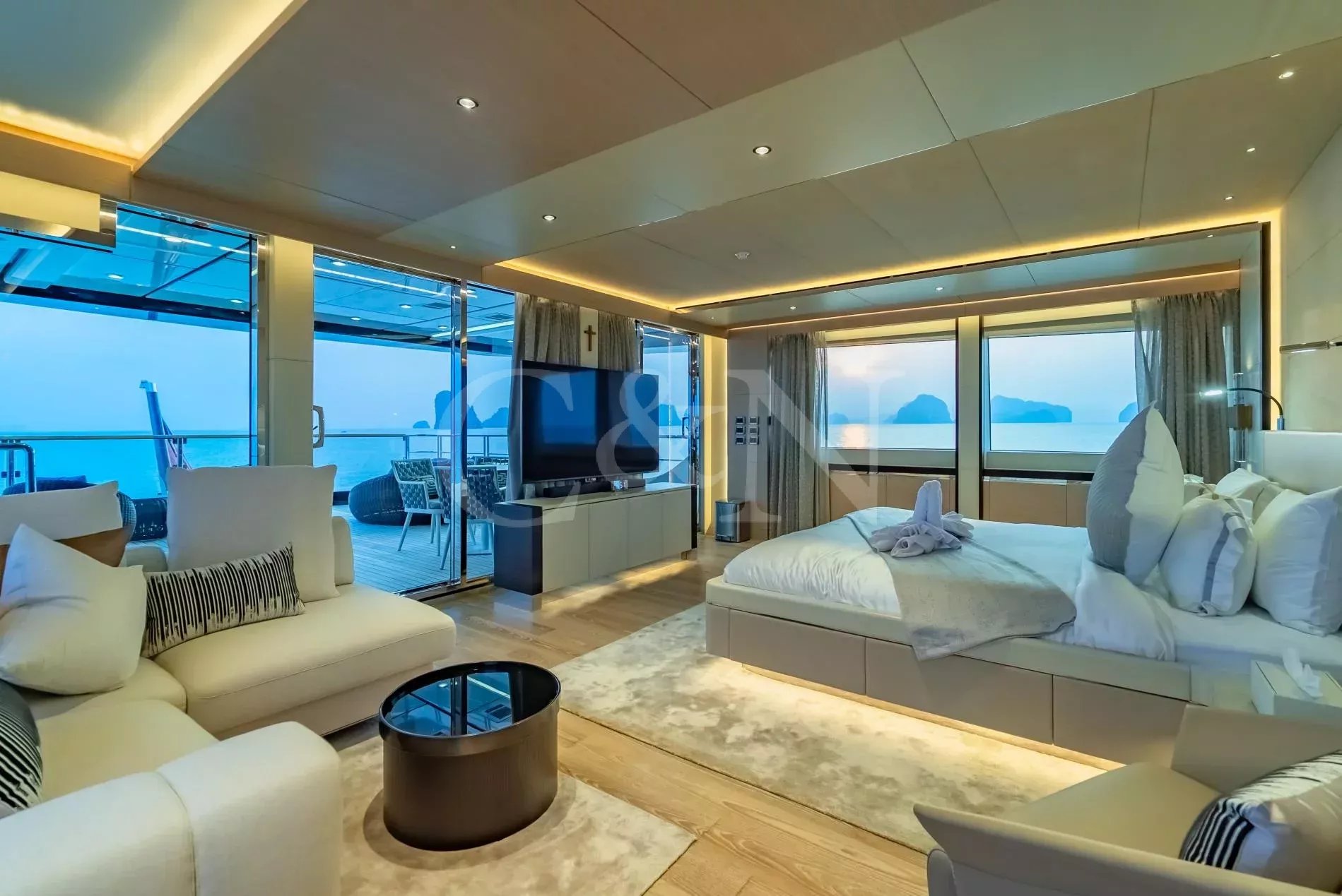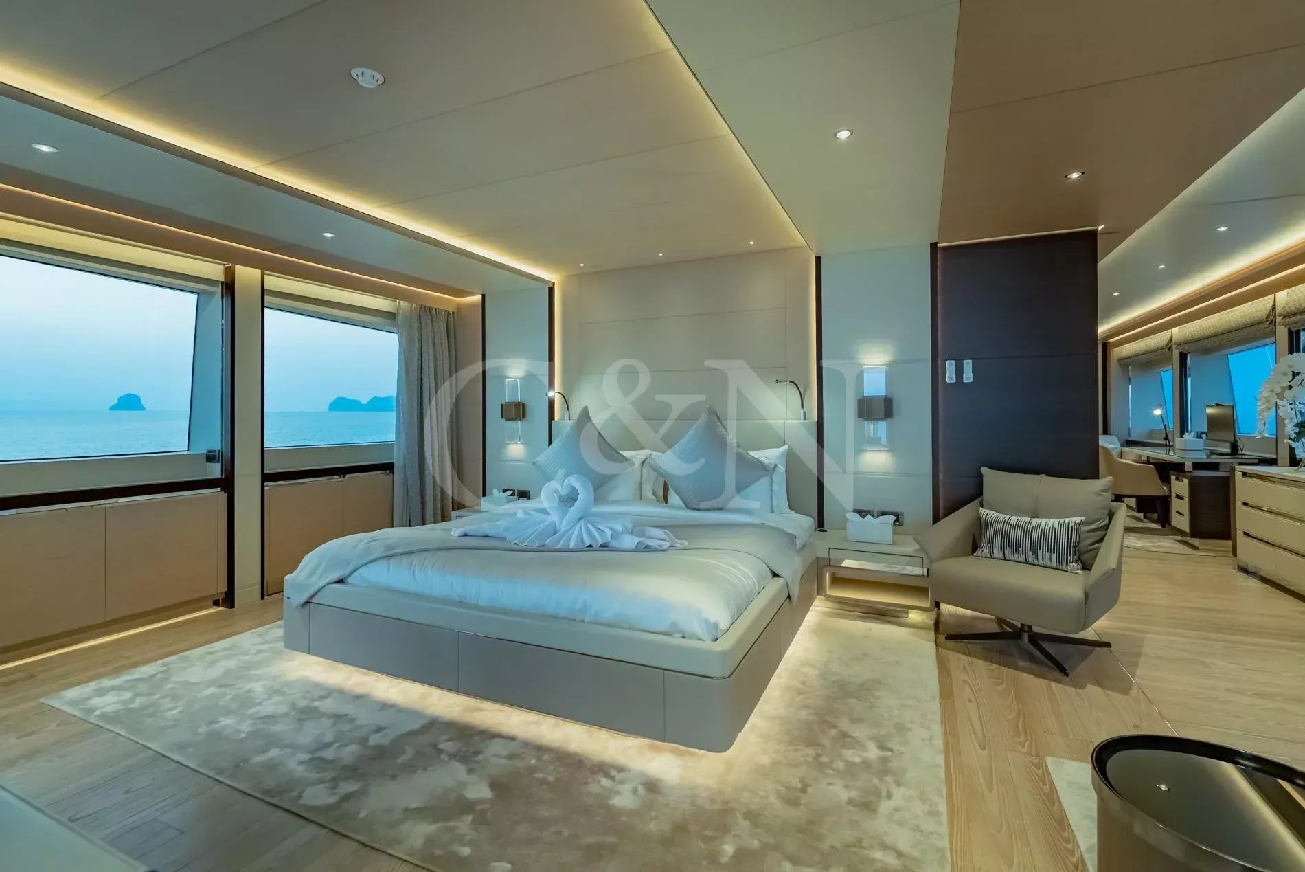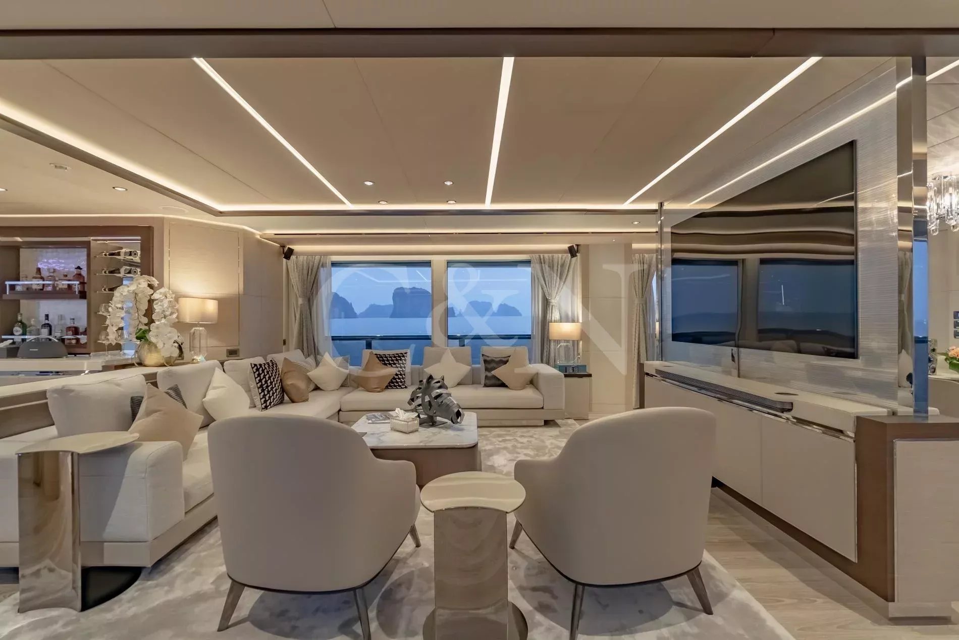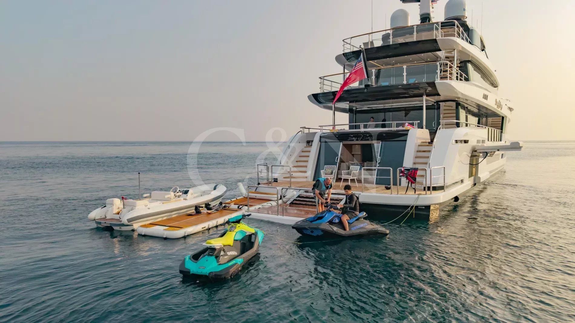 Brand new and built for luxurious cruising, Song of Songs is a haven of contemporary elegance designed for those who revel in the art of escape. Crafted by Heysea Yachts with a refined interior by VYD Studio and exterior styling by Filippetti Yacht, Song of Songs blends visionary design with a serene onboard lifestyle. Fresh to the charter market, this 42.2m yacht is now available for unforgettable journeys across Asia’s most alluring destinations.Step aboard from the expansive swim platform into the beach club a tranquil, sea-level lounge with a sofa and bar perfect for shaded afternoons or post-paddleboard cocktails. On the main deck aft, two modular coffee tables can merge into one, whilst the large glass doors fully open; creating a seamless ‘indoor-to-outdoor’ flow.The upper deck is home to the striking aft-facing Owner’s suite, offering a private terrace with sweeping views and plush seating; a peaceful sanctuary in any anchorage. Forward, a Portuguese bridge invites quiet contemplation or lively gatherings, complete with Jacuzzi and sunpads, complete with optional shading.Ascend to the sundeck, where sophistication meets versatility. A shaded dining table welcomes leisurely meals under the hardtop, while the American bar and BBQ setup set the stage for unforgettable evenings from sunset canapés to moonlit soirées.Inside, Song of Songs is flooded with natural light. The palette is calm and contemporary: clear woods, soft-toned carpets, and elegant furnishings form a serene canvas. The main salon and dining area offer an open-plan feel, separated by a TV cabinet that transforms the space for cinema nights. Accommodation comprises six stylish cabins. The Owner’s suite, located on the upper deck, features a luxurious marble bathroom with panoramic ocean views. A second master cabin sits on the main deck, with a king-size bed, walk-in wardrobe, and opulent en suite. Four additional lower deck cabins including a convertible double offer ideal flexibility for multi-generational cruising.Whether you’re sipping a tailored cocktail in the sunken Jacuzzi or sharing stories under the stars at the sundeck bar, Song of Songs creates space for every mood and moment. With a longstanding crew fluent in regional culture and cruising grounds, guests enjoy a seamless and enriching experience from day one.Song of Songs is based in Asia and available year-round, in South East Asia. Charters can also be arranged in the Maldives, Seychelles and other exotic destinations on request.