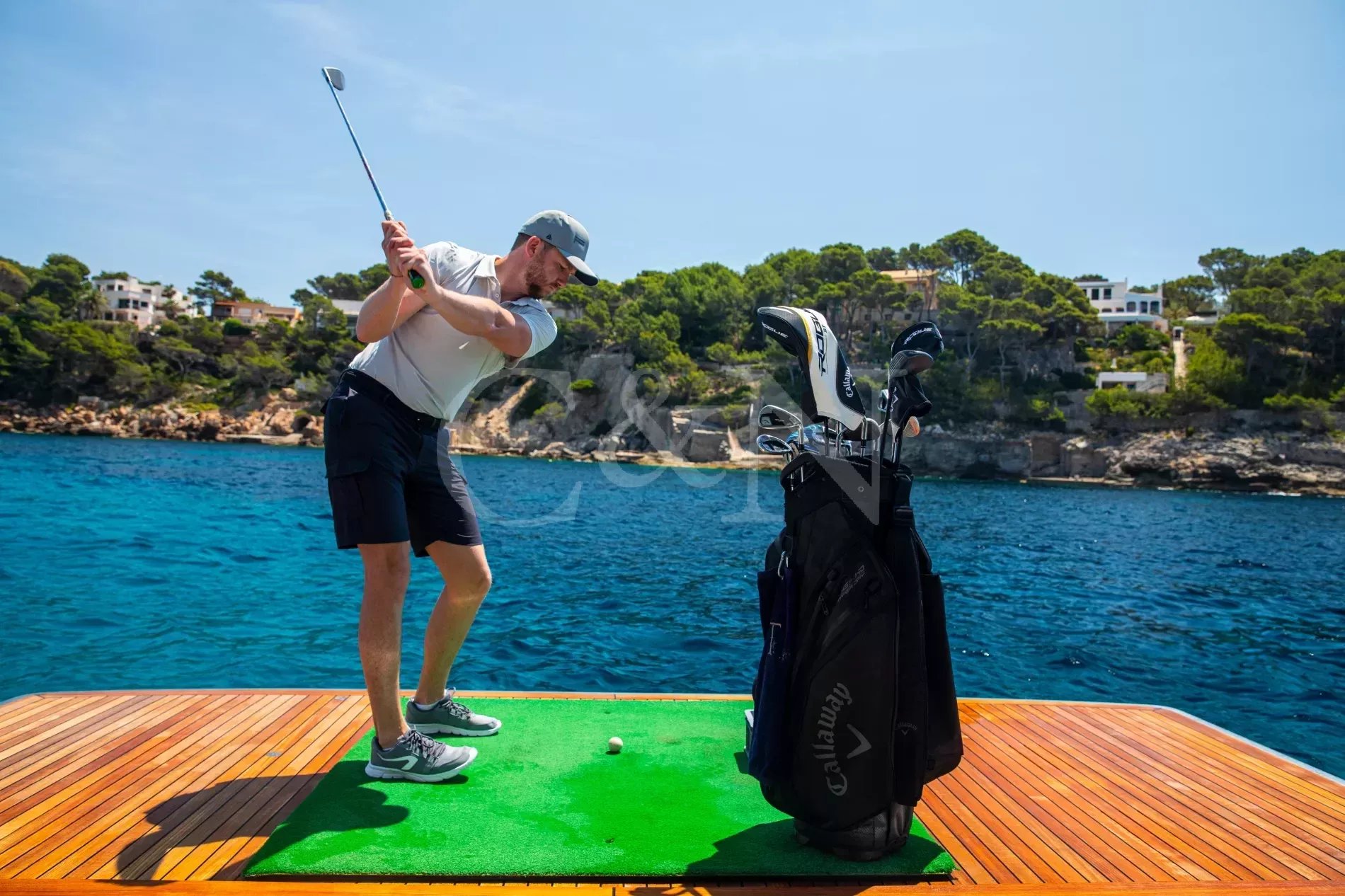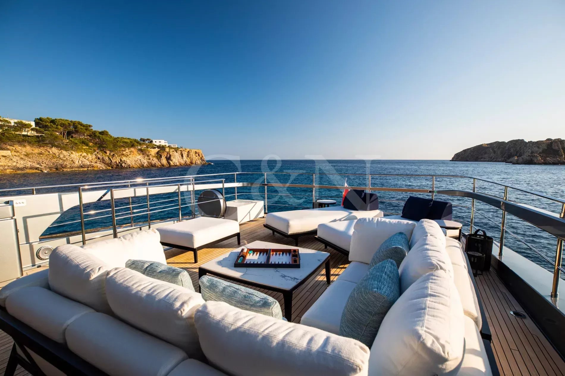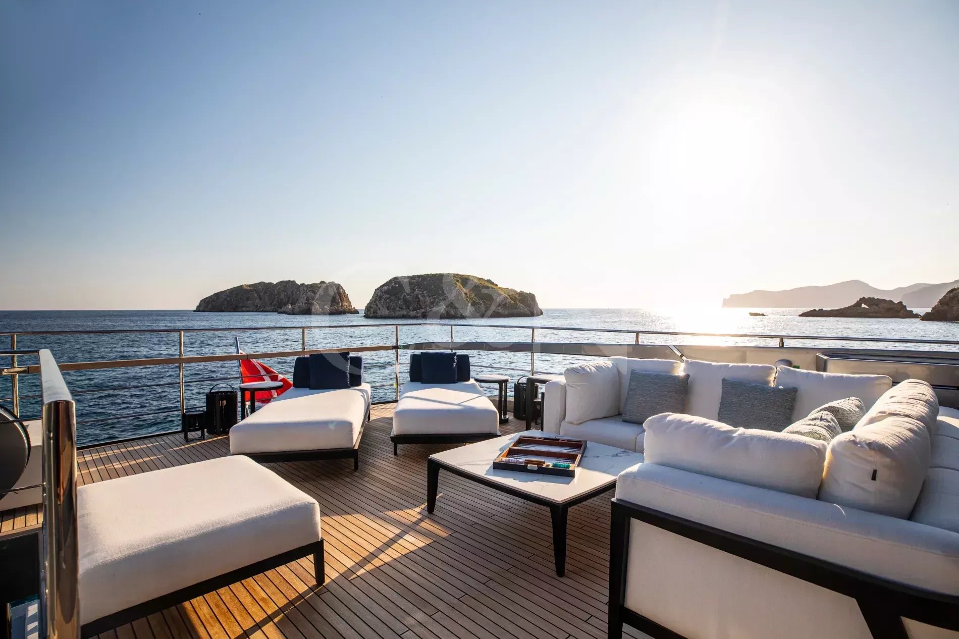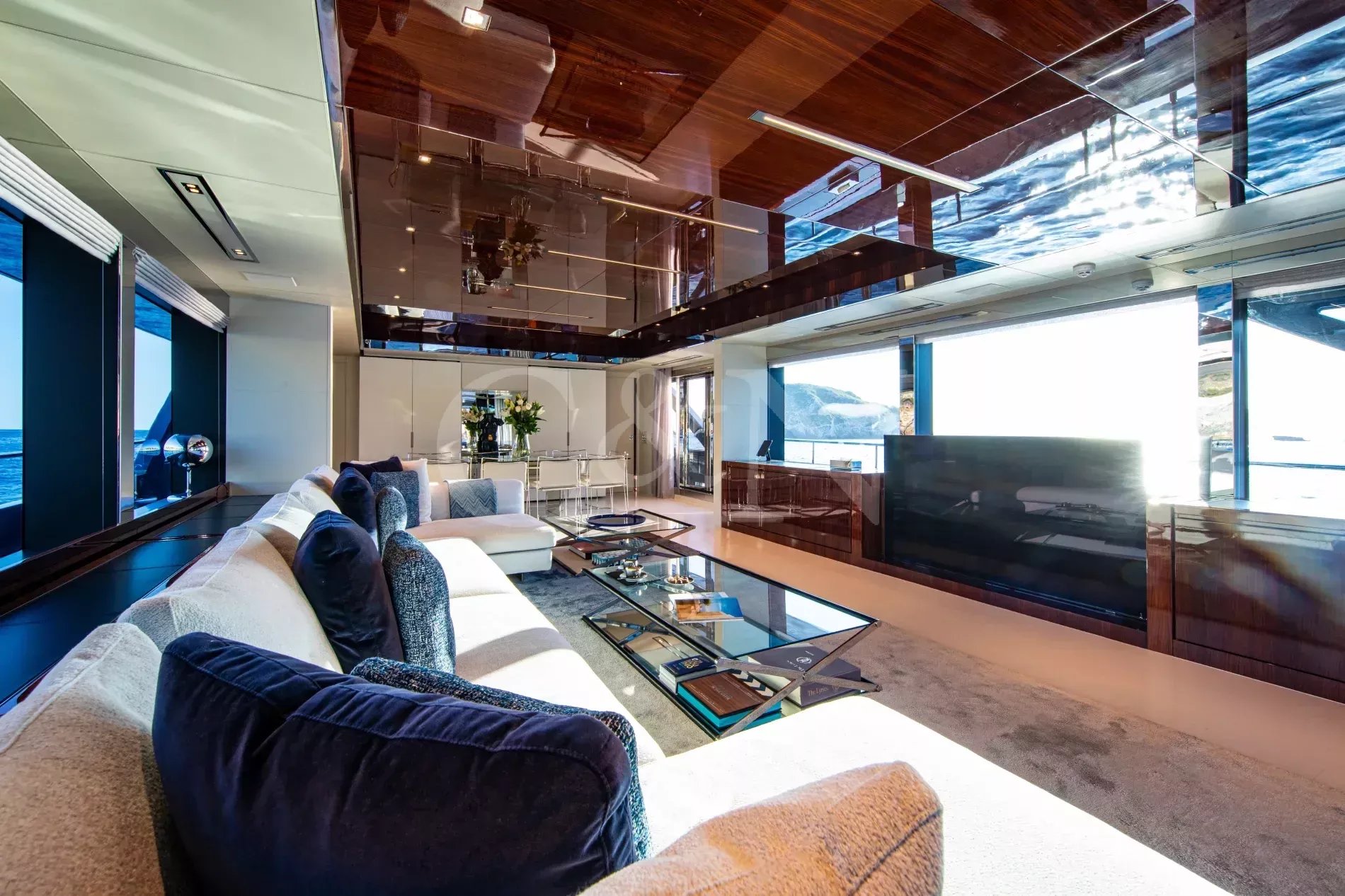 FIGURATI carries the unmistakable DNA of Riva, long hailed as the godfather of Italian design. Styled by Officina Italiana Design, this Dolcevita 110 sits at the top of Riva’s fibreglass fleet and brings a modern edge to one of the most recognisable names in yachting. Finished in Regal Silver and Shark Grey, she pairs elegant lines with a distinctly athletic spirit, and is accompanied by an Axopar 37 Brabus Edition chase boat for fast passages and day trips.The main salon is a calm, light-filled retreat where panoramic windows frame the sea from every angle. Low-profile furnishings maintain uninterrupted views, complemented by a palette of pale fabrics and glossy woods that heighten the sense of openness. The space transitions seamlessly from lounge to dining area, with twin sliding doors leading to the side decks, so guests can enjoy formal dining while the ocean breeze drifts through.FIGURATI accommodates up to eleven guests in five cabins. The full-beam master suite on the main deck features large windows, a king-size bed and double wardrobes to either side. A walk-in dressing area leads to an en suite bathroom finished in Carrara marble with a spacious walk-in shower. For guests working on board, a retractable screen allows the suite to double as a private office. On the lower deck, four guest cabins continue Riva’s palette of polished rosewood and soft fabrics. Three VIP suites each include a queen-size bed and double wardrobe, while the fourth cabin sleeps up to three guests in two single beds and a Pullman, or converts to a large double when required. Each cabin has its own en suite, plasma television, and iPad controls for lighting, climate and entertainment.The aft deck extends directly from the main salon, forming a single, open area that blurs the boundary between inside and out. It is a sociable, shaded space close to the water and a natural setting for breakfast and lunches at anchor. Above, the flybridge stretches the full length of the upper deck, combining dining, lounging and sunbathing into one continuous open space. A hardtop offers a shaded space to enjoy while integrated glass panels scatter sunlight across the deck. A bar occupies the centre of the space, serving both the lounging and dining areas. Modular, moveable furniture can be rearranged for morning workouts or cleared to transform the aft space into an open dance floor. From morning until night, it remains one of the most inviting places on board. Another favourite spot among guests is the foredeck, with a sofa, adjustable loungers and a Jacuzzi set into the deck.FIGURATI carries an impressive selection of toys and tenders, led by an 11.5m Axopar 37 Brabus Edition, a fast and highly capable chase boat. Perfect for day trips, watersports or exploring the coastline, it combines power and comfort to extend the reach of the yacht wherever she anchors.