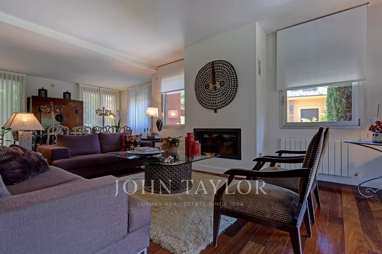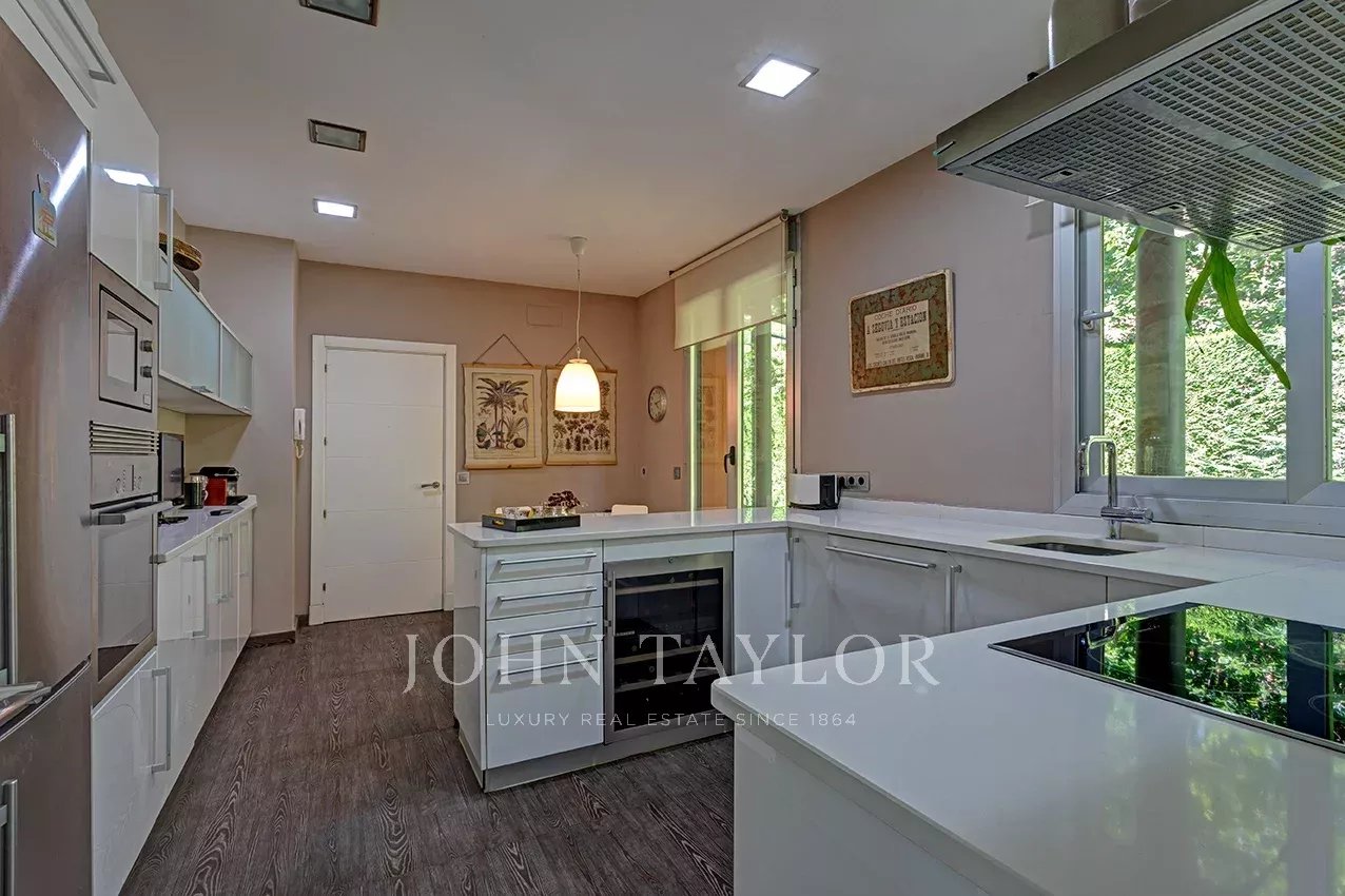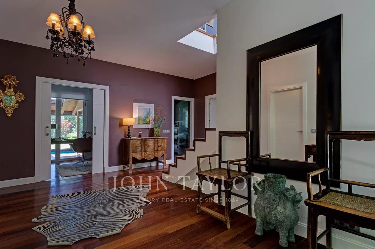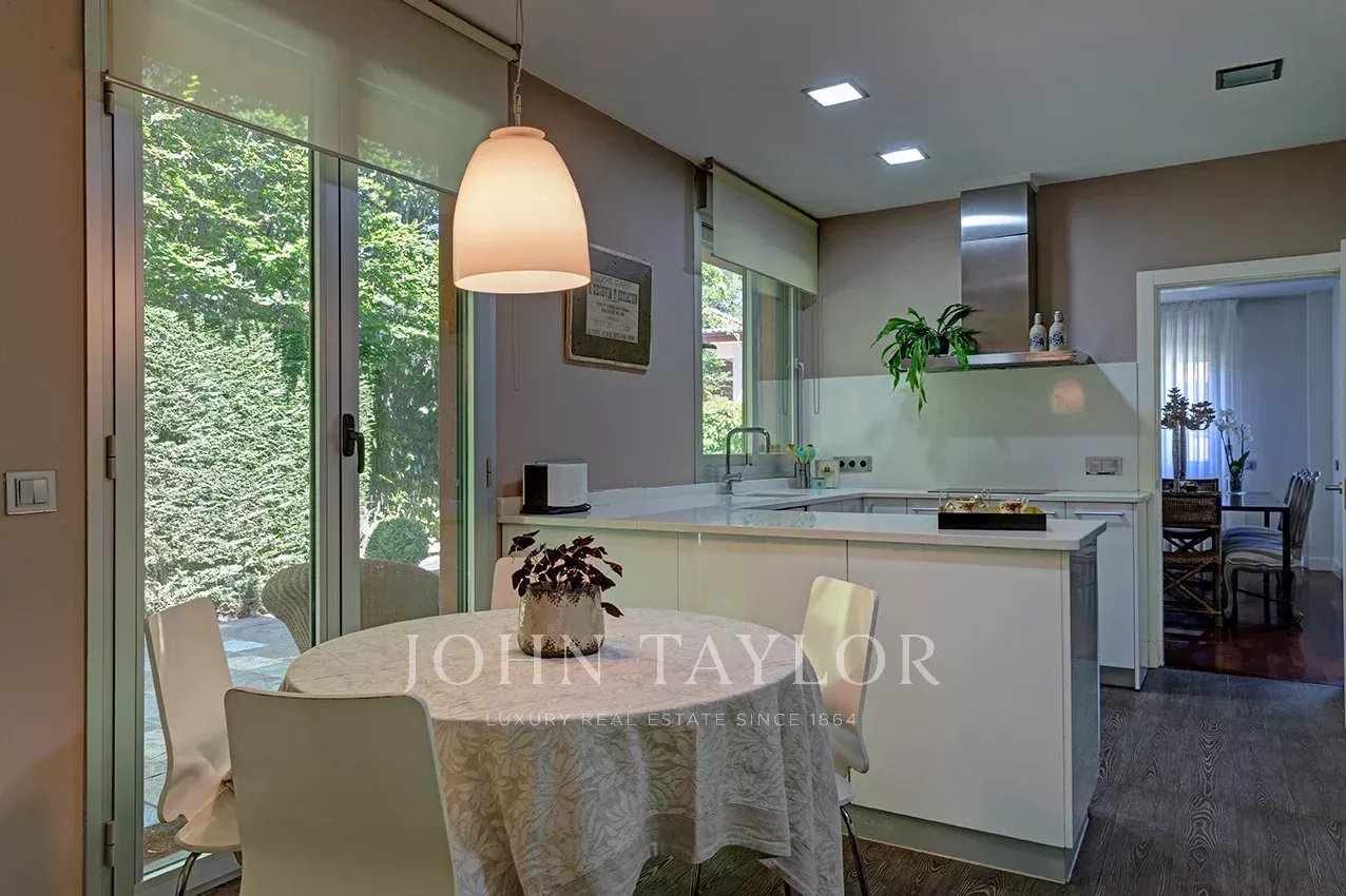 Distributed in three comfortable floors, the main floor consists of a large and bright living room with fireplace and large windows with access to the garden and the magnificent covered and glazed swimming pool, heated, with dehumidification system, which, in summer can be semi exterior to be able to open all the glazed enclosure.
