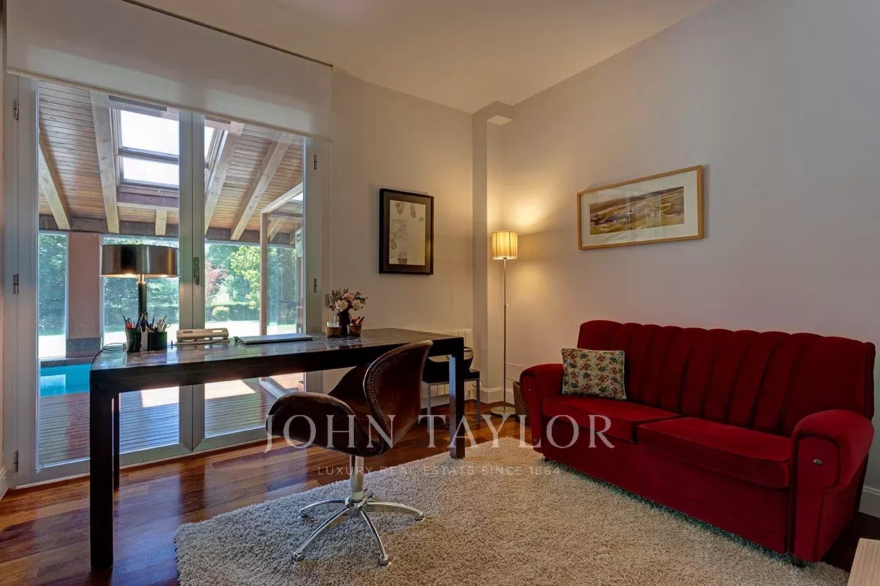 On this same floor we have the bright kitchen with office area, an office, a guest bathroom, which also connects to the pool and sauna, and a great, spacious and comfortable master bedroom with dressing room and bathroom en suite.