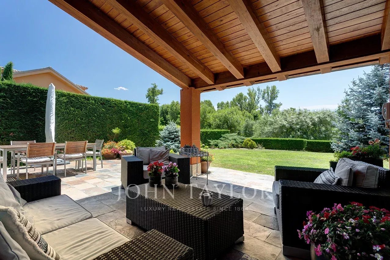 The villa of 613m² built on a plot of 940m², is in perfect condition and combines comfort with a nice and modern interior that gives its materials and distribution, as well as its attic upstairs.