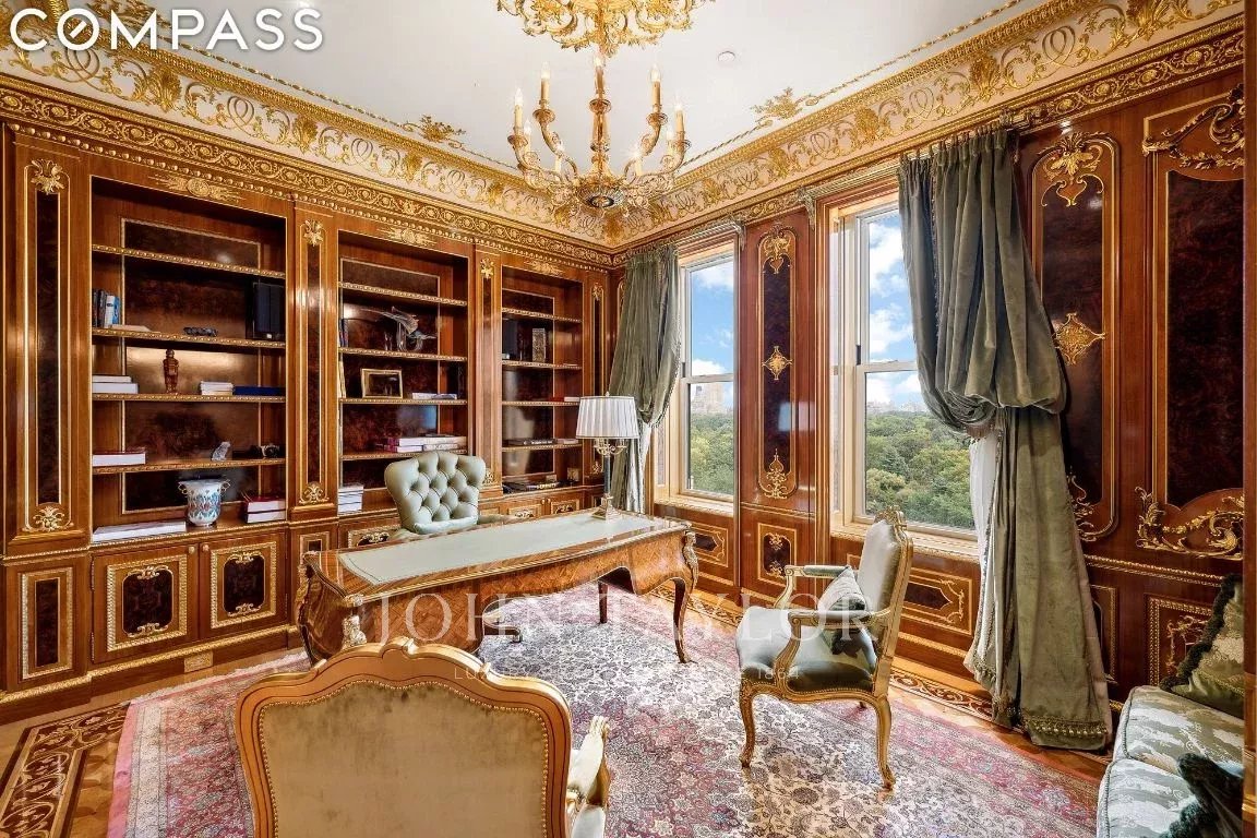 Discover an extraordinary opportunity to own a luxurious residence at manhattan’s prestigious plaza private residences with direct central park & fifth avenue views. This exclusive offering combines two expansive apartments on the most desirable corner of the plaza, totaling 5,302 square feet, into an exquisite 5-bedroom, 3-full bathroom, 2-half bathroom masterpiece with high 12-foot ceilings. With opulent french-inspired interiors, this home features lavish details such as 24k gold trim, venetian plaster, and custom paneling, evoking the elegance of a parisian palace. Upon entry, the grand foyer leads into a breathtaking great room with soaring ceilings, inlaid floors, and a stunning plaza turret offering views of central park and fifth avenue. The formal dining room, with its ornate columns and expansive windows, sets a spectacular scene for entertaining, while the wood-paneled study and private library provide intimate spaces for relaxation. A chef’s dream, the gourmet kitchen is equipped with top-of-the-line appliances and custom cabinetry, perfect for both casual dining and grand culinary endeavors. The serene primary suite is a true sanctuary, adorned with designer finishes, central park views, and features a spa-like bathroom with a jetted soaking tub, dual vanities, and a spacious walk-in rain shower, all surrounded by floor-to-ceiling imported onyx. The additional guest suites are equally impressive, each with en-suite bathrooms and elegant touches. Residence has an additional storage unit. Residents of the plaza enjoy an array of hotel-style services and amenities, from concierge and butler service to 24-hour in-room dining and twice-daily housekeeping. Residents have a private entrance to the building and have exclusive access to the palm court, the landscaped plaza gardens with fountain and reflecting pools, the grand ballroom, the terrace room, and luxury retail shops. Experience the epitome of manhattan living, just across the street from central park, world-renowned fifth avenue shopping, internationally acclaimed fine dining, and all the best that new york city has to offer.