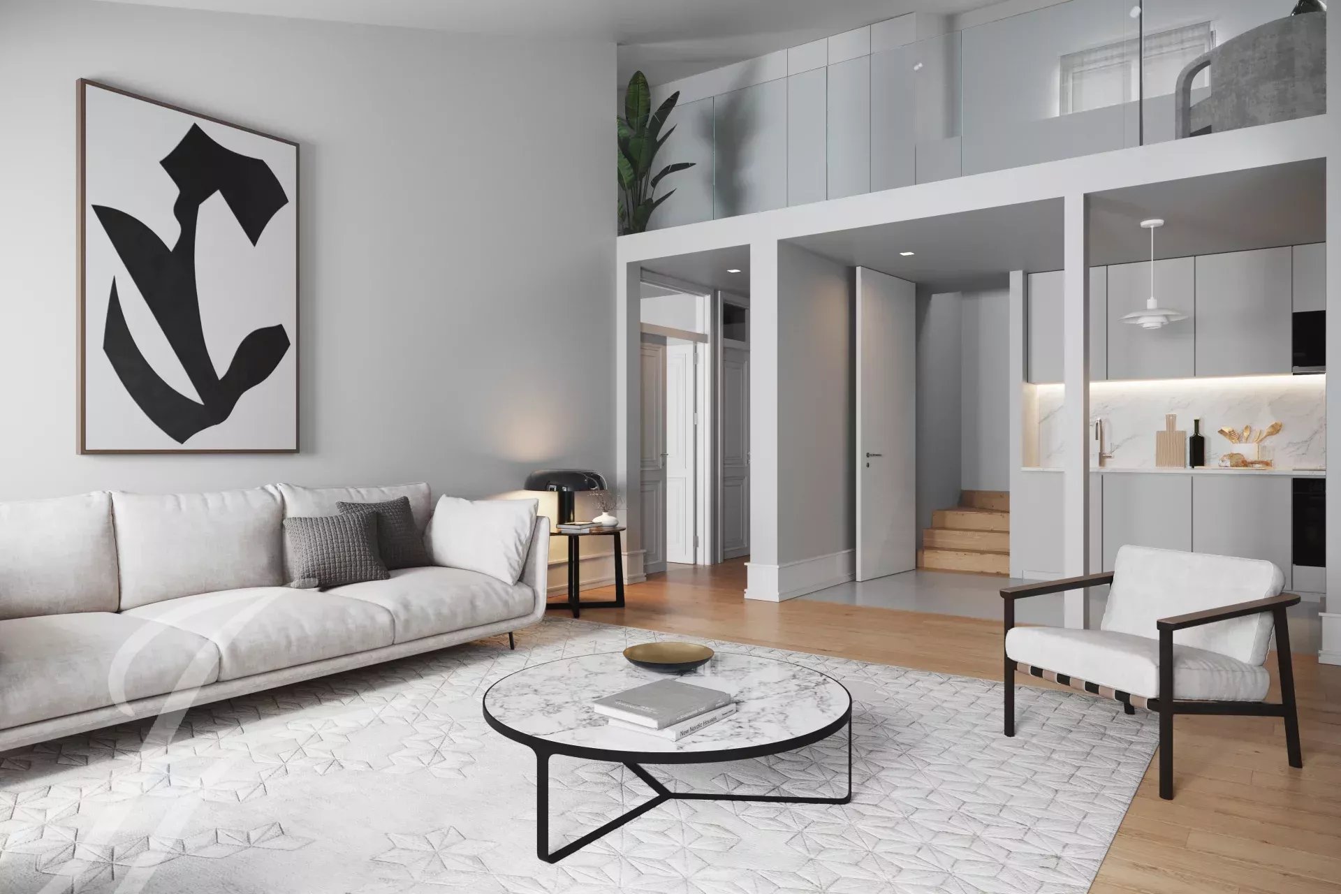 This 158 m² penthouse, accessible by an elevator, is situated in the Alecrim 51 building in Chiado, Lisbon, on one of the city’s most iconic streets. The 18th-century building has been fully restored, preserving its Pombaline style while incorporating modern comforts.