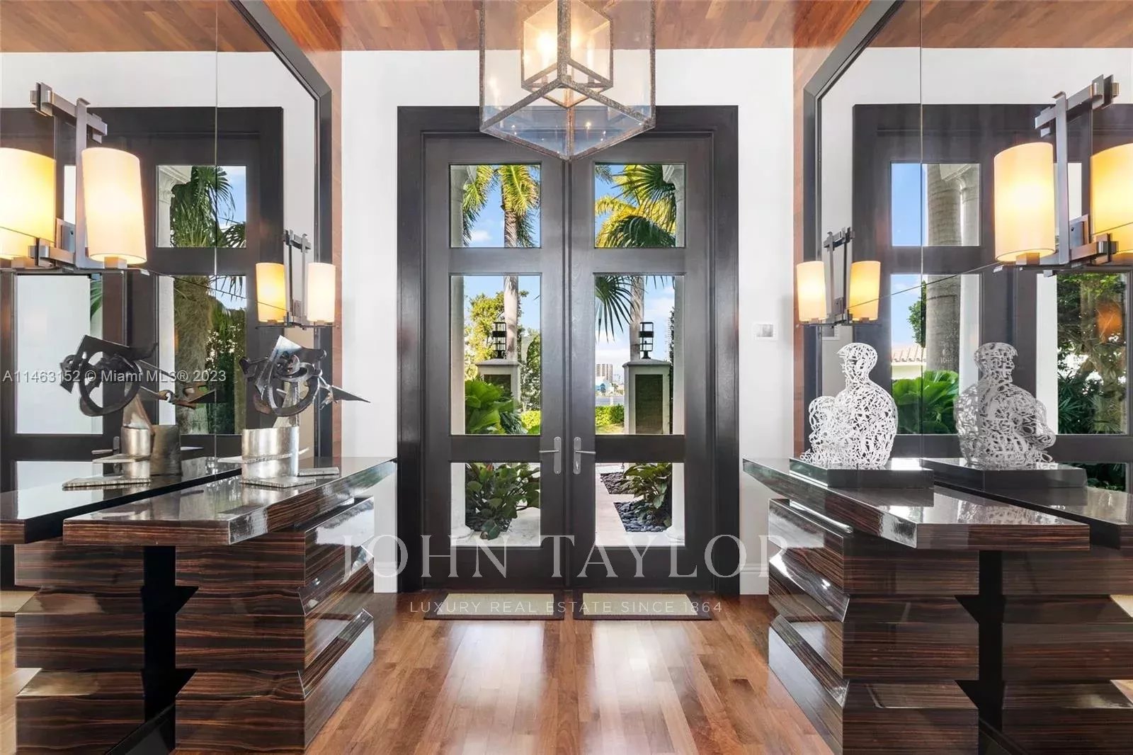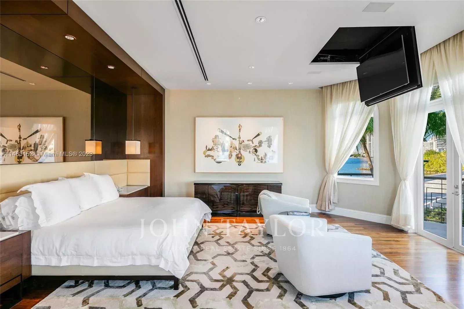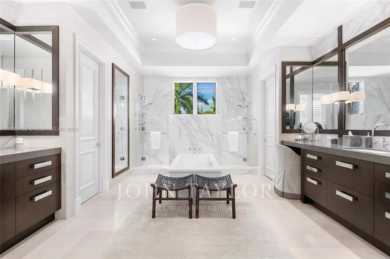 Experience sophisticated island living in this stunning waterfront paradise. This exceptional tri-level home offers 5 bedrooms, each with its own waterfront balcony, 6 bathrooms, and 2 half baths. With an elegant combination of marble and walnut wood floors, you'll enjoy a warm and inviting atmosphere throughout. Entertain in style with the summer kitchen and custom seating areas, perfect for hosting gatherings and enjoying the outdoor south florida lifestyle overlooking 251 feet of wide bay views paired with 3 boat slips ranging from 50'-100' each. The uv and solar-protected impact glass ensures you can enjoy the views while maintaining energy efficiency and protection. Deeded dock spaces are available for purchase. Don't miss the opportunity to own this exquisite piece of paradise.