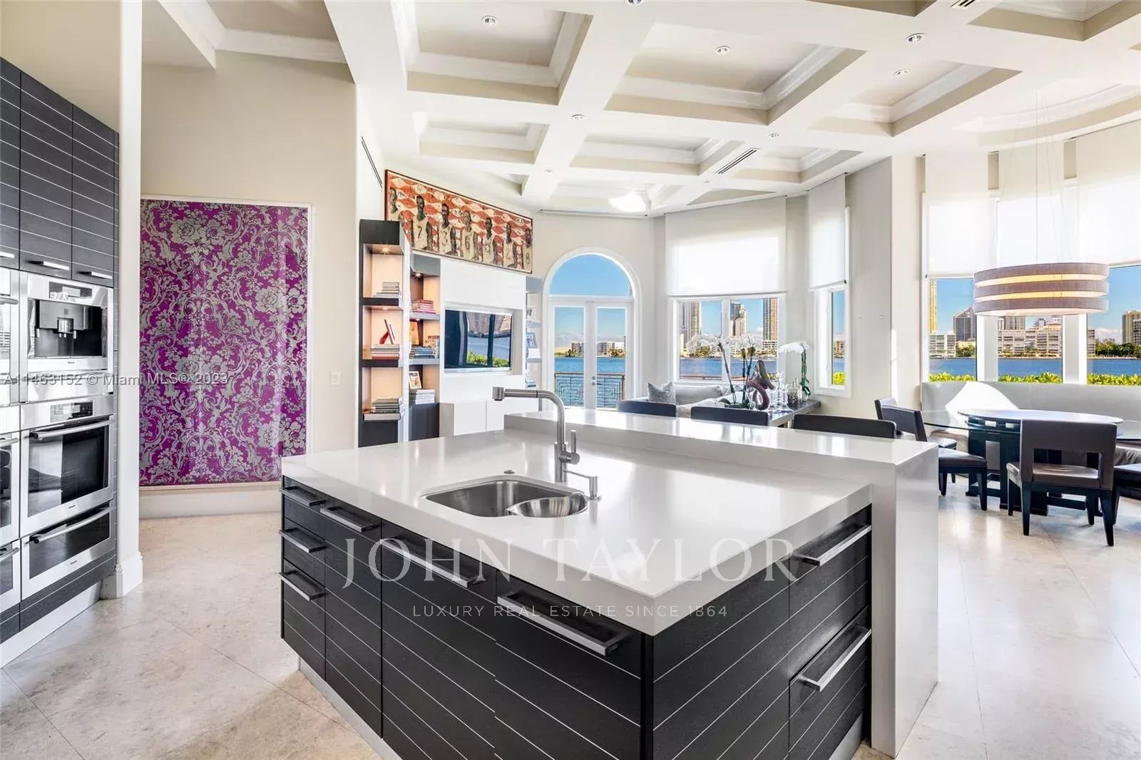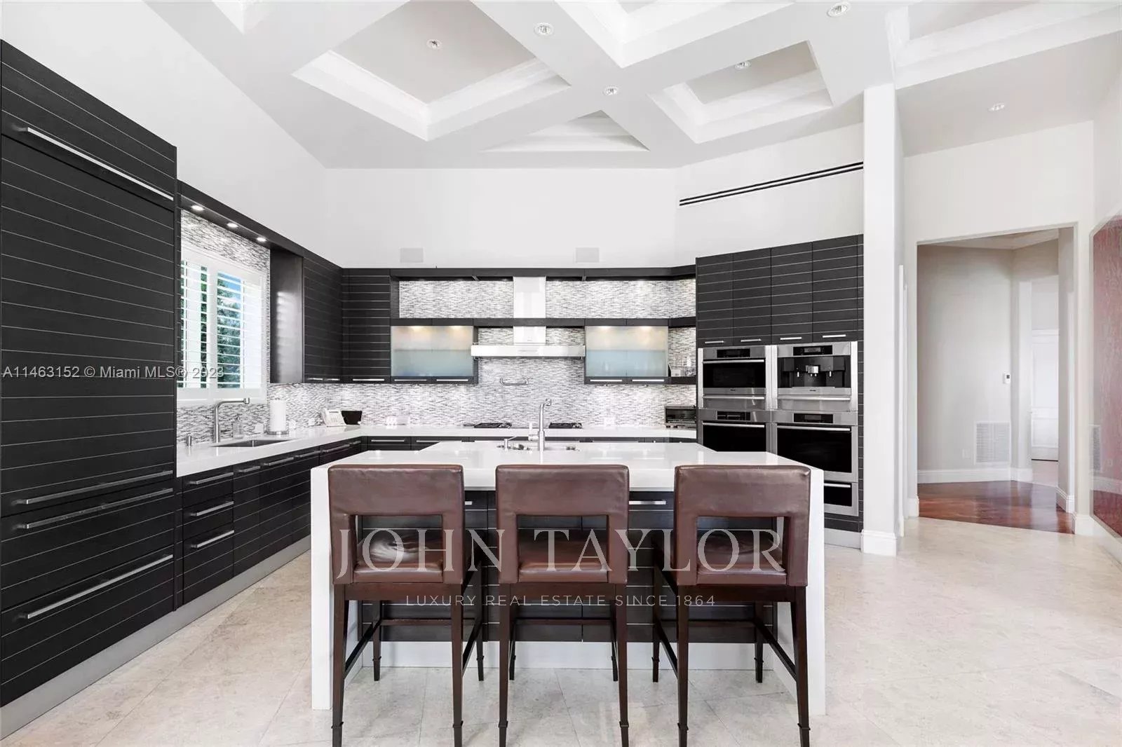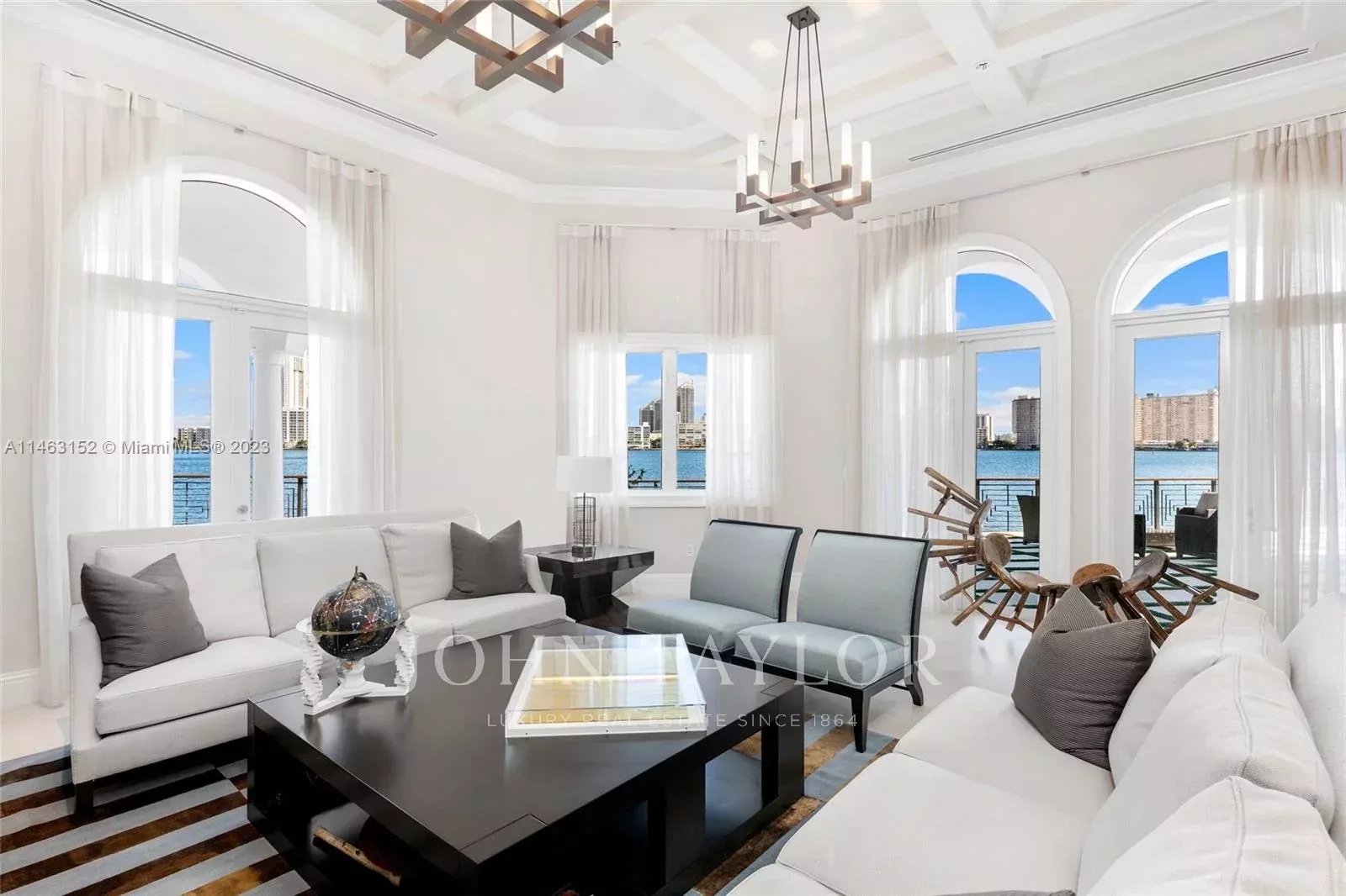 Experience sophisticated island living in this stunning waterfront paradise. This exceptional tri-level home offers 5 bedrooms, each with its own waterfront balcony, 6 bathrooms, and 2 half baths. With an elegant combination of marble and walnut wood floors, you'll enjoy a warm and inviting atmosphere throughout. Entertain in style with the summer kitchen and custom seating areas, perfect for hosting gatherings and enjoying the outdoor south florida lifestyle overlooking 251 feet of wide bay views paired with 3 boat slips ranging from 50'-100' each. The uv and solar-protected impact glass ensures you can enjoy the views while maintaining energy efficiency and protection. Deeded dock spaces are available for purchase. Don't miss the opportunity to own this exquisite piece of paradise.
