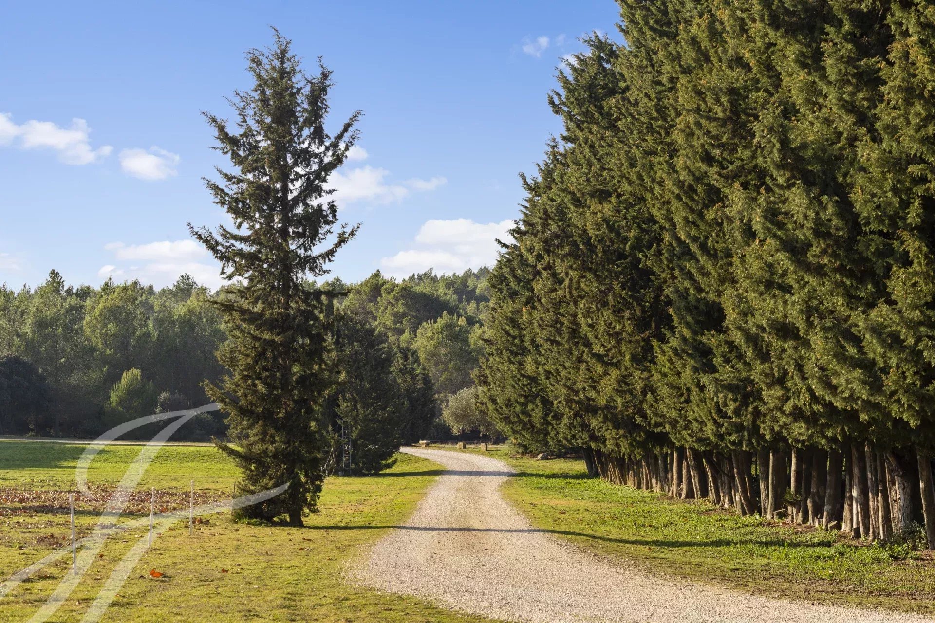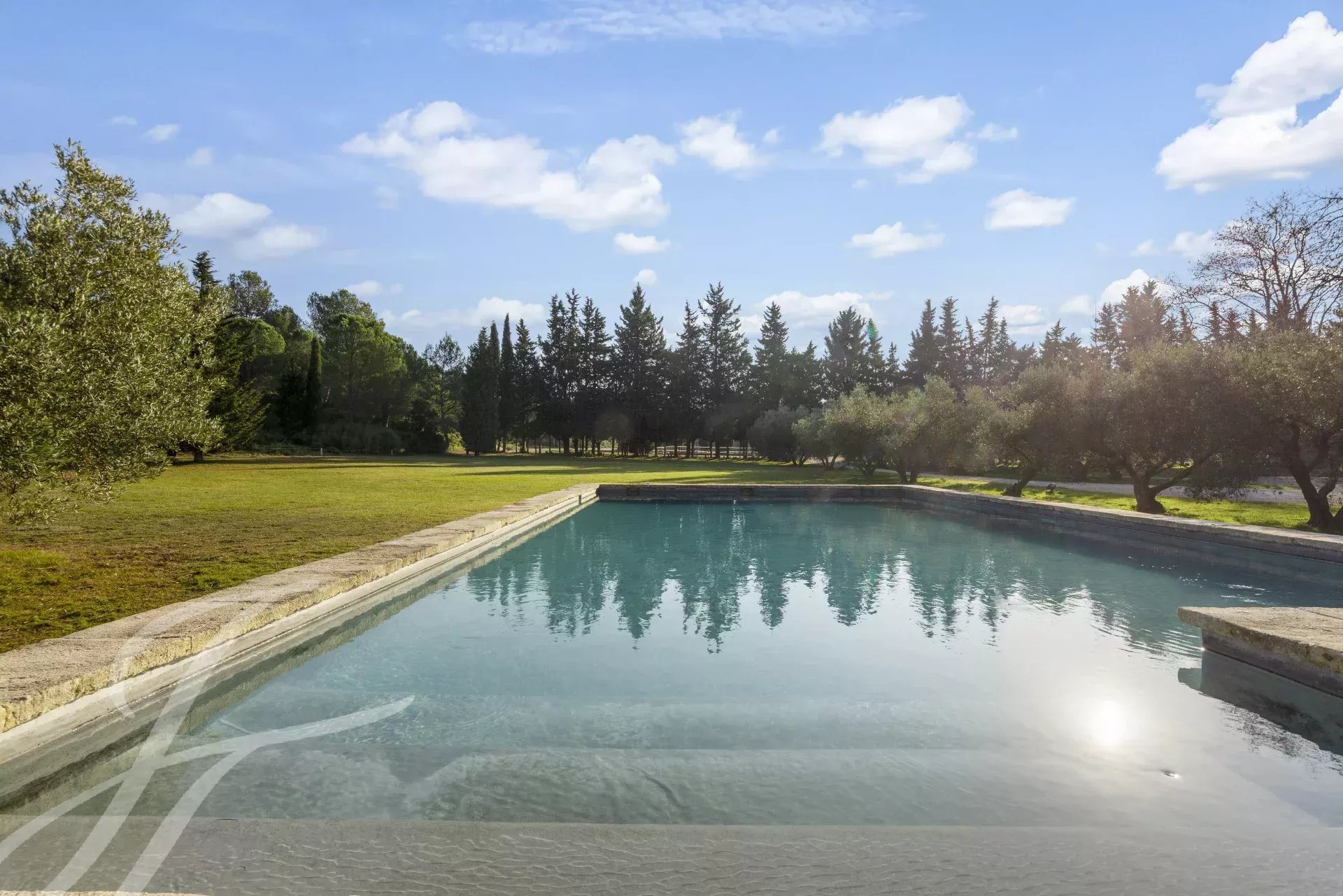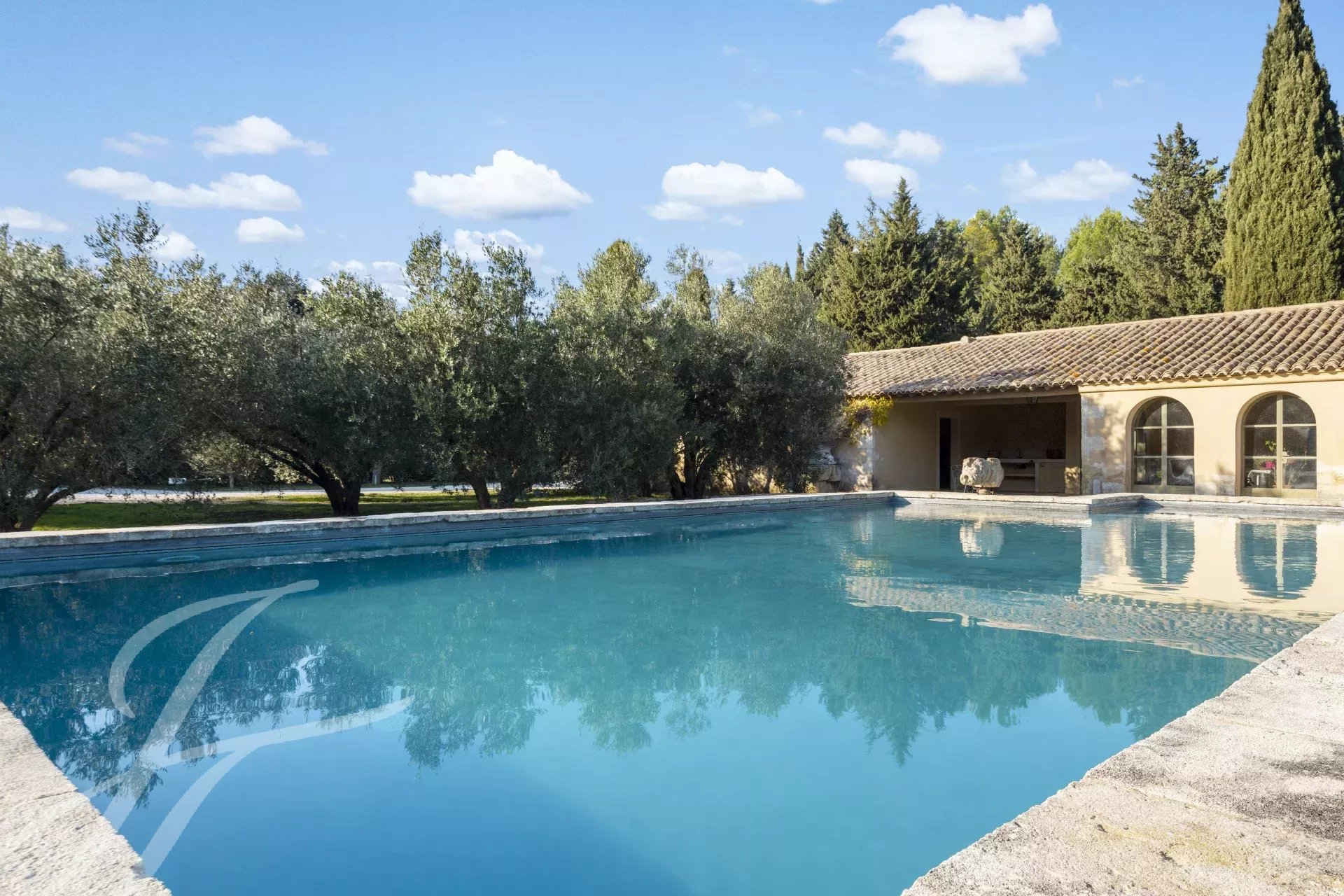 Set in the heart of a vast estate of almost 30 hectares, this rare property enjoys an exceptional natural setting between Saint-Rémy-de-Provence and Avignon. Pines, fragrant garrigue, 850 olive trees and 400 truffle oaks make up a typically Provencal landscape, while vast meadows offer ideal space for horses or other animals.