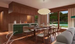 Conceived and designed by the renowned Promontório Arquitectos studio, this luxury condominium has 18 detached villas, duly integrated into the landscape structure of the golf course and the surrounding pine forest landscape, which served as inspiration for the materials and colors used, together with stone, glazed ceramics and natural wood.