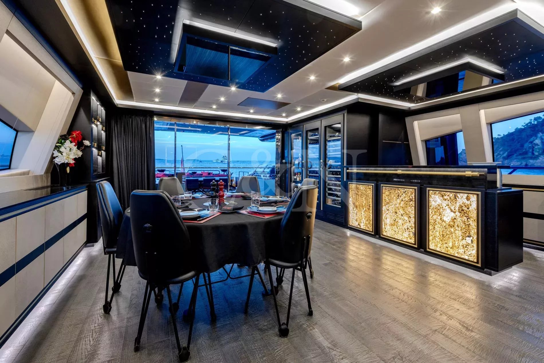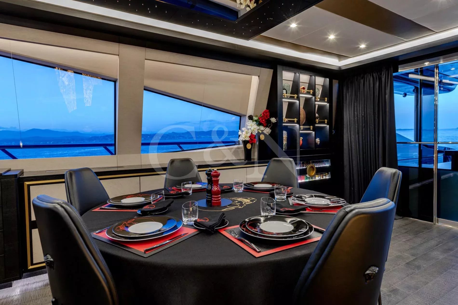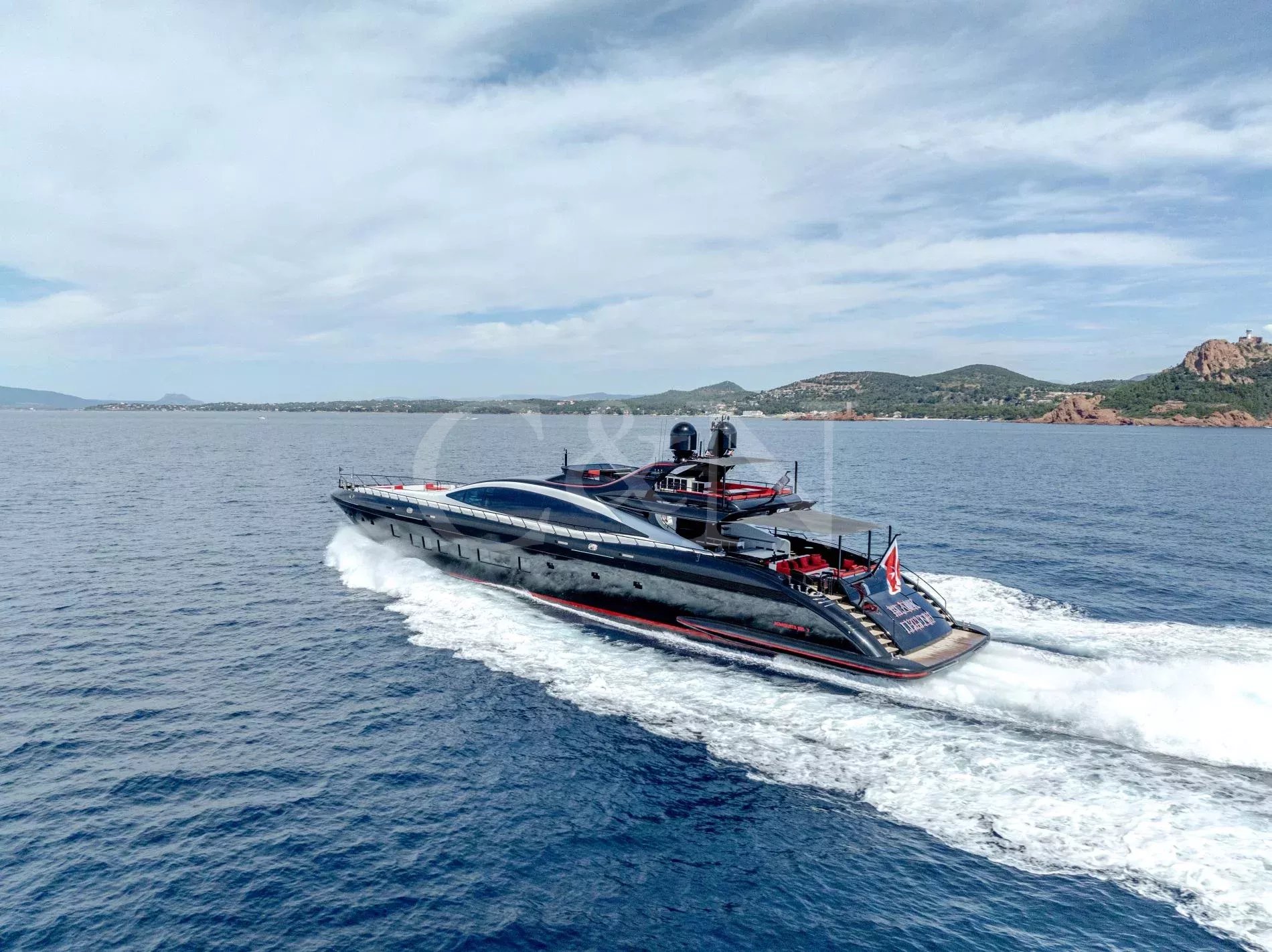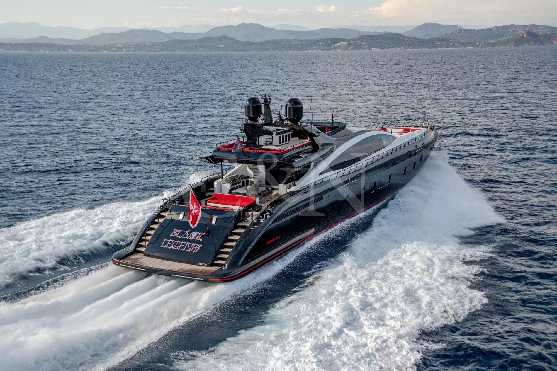 The 50-metre Black Legend is an immaculately presented, fast and sporty Mangusta 165E, and the penultimate hull delivered in the series. Maintained in pristine condition by one private owner, equipped with the latest MTU engines for optimum efficiency, and boasting a blistering top speed of 35 knots, Black Legend is one of the most iconic Mangusta yachts ever built by Overmarine.The semi-custom open yacht was built for a highly experienced owner with performance, comfort and style in mind. Conceived with the support of a strong project management team, this truly unique superyacht is optimised at every turn to enhance the guest experience. She was awarded ‘Power Yacht over 40m’ at the International Yacht & Aviation Awards.Her meticulously designed Asian-inspired interior enjoys a modern achromatic colour palette, enhanced by exclusive fabrics. The spacious main deck salon leads directly to the largest aft deck found on any 50-metre yacht, with a bar, barbecue, al fresco dining area and comfortable sofas to accommodate large groups of friends and family.On the lower deck, a full-beam master suite with a private office and dressing room is complemented by a gym, cinema, and three further guest cabins, including a VIP. Black Legend can sleep up to ten guests.Key highlights of the sprawling exterior deck spaces include an incredible foredeck area with a Jacuzzi, forward view seating and sunbeds with awnings. The sundeck is an ideal entertainment space, with sunpads, a cocktail bar and a DJ booth. On the lower deck, the beach club and stern platform provide waterside relaxation, while explorers and thrill seekers will appreciate the garage setup for watersports, chase boats and tenders.Most recently, the yacht completed her ABS 5 year special survey in 2022. She’s also equipped with both zero speed and underway stabilisers for the smoothest and most comfortable of guest experiences. The yacht is offered with an MTU warranty extension.