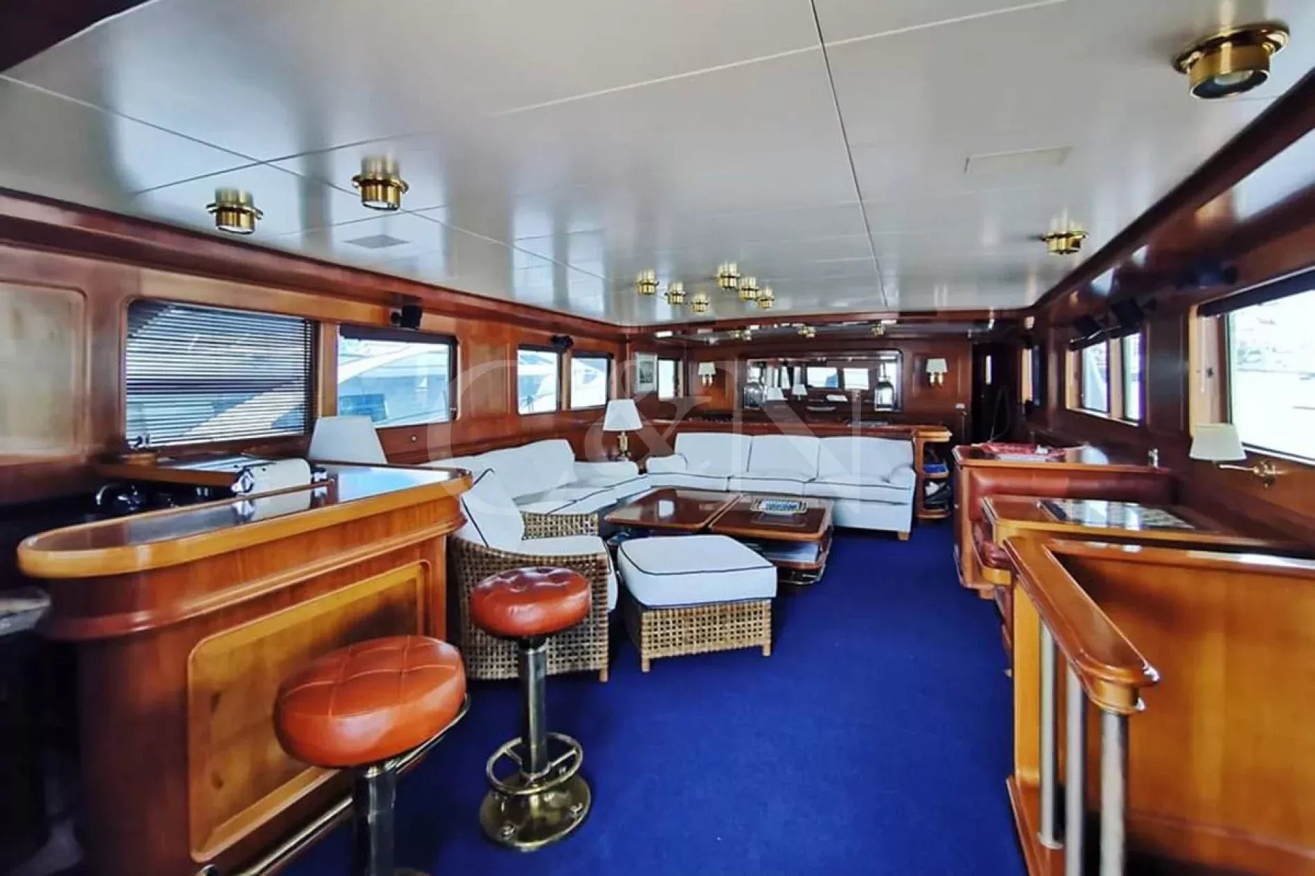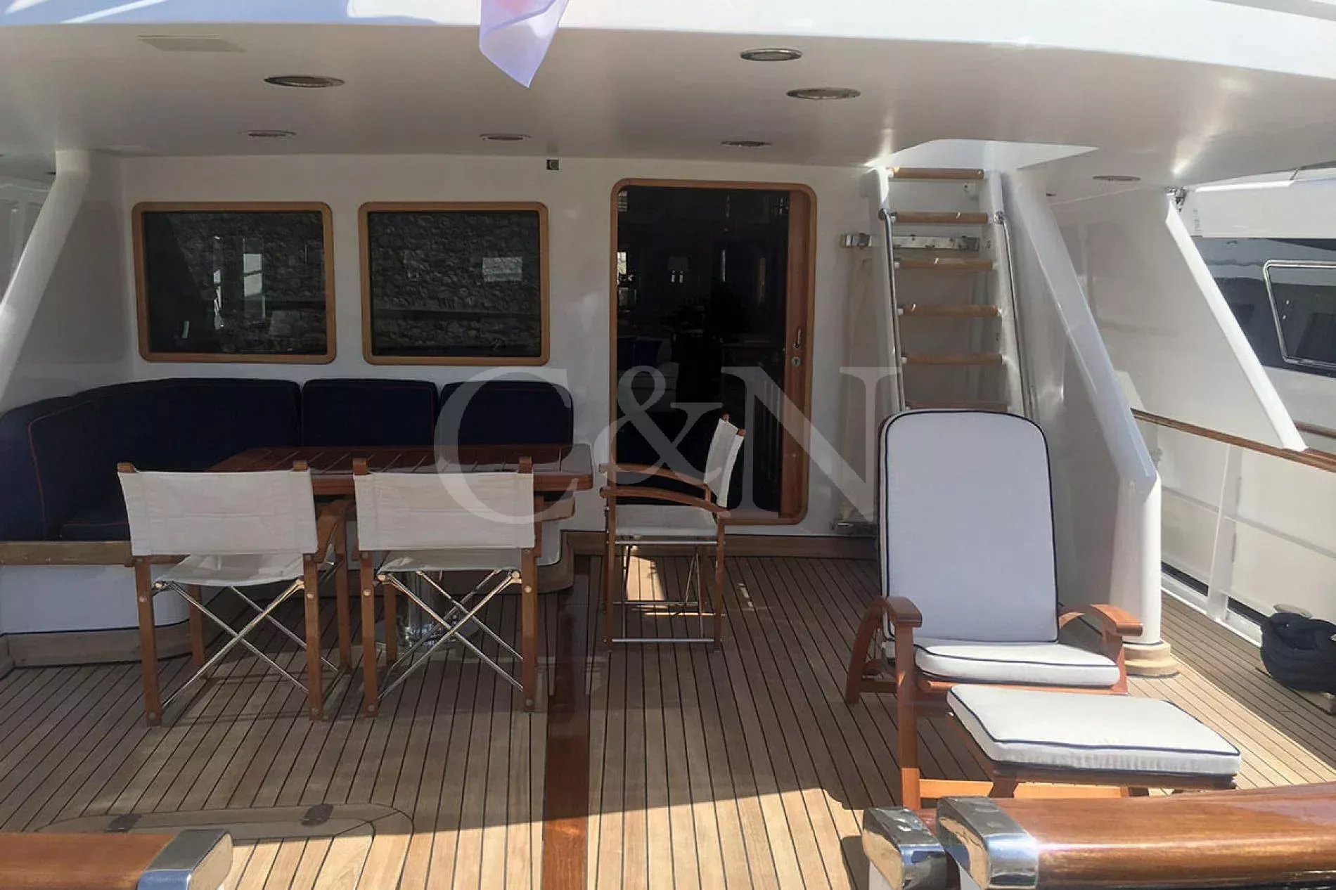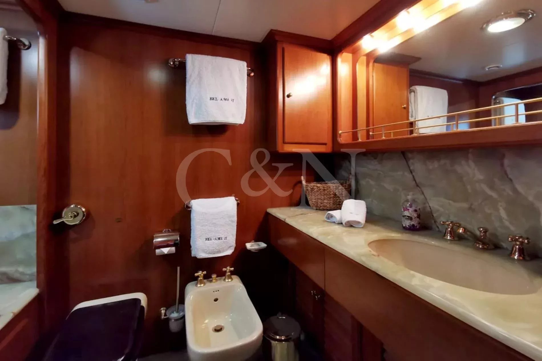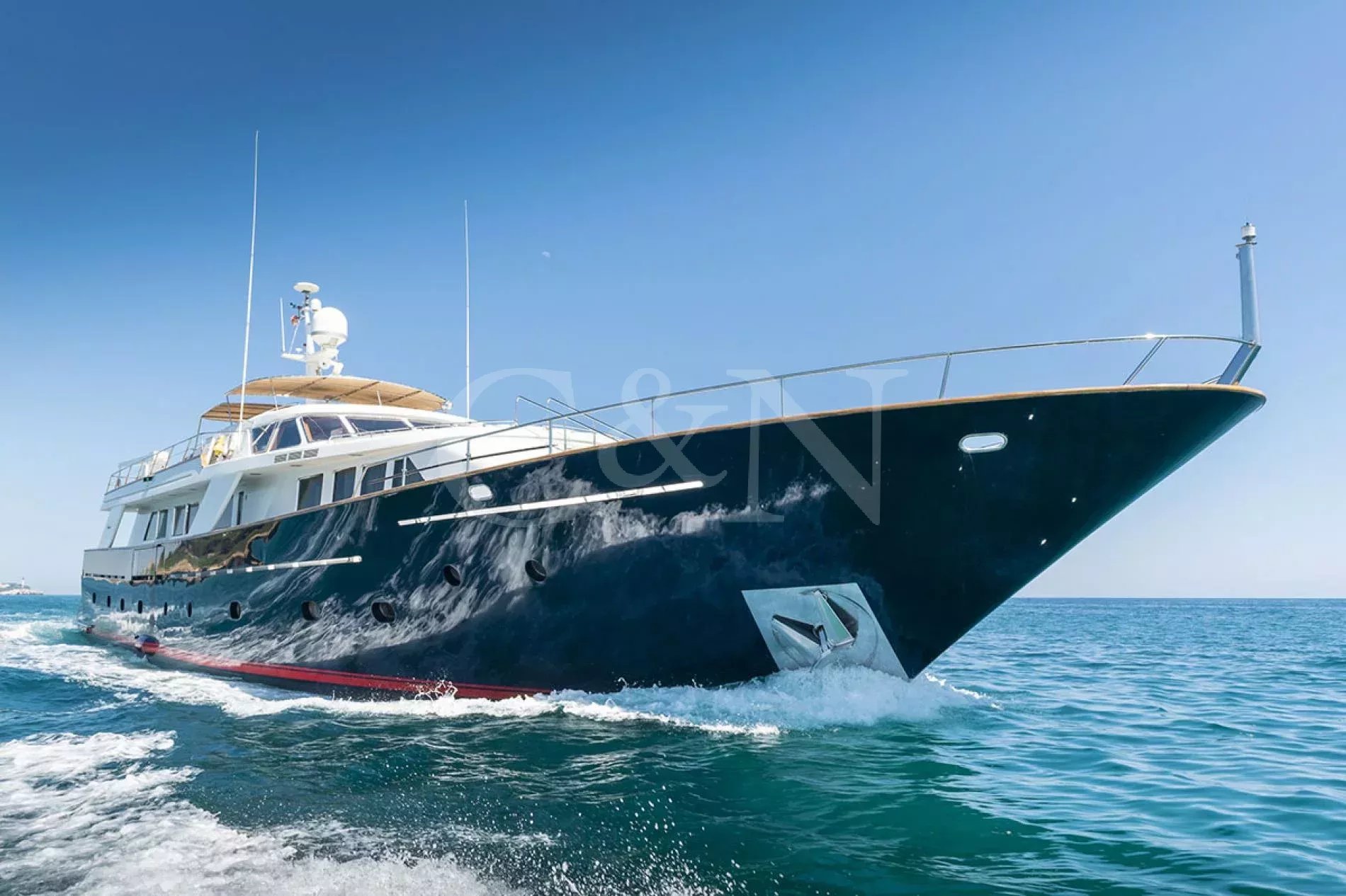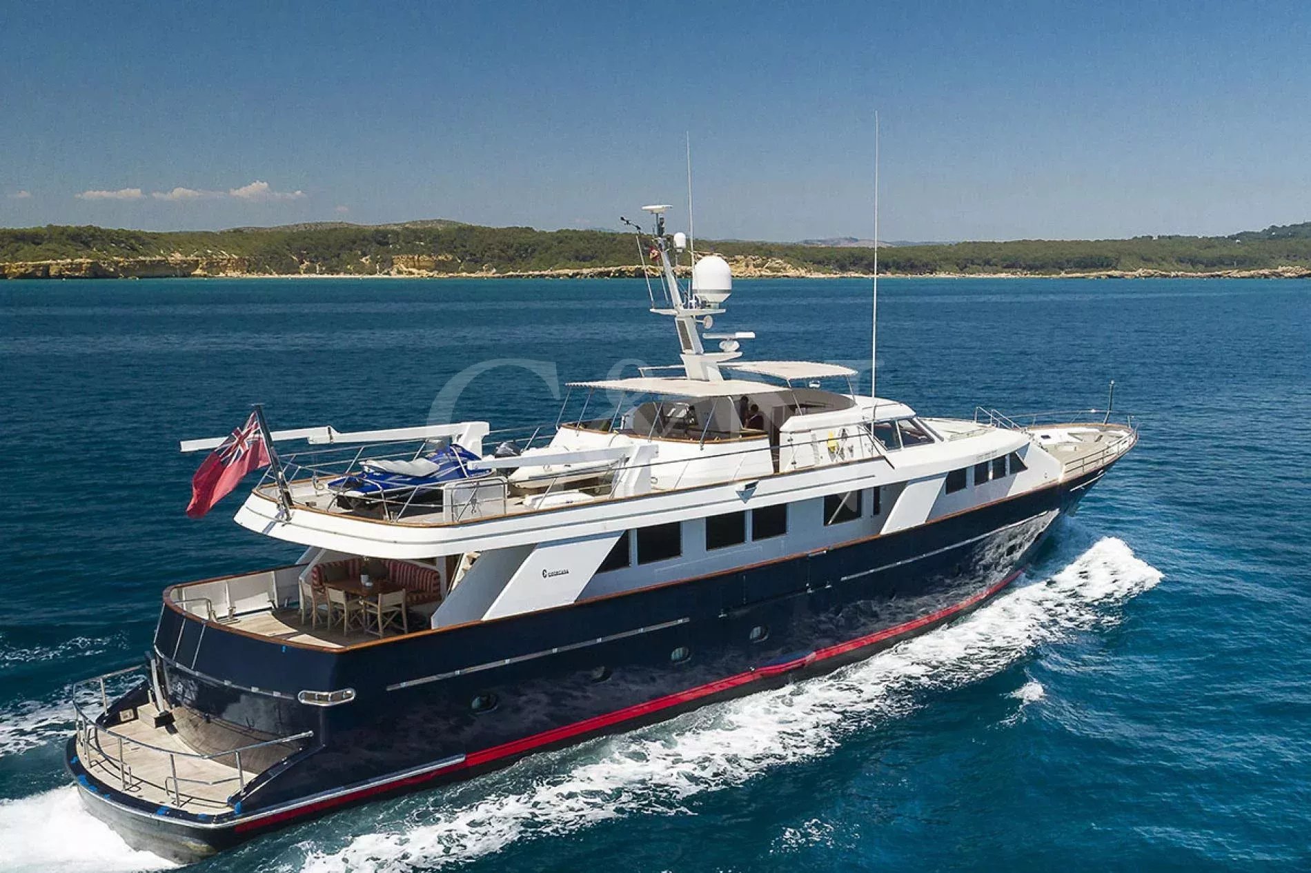 Bel-Ami II, a 34m Codecasa, is a modern classic. Bel-Ami II was originally launched in 1988. She has undergone a major refit with a complete systems upgrade and refurbishment in 2008, then later a more extensive refit in 2019.During Bel-Ami II’s most recent work period, the hull was cleaned, antifouled and checked for weakness with ultrasound. A full inspection of the yacht’s systems was carried out, with generator and fuel pump parts repaired and replaced as necessary. Completed with freshly varnished woodwork, a new nameplate and a polished hull, she is now in turnkey condition for a new owner to enjoy.Bel-Ami II’s understated style, seaworthiness and simple-yet-sophisticated interior with a semi-raised bridge and classical comforts, make her a real gentlemen’s yacht. Her interior décor features the original panelling, complemented by soft fabrics and a spacious and inviting layout. Bel-Ami II can accommodate ten guests in total with the master or VIP suite located on the main deck. There is separate accommodation for a complement of six crew.On-deck facilities include a diving and bathing platform that is also large enough for a couple of sun loungers. There is a large dining table on the main deck aft and a smaller breakfast table nestled against the shelter of the saloon bulwark. Bel-Ami II also has an exterior bar with comfortable sitting and dining area on the bimini-covered flybridge.Bel-Ami II carries her tender on the top deck, positioned aft, and is deployed and recovered by crane.