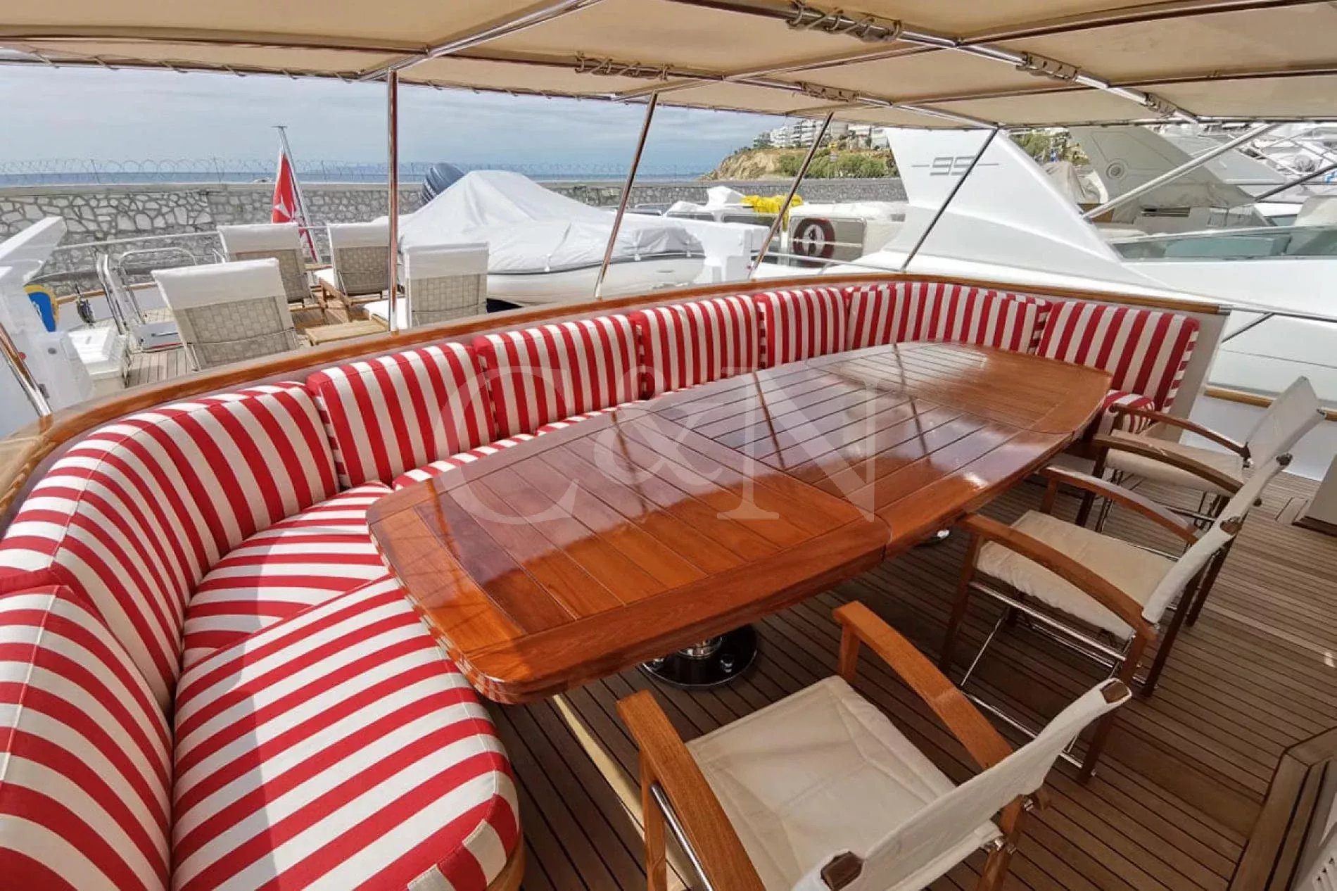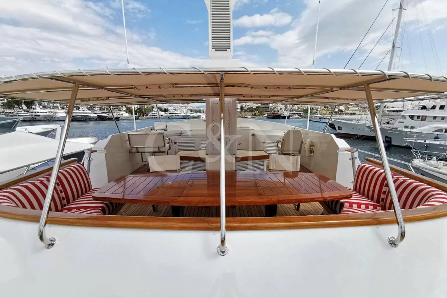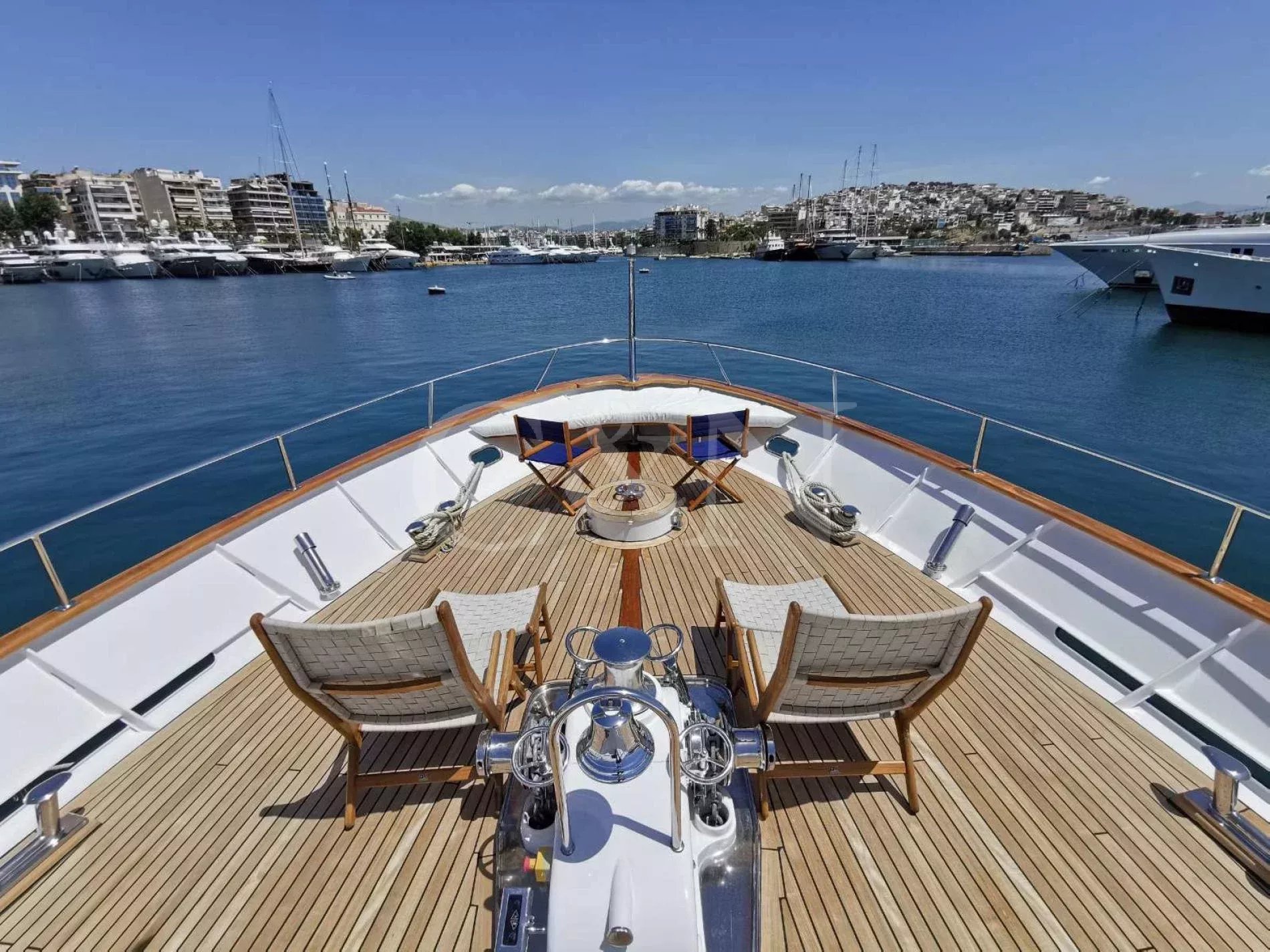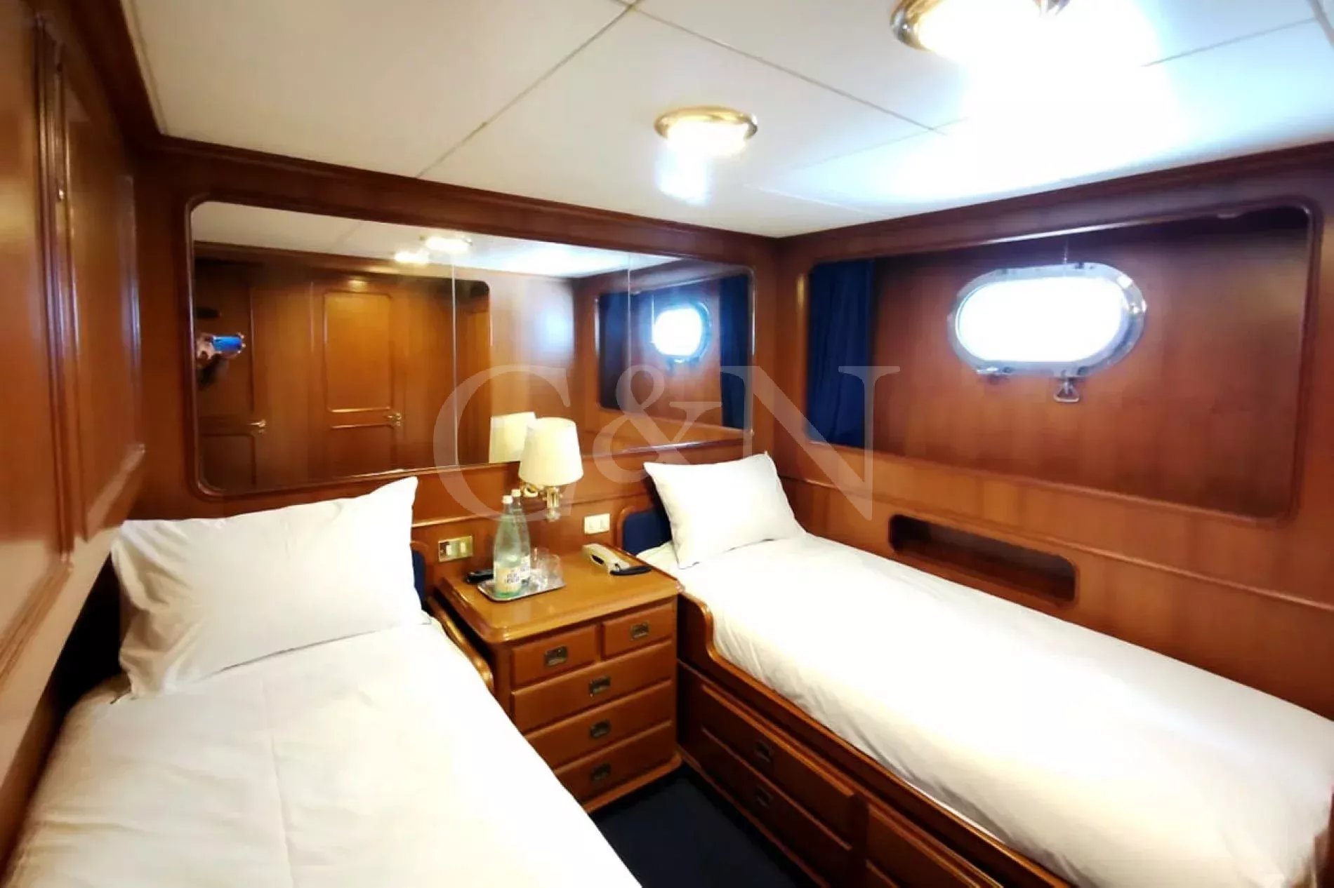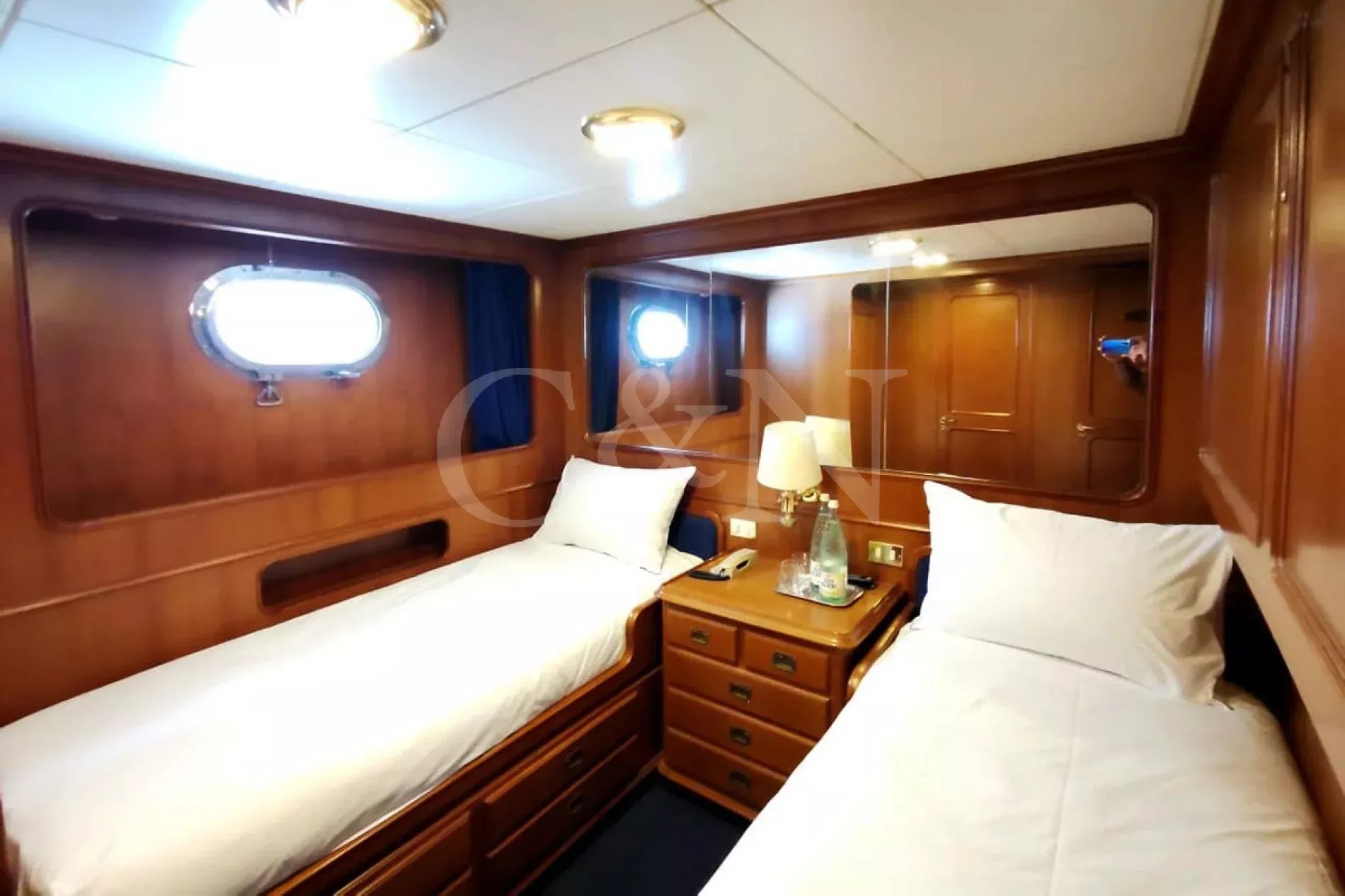 Bel-Ami II, a 34m Codecasa, is a modern classic. Bel-Ami II was originally launched in 1988. She has undergone a major refit with a complete systems upgrade and refurbishment in 2008, then later a more extensive refit in 2019.During Bel-Ami II’s most recent work period, the hull was cleaned, antifouled and checked for weakness with ultrasound. A full inspection of the yacht’s systems was carried out, with generator and fuel pump parts repaired and replaced as necessary. Completed with freshly varnished woodwork, a new nameplate and a polished hull, she is now in turnkey condition for a new owner to enjoy.Bel-Ami II’s understated style, seaworthiness and simple-yet-sophisticated interior with a semi-raised bridge and classical comforts, make her a real gentlemen’s yacht. Her interior décor features the original panelling, complemented by soft fabrics and a spacious and inviting layout. Bel-Ami II can accommodate ten guests in total with the master or VIP suite located on the main deck. There is separate accommodation for a complement of six crew.On-deck facilities include a diving and bathing platform that is also large enough for a couple of sun loungers. There is a large dining table on the main deck aft and a smaller breakfast table nestled against the shelter of the saloon bulwark. Bel-Ami II also has an exterior bar with comfortable sitting and dining area on the bimini-covered flybridge.Bel-Ami II carries her tender on the top deck, positioned aft, and is deployed and recovered by crane.