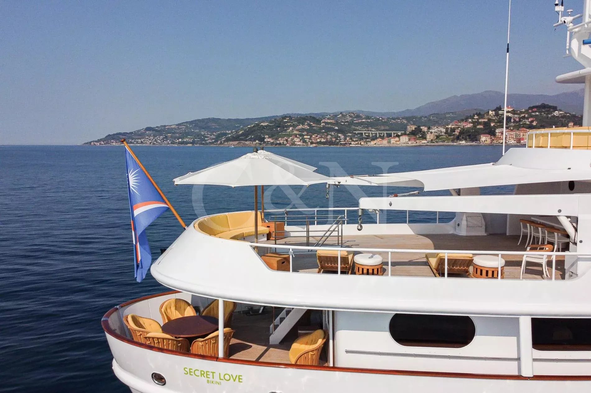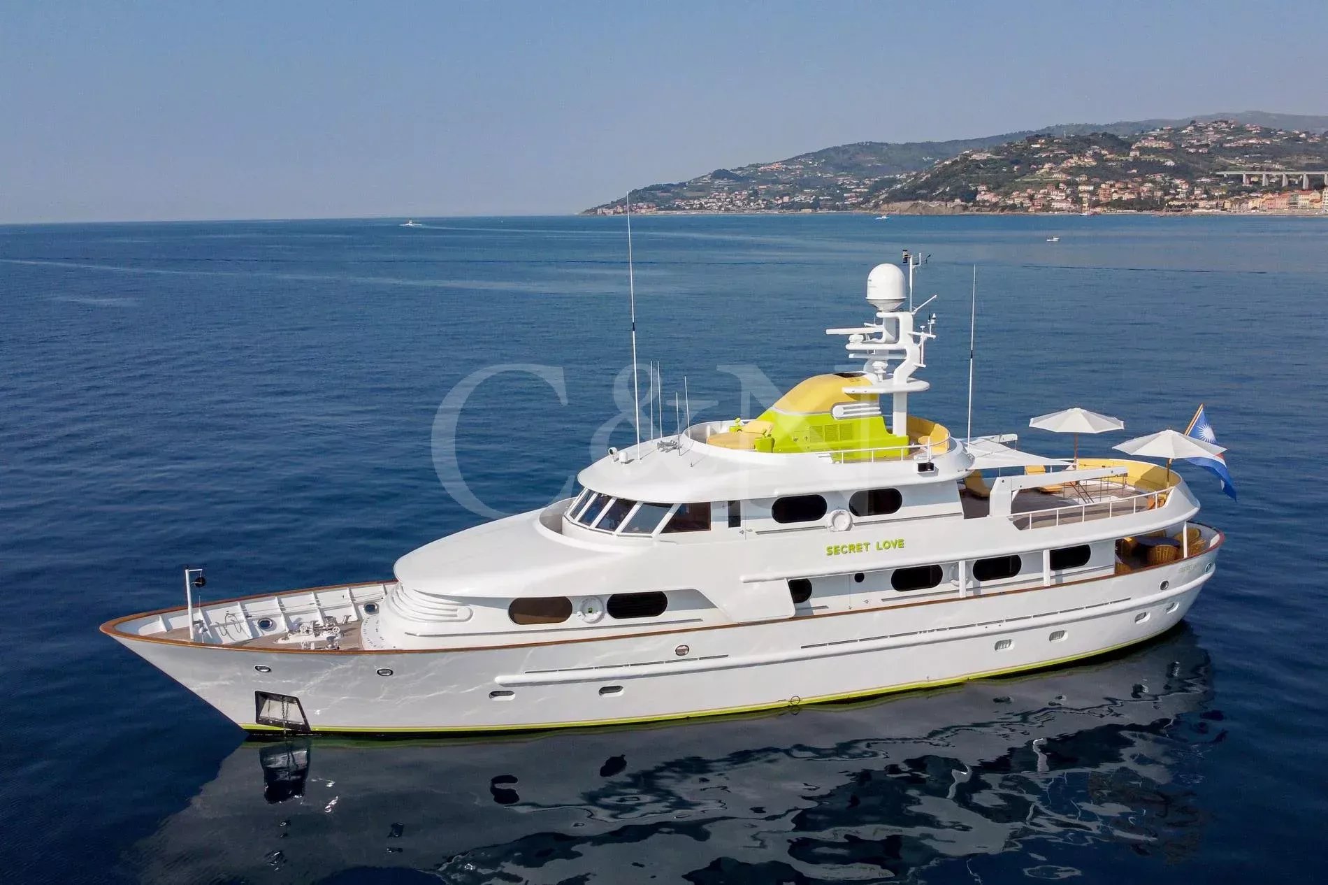 Built by Amels B.V. and launched in 1990, Secret Love reflects the pedigree of a Dutch shipyard celebrated for exceptional build quality. She has remained under the same family ownership for all but five years of her life, a continuity that has preserved her original character and charm. Secret Love is offered for sale exclusively through Camper & Nicholsons.Fully custom-built to exacting standards, particular emphasis was placed on safety, structural integrity, and seakeeping. The result is a true ocean-going yacht with reassuring capability underway.Secret Love features an interior by Struik & Hamerslag, where Bird’s Eye Maple and luscious fabrics combine to create a highly sophisticated atmosphere. With a full beam master suite, full beam VIP cabin and two twin cabins, each with a marble en suite, she can comfortably accommodate up to eight guests. Crew accommodation is for eight.Outside, Secret Love offers generous deck spaces, led by a large aft deck with comfortable seating set into the curve of her stern. The upper deck aft provides shaded dining and, once the tenders are launched, opens into a vast and versatile area. Above, a sun deck is arranged with a Jacuzzi and a day head.Secret Love is equipped with twin 680hp Caterpillar engines and cruises efficiently at 11 knots and has a maximum speed of 13 knots. She has a range of 4000 nautical miles.
