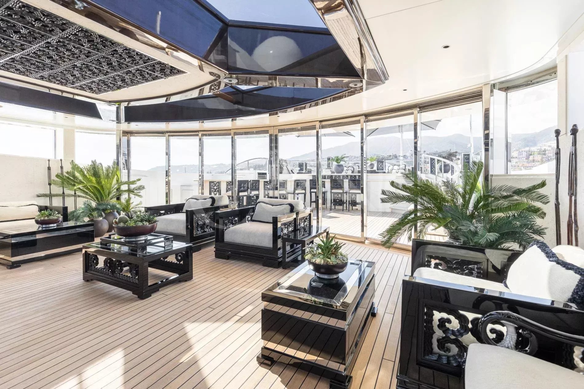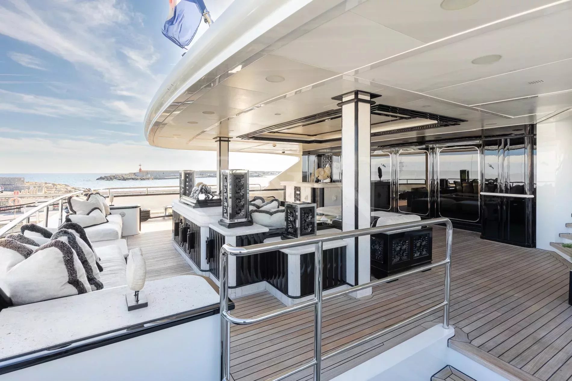 The 63.5m Benetti Lioness V was built as Lionheart in 2006 for highly experienced and discerning Owners. This yacht was a milestone for Benetti and the industry alike. With a total volume just short of 1.400 gross tons she offers accommodation, deck spaces and amenities rarely seen on a vessel of her length. From her flowing exterior lines to her extensive outdoor areas and indoor décor, her sea kindliness and her at anchor stability, Lioness V is truly special.Lioness V has an exceptional/bespoke interior by G&M Design. Executed to the highest standards with extensive use of burr oak panelling and Crema Marfil stone, inlaid with mother of pearl throughout guest areas. The level of detail is exceptional, both inside and out.Lioness V offers accommodation for 12 guests in an incredibly spacious full-width main deck master suite, three double cabins all with baths, and two twins with showers, all forward of the aft engine room. Crew accommodation is for up to 21 in total with 19 crew in 9 cabins below forward. There is a double captain’s cabin on the bridge deck.The master suite is entered via a private corridor with an owner’s study to port and a dedicated cinema to starboard. The owner’s en suite cabin with lounge, his and her adjoining bathrooms and dressing areas are all full width with extra-large windows.The main saloon and formal dining area are traditionally placed right aft with full width sliding doors giving way to the main deck aft, which offers a spacious guest lounging area and a full bar. The upper saloon features a bar and dining for six, generous lounge seating, and a large flat-screen television. Twin doors to port and starboard open directly onto the aft deck. This sheltered dining space can seat a large number of guests, complemented by extensive guest lounging spaces aft.The sun deck has a large, full air-conditioned indoor/outdoor dining area for 12, which can be closed totally from the elements or open fully both fore and aft.The sun deck has a large, full air-conditioned indoor/outdoor dining area for 12, which can be closed totally from the elements or open fully both fore and aft.