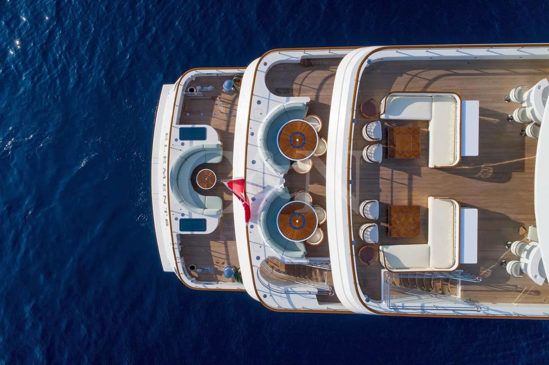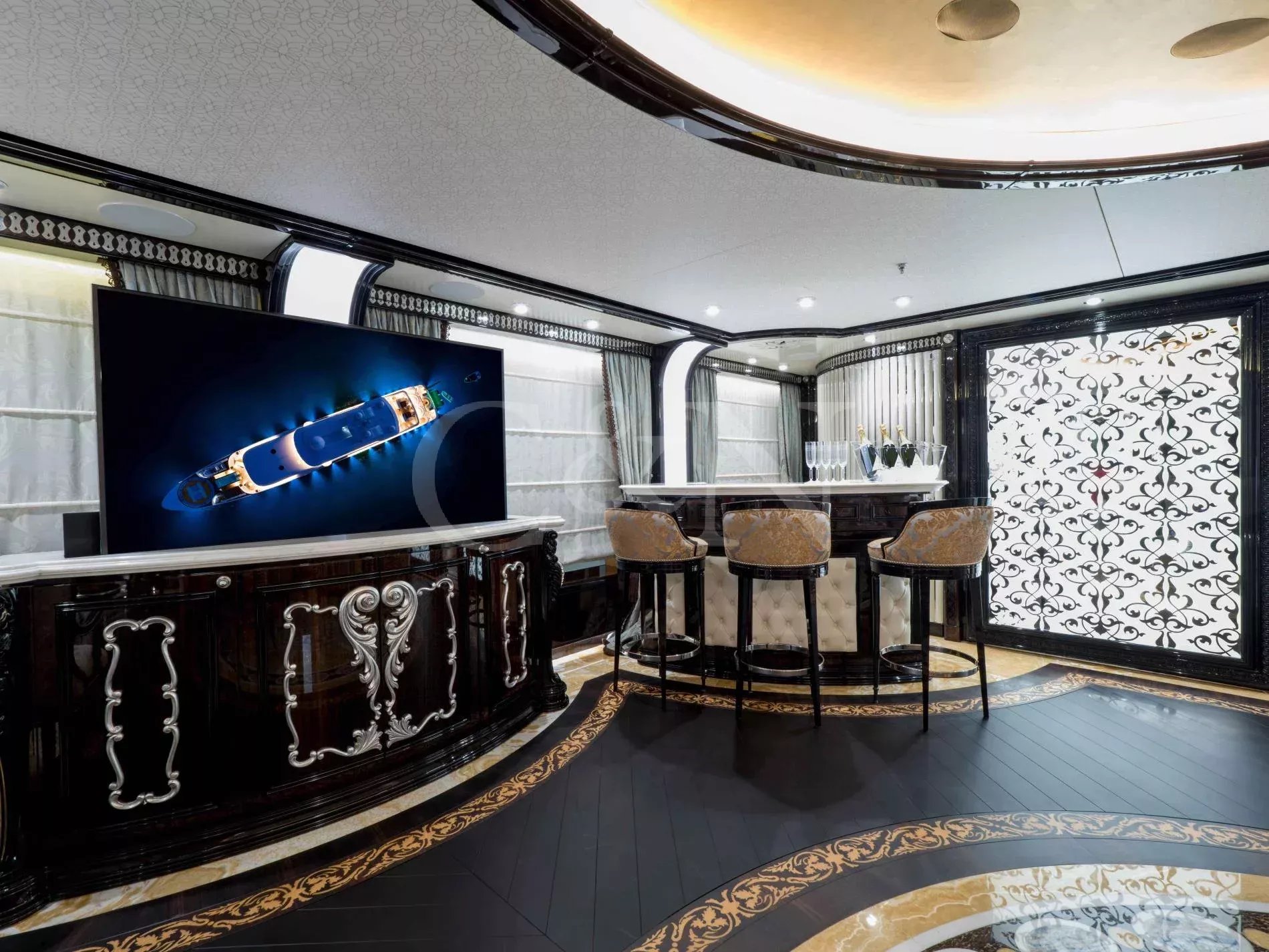 This incredibly capable ocean-going vessel has a voluminous interior, designed by Cristiano Gatto. Mixing contemporary exterior styling with a more classic interior, Elements’ decor features precious marbles, rich fabrics, hand-tufted carpets and intricately adorned ceilings, with many further details accentuating the elegance of each room, including gold, silver and mother of pearl inlays.