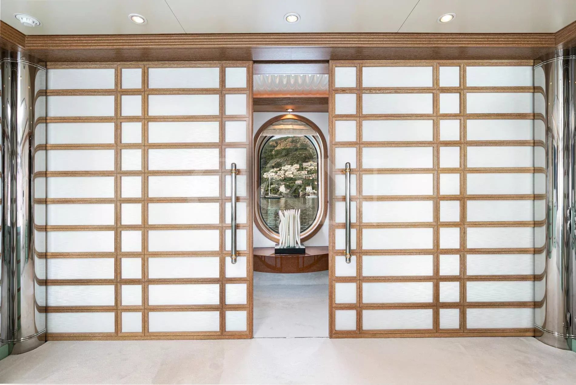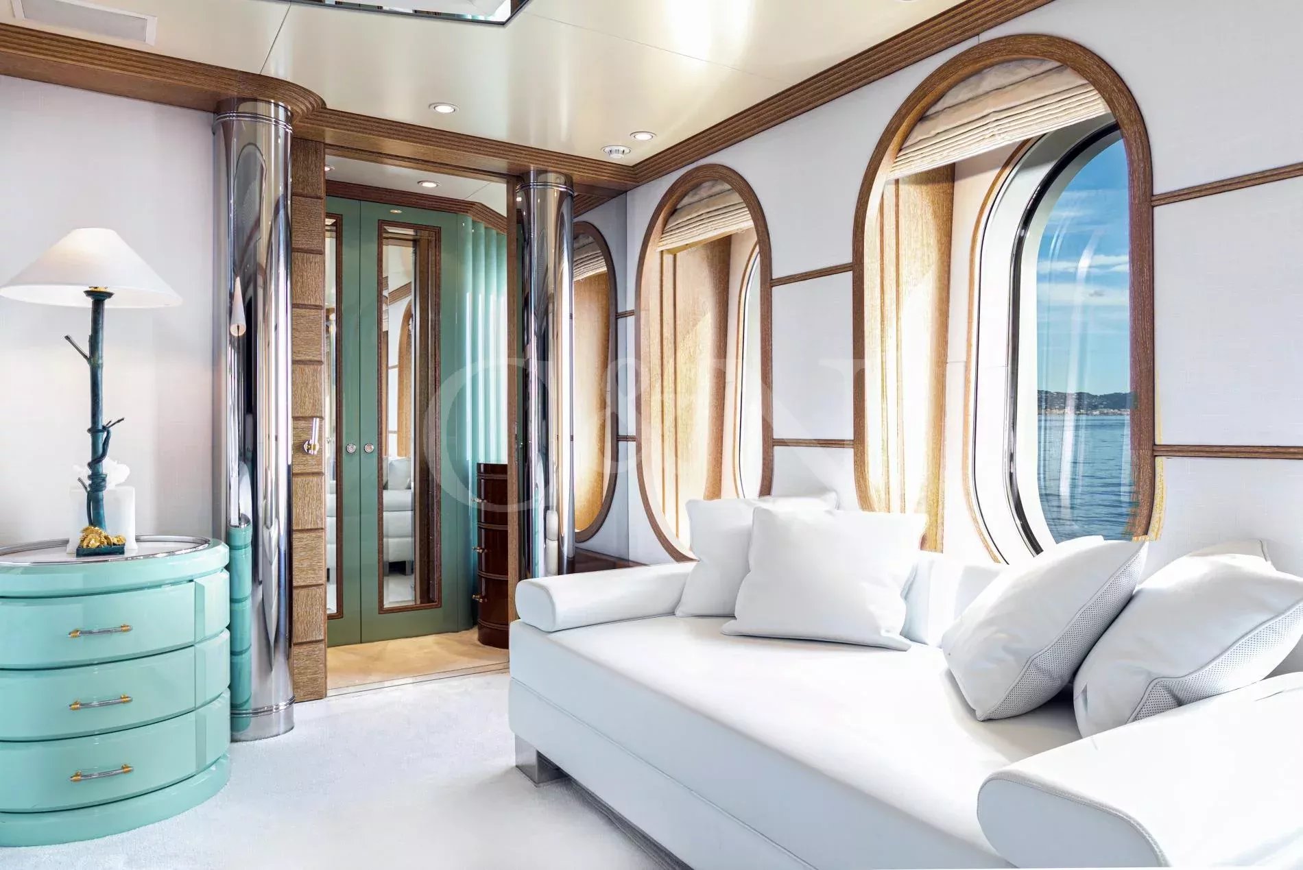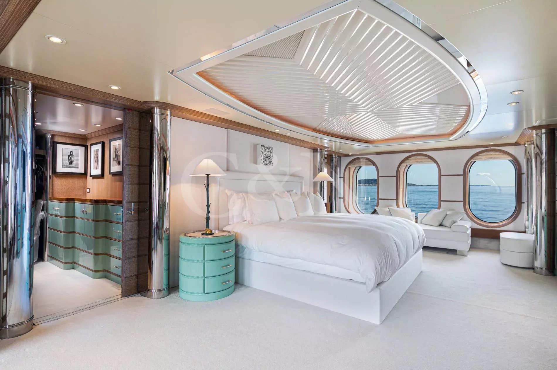 Her ingenious and unique design - the work of the world renowned Terence Disdale - is the result of his many years of experience and clear understanding of what the owner required. With accommodation for 14 guests in six en suite cabins, catered for by up to 14 crew, she has all the amenities that one would find on a much larger yacht, including a touch-and-go helipad, two large custom tenders of 9m and 6m respectively, a full-width owner’s stateroom with an en suite observation lounge and office with daybed, offering panoramic views forward. Four most generous guest cabins aft and a smaller fifth twin cabin forward, ideal for children or staff and could also be used as a gym.