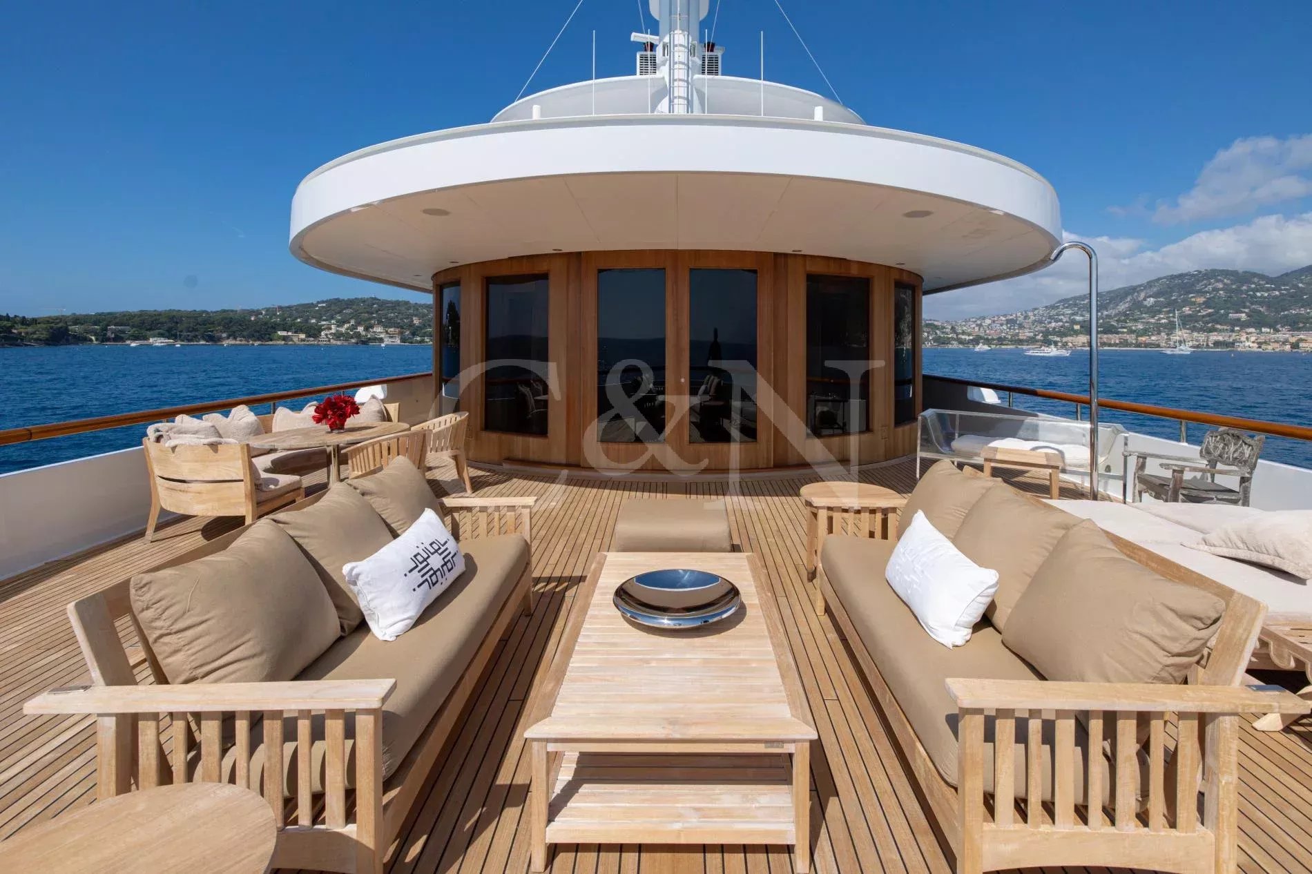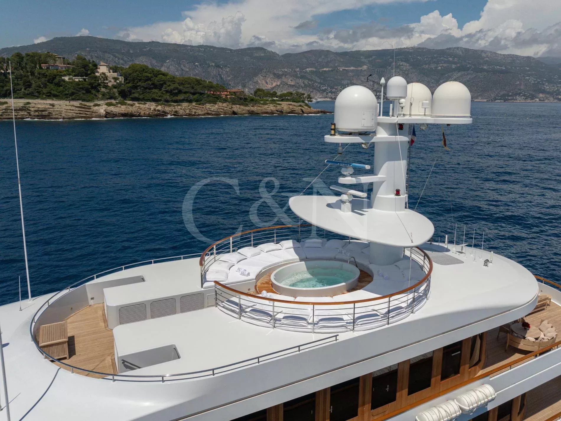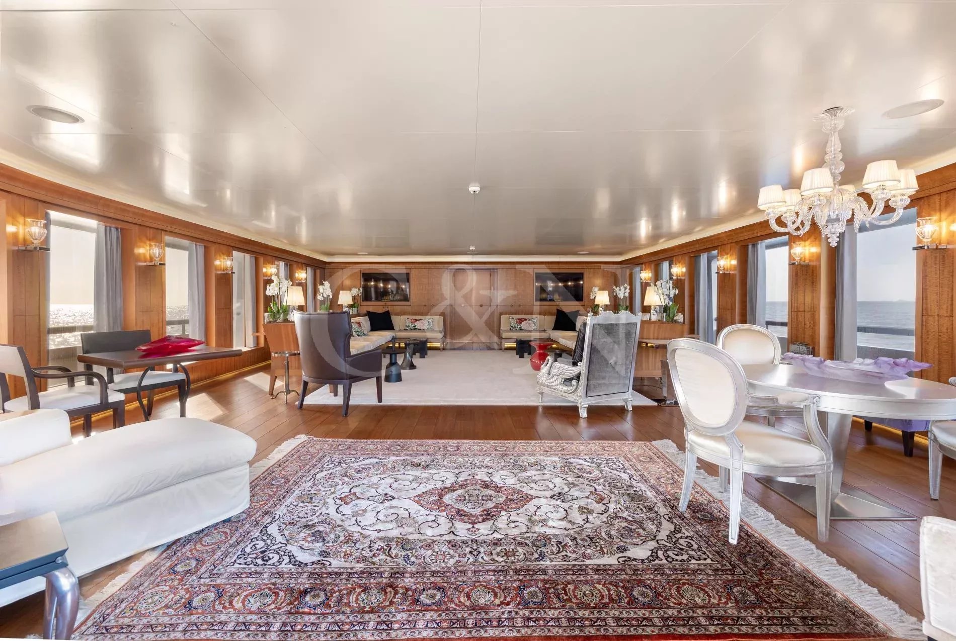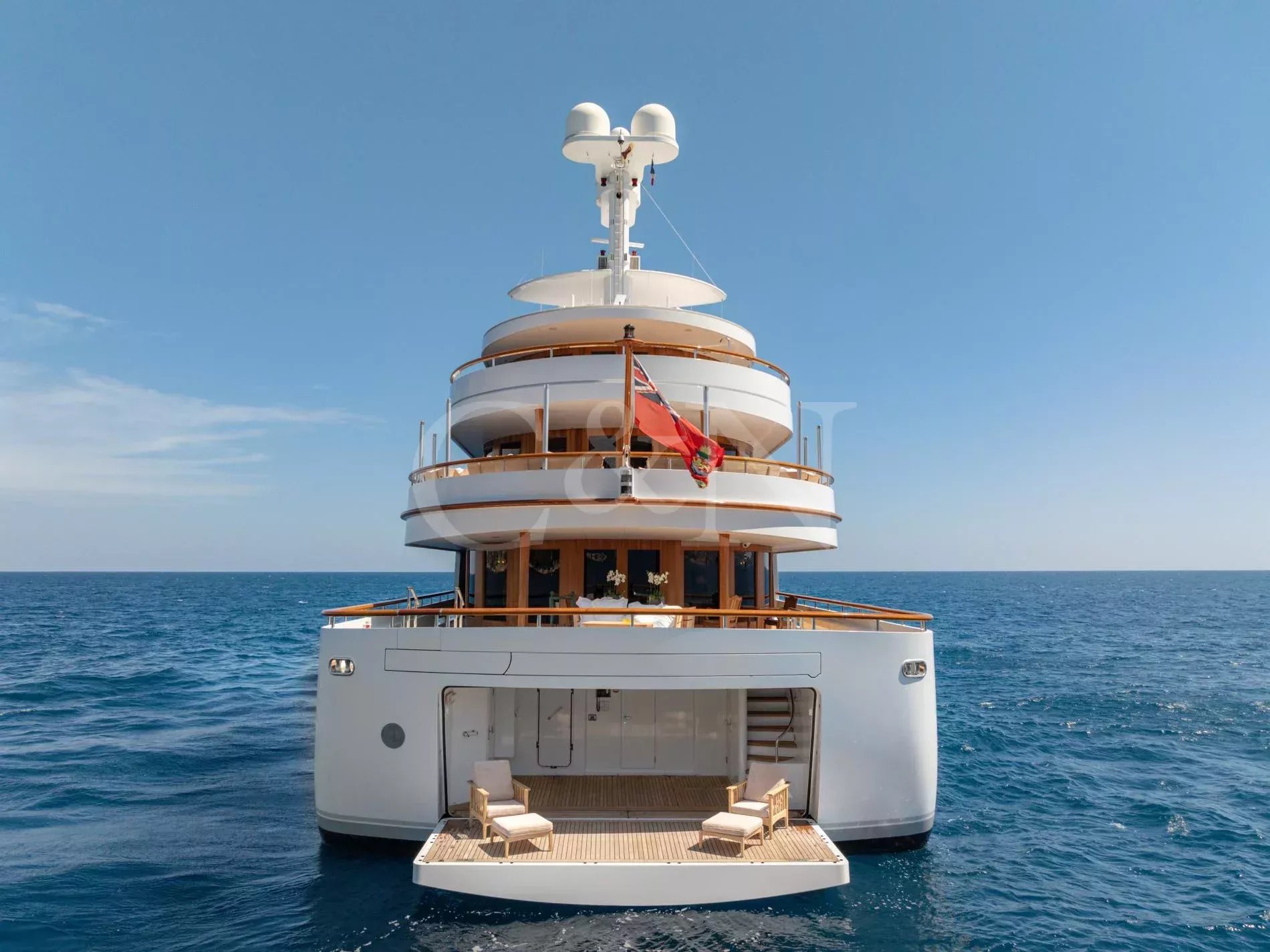 At 65m Wedge Too was a fully custom project designed by the renowned French designer Philippe Starck. She was built at the original DeVries Feadship facility in Alsmeer, Holland to the highest standards and to ABS class. Wedge Too has never chartered and has been kept purely private with little use, totalling a mere 4500 hrs on her main engines.She offers accommodation for up to 18 guests in 9 cabins and 21 crew.The Owner's deck situated above the main deck, offers a full Owner’s suite forward with two double bed cabins, three bathrooms, extensive walk-in wardrobes, a pantry, guest powder room and an elevator to all decks. A fully private forward veranda with direct access from the Owner's main cabin and an Owner's saloon aft leading to the spacious Owner's aft deck.The Wheelhouse deck above has a spacious wheelhouse with office, a large ensuite captain’s cabin, a guest pantry, a guest powder room, and a spacious guest saloon with open aft deck and full walk arounds decks.The sun deck is totally private, offering an oval pool surrounded by sunbathing pads for 20 people in comfort and a 360° view.The main deck forward boast’s three ensuite VIP cabins, one of which is full width. All are totally private with large windows in the ship’s side. The main dining room, with seating in comfort for 16 guests at the large centrally located square table, with adjacent tables for 2 for a further 20 people, is full width featuring an adjacent pantry, main galley and two guest powder rooms. Fully aft on this deck is the main guest saloon which offers spectacular views through full height windows throughout. The main deck aft is spacious and offers direct access to the covered aft peak and swimming platform.The lower deck offers another 4 ensuite guest cabins, aft peak with guest powder room and direct access to the swimming platform as well as a large tender garage.Forward of the mid-ships engine room are the crew cabins, spacious crew mess and small crew galley.The main ship's laundry, cool room and freezer room are all below forward on the Tank Deck.