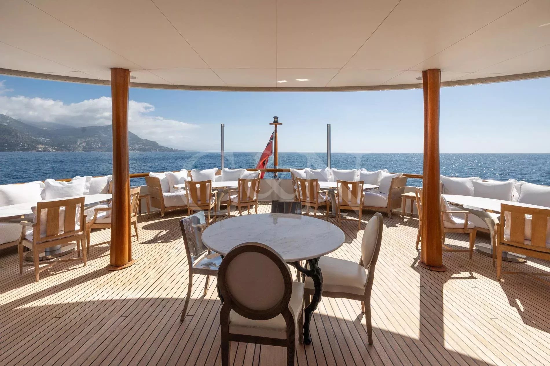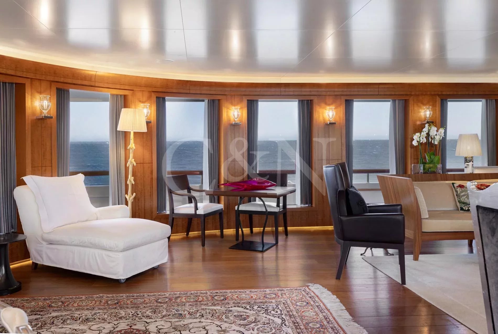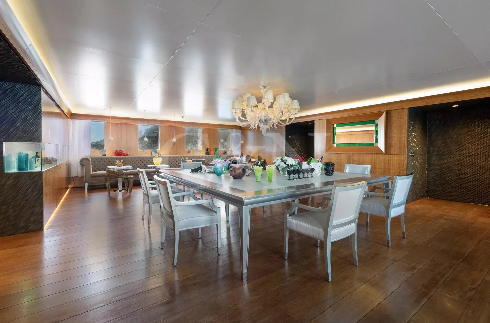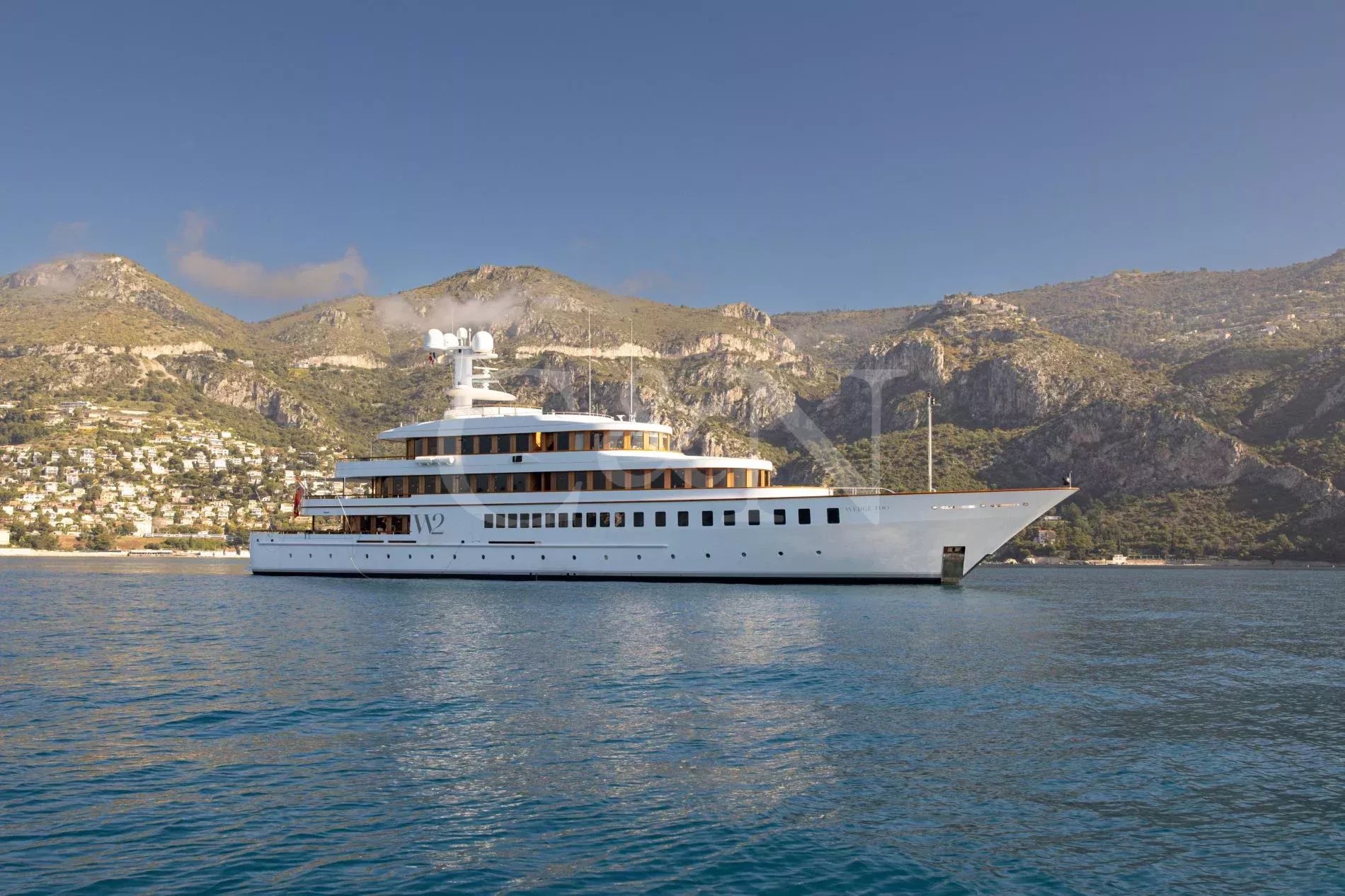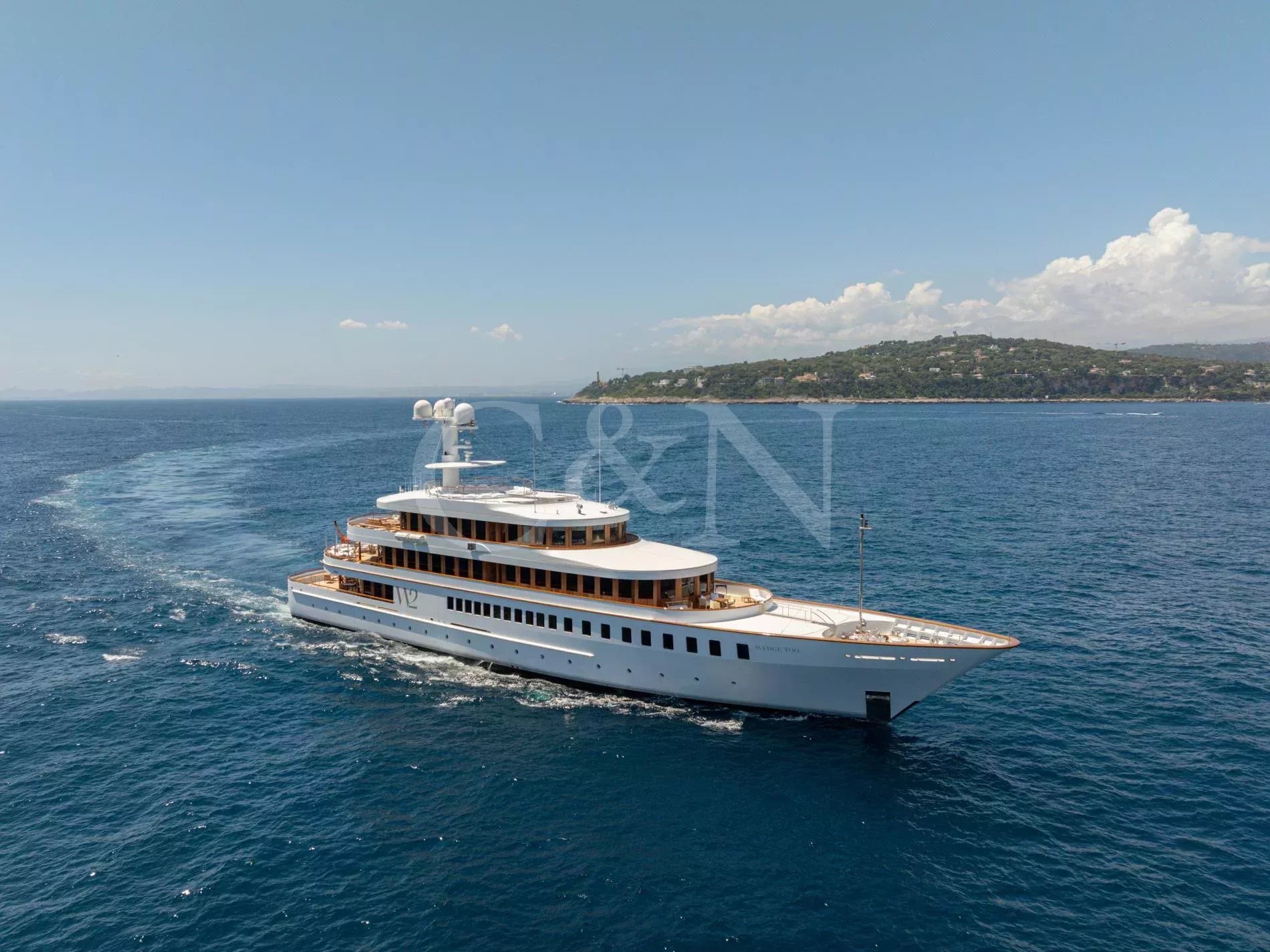 At 65m Wedge Too was a fully custom project designed by the renowned French designer Philippe Starck. She was built at the original DeVries Feadship facility in Alsmeer, Holland to the highest standards and to ABS class. Wedge Too has never chartered and has been kept purely private with little use, totalling a mere 4500 hrs on her main engines.She offers accommodation for up to 18 guests in 9 cabins and 21 crew.The Owner's deck situated above the main deck, offers a full Owner’s suite forward with two double bed cabins, three bathrooms, extensive walk-in wardrobes, a pantry, guest powder room and an elevator to all decks. A fully private forward veranda with direct access from the Owner's main cabin and an Owner's saloon aft leading to the spacious Owner's aft deck.The Wheelhouse deck above has a spacious wheelhouse with office, a large ensuite captain’s cabin, a guest pantry, a guest powder room, and a spacious guest saloon with open aft deck and full walk arounds decks.The sun deck is totally private, offering an oval pool surrounded by sunbathing pads for 20 people in comfort and a 360° view.The main deck forward boast’s three ensuite VIP cabins, one of which is full width. All are totally private with large windows in the ship’s side. The main dining room, with seating in comfort for 16 guests at the large centrally located square table, with adjacent tables for 2 for a further 20 people, is full width featuring an adjacent pantry, main galley and two guest powder rooms. Fully aft on this deck is the main guest saloon which offers spectacular views through full height windows throughout. The main deck aft is spacious and offers direct access to the covered aft peak and swimming platform.The lower deck offers another 4 ensuite guest cabins, aft peak with guest powder room and direct access to the swimming platform as well as a large tender garage.Forward of the mid-ships engine room are the crew cabins, spacious crew mess and small crew galley.The main ship's laundry, cool room and freezer room are all below forward on the Tank Deck.