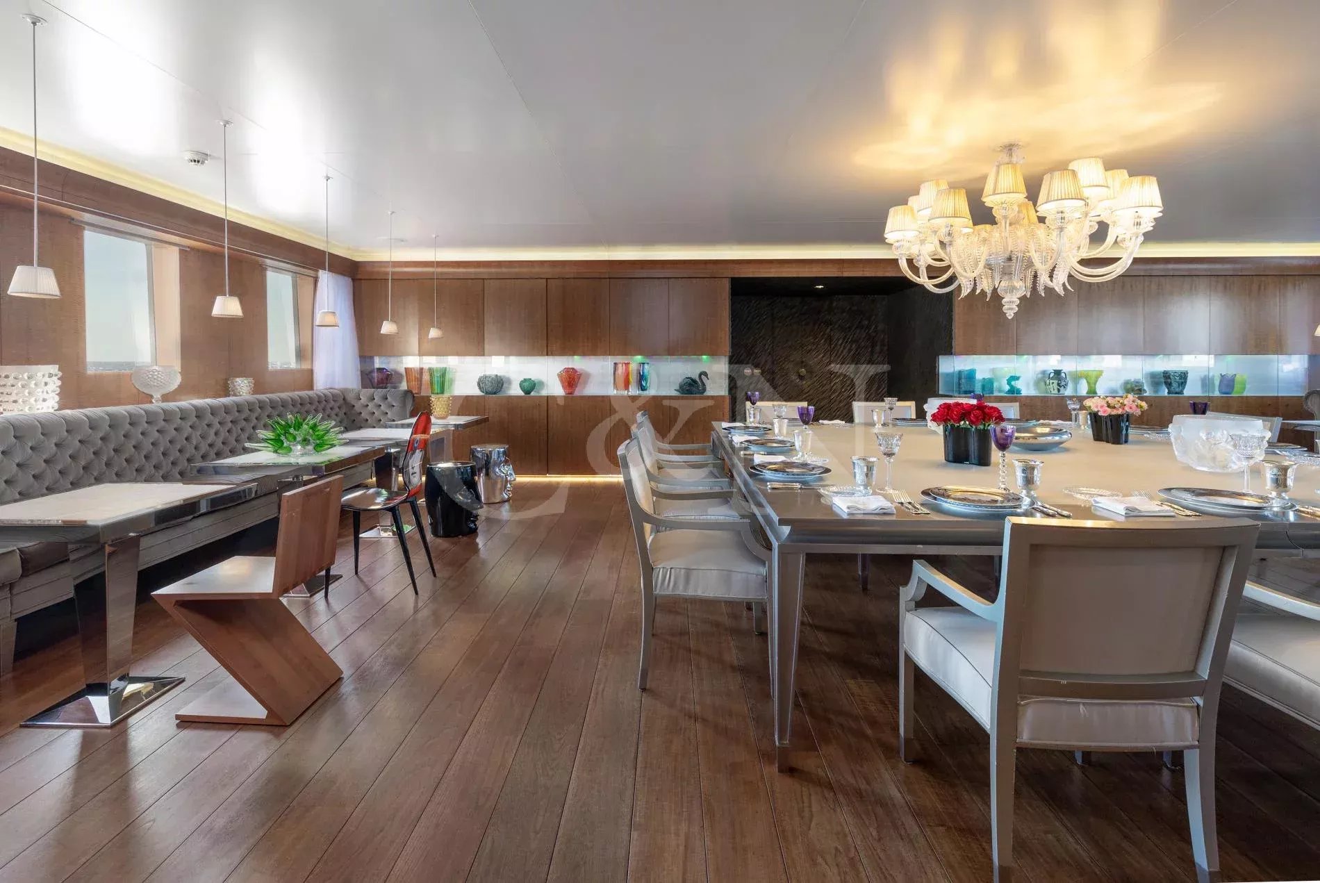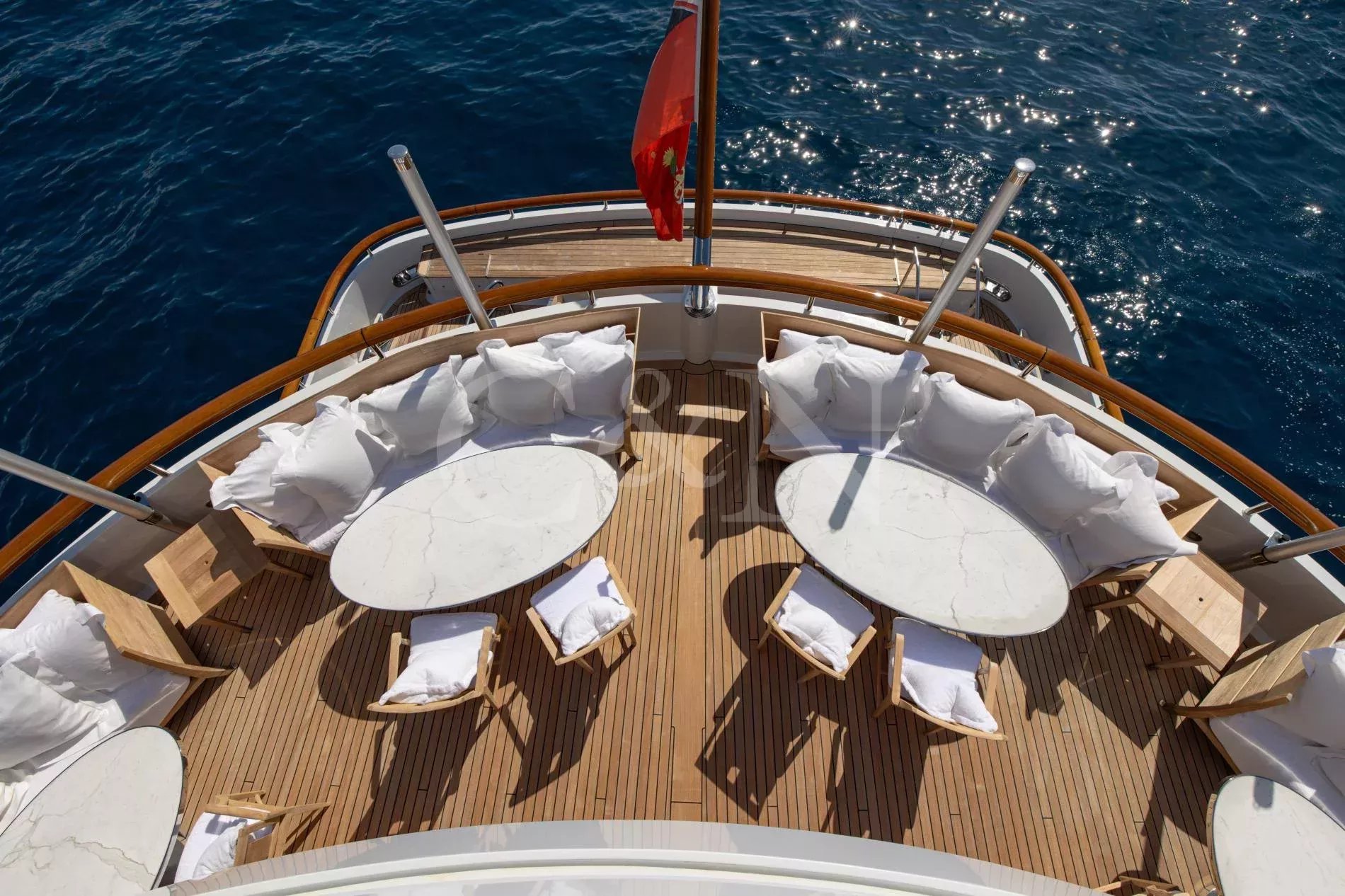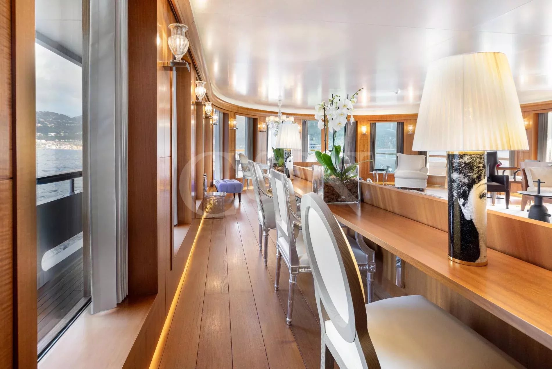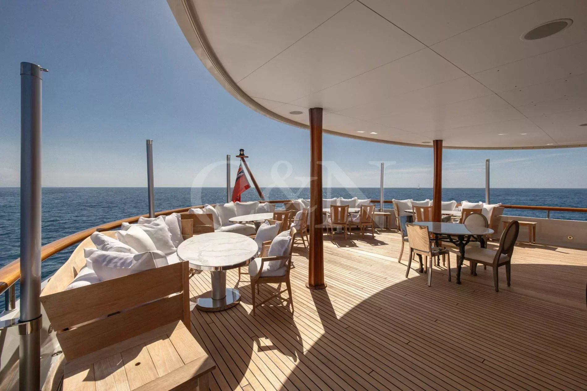 At 65m Wedge Too was a fully custom project designed by the renowned French designer Philippe Starck. She was built at the original DeVries Feadship facility in Alsmeer, Holland to the highest standards and to ABS class. Wedge Too has never chartered and has been kept purely private with little use, totalling a mere 4500 hrs on her main engines.She offers accommodation for up to 18 guests in 9 cabins and 21 crew.The Owner's deck situated above the main deck, offers a full Owner’s suite forward with two double bed cabins, three bathrooms, extensive walk-in wardrobes, a pantry, guest powder room and an elevator to all decks. A fully private forward veranda with direct access from the Owner's main cabin and an Owner's saloon aft leading to the spacious Owner's aft deck.The Wheelhouse deck above has a spacious wheelhouse with office, a large ensuite captain’s cabin, a guest pantry, a guest powder room, and a spacious guest saloon with open aft deck and full walk arounds decks.The sun deck is totally private, offering an oval pool surrounded by sunbathing pads for 20 people in comfort and a 360° view.The main deck forward boast’s three ensuite VIP cabins, one of which is full width. All are totally private with large windows in the ship’s side. The main dining room, with seating in comfort for 16 guests at the large centrally located square table, with adjacent tables for 2 for a further 20 people, is full width featuring an adjacent pantry, main galley and two guest powder rooms. Fully aft on this deck is the main guest saloon which offers spectacular views through full height windows throughout. The main deck aft is spacious and offers direct access to the covered aft peak and swimming platform.The lower deck offers another 4 ensuite guest cabins, aft peak with guest powder room and direct access to the swimming platform as well as a large tender garage.Forward of the mid-ships engine room are the crew cabins, spacious crew mess and small crew galley.The main ship's laundry, cool room and freezer room are all below forward on the Tank Deck.