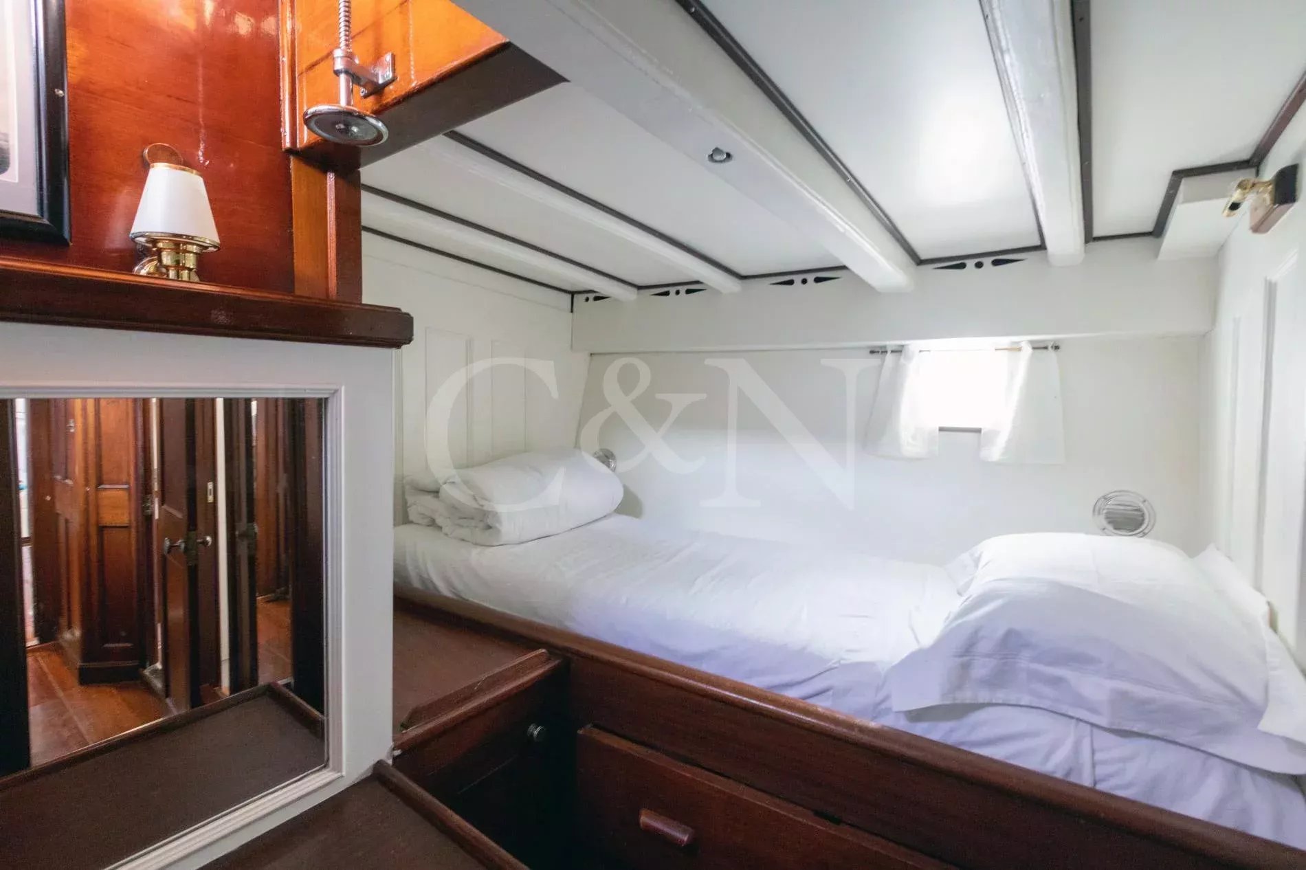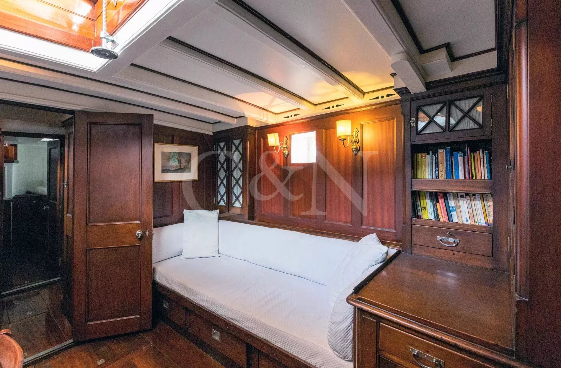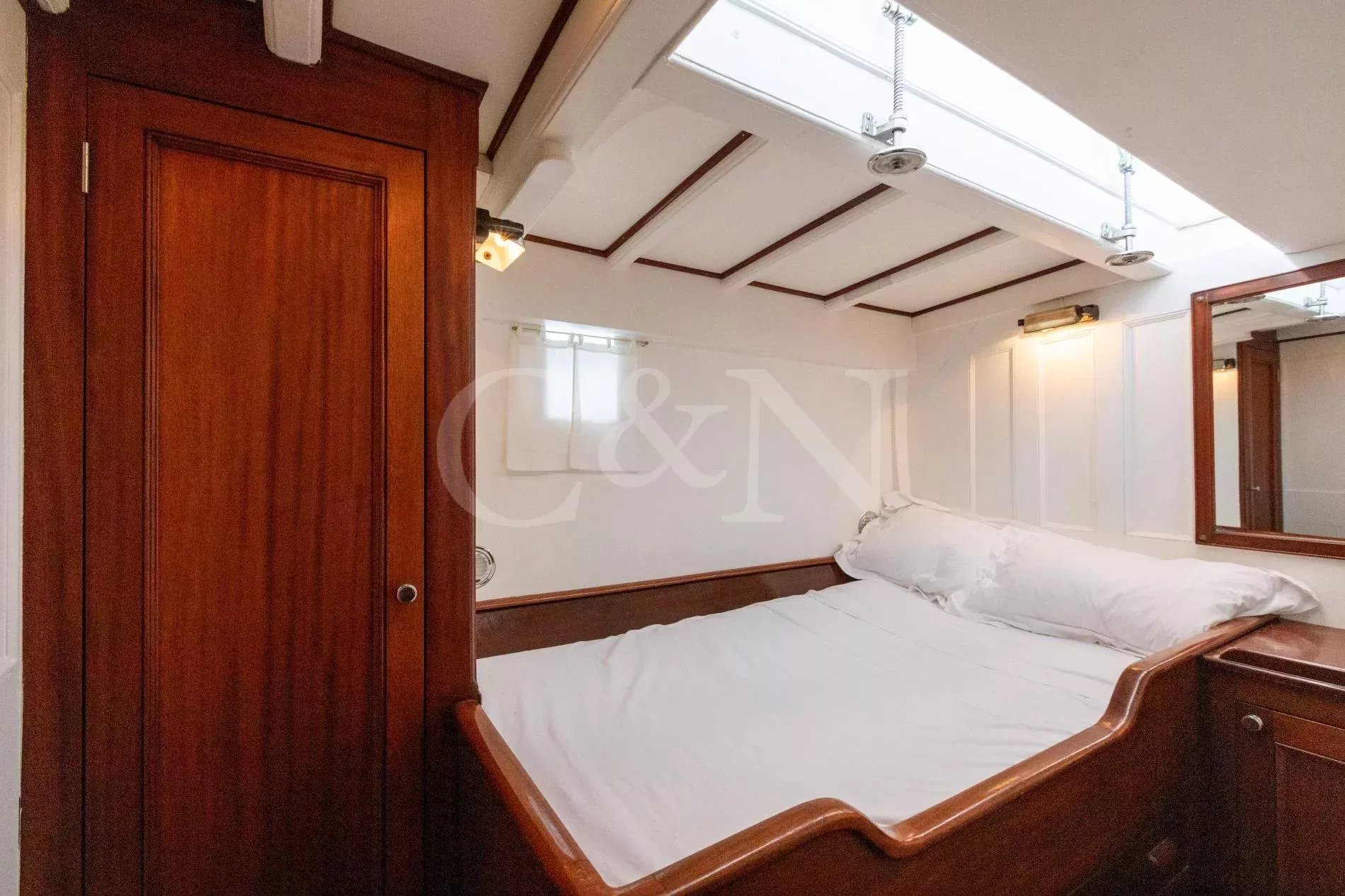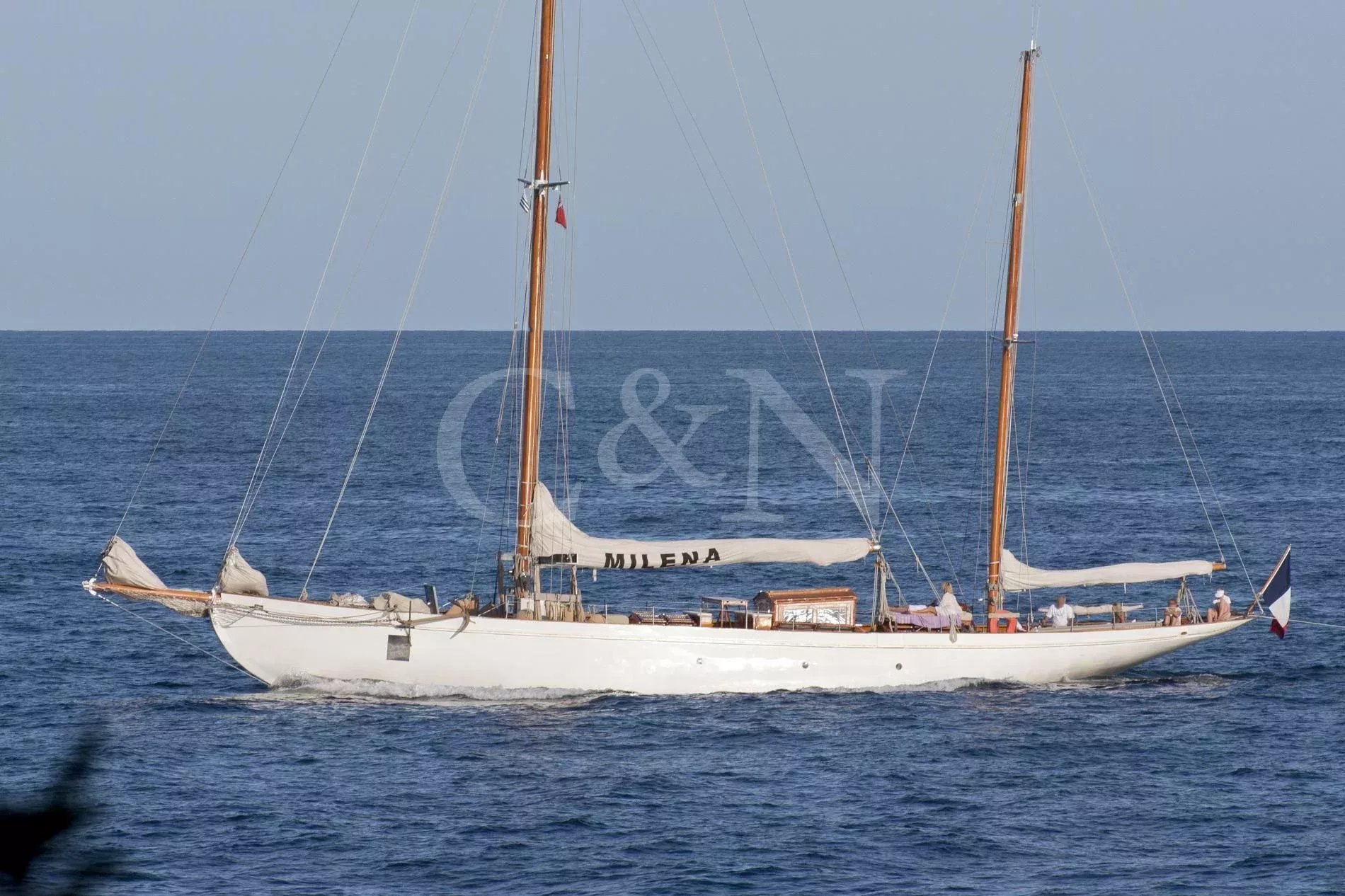 Milena is a 1928 Bermudian ketch, designed by Fred Shepherd and built by the White Brothers in the UK. Milena boasts elegant lines, a British build pedigree, and a fast, seakindly hull that will deliver comfortable cruising.This 27m sailing yacht was built under Lloyd’s supervision and awarded the highest classification available to a wooden yacht at the time. And Milena’s history is well documented – commissioned by Royal London Yacht Club member Rhodes H. Cobb, and originally named Pamela, she was sold in 1930 to a friend of Cobb’s son, the Lt. Commander Glen Kidston, R.N. Rtd. Kidston had been a fearless naval officer during the First World War and raced sports cars for Bentley during the late 1920s. He was also a record-breaking aviator.Milena spent the following years at Dun Laoghaire in Ireland under the ownership of a Dublin-based building contractor named John Good, and an entry in the 1946 supplement to the 1939 edition of Lloyd’s Register of Yachts details her as then owned by Lord Glentanar. By the mid 1950s the yacht had been relocated for a life in the sun, enjoying a series of Italian owners and sailing in the Western Mediterranean. In 1969 records show that ownership transferred to an Antibes-based professional yachtsman named Barry Piggin, who berthed Milena in San Remo. Her present owner purchased her in 1974 and has spent the last 50 years cruising with family and friends, competing in occasional classic regattas, and Milena has been available for charter. This is a yacht that enchants all who step aboard, and the opportunity to purchase her in a ready-to-cruise condition. A 2007 refit has restored the yacht to her original glory, and she has been cared for with great love and devotion by her current owner. A traditional interior resides within, with wood panelling and white-painted ceilings. She is every bit a ‘yachtsman’s yacht’ and ready to continue her graceful days at sea.Milena could be run by a competent couple with minimal crew, and has three cabins:A master cabin with one double bed and ensuite bathroom. A guest cabin on the starboard side with a bathroom on the port side of the corridor. A twin guest cabin forward of the saloon with upper and lower berths and ensuite bathroom.