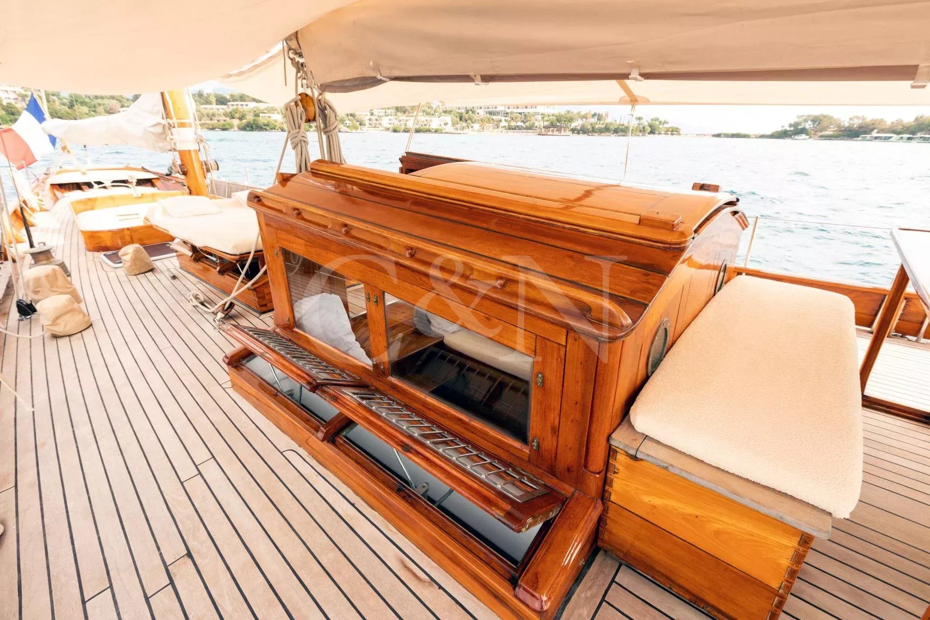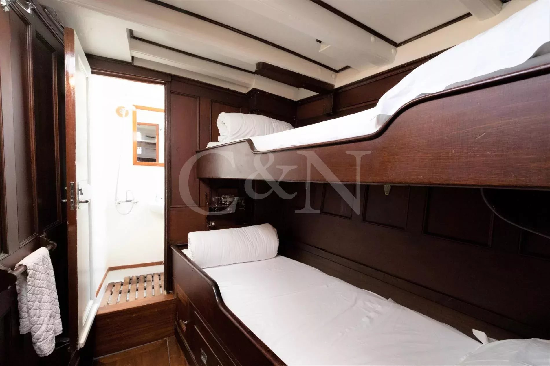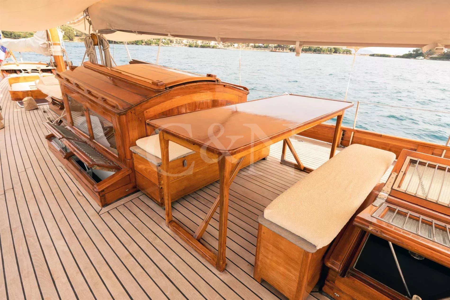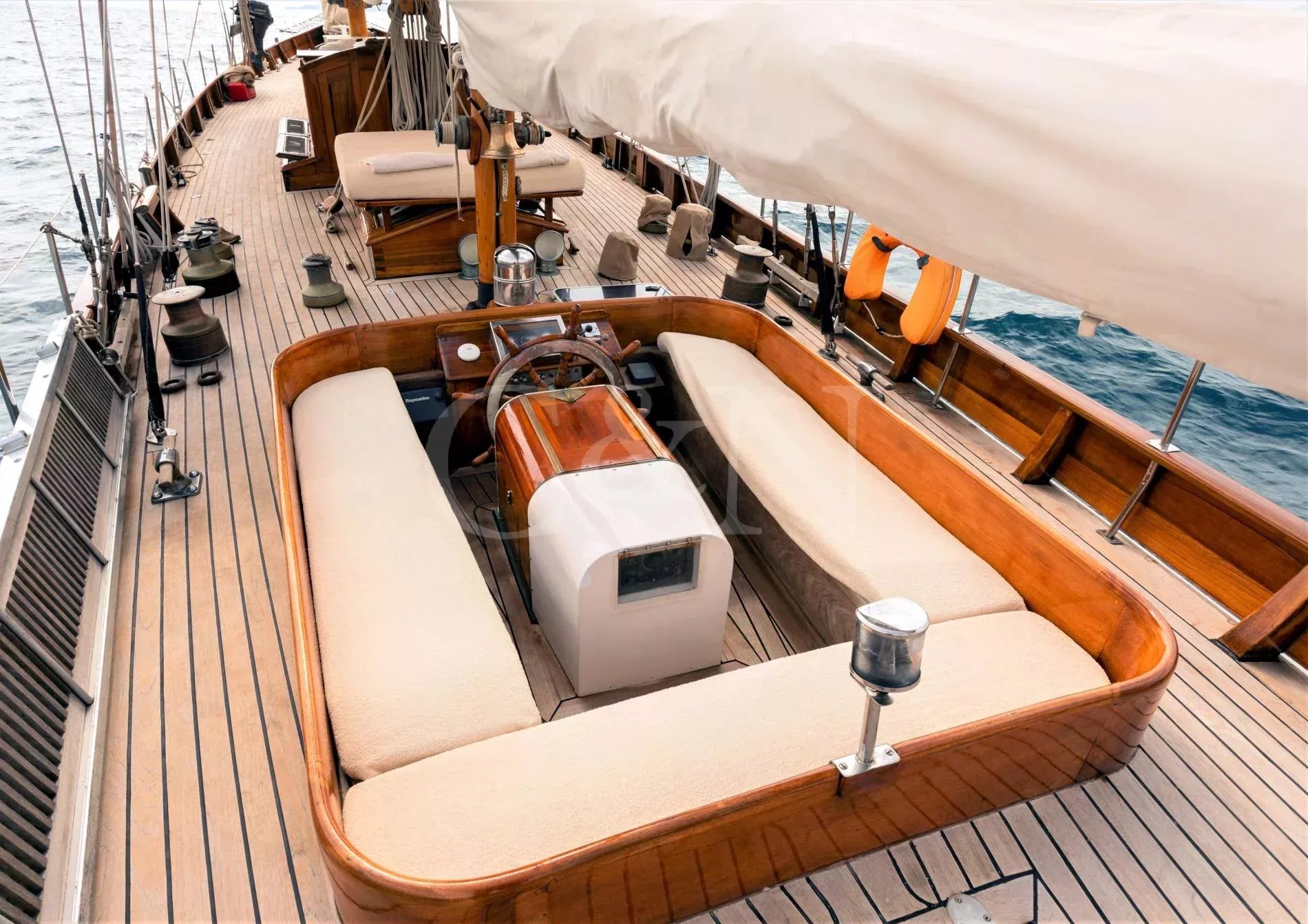 Milena is a 1928 Bermudian ketch, designed by Fred Shepherd and built by the White Brothers in the UK. Milena boasts elegant lines, a British build pedigree, and a fast, seakindly hull that will deliver comfortable cruising.This 27m sailing yacht was built under Lloyd’s supervision and awarded the highest classification available to a wooden yacht at the time. And Milena’s history is well documented – commissioned by Royal London Yacht Club member Rhodes H. Cobb, and originally named Pamela, she was sold in 1930 to a friend of Cobb’s son, the Lt. Commander Glen Kidston, R.N. Rtd. Kidston had been a fearless naval officer during the First World War and raced sports cars for Bentley during the late 1920s. He was also a record-breaking aviator.Milena spent the following years at Dun Laoghaire in Ireland under the ownership of a Dublin-based building contractor named John Good, and an entry in the 1946 supplement to the 1939 edition of Lloyd’s Register of Yachts details her as then owned by Lord Glentanar. By the mid 1950s the yacht had been relocated for a life in the sun, enjoying a series of Italian owners and sailing in the Western Mediterranean. In 1969 records show that ownership transferred to an Antibes-based professional yachtsman named Barry Piggin, who berthed Milena in San Remo. Her present owner purchased her in 1974 and has spent the last 50 years cruising with family and friends, competing in occasional classic regattas, and Milena has been available for charter. This is a yacht that enchants all who step aboard, and the opportunity to purchase her in a ready-to-cruise condition. A 2007 refit has restored the yacht to her original glory, and she has been cared for with great love and devotion by her current owner. A traditional interior resides within, with wood panelling and white-painted ceilings. She is every bit a ‘yachtsman’s yacht’ and ready to continue her graceful days at sea.Milena could be run by a competent couple with minimal crew, and has three cabins:A master cabin with one double bed and ensuite bathroom. A guest cabin on the starboard side with a bathroom on the port side of the corridor. A twin guest cabin forward of the saloon with upper and lower berths and ensuite bathroom.