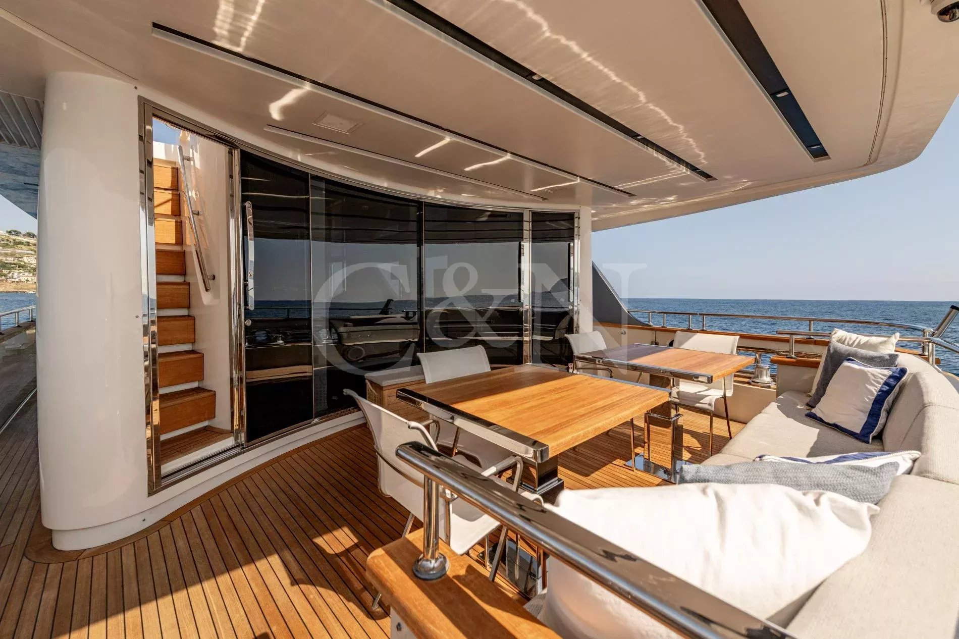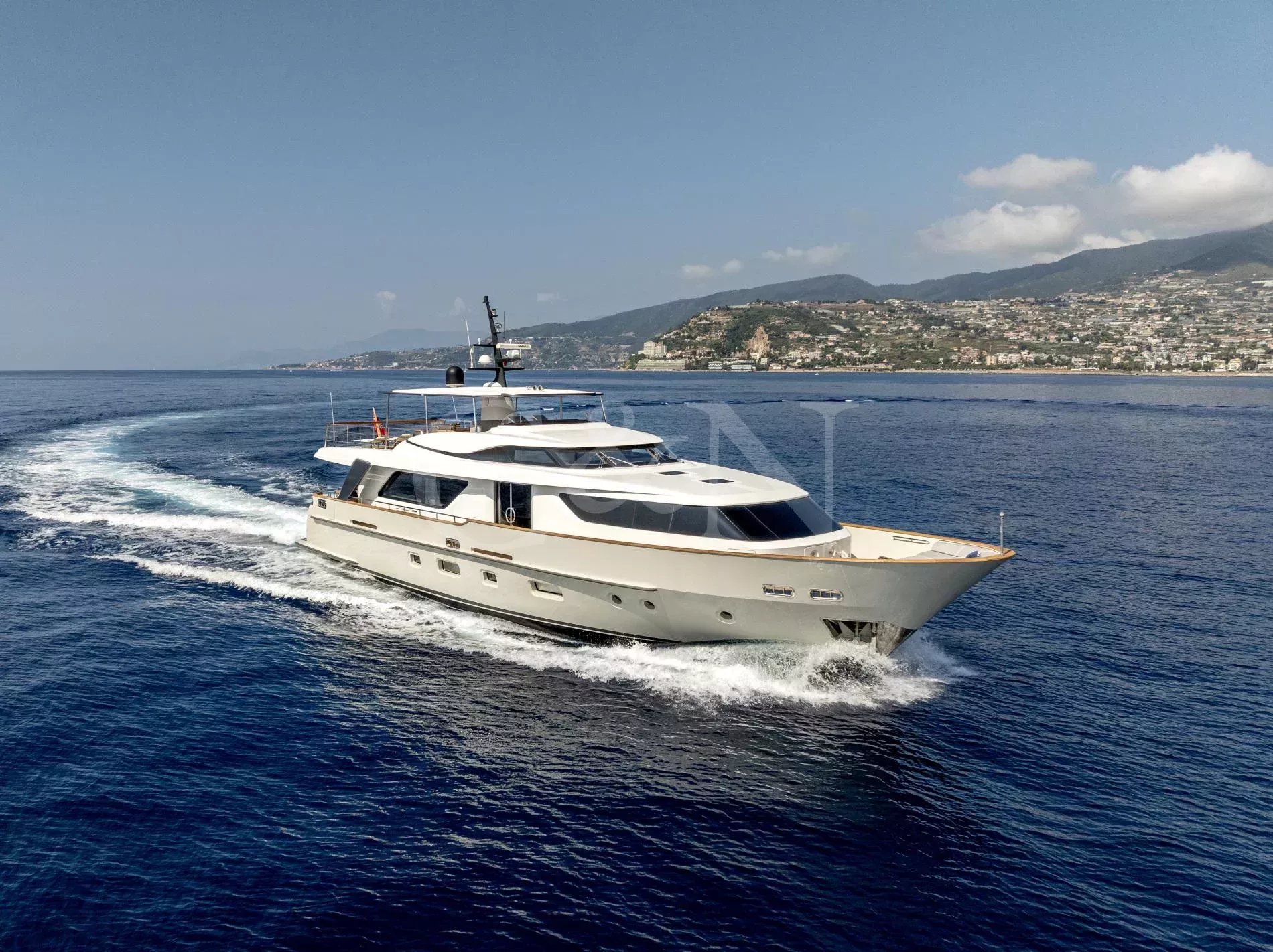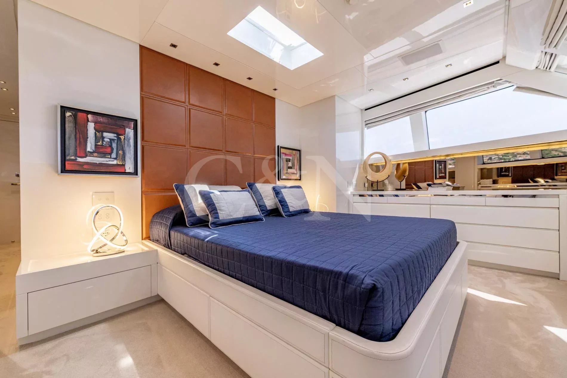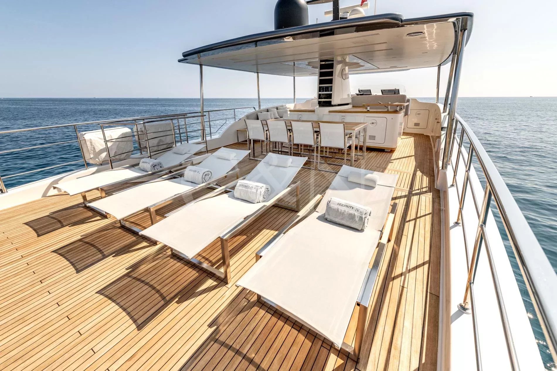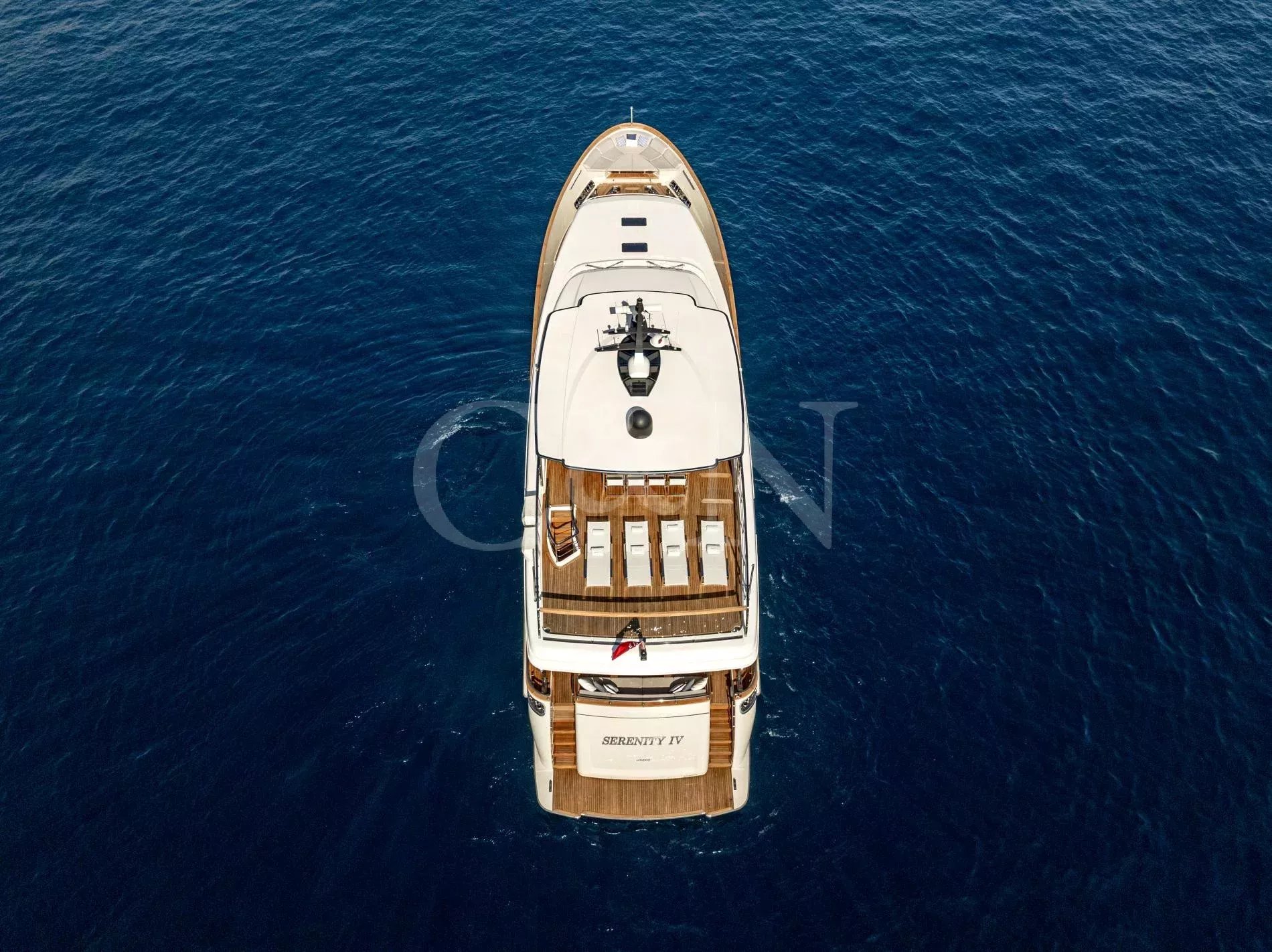 Built in 2014, the 27.6-metre Sanlorenzo SD92 motor yacht Serenity IV is a family-friendly motor yacht with timeless charisma. She has been well-maintained since she hit the water, recently undergoing an interior refit which refreshed her elegant design throughout.Serenity IV’s multi-deck structure is comprised of her main deck — with space for alfresco dining — and her flybridge deck, offering 360 ocean views and complete with a hard-top bimini shade. She also features a half-deck at the helm, providing direct access to the water. Air conditioning is installed across Serenity IV’s respectable exterior deck spaces.Her displacement hull allows Serenity IV to displace water while cruising, ensuring maximum stability and comfortable conditions underway. Serenity IV’s exterior and interior design is the work of the Italian Francesco Paszkowski Design, whose penmanship extends across 300 vessels. Underwater lights line her exterior, while at-anchor stabilisers ensure comfort when stationary.Moving inside, Serenity IV boasts a family-friendly interior layout, accommodating nine guests across five cabins, including two VIPs and a master suite which is situated on the main deck. Her open-plan salon features a large L-shaped sofa, an entertainment system and a dining table for interior dining when desired.Her Italian-style interior is characterised by neutral tones and earthy fabrics, with occasional complimentary pops of colour throughout.On the market in fantastic condition, Serenity IV has had only two owners since her launch, and has only known private use and low engine hours. She is powered by twin diesel MTU engines which give her an economical cruising speed of 9 knots and a top speed of 17 knots.With comfort, stability and versatile spaces at the forefront of her design, Serenity IV is ideal for family use. She is currently on offer with her VAT paid.