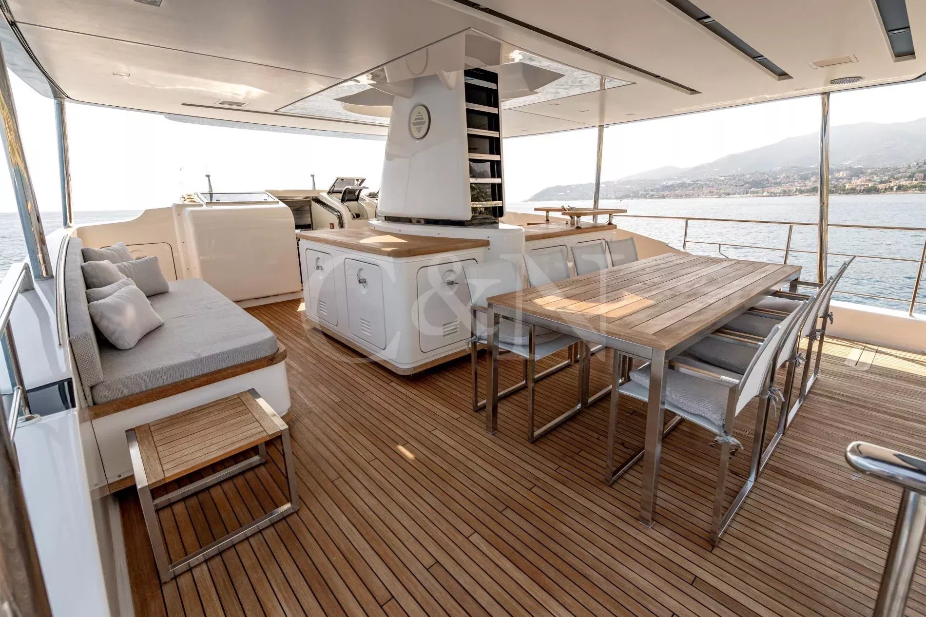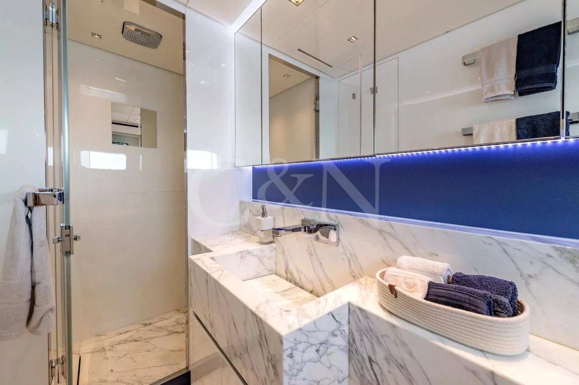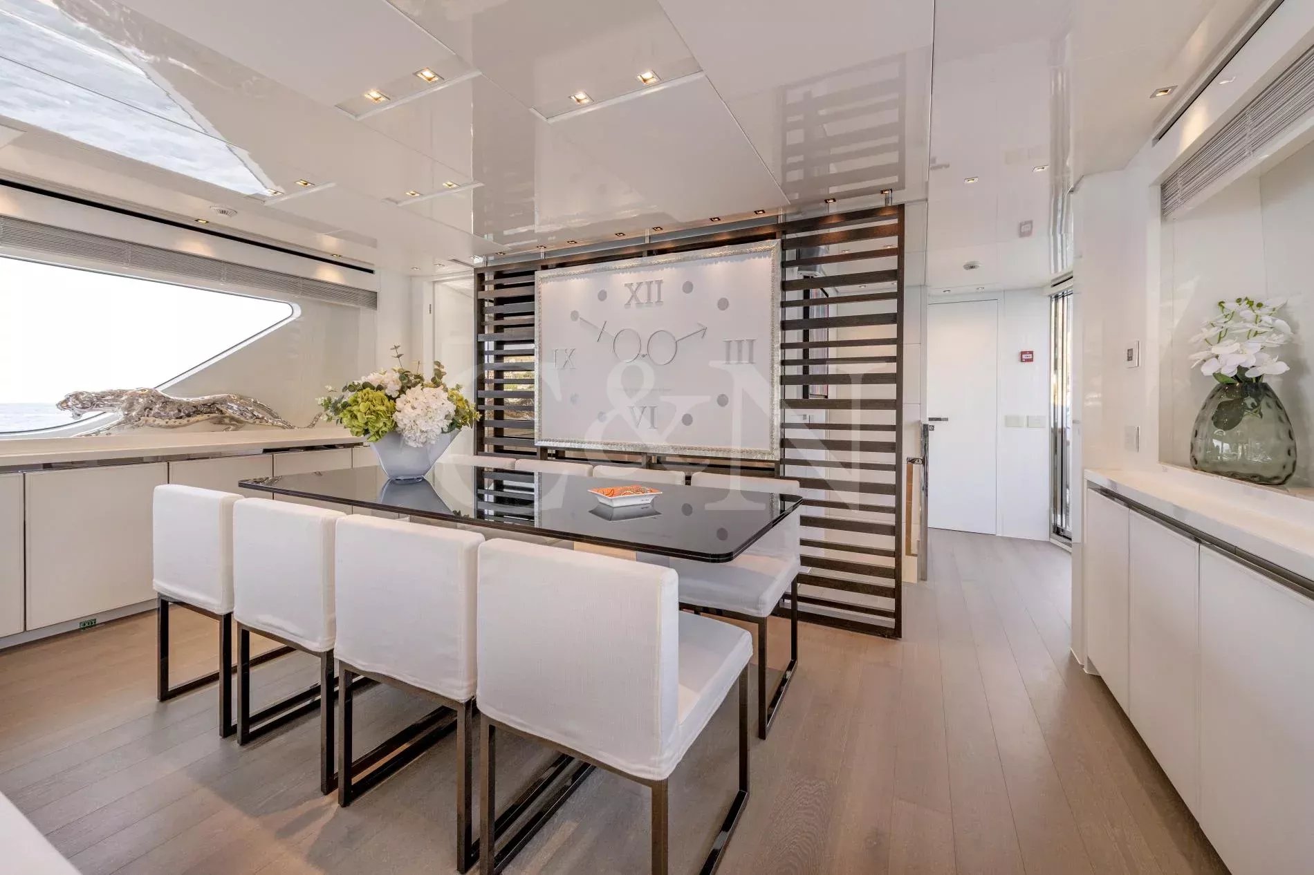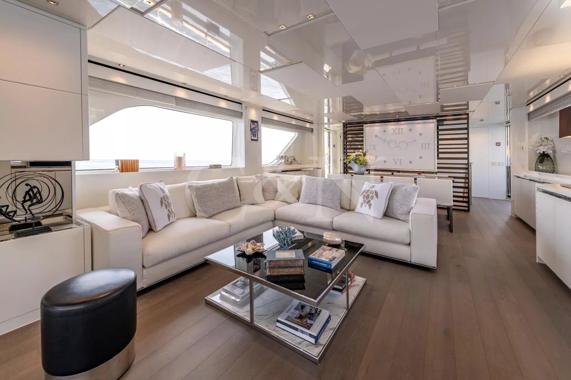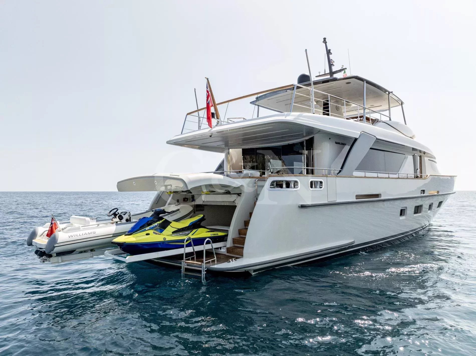 Built in 2014, the 27.6-metre Sanlorenzo SD92 motor yacht Serenity IV is a family-friendly motor yacht with timeless charisma. She has been well-maintained since she hit the water, recently undergoing an interior refit which refreshed her elegant design throughout.Serenity IV’s multi-deck structure is comprised of her main deck — with space for alfresco dining — and her flybridge deck, offering 360 ocean views and complete with a hard-top bimini shade. She also features a half-deck at the helm, providing direct access to the water. Air conditioning is installed across Serenity IV’s respectable exterior deck spaces.Her displacement hull allows Serenity IV to displace water while cruising, ensuring maximum stability and comfortable conditions underway. Serenity IV’s exterior and interior design is the work of the Italian Francesco Paszkowski Design, whose penmanship extends across 300 vessels. Underwater lights line her exterior, while at-anchor stabilisers ensure comfort when stationary.Moving inside, Serenity IV boasts a family-friendly interior layout, accommodating nine guests across five cabins, including two VIPs and a master suite which is situated on the main deck. Her open-plan salon features a large L-shaped sofa, an entertainment system and a dining table for interior dining when desired.Her Italian-style interior is characterised by neutral tones and earthy fabrics, with occasional complimentary pops of colour throughout.On the market in fantastic condition, Serenity IV has had only two owners since her launch, and has only known private use and low engine hours. She is powered by twin diesel MTU engines which give her an economical cruising speed of 9 knots and a top speed of 17 knots.With comfort, stability and versatile spaces at the forefront of her design, Serenity IV is ideal for family use. She is currently on offer with her VAT paid.