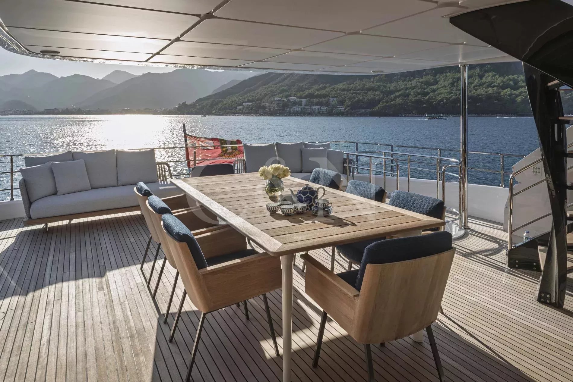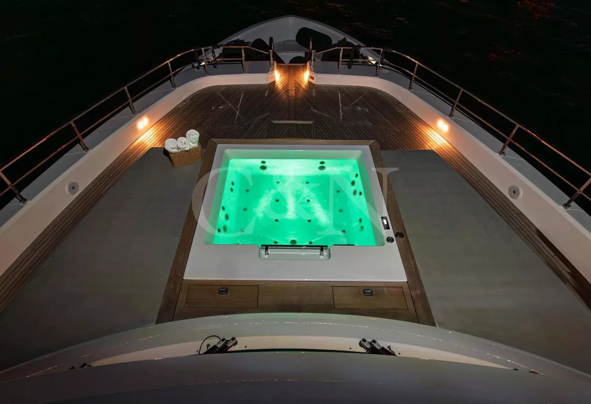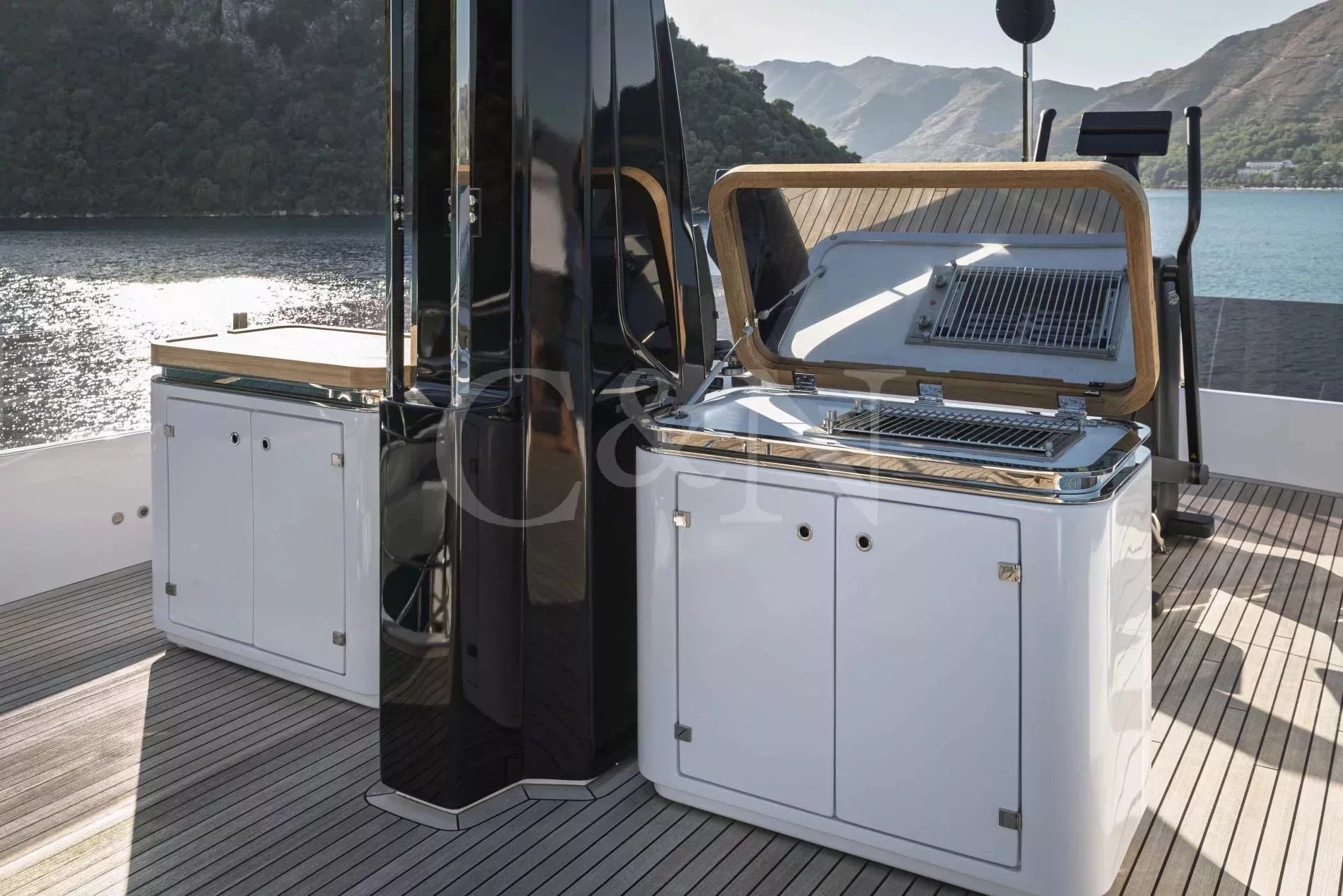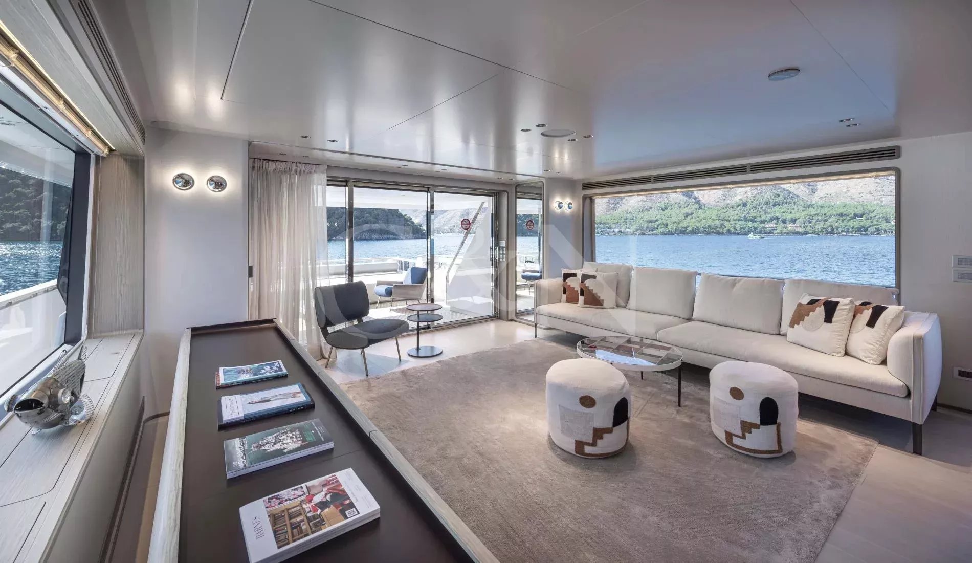 Belle Ile is a 28.43-metre semi-custom motor yacht, and the twelfth hull of the Custom Line Navetta 30 series. Belle Ile is offered for sale in pristine condition. She is one of the most attractive yachts in her series, equipped with all of the top options and boasting a very impressive interior volume for a 90-foot yacht.This tri-deck was built for an experienced Owner, with many typical large-yacht features such as a full study, an on-deck Jacuzzi, brand new techno gym equipment on the sundeck, and an advanced entertainment system.Belle Ile is decorated with a modern and stylish interior, featuring a calming, neutral colour palette, wooden accents and pops of blue.The spacious main deck features a capacious main salon with spacious sofa seating and a formal interior dining setup. Her Owner’s suite is situated forward on the main deck. On the upper deck, the beautiful upper salon offers guests elevated ocean views and a relaxing place to unwind and entertain.Belle Ile can currently accommodate eight guests across her Owner's cabin and three lower-deck guest cabins. She boasts a full-beam Owner’s suite on the main deck, complete with large windows and a his and hers bathroom. Belle Ile has a customised layout on the lower deck, currently configured as two double cabins, one twin cabin and a separate study room, all with their own en suite bathrooms. The study room could easily be converted back to the fifth guest cabin under her new Ownership.Belle Ile is a trideck motor yacht, boasting a main deck, upper deck and a sundeck. On the main deck, a comfortable sofa seating area situated aft provides the perfect space to enjoy a morning coffee or an afternoon drink in the shade. Her upper deck features a formal outdoor dining setup, ideal for al fresco dining with a view, as well as her forward on-deck Jacuzzi, perfectly situated for soaking up beautiful views.A standout feature of Belle Ile’s exterior is the brand-new techno gym equipment situated on her beautiful sundeck, as well as a barbeque and sofa seating with panoramic ocean views. Her exterior is well-covered, with a partially shaded main deck and upper deck a removable Bimini shade on her sundeck.Belle Ile features an aft tender garage to house her 460 Williams tender. She also boasts many advanced options such as a high-quality entertainment system, at-anchor stabilisers, and air conditioning throughout.Belle Ile is one of the most attractive 30-metre yachts available on the market, with an attractive price, great volume and in turnkey condition.