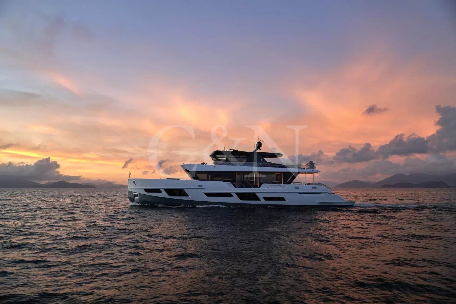 CLX96 is the largest series yacht CL Yachts has launched as of today. She comes with 2-year warranty on components and equipment and 10-year warranty on the hull. With a rugged and unique profile that sets her apart, CLX96 is a clean-sheet design for CL Yachts, penned by international designer Jozeph Forakis, reinventing the luxury motor yacht to offer complete freedom and versatility without compromising on style and performance. A multiple award-winning yacht, CLX96 has won the International Yacht and Aviation Award, Good Design Award, as well as Bronze A'Design Award. Her striking exterior design features two decks, with a reverse-angle pilothouse, and iconic ‘wing-like’ flybridge bulwark. Blurring the lines between interior and exterior, natural light floods through expansive windows, offering uninterrupted views of the surroundings. Large, tri-fold doors at midship transform the dining area into alfresco when desired. Complemented by the large main salon, to create a great ambience for socializing.Below deck, luxurious and comfortable accommodation includes four cabins. Combining natural and high-tech materials for a modern aesthetic, they are designed to hint at the thrill of exploration. CLX96 features a RINA-classified FRP composite hull. Powered by twin Caterpillar C32 engines, equipped with both gyro and fin, she offers the ultimate comfort at sea. Additionally, she has a fold-down davit that can take up to 800 kg on the swimming platform. She offers a top speed of 25 knots (at full load) and cruising speed of 22 knots.She is a great opportunity for a buyer who is looking for a brand new turn-key attractive yacht to enjoy this summer with comprehensive shipyard warranty. *C&N sale territory excludes the USA, South America and Canada.