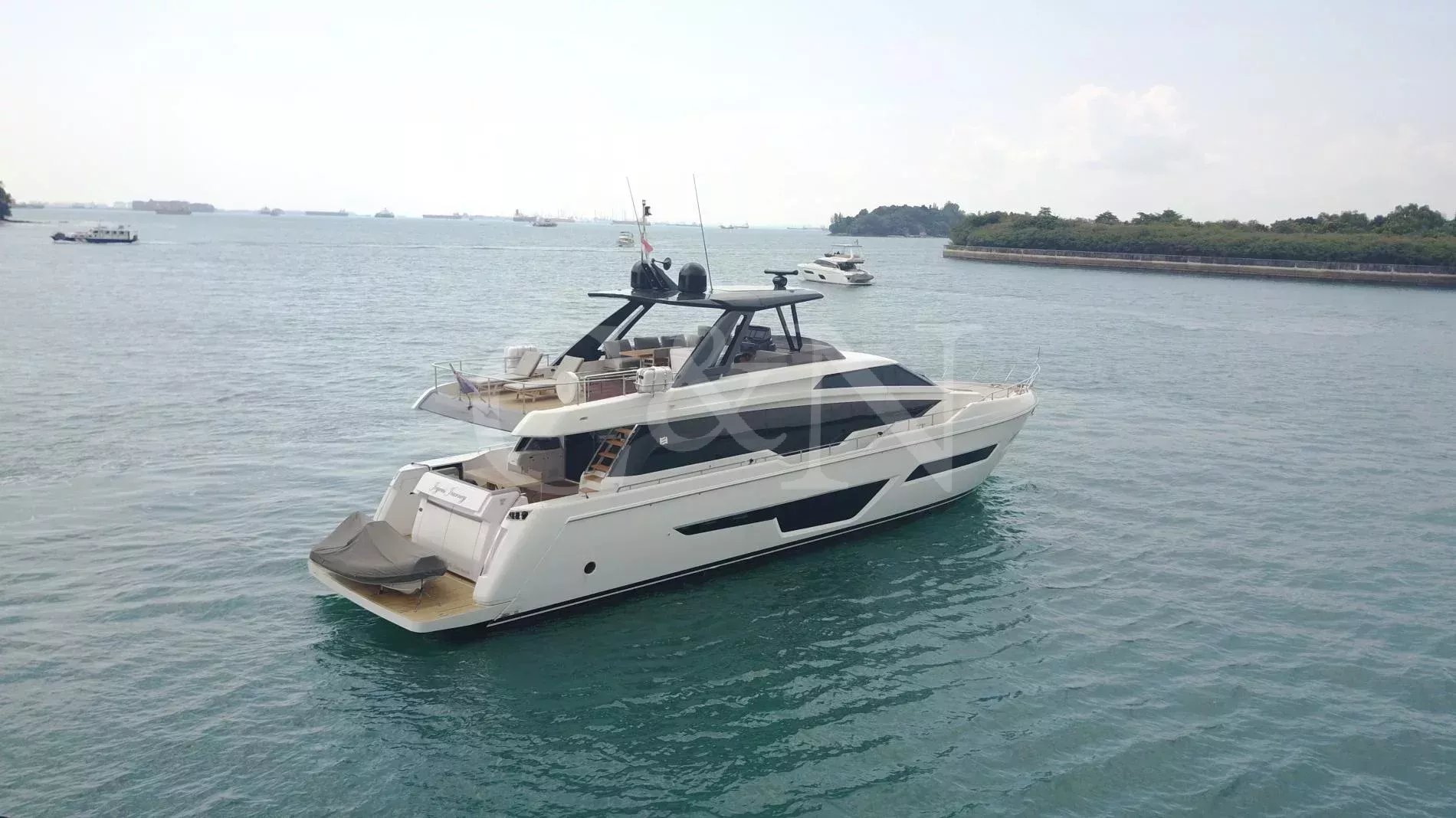 Joyous Journey is a 24.10m Ferretti motor yacht delivered in 2021 and offered in immaculate condition. As one of the Ferretti 780 models available on the market, she has had minimal private use and is presented with low engine hours, making her an exceptional acquisition opportunity. Sleek and purposeful in profile, she showcases Ferretti’s signature styling, designed in collaboration with Studio Zuccon International Project, and offers outstanding volume and liveability for a yacht under 30m.The interior of Joyous Journey is light, elegant, and beautifully appointed. Neutral tones, refined textures, and full-height glazing in the main saloon create a warm, inviting ambiance throughout. The open-plan layout features a formal dining area forward and a generous lounge aft, ideal for both entertaining and relaxed family cruising.Joyous Journey’s layout accommodates up to 8 guests across four en suite cabins. The Owner’s suite, located on the lower deck, includes oversized windows, and an expansive en suite. She has a forward VIP cabin with a double bed and ensuite, and two other guests cabins on the port and starboard side with two single beds that can be electrically join together into a double.Joyous Journey offers a series of well-designed exterior spaces that blend style with functionality. The spacious aft deck is ideal for al fresco dining, while the foredeck lounge provides a private sunbathing and cocktail area with uninterrupted views. Above, the sundeck is fitted with sun loungers, a full wet bar, and a shaded lounge area, perfect for long summer days on the water. A generous swim platform provides seamless access to the sea and stowage for a tender and 2 Ferretti branded Seabobs with its own dedicated compartment on each side.Powered by twin MAN 1550HP engines, Joyous Journey reaches a top speed of 27 knots and cruises comfortably at 20 knots. Her planing hull delivers efficient performance underway, while her zero-speed stabilisers ensure comfort both at anchor and when cruising. Offered in turn-key condition, with all major systems serviced and maintained, she is ready for immediate delivery and enjoyment.