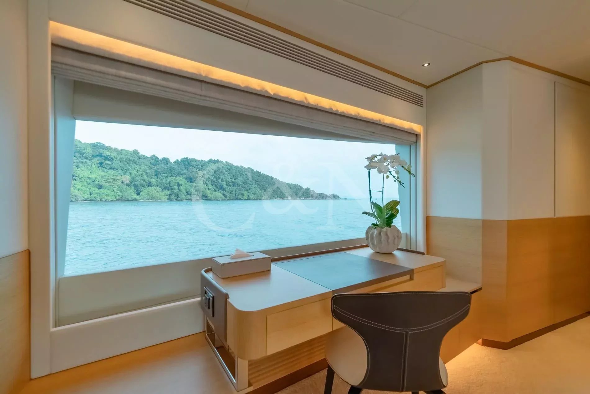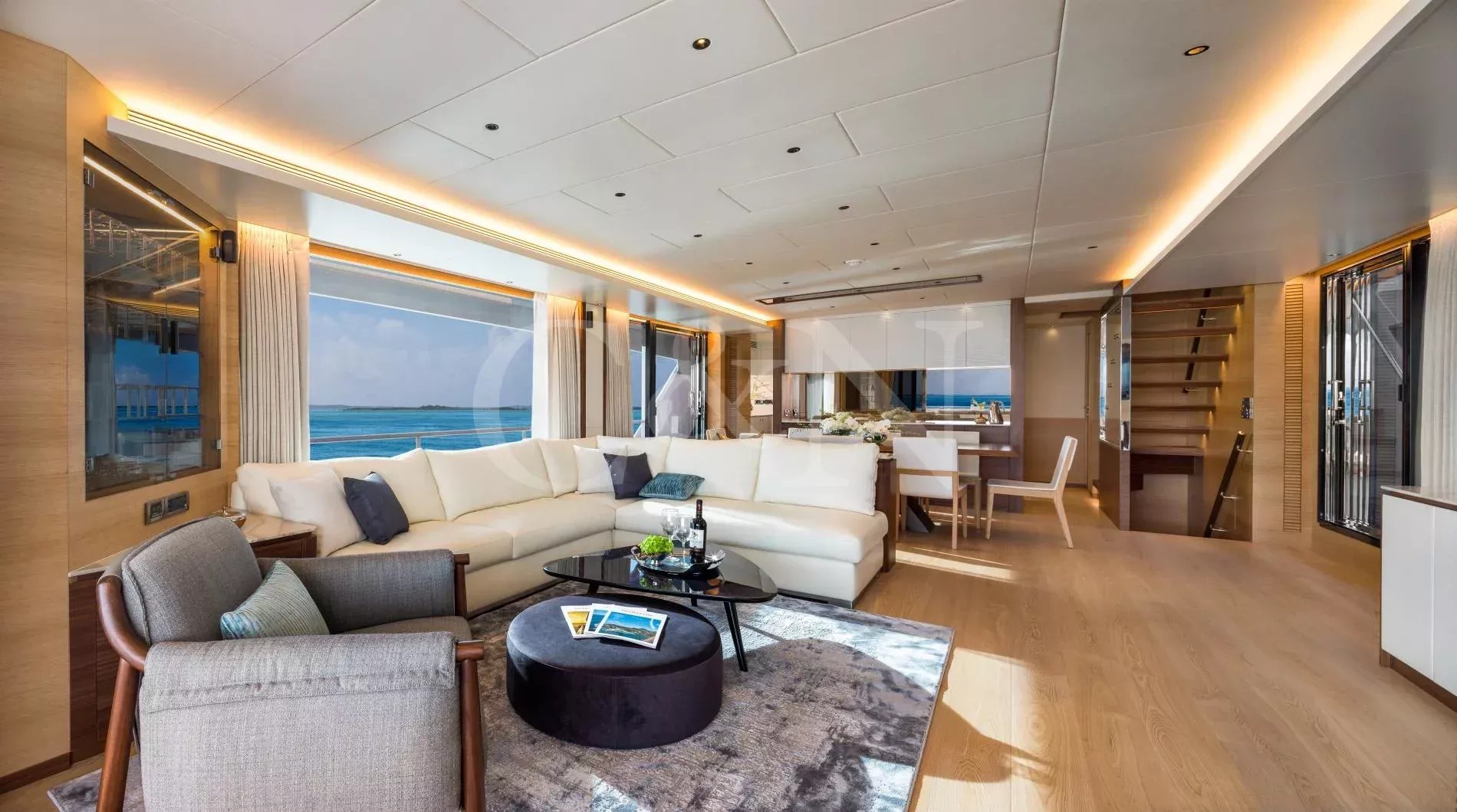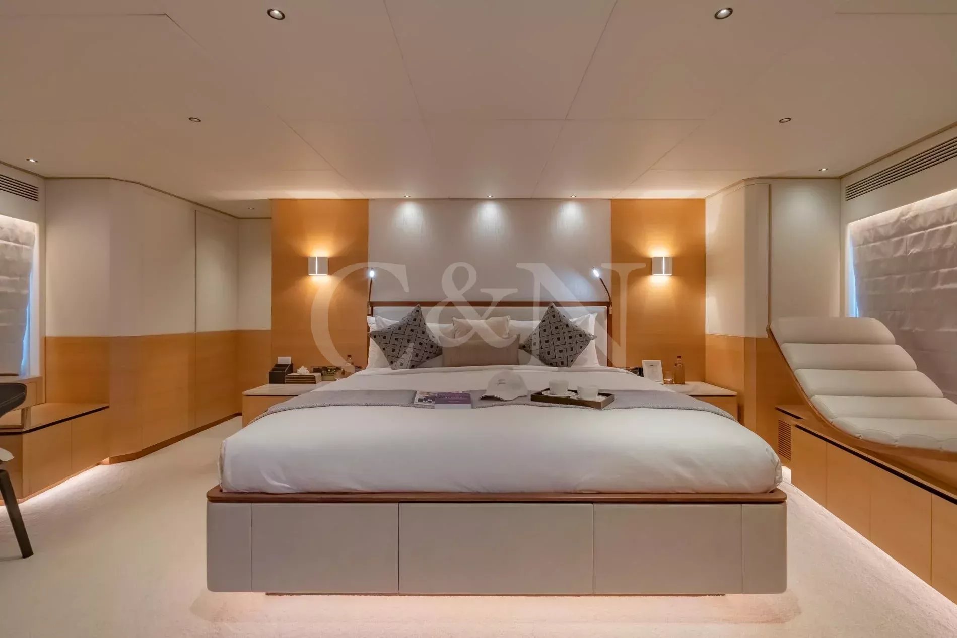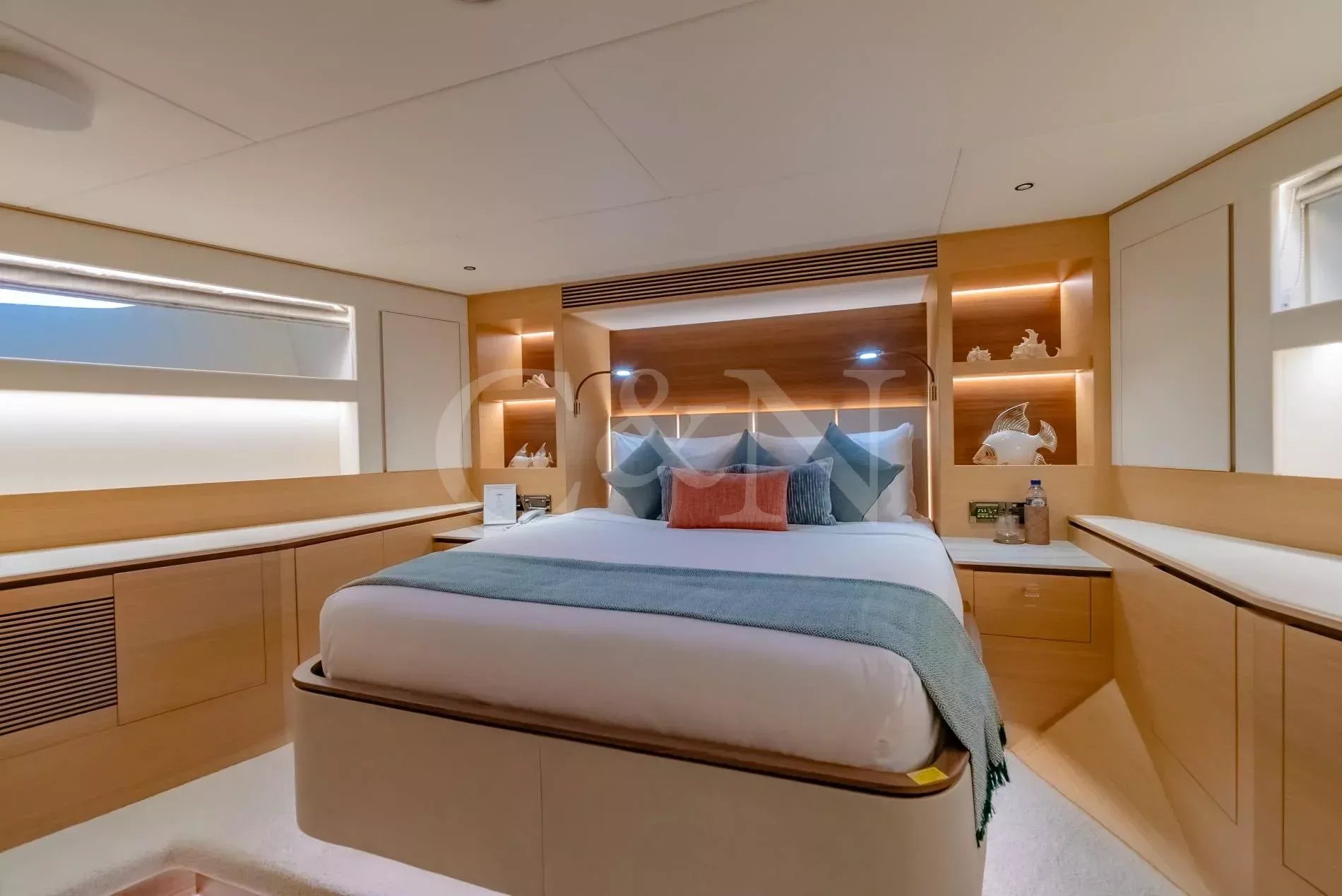 The Horizon Yachts FD90 motor yacht, Aveline, is a 27.45-metre motor yacht that combines design, performance, and luxury. Built by the renowned Horizon Yachts in 2021, Aveline embodies innovation, style, and space. Awarded the Taiwan Excellence Award 2023, Aveline remains in immaculate condition, meticulously maintained by an experienced Owner. Her excellence and features rival those of larger yachts, with a gross tonnage of 175 comparable to a 30-metre vessel. Aveline, Hull 20 of the successful FD90 series, exemplifies the pinnacle of Horizon’s commitment to excellence, blending high performance with long-range cruising capability; her range can increase to over 3,000 nautical miles at six knots.Aveline boasts an elegant interior characterised by bright spaces and a natural, calming colour palette of beiges and creams. Her interior layout features a spacious main salon, with panoramic windows that flood the space with natural light. The living area leads through to the stylish interior dining setup for eight to ten guests. Aveline's impressive beam creates unmatched volume throughout her beautiful interior. There is also a day head and a spacious galley situated on the main deck.On her upper deck, Aveline also features a spectacular upper salon, home to a relaxing living space and boasting large doors that lead out onto the impressive upper deck aft deck. The layout is thoughtfully designed with a clear separation between the wheelhouse and the upper salon, ensuring privacy for both the Captain and guests during long voyages or night time cruising.Aveline can accommodate up to 11 guests across five comfortable en suite cabins. The configuration features an impressive main deck master suite with exquisite detailing, and a large VIP cabin on her lower deck. Aveline's layout exemplifies Horizon’s focus on guest-centric design, ensuring that every journey is as enjoyable as the destination.Six crew members can also be accommodated across three dedicated crew cabins, offering extraordinary space for a yacht of this size. This design feature means that the Owner can enjoy extended cruising without compromising the impeccable level of service on board.With spacious decks tailored for entertainment and relaxation, Aveline allows for ultimate relaxation. The spacious main deck and upper deck are perfect for al fresco dining, lounging, or simply enjoying the horizon. Awnings on both the foredeck and the upper deck aft provide shaded areas for guests to relax and enjoy. Her forward-sloping windshield enhances visibility, while side access at the helm ensures seamless navigation for the captain.Aveline is built for exploration, with long-range cruising capabilities including the largest water and fuel tanks in the FD90 series, and two Domestic SeaXchange water makers for ultimate self-sufficiency. As well as her enlarged water and fuel tanks, she is equipped with a highly effective Super Tropical Climate air conditioning system, Side Power VF 1650 zero-speed stabilisers and other top-of-the-line systems, ensuring unmatched comfort and performance at sea.Powered by twin Caterpillar C18A engines, each delivering 1,136 horsepower, Aveline reaches a top speed of 14.5 knots and comfortably cruises at 12 knots. At an economical speed of 9.5 knots, her efficient range extends to approximately 850 nautical miles, with fuel consumption at just 125 litres per hour with a 20% fuel margin. This remarkable efficiency positions Aveline as one of the most cost-effective yachts within her range, and makes her ideal for both high-speed adventures and serene, long-distance journeys. Aveline complies with AMSA 2C Survey standards, with the potential to be a great charter vessel in the Australian market.Aveline also features a generous galley for her size. The sale will also include a 4.6m Highfield tender with minimal usage.