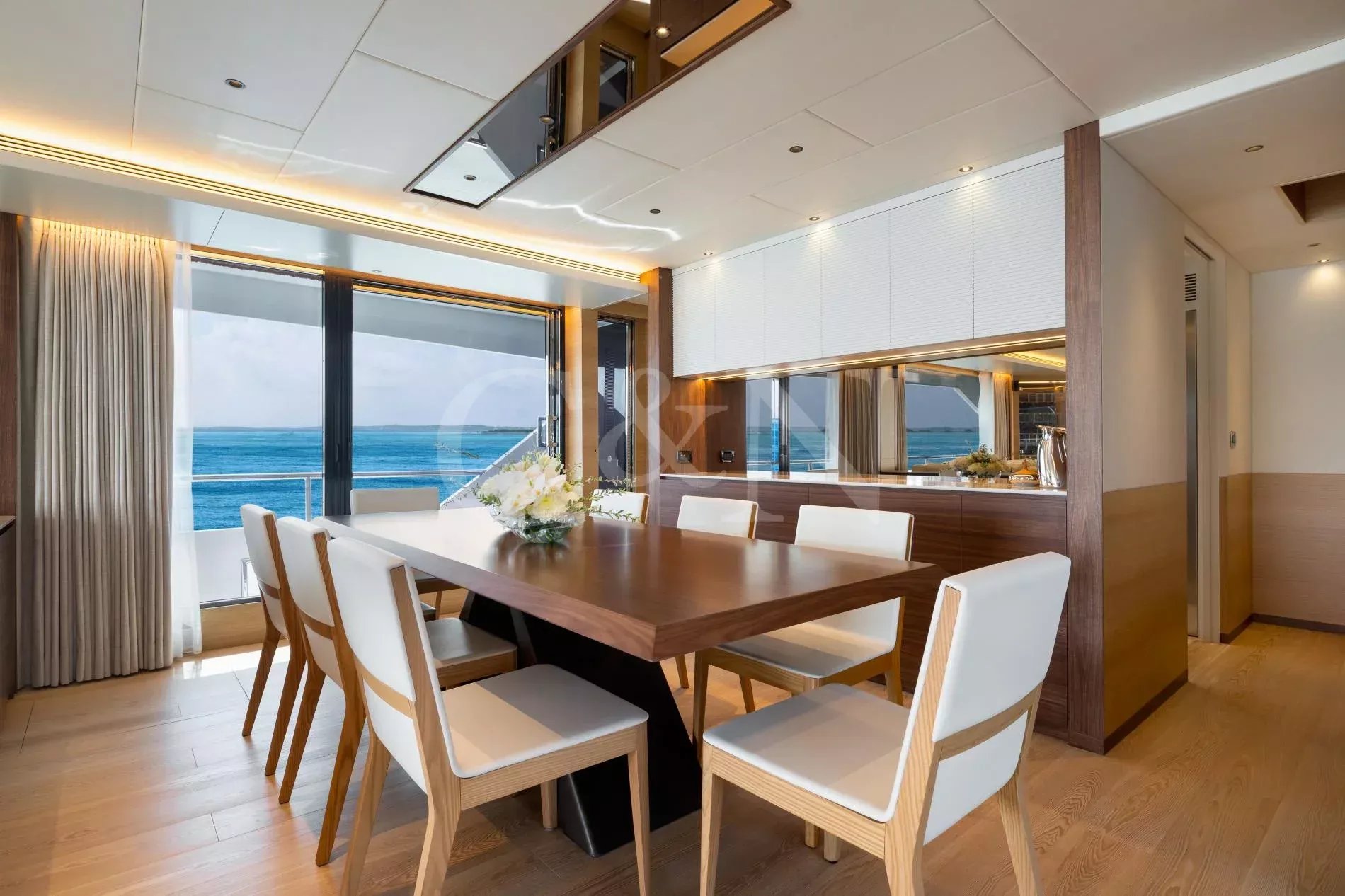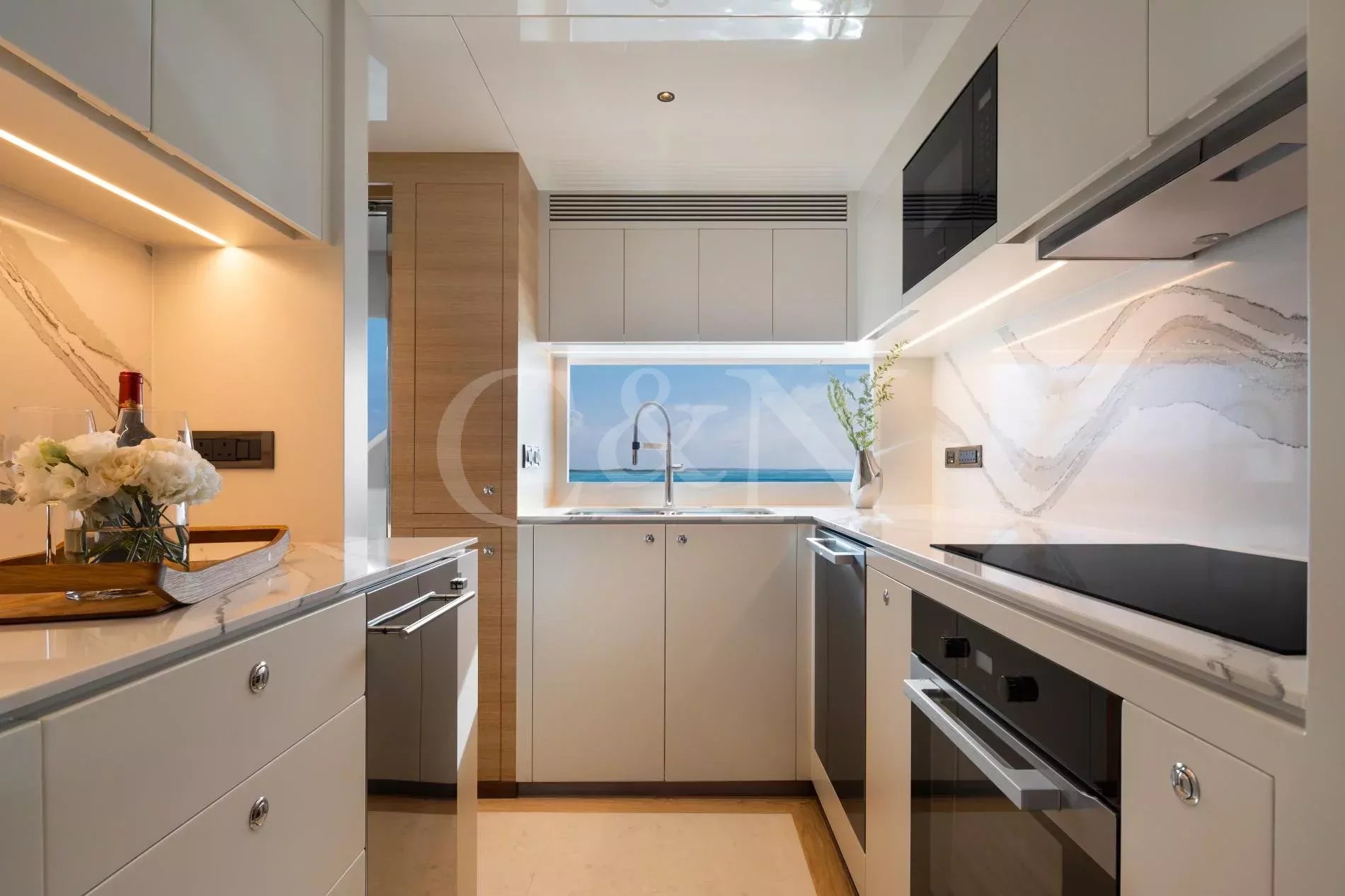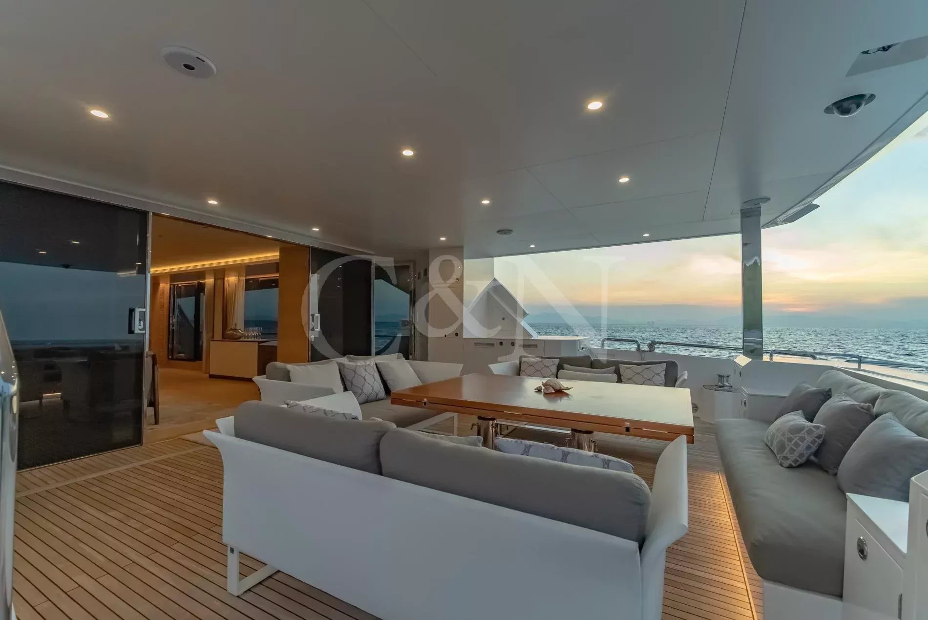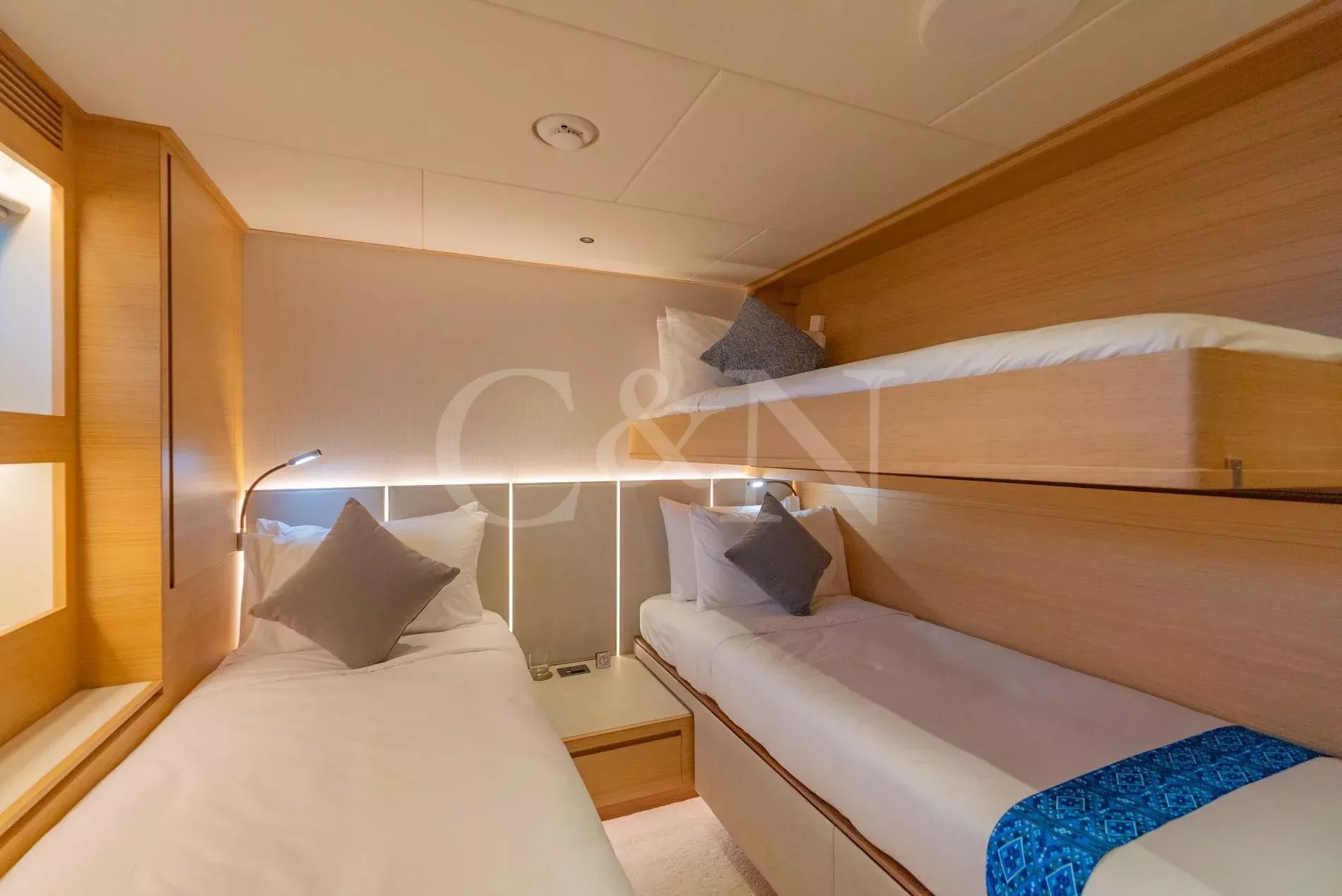 The Horizon Yachts FD90 motor yacht, Aveline, is a 27.45-metre motor yacht that combines design, performance, and luxury. Built by the renowned Horizon Yachts in 2021, Aveline embodies innovation, style, and space. Awarded the Taiwan Excellence Award 2023, Aveline remains in immaculate condition, meticulously maintained by an experienced Owner. Her excellence and features rival those of larger yachts, with a gross tonnage of 175 comparable to a 30-metre vessel. Aveline, Hull 20 of the successful FD90 series, exemplifies the pinnacle of Horizon’s commitment to excellence, blending high performance with long-range cruising capability; her range can increase to over 3,000 nautical miles at six knots.Aveline boasts an elegant interior characterised by bright spaces and a natural, calming colour palette of beiges and creams. Her interior layout features a spacious main salon, with panoramic windows that flood the space with natural light. The living area leads through to the stylish interior dining setup for eight to ten guests. Aveline's impressive beam creates unmatched volume throughout her beautiful interior. There is also a day head and a spacious galley situated on the main deck.On her upper deck, Aveline also features a spectacular upper salon, home to a relaxing living space and boasting large doors that lead out onto the impressive upper deck aft deck. The layout is thoughtfully designed with a clear separation between the wheelhouse and the upper salon, ensuring privacy for both the Captain and guests during long voyages or night time cruising.Aveline can accommodate up to 11 guests across five comfortable en suite cabins. The configuration features an impressive main deck master suite with exquisite detailing, and a large VIP cabin on her lower deck. Aveline's layout exemplifies Horizon’s focus on guest-centric design, ensuring that every journey is as enjoyable as the destination.Six crew members can also be accommodated across three dedicated crew cabins, offering extraordinary space for a yacht of this size. This design feature means that the Owner can enjoy extended cruising without compromising the impeccable level of service on board.With spacious decks tailored for entertainment and relaxation, Aveline allows for ultimate relaxation. The spacious main deck and upper deck are perfect for al fresco dining, lounging, or simply enjoying the horizon. Awnings on both the foredeck and the upper deck aft provide shaded areas for guests to relax and enjoy. Her forward-sloping windshield enhances visibility, while side access at the helm ensures seamless navigation for the captain.Aveline is built for exploration, with long-range cruising capabilities including the largest water and fuel tanks in the FD90 series, and two Domestic SeaXchange water makers for ultimate self-sufficiency. As well as her enlarged water and fuel tanks, she is equipped with a highly effective Super Tropical Climate air conditioning system, Side Power VF 1650 zero-speed stabilisers and other top-of-the-line systems, ensuring unmatched comfort and performance at sea.Powered by twin Caterpillar C18A engines, each delivering 1,136 horsepower, Aveline reaches a top speed of 14.5 knots and comfortably cruises at 12 knots. At an economical speed of 9.5 knots, her efficient range extends to approximately 850 nautical miles, with fuel consumption at just 125 litres per hour with a 20% fuel margin. This remarkable efficiency positions Aveline as one of the most cost-effective yachts within her range, and makes her ideal for both high-speed adventures and serene, long-distance journeys. Aveline complies with AMSA 2C Survey standards, with the potential to be a great charter vessel in the Australian market.Aveline also features a generous galley for her size. The sale will also include a 4.6m Highfield tender with minimal usage.