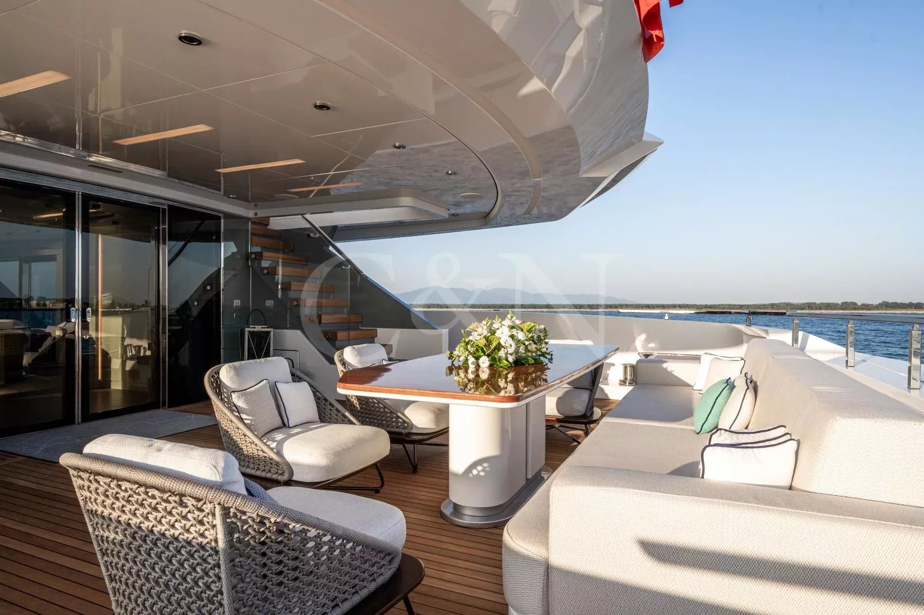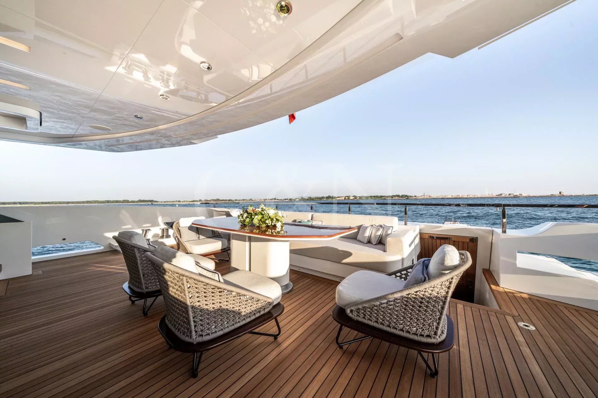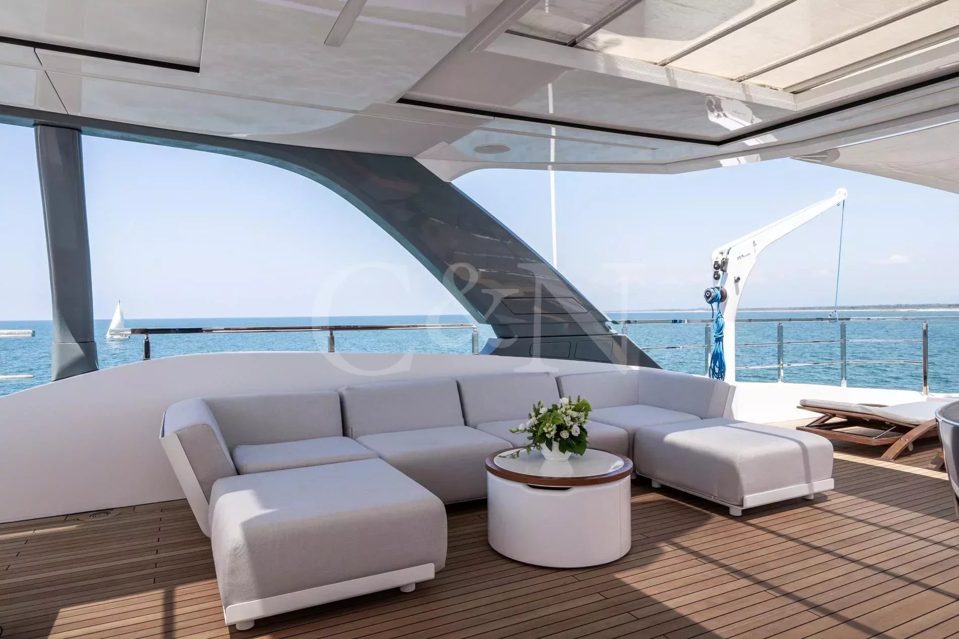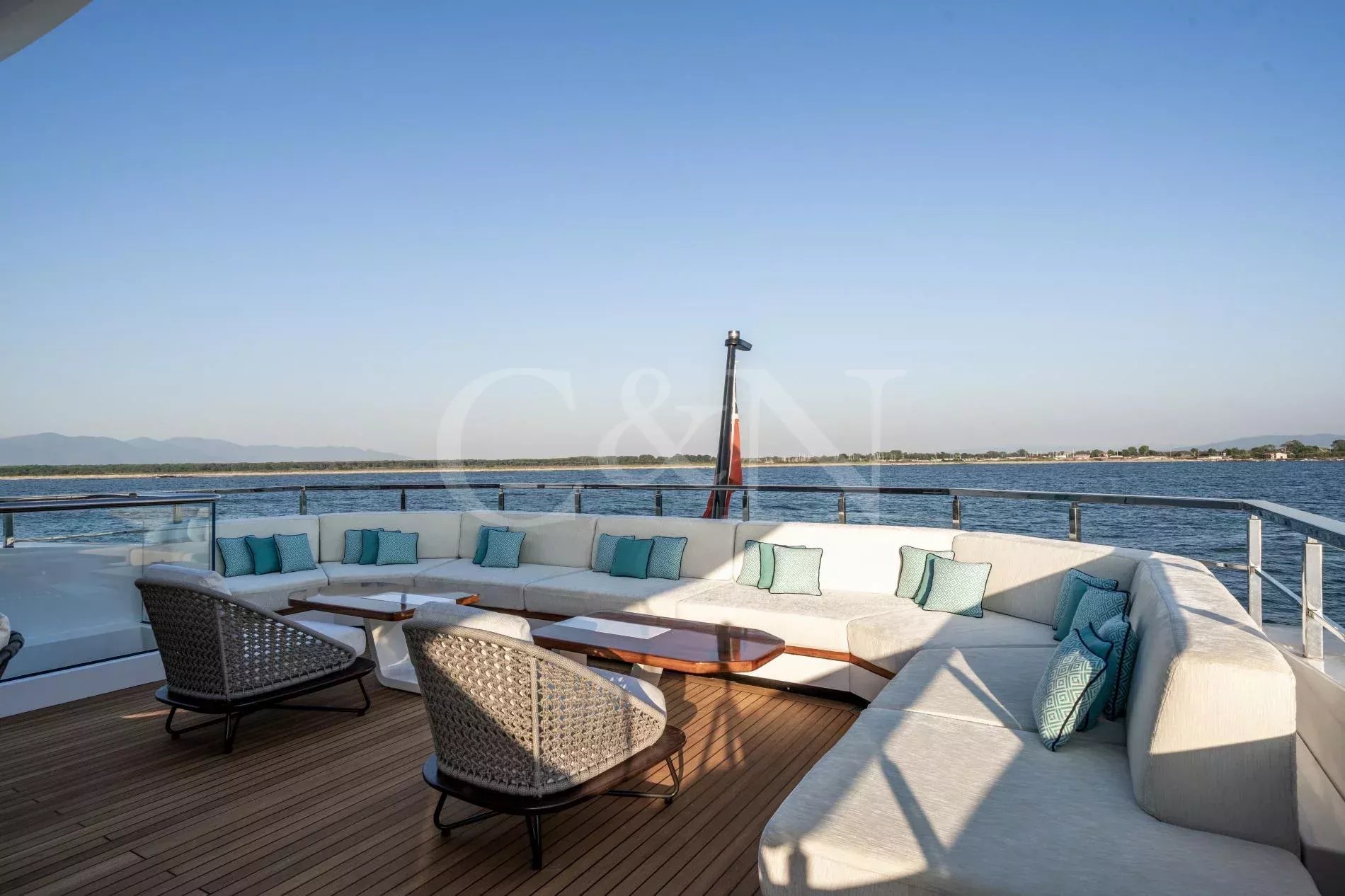 RUN AWAY is a shining example of modern Italian yacht building at its finest. Delivered in 2021 by the iconic Baglietto shipyard, this 37.5m motor yacht belongs to the acclaimed DOM line, named after the Latin Domus, meaning home. With exterior and interior design by Stefano Vafiadis, RUN AWAY fuses comfort, capability and sophistication.Spread across three expansive exterior decks, RUN AWAY provides a range of open-air spaces designed for comfort and functionality. The sundeck features a Jacuzzi, bar, and large sunpad area. The upper deck includes an al fresco dining space centred around a circular table. On the main deck, the aft lounge offers a sheltered area for relaxing or entertaining.Inside, RUN AWAY’s layout is both versatile and luxurious. Her interior is characterised by a contemporary aesthetic with a focus on open space and natural light. Premium materials, custom furnishings, and thoughtful detailing contribute to a refined yet relaxed onboard ambiance. On the lower deck, one of the accommodation spaces, a sixth cabin is currently configured as a fully equipped gym and hammam. However, this can be effortlessly reconverted into additional guest accommodation, offering flexibility to suit the preferences of her next Owner.RUN AWAY welcomes up to 12 guests across six cabins, creating a refined retreat for extended cruising or private moments at sea. Full-beam master suite on the main deck with terrace, walk-in wardrobe, and his-and-hers bathrooms Two VIP double cabins on the lower deck Two twin cabins, ideal for families or friends One double cabin converted to a gym and hammam, offering flexible use Her crew of nine are discreetly accommodated across five cabins, ensuring seamless service throughout.RUN AWAY is powered by twin Caterpillar C32 ACERT engines, each producing 2,640hp, enabling a cruising speed of 15 knots and a maximum speed of 16 knots. Her range extends to 4,000 nautical miles at an economical 10 knots. With a gross tonnage of 392 GT, she is built to ABS – A1 (E) Commercial class standards. The yacht is stabilised for comfort both underway and at anchor and is supported by two Caterpillar C4.4 generators.