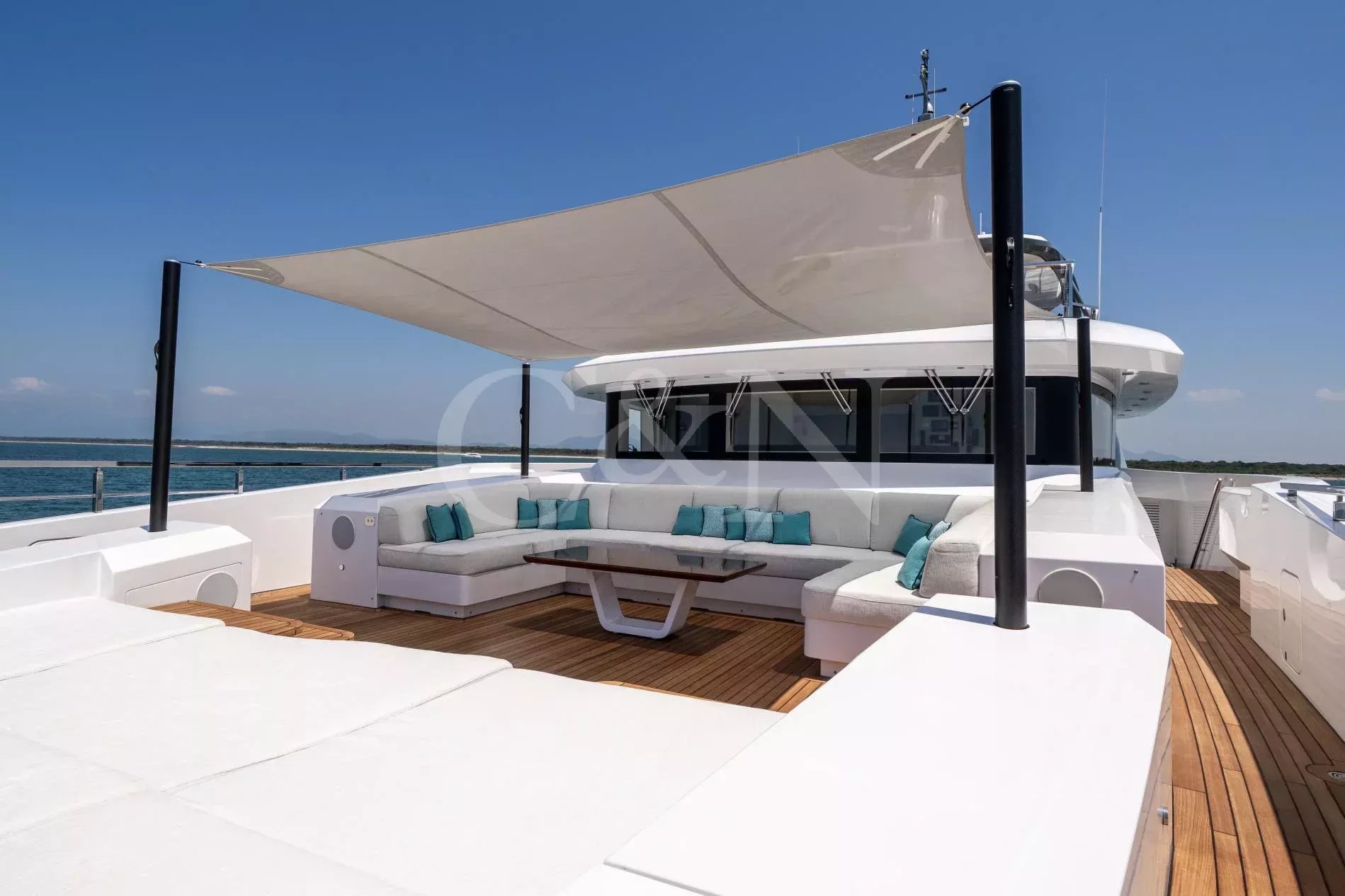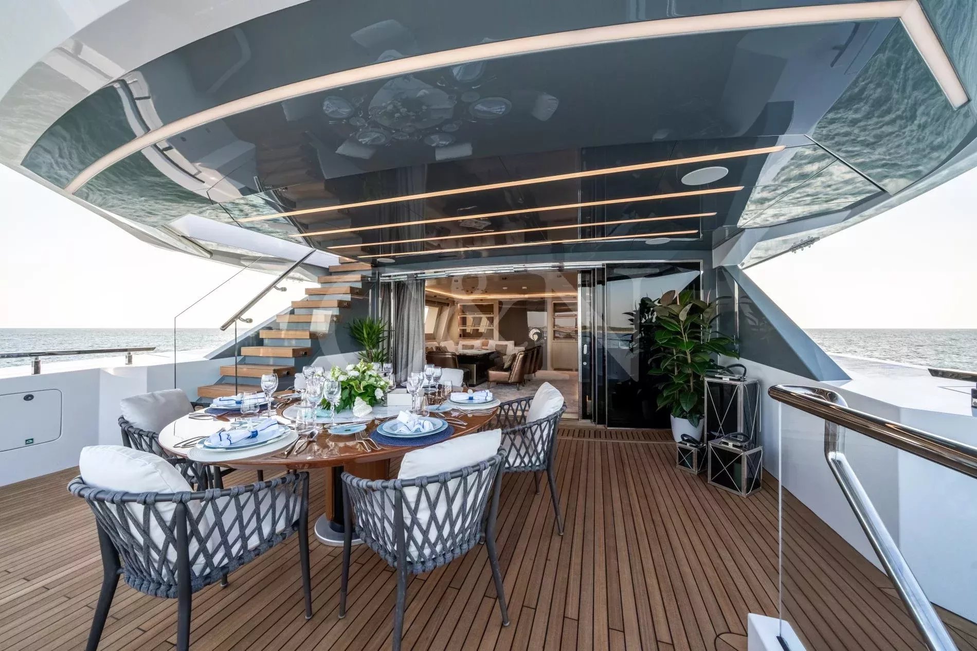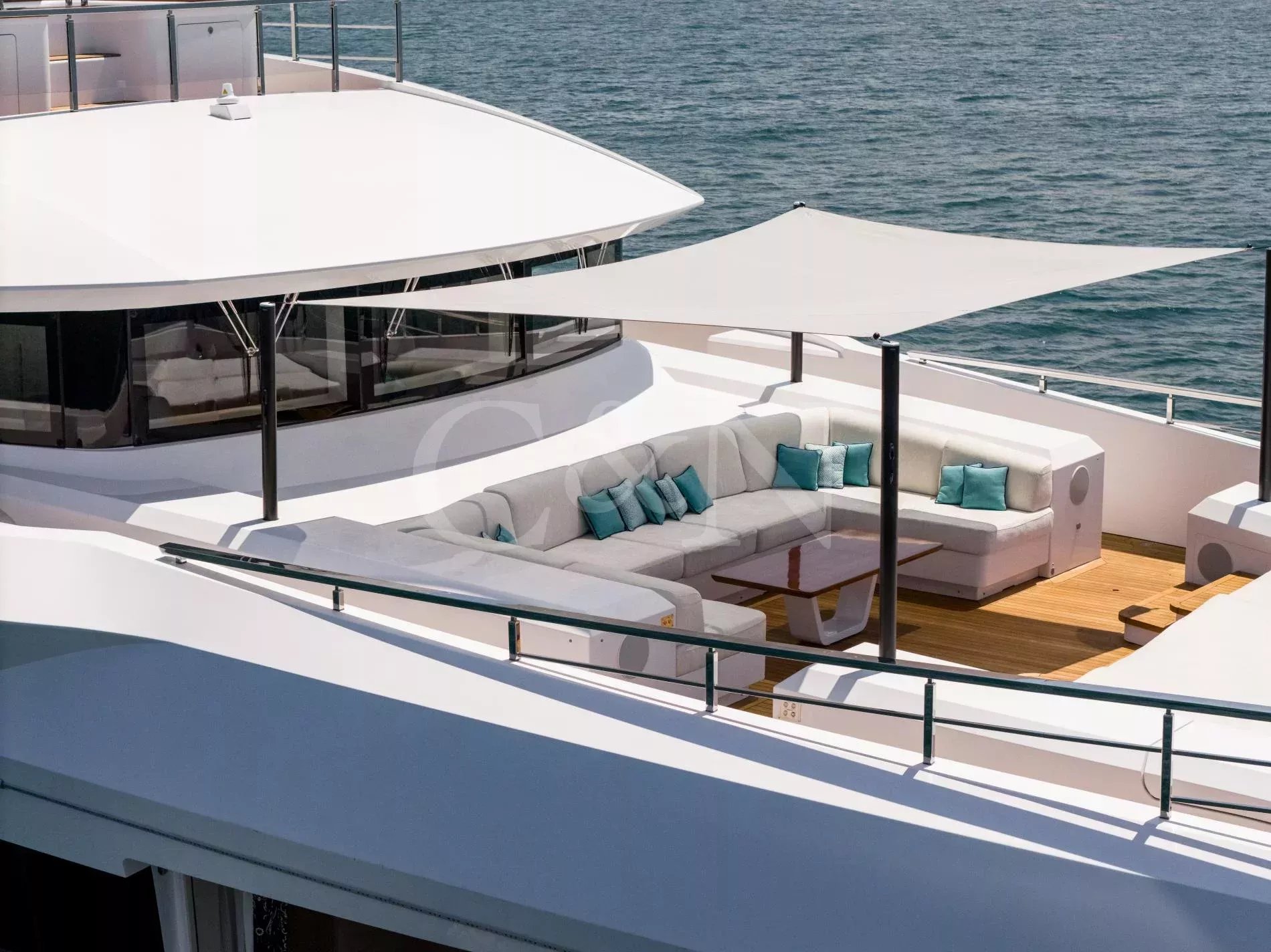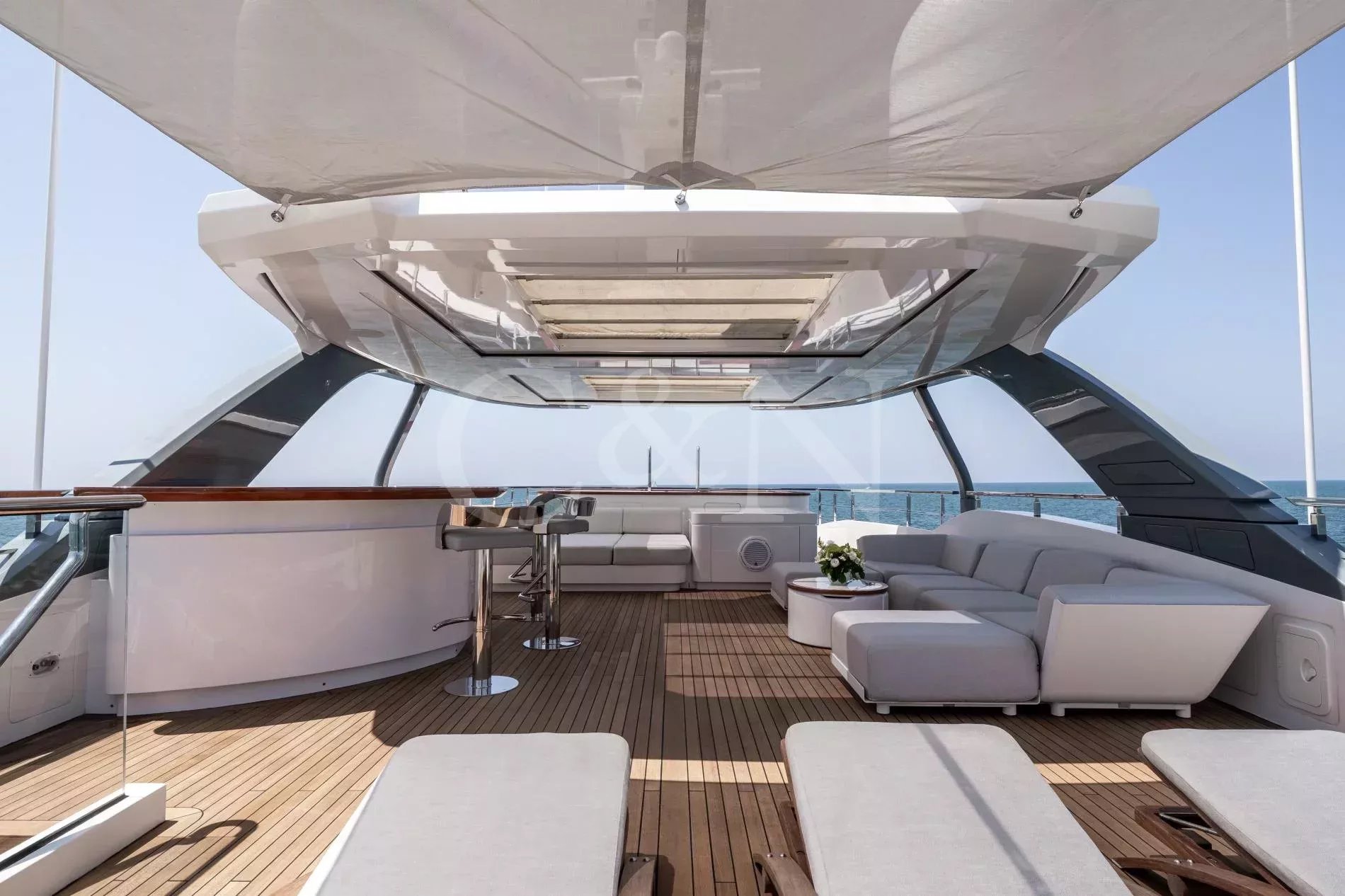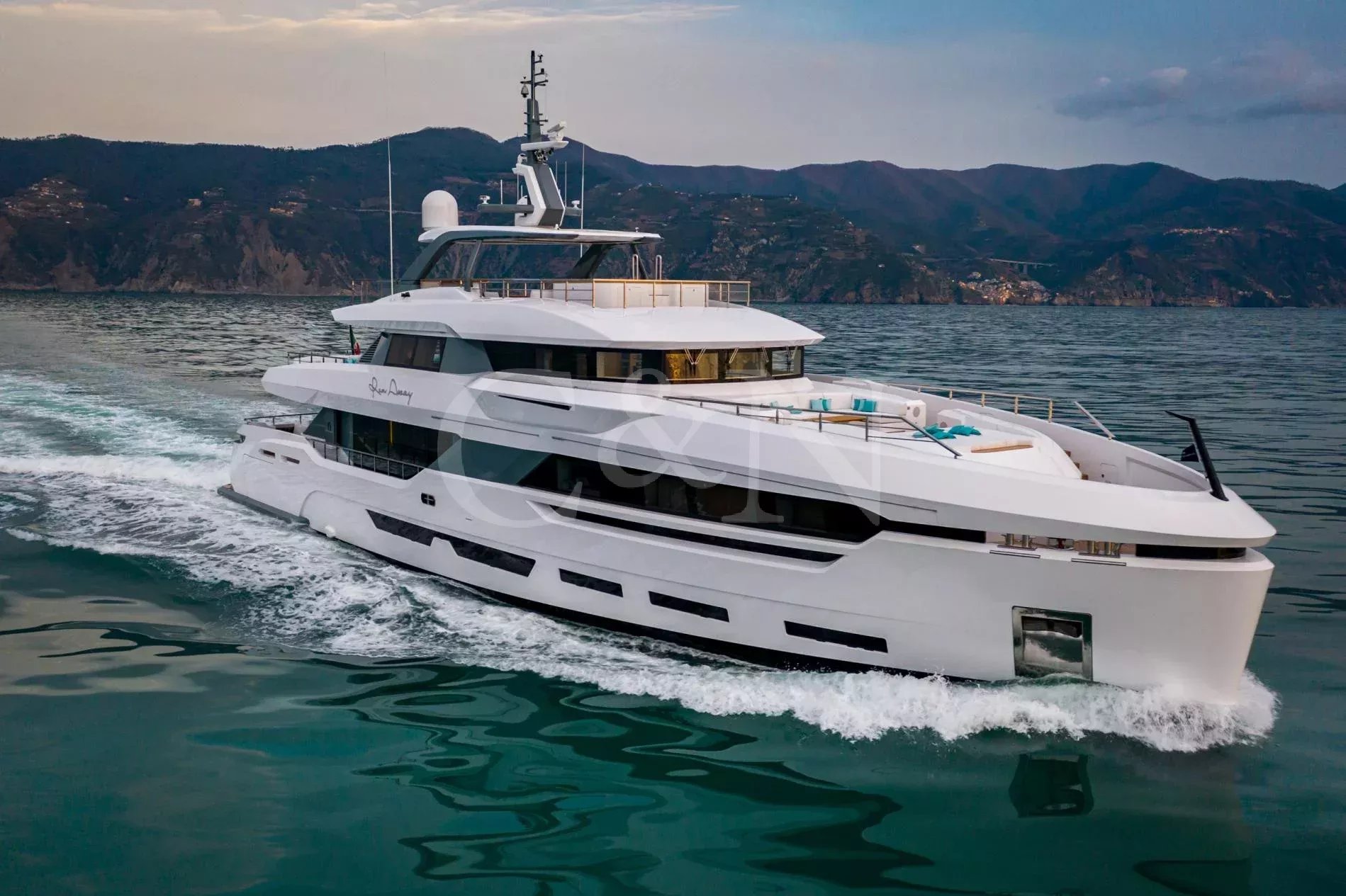 RUN AWAY is a shining example of modern Italian yacht building at its finest. Delivered in 2021 by the iconic Baglietto shipyard, this 37.5m motor yacht belongs to the acclaimed DOM line, named after the Latin Domus, meaning home. With exterior and interior design by Stefano Vafiadis, RUN AWAY fuses comfort, capability and sophistication.Spread across three expansive exterior decks, RUN AWAY provides a range of open-air spaces designed for comfort and functionality. The sundeck features a Jacuzzi, bar, and large sunpad area. The upper deck includes an al fresco dining space centred around a circular table. On the main deck, the aft lounge offers a sheltered area for relaxing or entertaining.Inside, RUN AWAY’s layout is both versatile and luxurious. Her interior is characterised by a contemporary aesthetic with a focus on open space and natural light. Premium materials, custom furnishings, and thoughtful detailing contribute to a refined yet relaxed onboard ambiance. On the lower deck, one of the accommodation spaces, a sixth cabin is currently configured as a fully equipped gym and hammam. However, this can be effortlessly reconverted into additional guest accommodation, offering flexibility to suit the preferences of her next Owner.RUN AWAY welcomes up to 12 guests across six cabins, creating a refined retreat for extended cruising or private moments at sea. Full-beam master suite on the main deck with terrace, walk-in wardrobe, and his-and-hers bathrooms Two VIP double cabins on the lower deck Two twin cabins, ideal for families or friends One double cabin converted to a gym and hammam, offering flexible use Her crew of nine are discreetly accommodated across five cabins, ensuring seamless service throughout.RUN AWAY is powered by twin Caterpillar C32 ACERT engines, each producing 2,640hp, enabling a cruising speed of 15 knots and a maximum speed of 16 knots. Her range extends to 4,000 nautical miles at an economical 10 knots. With a gross tonnage of 392 GT, she is built to ABS – A1 (E) Commercial class standards. The yacht is stabilised for comfort both underway and at anchor and is supported by two Caterpillar C4.4 generators.