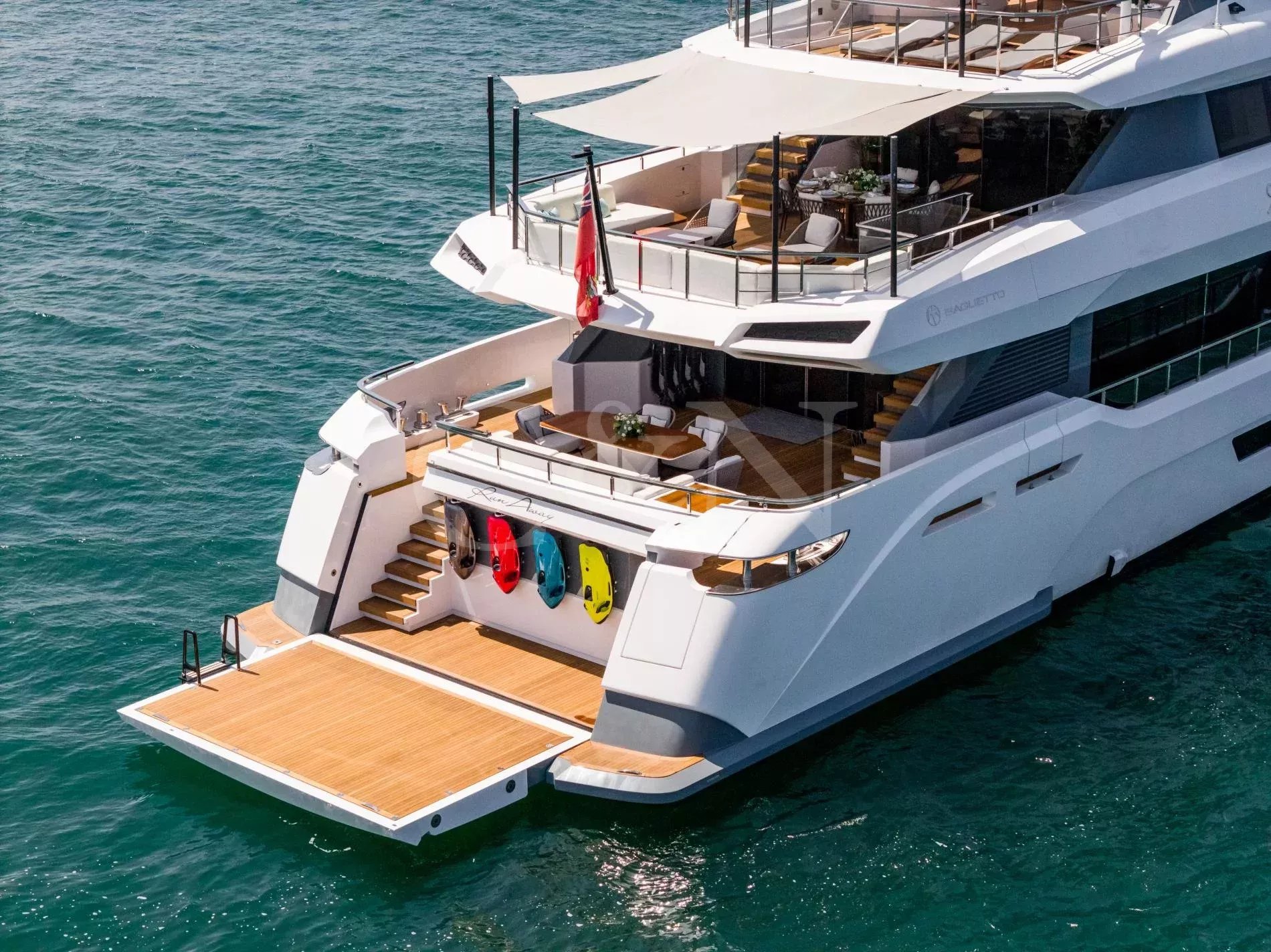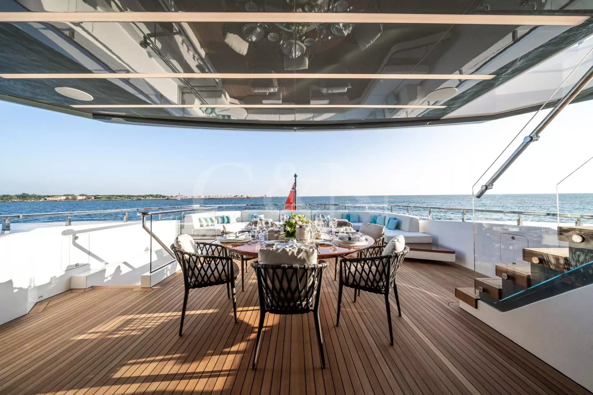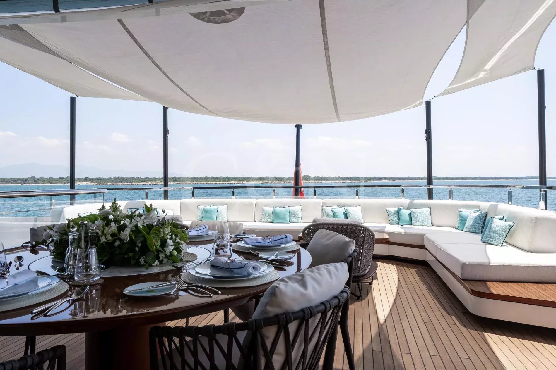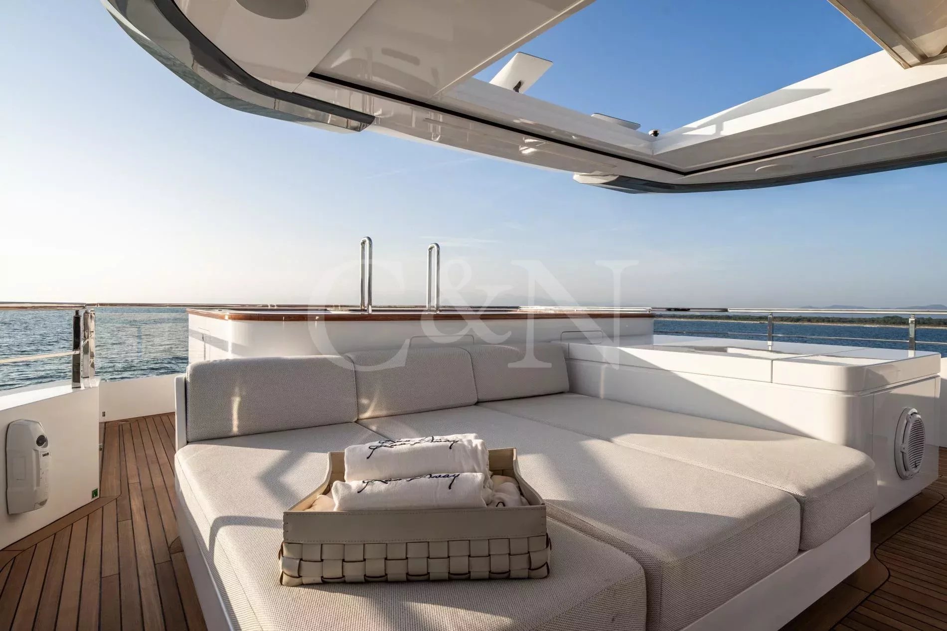 RUN AWAY is a shining example of modern Italian yacht building at its finest. Delivered in 2021 by the iconic Baglietto shipyard, this 37.5m motor yacht belongs to the acclaimed DOM line, named after the Latin Domus, meaning home. With exterior and interior design by Stefano Vafiadis, RUN AWAY fuses comfort, capability and sophistication.Spread across three expansive exterior decks, RUN AWAY provides a range of open-air spaces designed for comfort and functionality. The sundeck features a Jacuzzi, bar, and large sunpad area. The upper deck includes an al fresco dining space centred around a circular table. On the main deck, the aft lounge offers a sheltered area for relaxing or entertaining.Inside, RUN AWAY’s layout is both versatile and luxurious. Her interior is characterised by a contemporary aesthetic with a focus on open space and natural light. Premium materials, custom furnishings, and thoughtful detailing contribute to a refined yet relaxed onboard ambiance. On the lower deck, one of the accommodation spaces, a sixth cabin is currently configured as a fully equipped gym and hammam. However, this can be effortlessly reconverted into additional guest accommodation, offering flexibility to suit the preferences of her next Owner.RUN AWAY welcomes up to 12 guests across six cabins, creating a refined retreat for extended cruising or private moments at sea. Full-beam master suite on the main deck with terrace, walk-in wardrobe, and his-and-hers bathrooms Two VIP double cabins on the lower deck Two twin cabins, ideal for families or friends One double cabin converted to a gym and hammam, offering flexible use Her crew of nine are discreetly accommodated across five cabins, ensuring seamless service throughout.RUN AWAY is powered by twin Caterpillar C32 ACERT engines, each producing 2,640hp, enabling a cruising speed of 15 knots and a maximum speed of 16 knots. Her range extends to 4,000 nautical miles at an economical 10 knots. With a gross tonnage of 392 GT, she is built to ABS – A1 (E) Commercial class standards. The yacht is stabilised for comfort both underway and at anchor and is supported by two Caterpillar C4.4 generators.