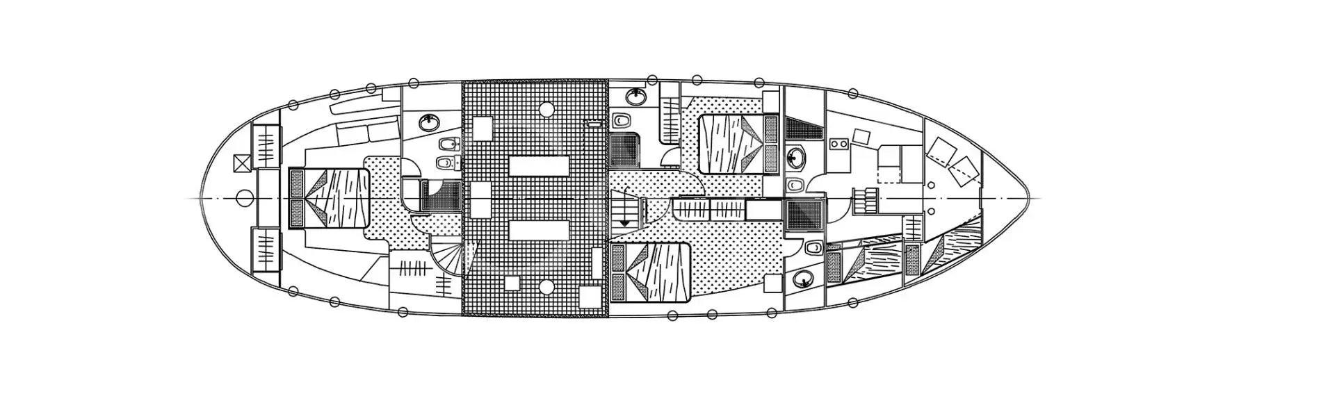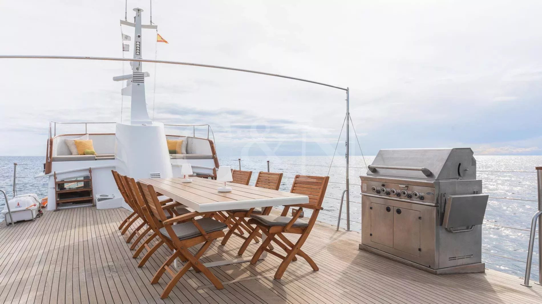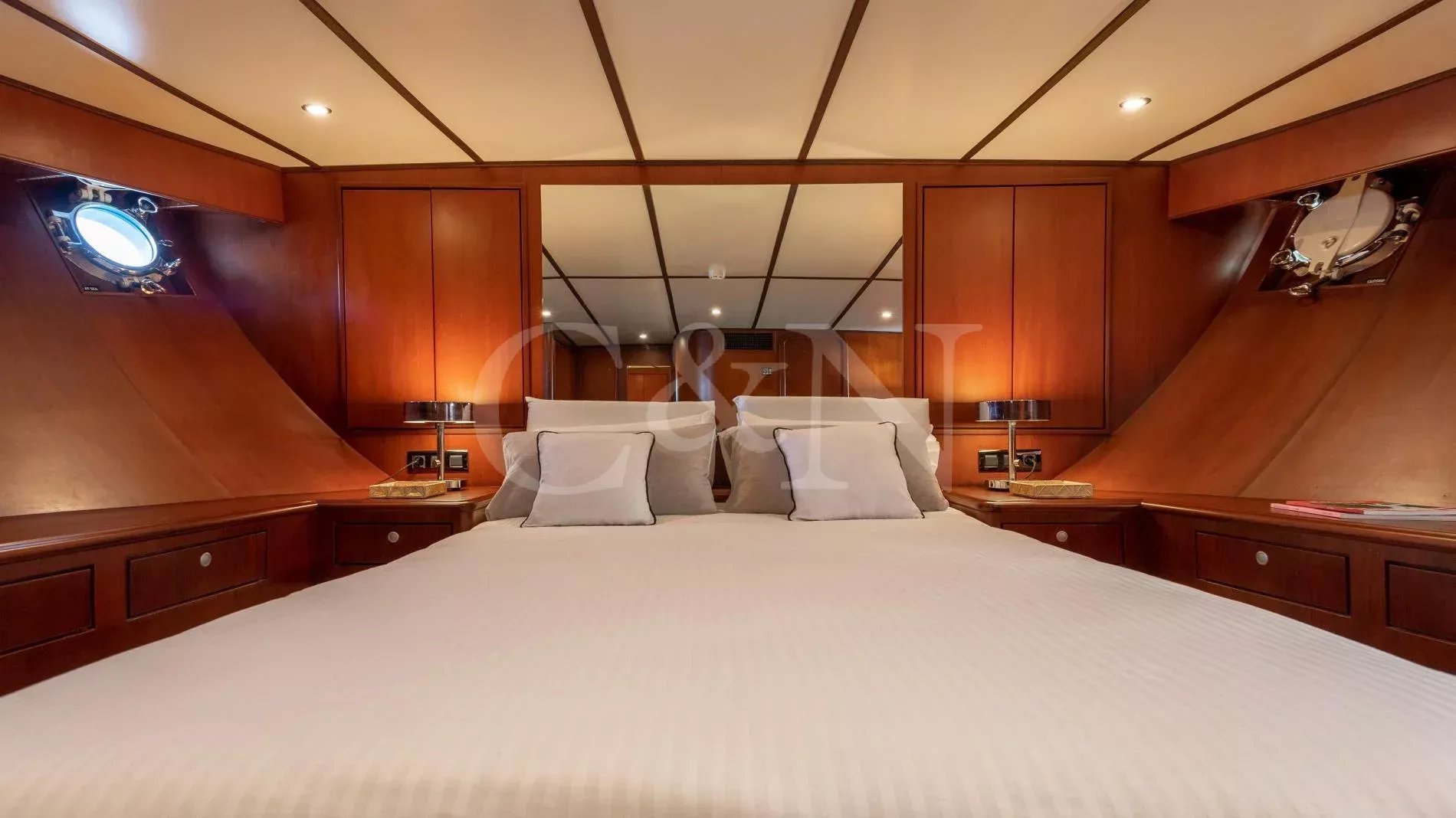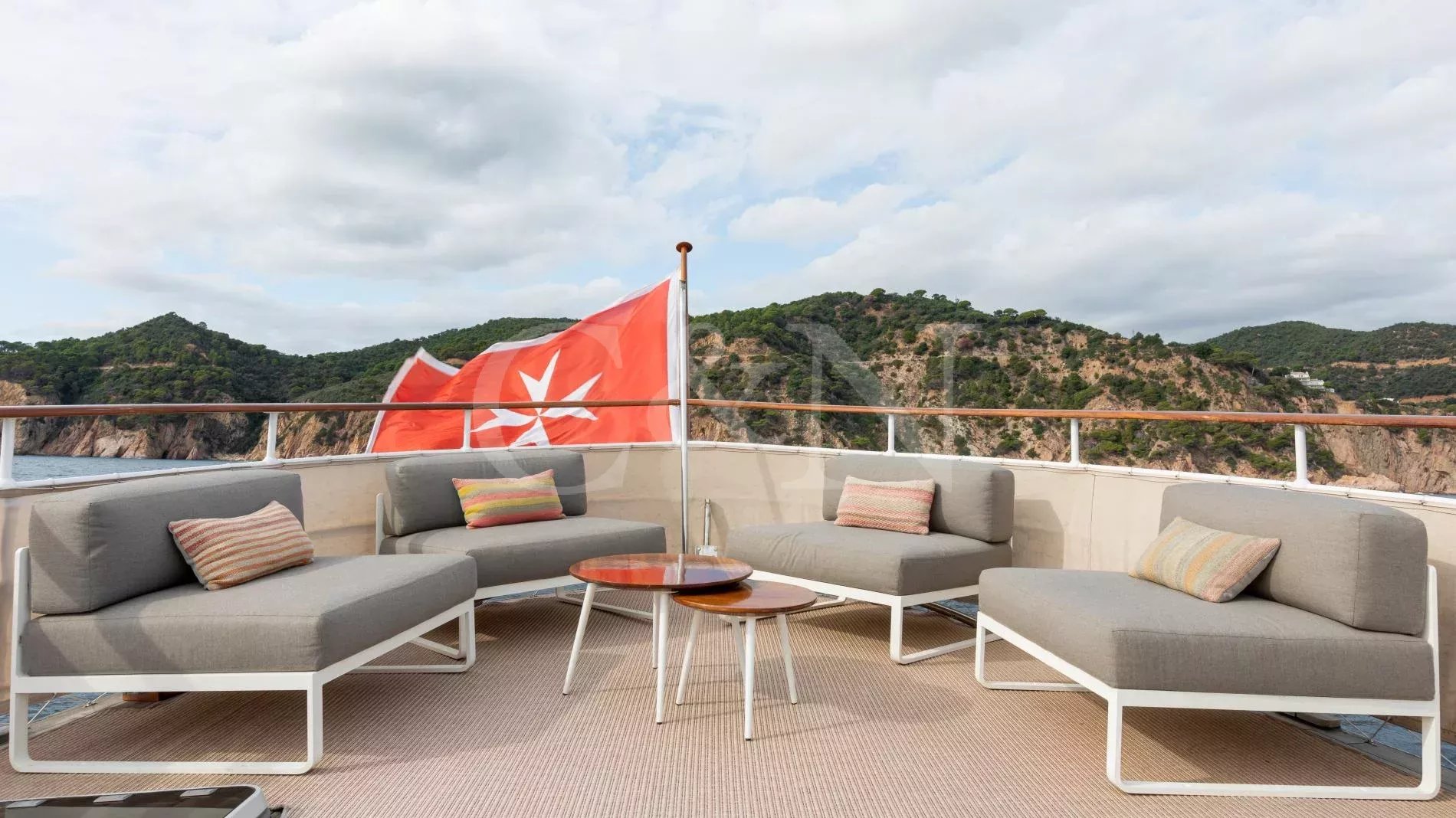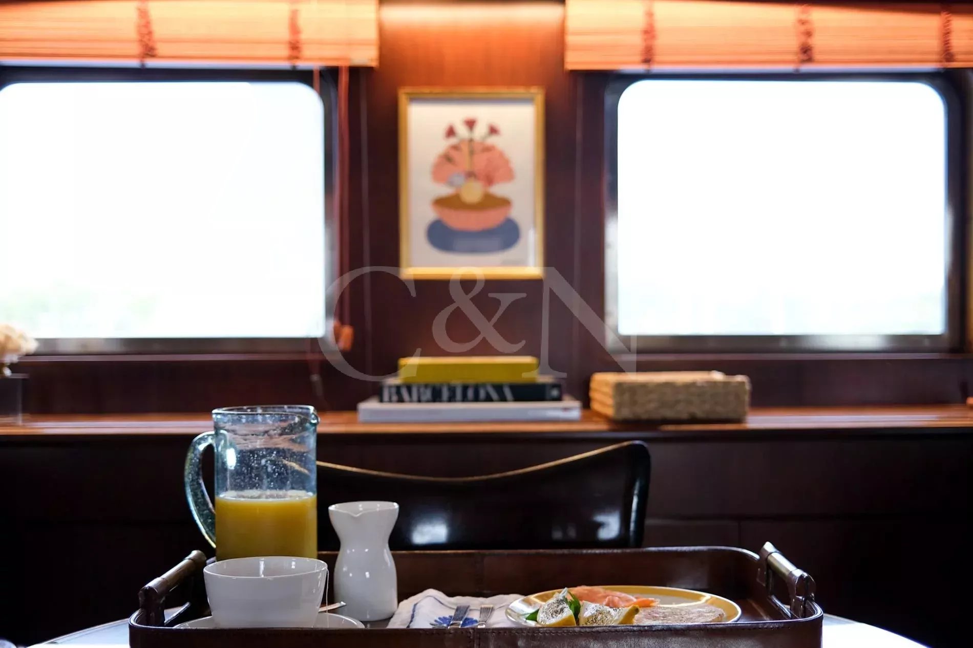 Originally built in 1962 as a fishing vessel and reborn as a luxury yacht, Fairmile seamlessly marries heritage with contemporary style. Her extensive 2.5-year refit transformed both her mechanics and interior, offering a refined experience for those seeking understated charm and comfort at sea.Fairmile offers a surprising amount of space for a yacht in her class. The expansive fly deck is a highlight, featuring a barbacoa, lounge area, and a dining table that accommodates up to ten guests. Additional seating can be found on the lower aft deck and at the forward bow, offering guests the flexibility to enjoy the outdoors from various perspectives.Her contemporary interior redesign features clean lines and welcoming textures. The main saloon includes a sofa with modern fabrics, a bar area, and an array of premium features: a Climadiff wine fridge, Samsung Q60AA 43” TV, Nespresso Delonghi machine, and an ice maker. A pair of large Sonos speakers ensure atmosphere is easily set, whether for quiet evenings or lively gatherings.Fairmile accommodates six guests across three cabins: The master cabin offers a double bed, en-suite bathroom, and a Samsung 7 Series 43” TV.The starboard guest cabin includes a double bed, en-suite, and Samsung 7 Series 40” TV.The portside guest cabin features two single beds convertible into one large bed, an ensuite, and a Samsung 5 Series 32” TV. Each cabin is appointed with understated comfort, making Fairmile ideal for families or small charter groups.Fairmile’s Gardner engines, meticulously rebuilt during the refit, have just 600 hours of use and are known for their robust reliability and efficiency. She boasts an impressive 2,500 nautical mile range, and her fuel consumption is notably low, making her highly economical to operate. A BRIG F500 tender with a 75hp outboard complements her capabilities.