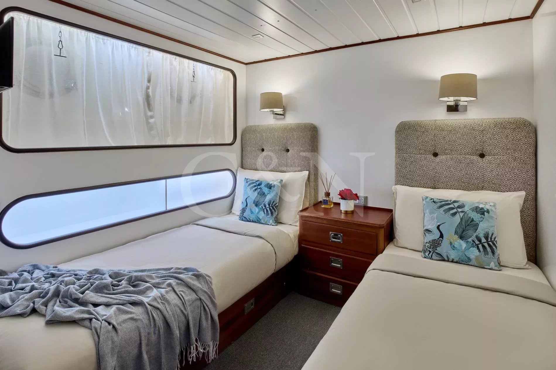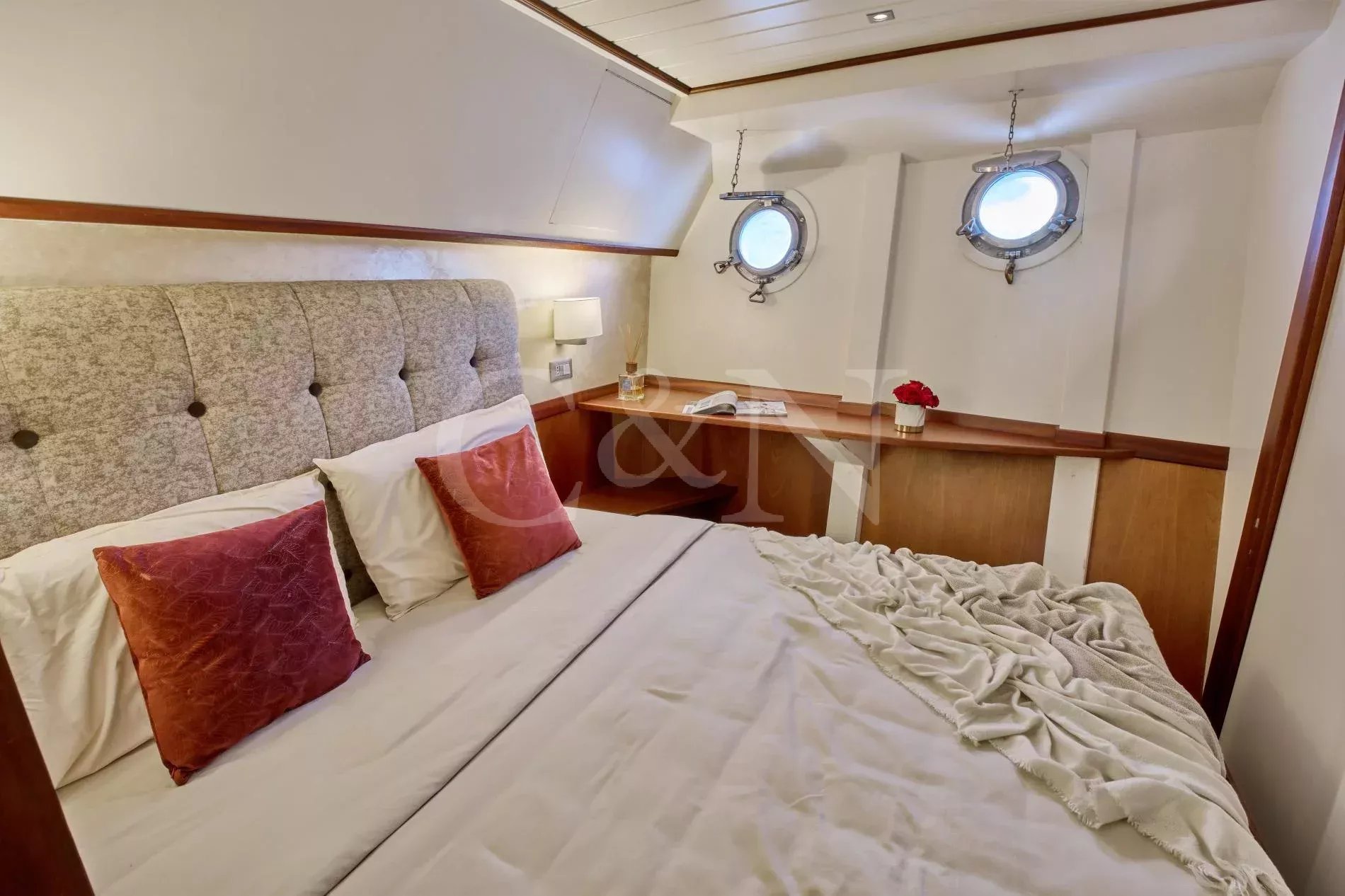 A timeless expression of Italian yacht craftsmanship, Amphitrite is a rare opportunity to acquire one of only five Benetti 26D models ever built. This gentleman’s yacht encapsulates an era of classic yachting elegance, reimagined for contemporary cruising with thoughtful enhancements and a meticulous refit completed between 2021 and 2022.The aft cockpit is a shaded haven beneath the flybridge deck, offering a peaceful space for outdoor dining and relaxation. It features a circular table with flexible seating, ideal for enjoying views in comfort. Above, the flybridge is fitted with a fixed metalframe sun awning and a removable bimini aft, enhancing shade and comfort. The exterior teak decks, recently re-caulked and refinished, add visual warmth and a traditional yachting aesthetic.Designed by Luca Catino, the interior balances classic elegance with modern functionality. Refitted in 2022 by the Owner’s wife, the saloon is bright and welcoming, flooded with natural light from large windows. A central dining table seats six comfortably, extendable to eight for larger gatherings. Toward the bow, a relaxed lounge area features an L-shaped sofa, armchair, pouf and coffee table, alongside a 65” television. To port, a staircase leads to the guest accommodation, while a separate set of stairs by the galley provides discreet access to the crew quarters, ensuring complete privacy for all guests. The enclosed galley is spacious and well-ventilated, fully equipped with modern appliances including a full-size refrigerator, induction cooktop, built-in oven and microwave, dishwasher, and a convenient washer-dryer unit.Amphitrite accommodates up to six guests across three ensuite cabins. The master stateroom offers a generous double bed, while the two guest cabins each feature twin berths. All cabins are appointed with private bathrooms and their own televisions, ensuring a relaxing onboard experience. The crew quarters, suitable for four, are accessed independently, maintaining guest privacy and a smooth operational flow.Powered by twin GM Detroit Diesel engines overhauled in 2022, Amphitrite delivers reliable performance with low engine hours. New batteries were installed in February 2025, and she is scheduled for dry docking in May for annual maintenance, including antifouling and teak upkeep. Her robust engineering, paired with considered upgrades and continuous care, ensures readiness for her next voyage.