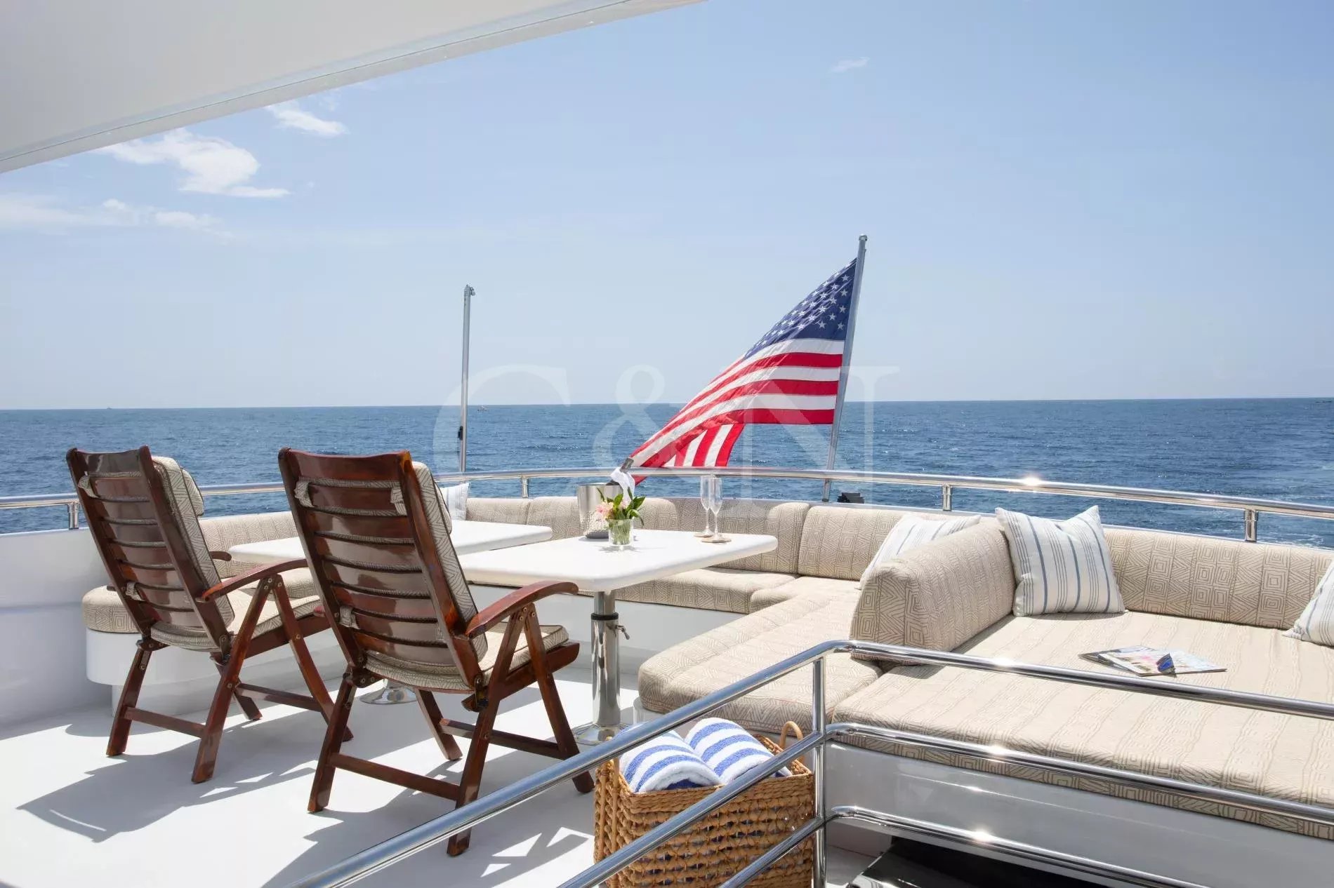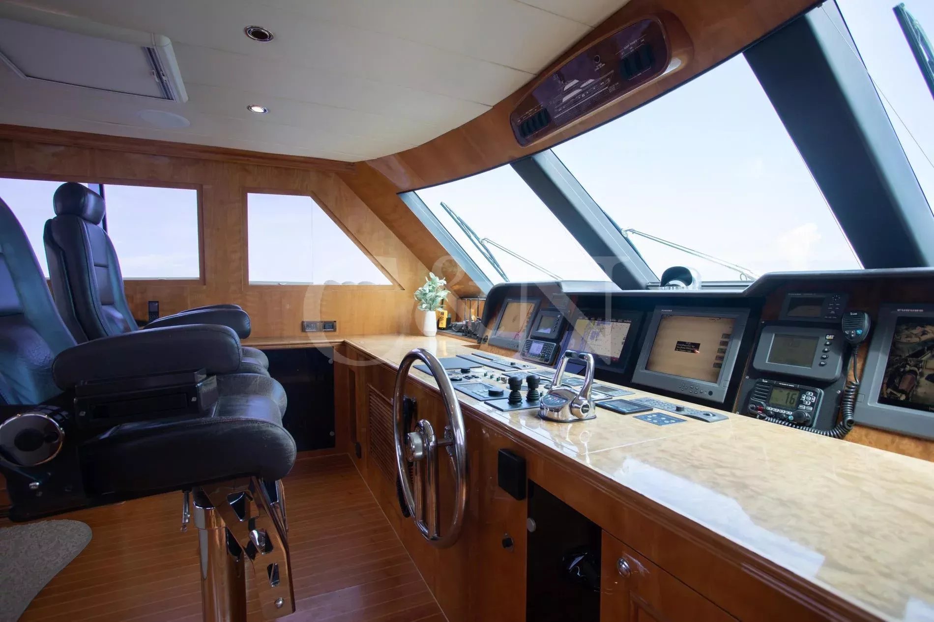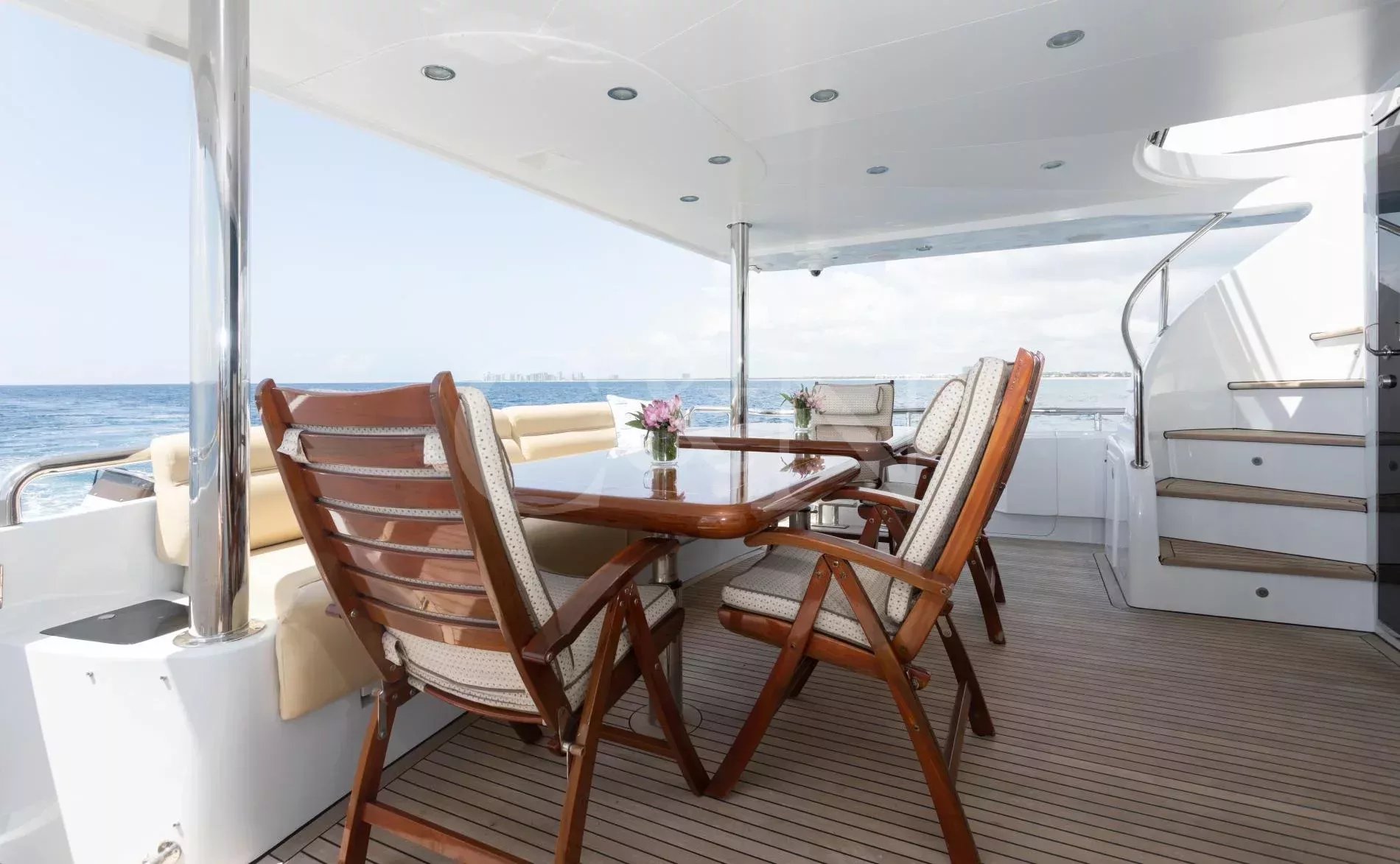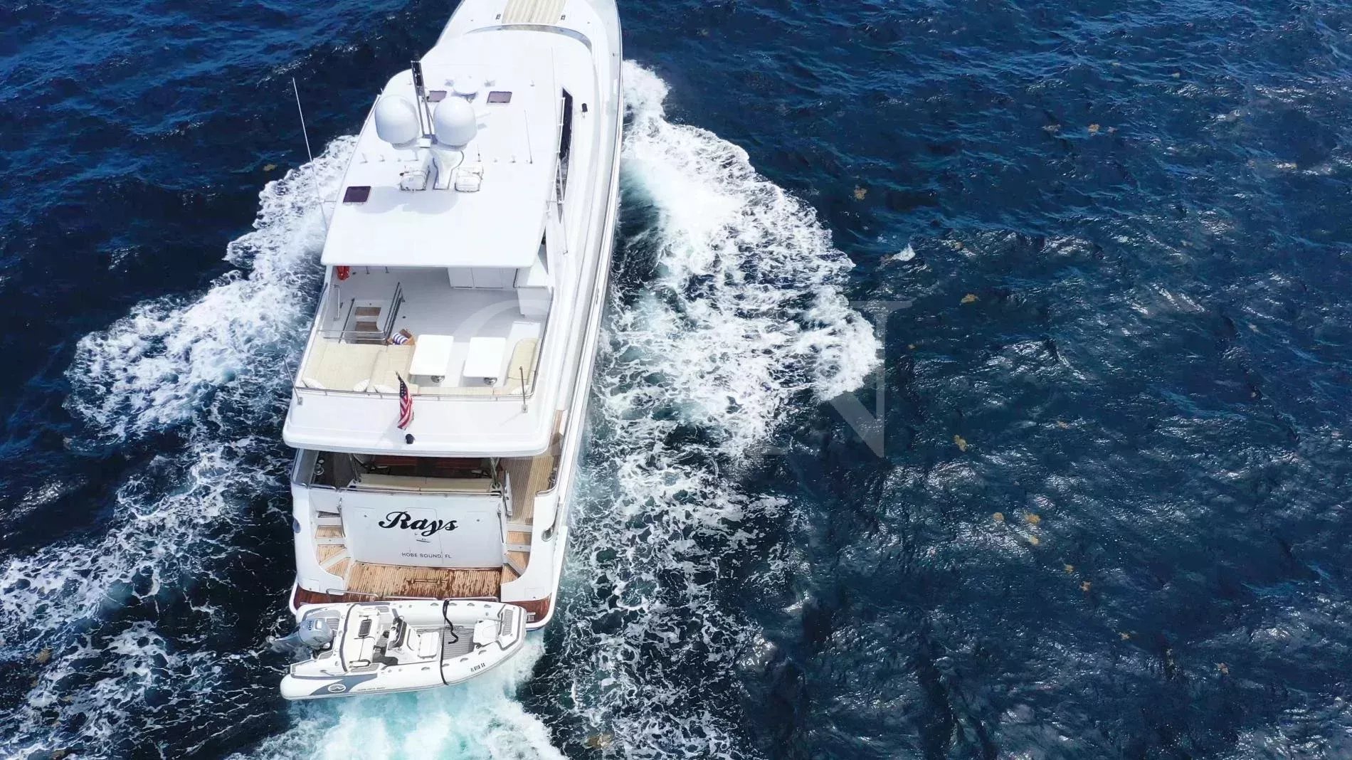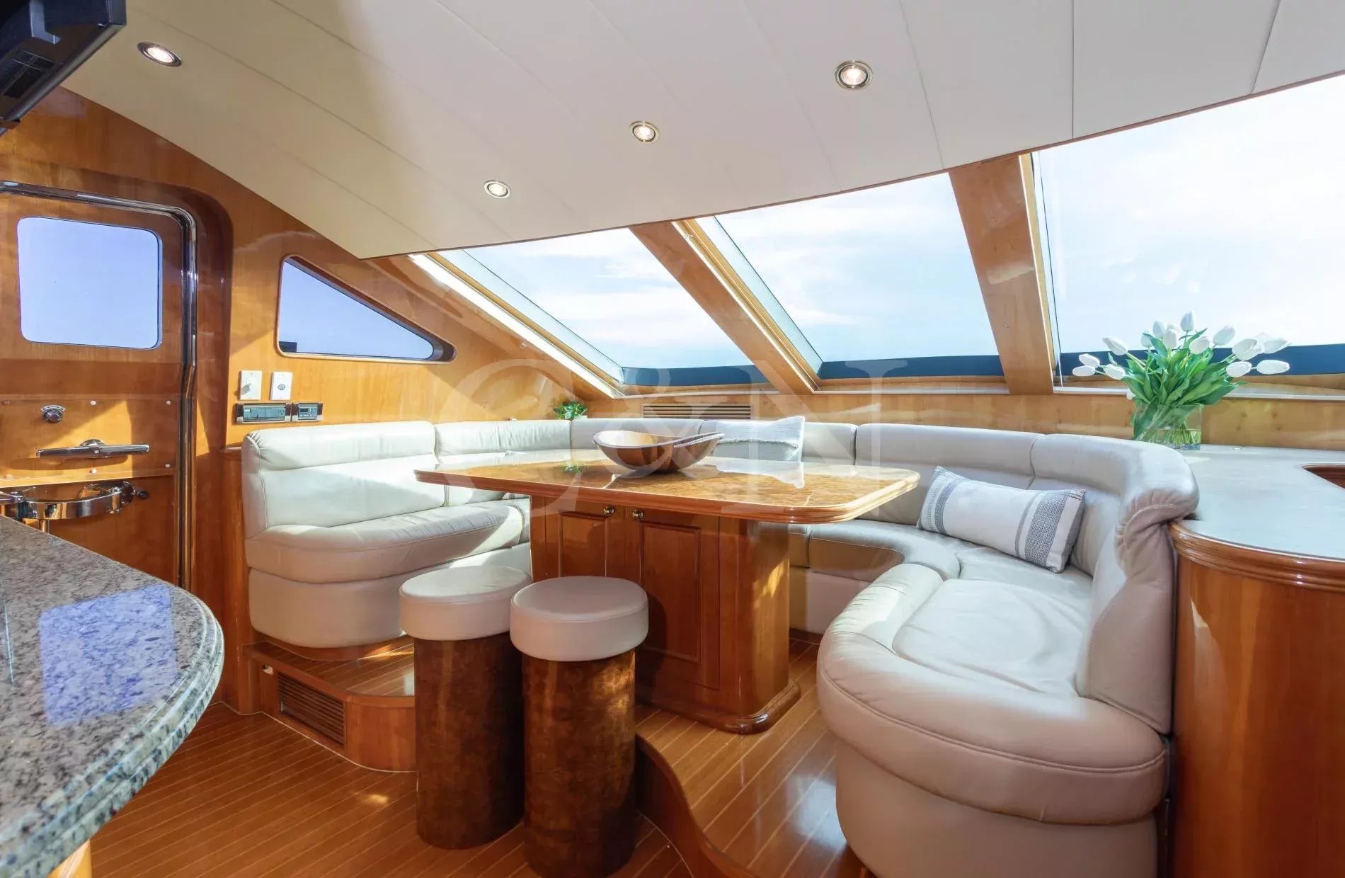 Rays is a rare example of a Horizon Elegance 82 with an enclosed, fully air-conditioned flybridge, offering all-weather comfort and long-range capability. Privately owned and well maintained, she joins the market fresh from a 2025 repaint and a suite of winter upgrades.A large sky lounge is a standout feature, fully enclosed and air-conditioned for year-round enjoyment. Sliding glass doors lead to an open aft deck complete with a BBQ, wet bar, and al fresco dining area. A second al fresco dining space is found below, while walkaround decks lead forward to a sun pad on the bow. A large extended swim platform offers easy water access and discreet entry to crew areas.High-gloss cherry cabinetry runs throughout a lightfilled interior. The main salon offers wraparound seating, panoramic windows, a 50” TV, and a full wet bar. A country-style galley features granite countertops, Sub-Zero appliances, and a cosy dinette for six.Rays sleeps six guests across three en suite cabins: a full-beam master with king bed, walk-in wardrobe, and his-and-hers bathroom separated by a marble shower; a VIP cabin with queen bed; and a convertible twin. All bathrooms are finished in travertine marble, Head Hunter heads, and Grohe fixtures.Twin 1,550hp CAT C-30 engines provide robust, reliable performance with a top speed of 22 knots and an economical 10-knot speed that burns just 10 gallons per hour. She’s equipped with ABT Trac stabilisers, hydraulic bow and stern thrusters, and has undergone significant upgrades across her mechanical, electrical, A/C, and watermaker systems. Her most recent yard period included a full repaint and a new Kohler generator.