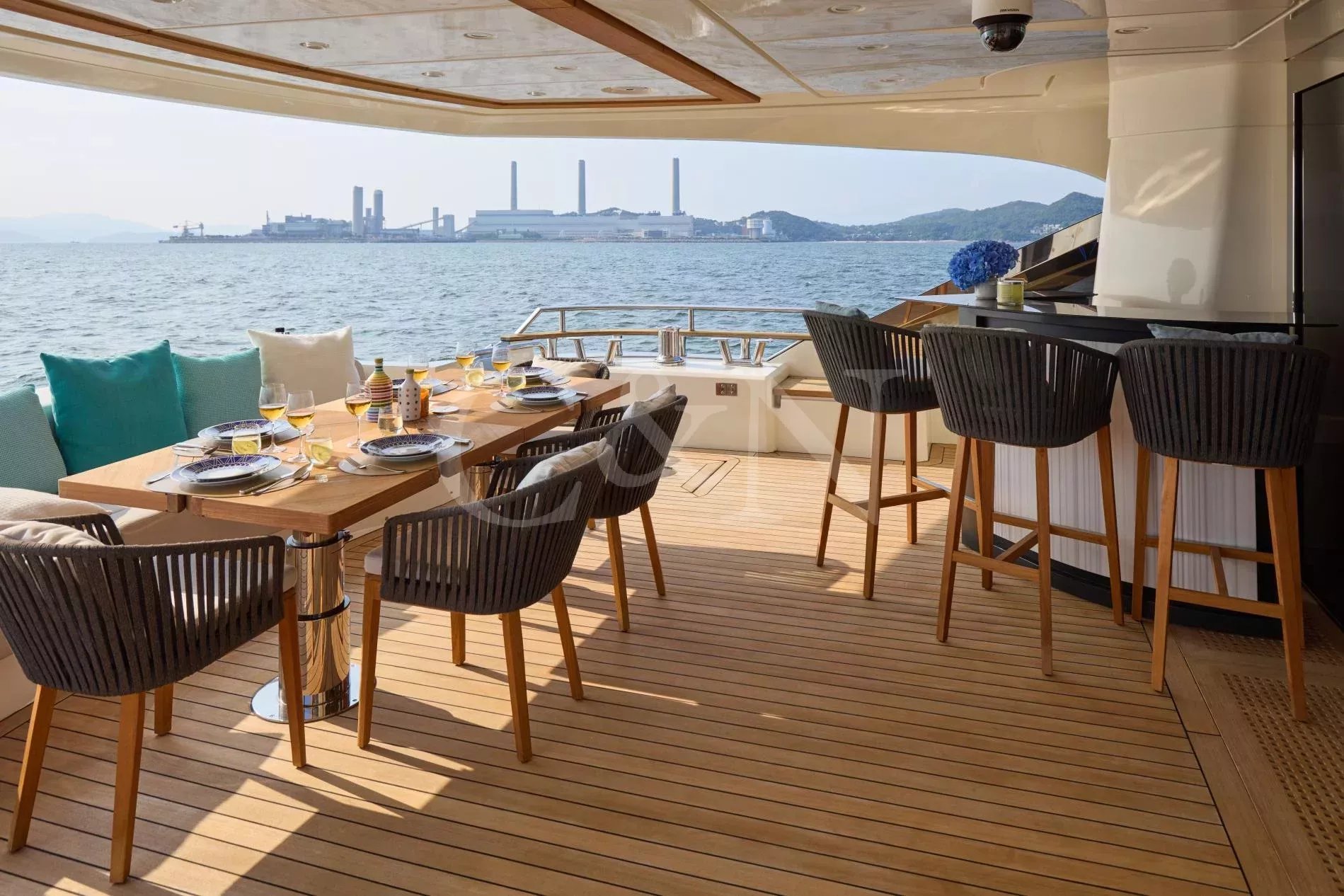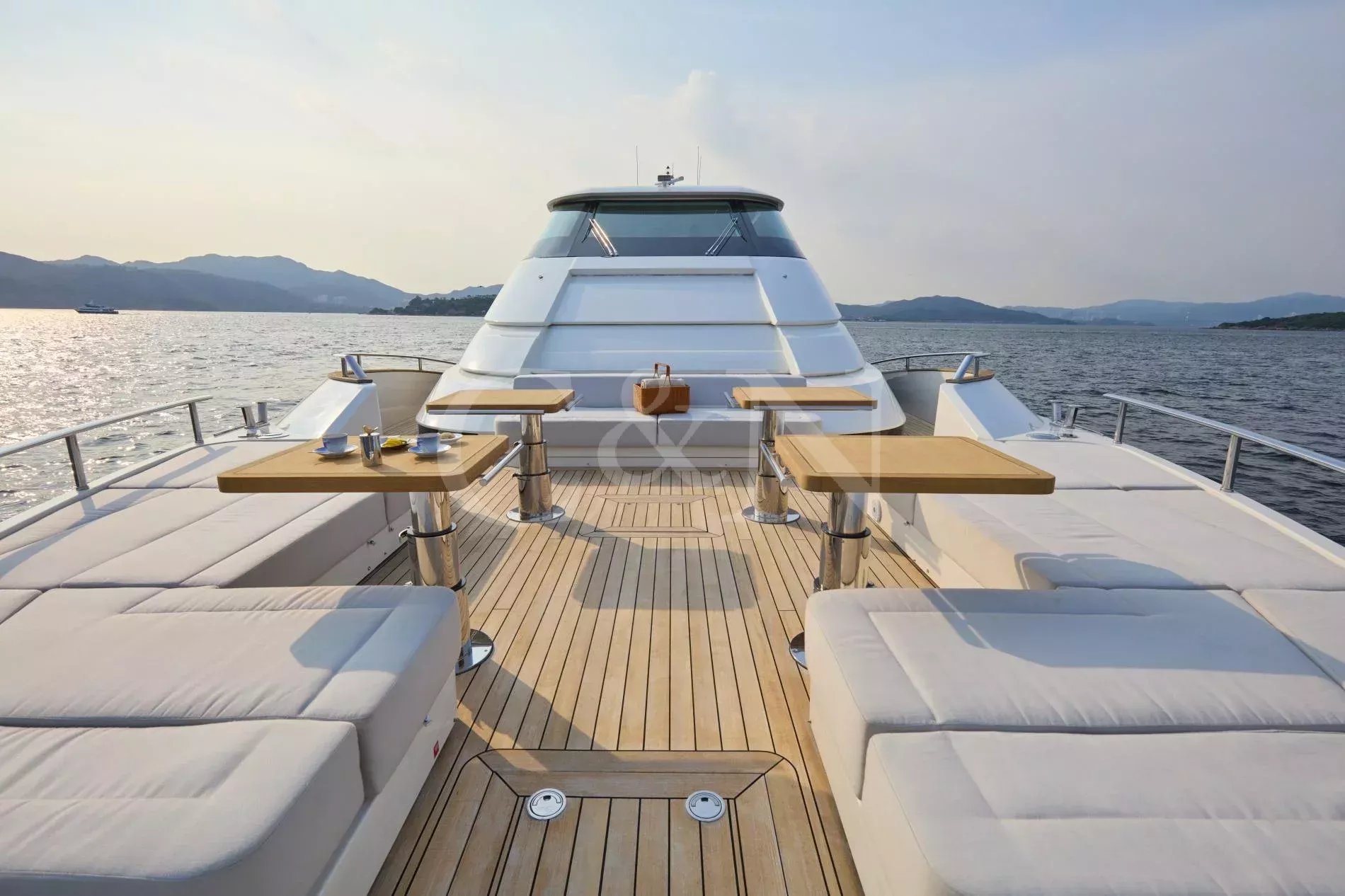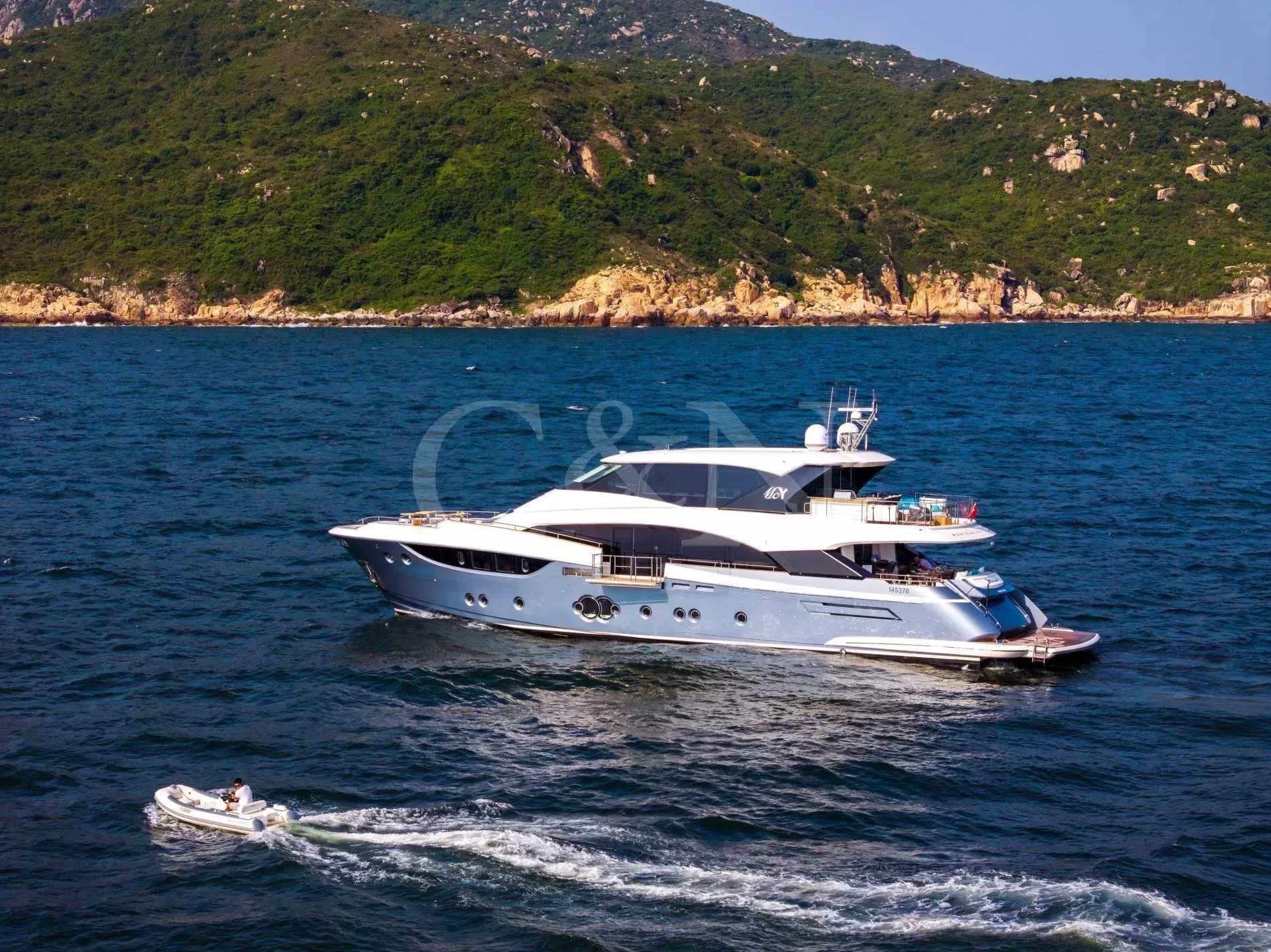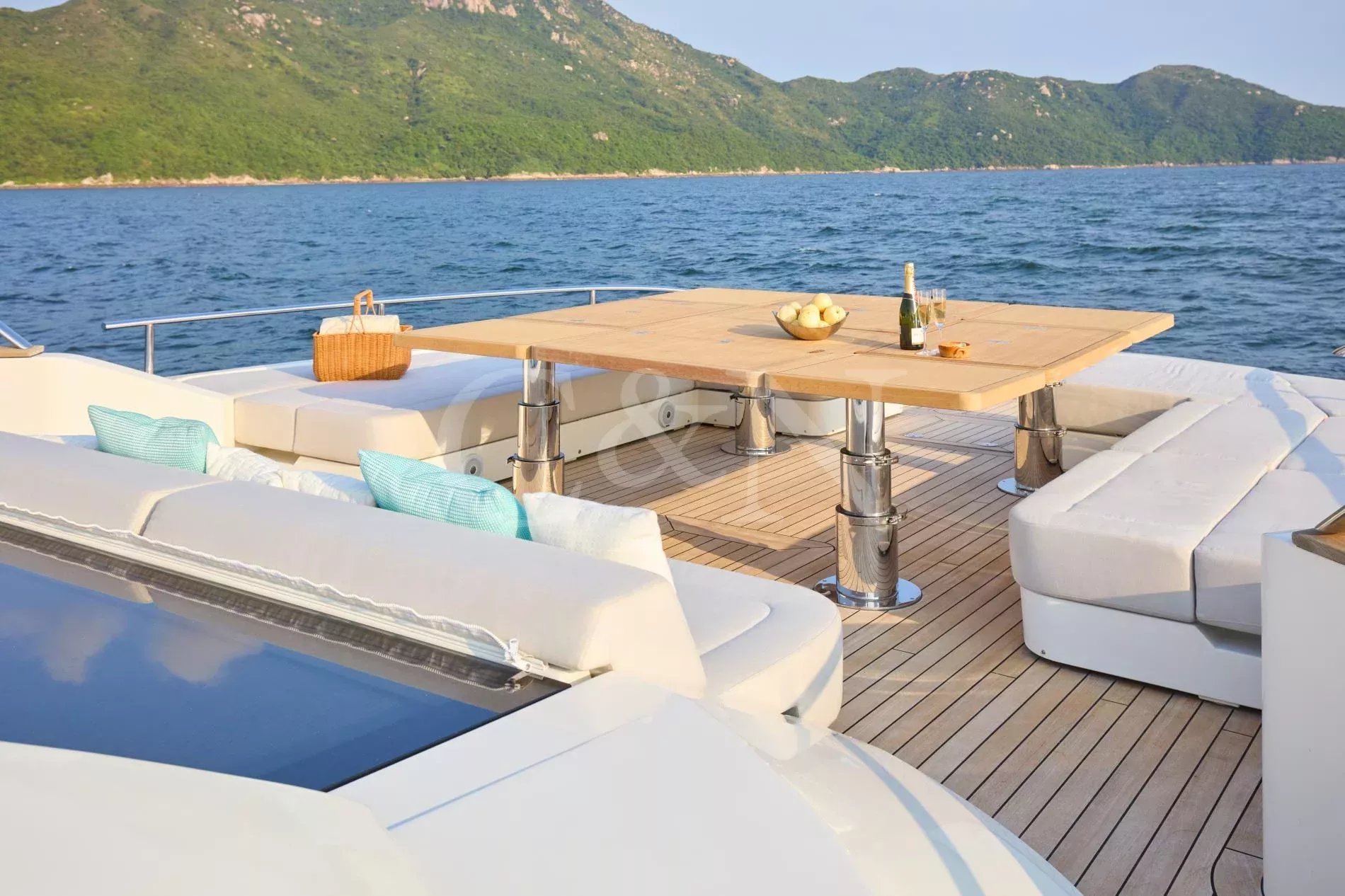 MIRAE stands apart from her sisterships as the only MCY 105 Skylounge built with an enclosed bridge deck — a custom enhancement that adds volume and all-seasons versatility to Monte Carlo Yachts’ flagship model. Designed by Nuvolari Lenard, she features the shipyard’s signature circular portholes and brings large yacht thinking to a 32m platform, with drop-down balconies, extended glazing, and flexible exterior decks. Launched in 2023 and still under her original ownership, MIRAE is equipped for global cruising, with tropical-grade air conditioning and a shore power converter ensuring comfort and compatibility wherever she voyages.MIRAE’s exterior spaces are exceptionally versatile, offering a variety of settings that seamlessly transition from day to night. At the bow, a configurable lounge allows for both relaxed coffee settings and full dining, thanks to convertible tables and built-in sofas. Aft, the main deck features integrated seating with high-low tables and an indoor-outdoor bar that serves both the aft deck and main salon. A third outdoor entertainment area is found on the sky lounge aft, complete with an open-air galley equipped with a fridge, sink, an electric grill and a professional BBQ.MIRAE offers a bright and open interior with a fresh, beach-house feel. On the main deck, the salon opens to the sea on both sides, with drop-down balconies accessed via full height sliding glass doors. That sense of openness continues in the sky lounge, where wraparound glazing and overhead skylights illuminate the space and offer near-360-degree views. A circular, custom-made dining table extends to seat eight to ten guests, while a pair of comfortable sofas creates a welcoming lounge area. The helm station is discreetly partitioned from the lounge, and in fair weather, folding patio-style glass doors open the sky lounge to the aft deck, creating a seamless indoor-outdoor space. Light woods, accents of teal and aquamarine and refined materials create a contemporary feel throughout.Accommodation aboard MIRAE is arranged across five cabins, comfortably sleeping up to 12 guests. The master suite sits forward on the main deck and features a skylight that offers plenty of natural light, chaise longue, desk, his-and-hers wardrobes, and an en suite. On the lower deck, two mirror-image VIP doubles are joined by two twin cabins, each with a Pullman bunk and beds that can be converted into doubles. In the VIP suites, the Monte Carlo Yachts’ signature intersecting portholes adds a distinctive design detail to the light-filled spaces. State-of-the-art navigation systems—including GPS, radar, and autopilot—ensure accurate, stress-free cruising. Safety is paramount, with life rafts, fire suppression systems, and advanced communication tools providing reliable protection at sea. Smart home integration allows effortless control of lighting, climate, and entertainment from anywhere on board. A tropical-grade 324,000 BTU air conditioning system keeps interiors cool and comfortable in any climate, while Seakeeper stabilisers ensure a smooth, stable ride in all sea conditions. Designed for both relaxation and adventure, MIRAE features a hydraulic swim platform with a 1,200kg lifting capacity for easy tender launch and recovery. A spacious garage securely houses a 4.45m tender and a jet ski, maximizing deck space. A shore power converter adds global versatility, allowing seamless connection to varying electrical systems worldwide.
