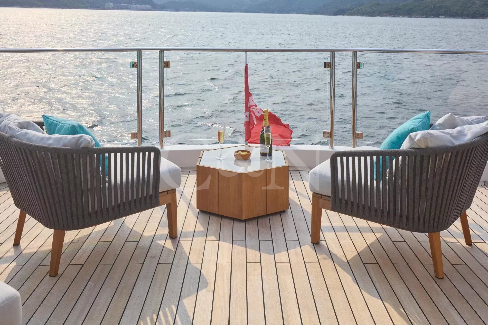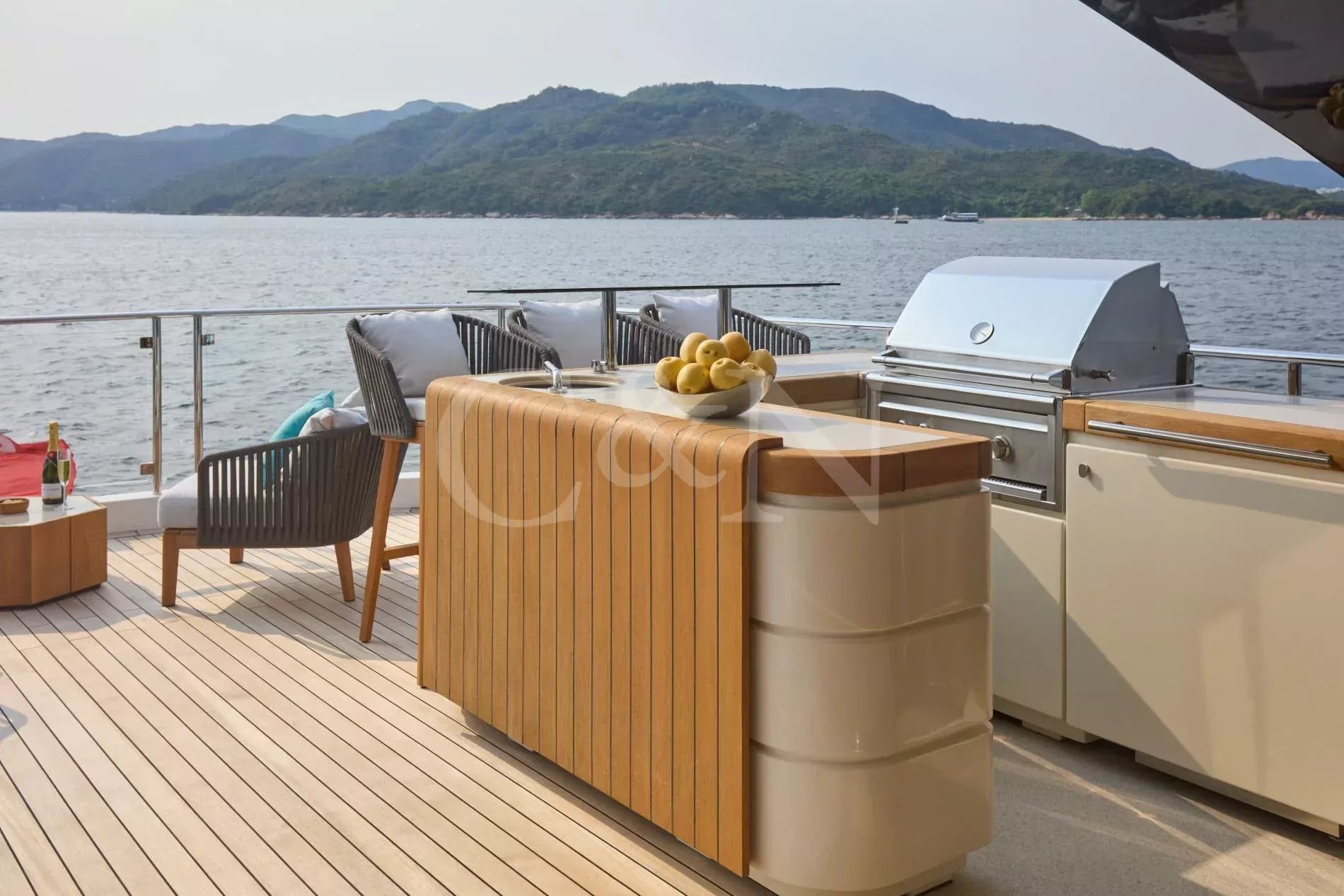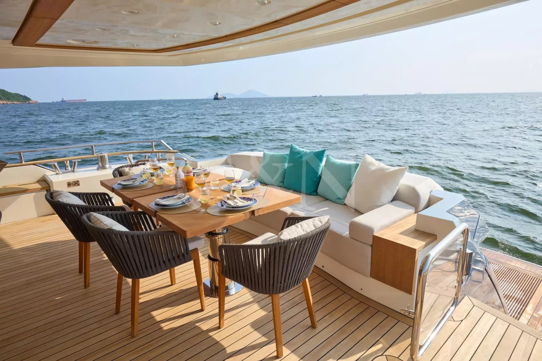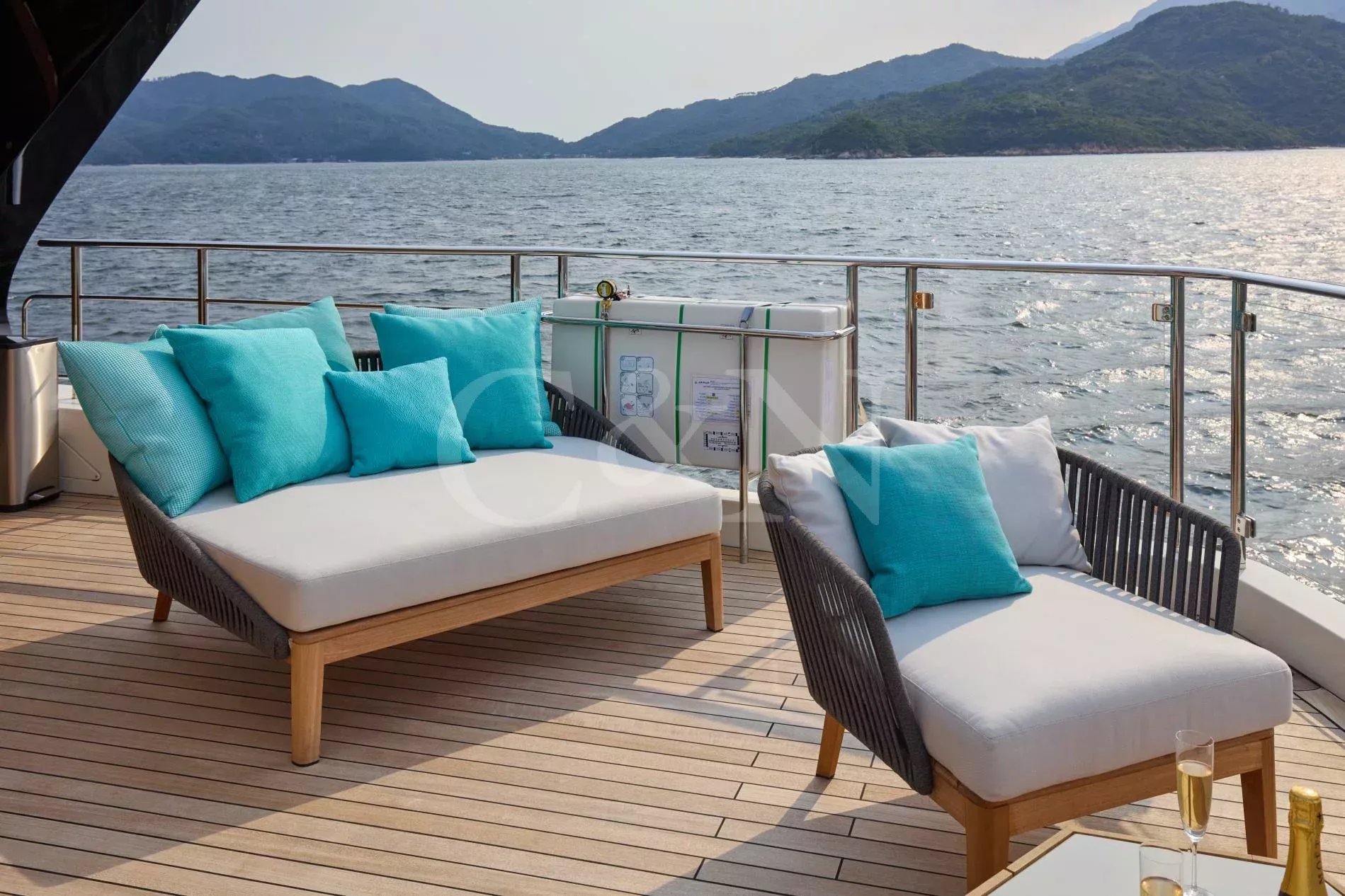 MIRAE stands apart from her sisterships as the only MCY 105 Skylounge built with an enclosed bridge deck — a custom enhancement that adds volume and all-seasons versatility to Monte Carlo Yachts’ flagship model. Designed by Nuvolari Lenard, she features the shipyard’s signature circular portholes and brings large yacht thinking to a 32m platform, with drop-down balconies, extended glazing, and flexible exterior decks. Launched in 2023 and still under her original ownership, MIRAE is equipped for global cruising, with tropical-grade air conditioning and a shore power converter ensuring comfort and compatibility wherever she voyages.MIRAE’s exterior spaces are exceptionally versatile, offering a variety of settings that seamlessly transition from day to night. At the bow, a configurable lounge allows for both relaxed coffee settings and full dining, thanks to convertible tables and built-in sofas. Aft, the main deck features integrated seating with high-low tables and an indoor-outdoor bar that serves both the aft deck and main salon. A third outdoor entertainment area is found on the sky lounge aft, complete with an open-air galley equipped with a fridge, sink, an electric grill and a professional BBQ.MIRAE offers a bright and open interior with a fresh, beach-house feel. On the main deck, the salon opens to the sea on both sides, with drop-down balconies accessed via full height sliding glass doors. That sense of openness continues in the sky lounge, where wraparound glazing and overhead skylights illuminate the space and offer near-360-degree views. A circular, custom-made dining table extends to seat eight to ten guests, while a pair of comfortable sofas creates a welcoming lounge area. The helm station is discreetly partitioned from the lounge, and in fair weather, folding patio-style glass doors open the sky lounge to the aft deck, creating a seamless indoor-outdoor space. Light woods, accents of teal and aquamarine and refined materials create a contemporary feel throughout.Accommodation aboard MIRAE is arranged across five cabins, comfortably sleeping up to 12 guests. The master suite sits forward on the main deck and features a skylight that offers plenty of natural light, chaise longue, desk, his-and-hers wardrobes, and an en suite. On the lower deck, two mirror-image VIP doubles are joined by two twin cabins, each with a Pullman bunk and beds that can be converted into doubles. In the VIP suites, the Monte Carlo Yachts’ signature intersecting portholes adds a distinctive design detail to the light-filled spaces. State-of-the-art navigation systems—including GPS, radar, and autopilot—ensure accurate, stress-free cruising. Safety is paramount, with life rafts, fire suppression systems, and advanced communication tools providing reliable protection at sea. Smart home integration allows effortless control of lighting, climate, and entertainment from anywhere on board. A tropical-grade 324,000 BTU air conditioning system keeps interiors cool and comfortable in any climate, while Seakeeper stabilisers ensure a smooth, stable ride in all sea conditions. Designed for both relaxation and adventure, MIRAE features a hydraulic swim platform with a 1,200kg lifting capacity for easy tender launch and recovery. A spacious garage securely houses a 4.45m tender and a jet ski, maximizing deck space. A shore power converter adds global versatility, allowing seamless connection to varying electrical systems worldwide.