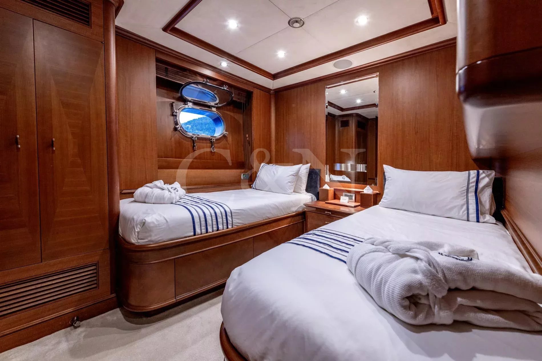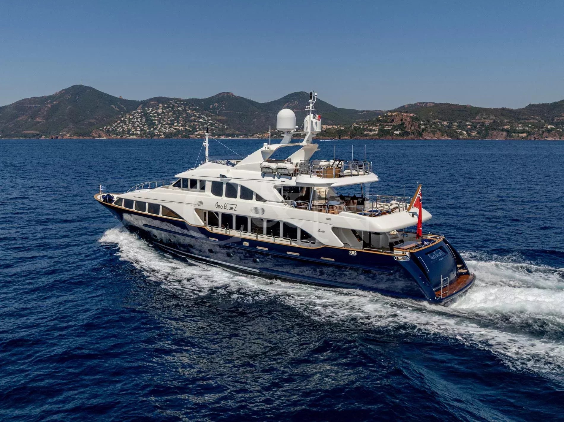 Sea BlueZ is a 36.50-metre Benetti Classic 120, one of the most successful semi-custom series in the yard’s history. Evolving from the smaller but influential Classic 115, the 120 model refined the formula with greater volume, enhanced deck layouts, and extended cruising capability. Sea BlueZ is a prime example of this evolution and reflects the hallmarks of Benetti craftsmanship: elegance, reliability, and a layout that continues to resonate with owners. Still under her original ownership, a rare distinction for a yacht of this calibre, she has been maintained to an exceptional standard and is presented in outstanding condition. With dual commercial compliance and EU VAT paid, she offers broad appeal for both personal use and charter operations.Life on deck is relaxed and inviting, with three expansive levels to enjoy. The sundeck is a signature space, featuring a raised Jacuzzi with a curve of sun pads, as well as a high-lo table and plenty of room for additional loungers, daybeds or gym equipment. A circular dining table on the upper deck offers an elegant setting for al fresco dining, surrounded by wide teak chairs and complemented by a shaded lounge area. Another outdoor dining spot is tucked into the contour of the main deck aft. At the stern, a hydraulic transom door folds down to form a generous swim platform, ideal for launching toys, sea swims and tender boarding. Just inside, the garage offers dedicated storage for a tender and watersports equipment.Styled by François Zuretti, the interior is wrapped in warm wood panelling with decorative joinery throughout, where subtle geometric patterns bring texture and character to each space. In the main salon, a lounge, sit-up bar and dining table for ten guests are subtly divided by a central staircase leading to the lower deck accommodation. Upstairs, the upper salon offers a more intimate escape, complete with a second bar, games table, and a library area. The interior has been continuously updated and thoughtfully refreshed since her delivery.Sea BlueZ welcomes up to 10 guests in five en suite cabins, including a forward-facing master suite on the main deck, with a pop-up television, steam shower, and walk-in wardrobe. Guest accommodation is comprised of two VIP cabins and two twin cabins (one with a Pullman berth) on the lower deck.Under the stewardship of her long-term captain, who has remained on board for 15 years, Sea BlueZ benefits from operational continuity, with all systems regularly inspected and serviced, and her 20-year ABS class survey completed in 2026.