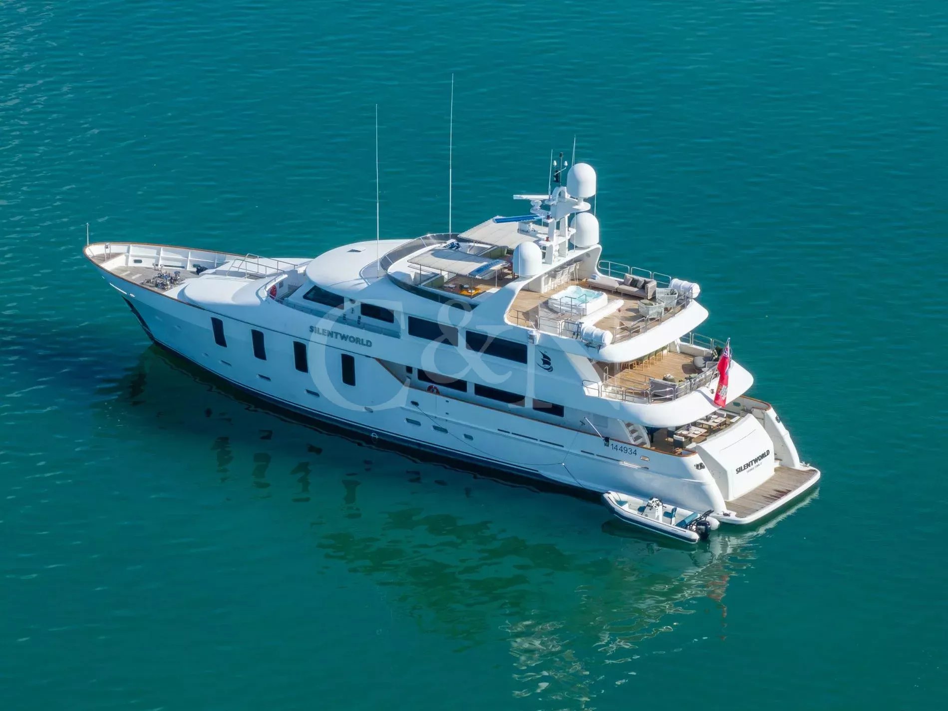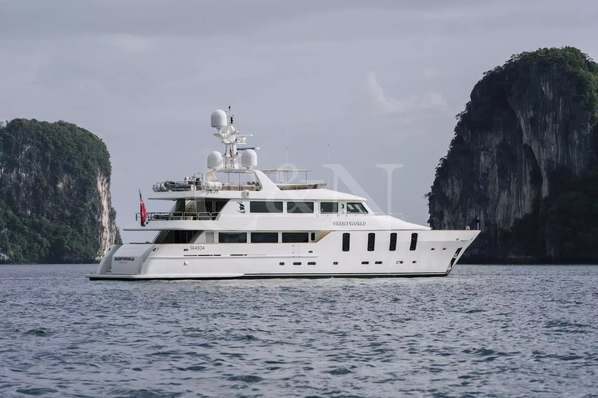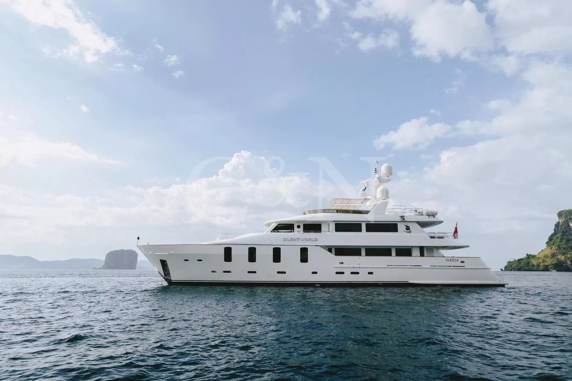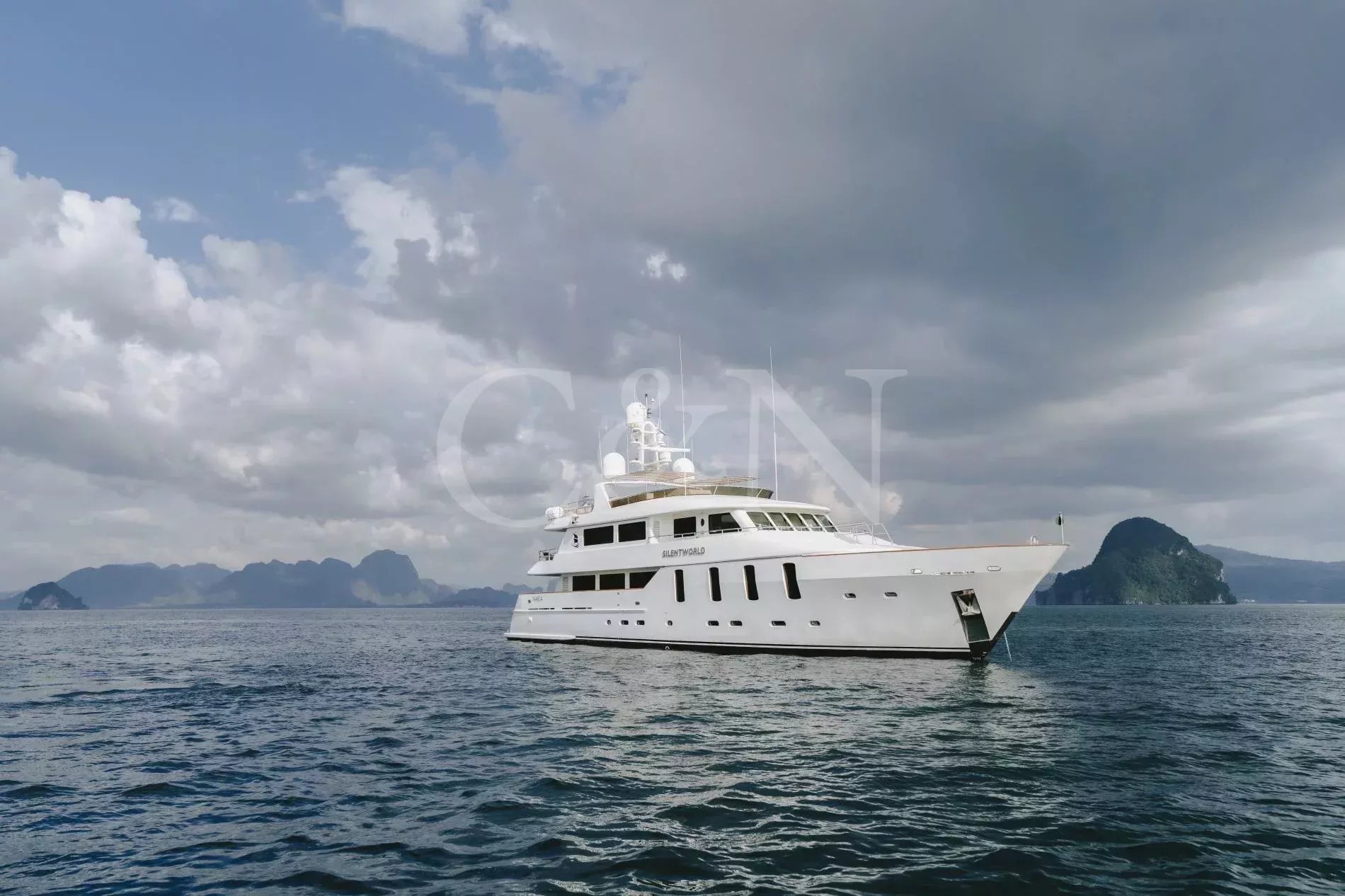 Silentworld is one of the largest yachts for sale in the Pacific today and one of the most capable. She offers true transoceanic range paired with remarkably low fuel consumption, making her ideal for extended cruising. Since her launch in 2006, she has travelled extensively across Southeast Asia, Fiji, Vanuatu, the Cook Islands and Pitcairn, a testament to her reliability and ocean-going pedigree. She also boasts a Thai charter licence and a charter track record, making her a compelling proposition for both private and commercial use.A 2023 interior refit has given Silentworld a more contemporary feel while preserving her warm, traditional soul. Glossy walnut joinery pairs with pale carpets and expansive windows that allows natural light to pour into the salon and dining area, enhancing the sense of space throughout. Above, the sky lounge transforms at whim into a private cinema or game room. Even the operational spaces have been thoughtfully designed, with a large bridge and substantial galley.The main deck master suite rivals those found aboard yachts well over 50 metres, with large vertical windows and forward sliding doors that reveal an en suite clad in pink marble with a central bathtub. Below, a traditional four-cabin layout offers two doubles and two twins, with accommodation for six crew. An additional double cabin on the bridge deck, currently in use as the captain’s quarters, offers additional flexibility and can repurposed as a sixth guest suite, gym or office.Spacious and versatile, her decks are a natural extension of her adventurous soul. The sundeck features a spa pool, BBQ, relaxed al fresco dining beneath twin awnings, and an additional helm station for close-quarters navigation. On the bridge deck aft, a sheltered dining table and lounge offer the perfect backdrop for long breakfasts or breezy dinners at anchor. Loose daybeds, ottomans and coffee tables create a configurable open-air space with sliding semi-automatic doors leading into the upper salon. Lloyd’s Class and commercially registered , Silentworld is fully compliant for charter operation. Her transoceanic range of over 4,000 nautical miles, combined with low fuel consumption of just 145 litres per hour at cruising speed, make her a capable and economical long-range cruiser. In recent years, she has undergone significant mechanical upgrades, including full engine rebuilds, new teak decks, and extensive servicing or replacement of major systems including air conditioning and power management.