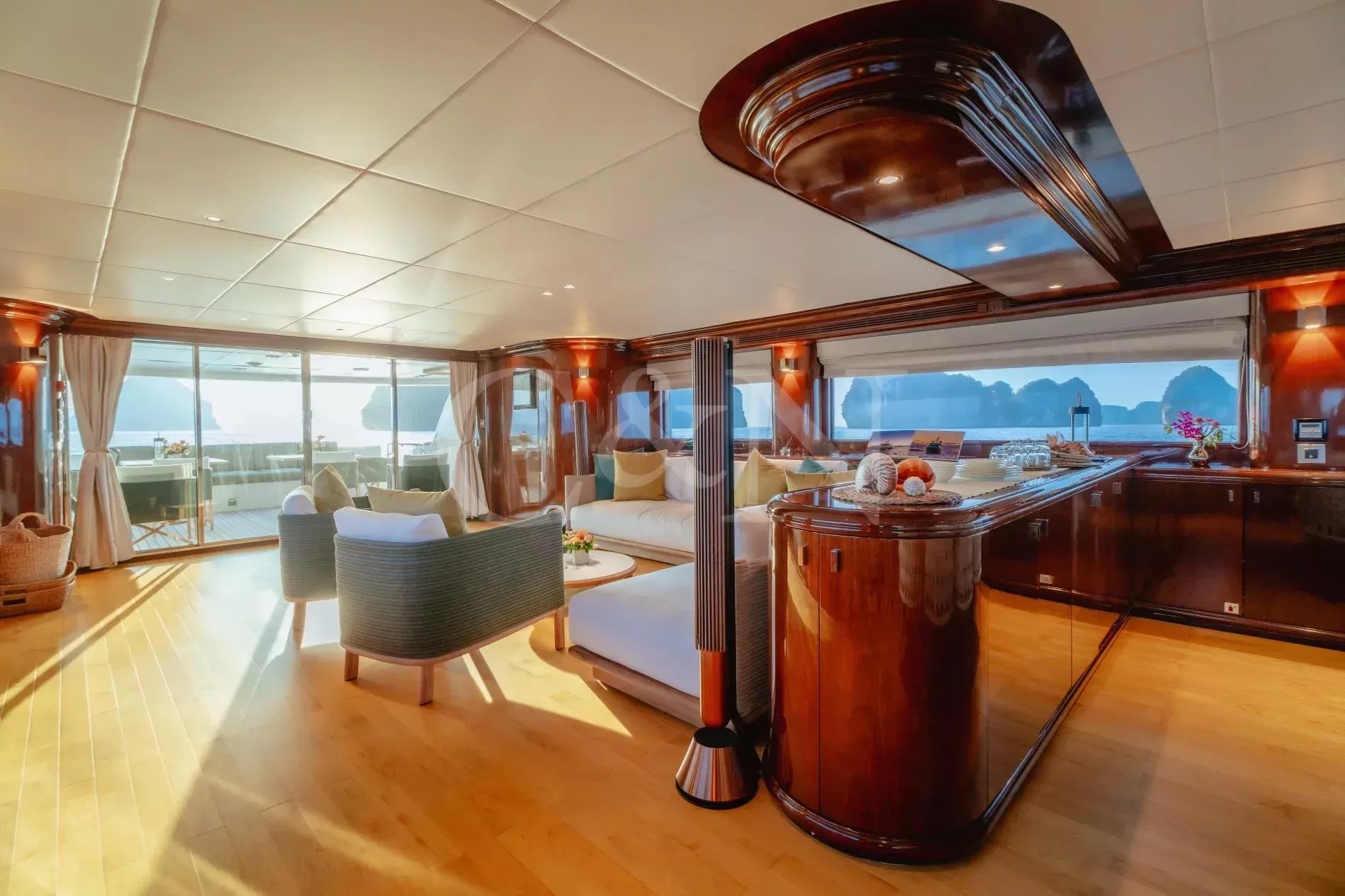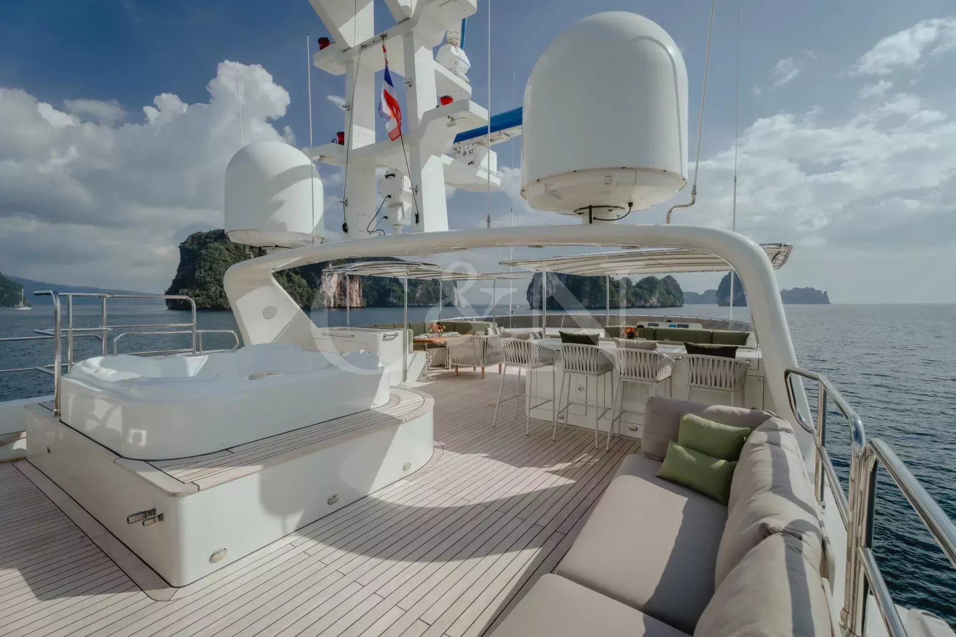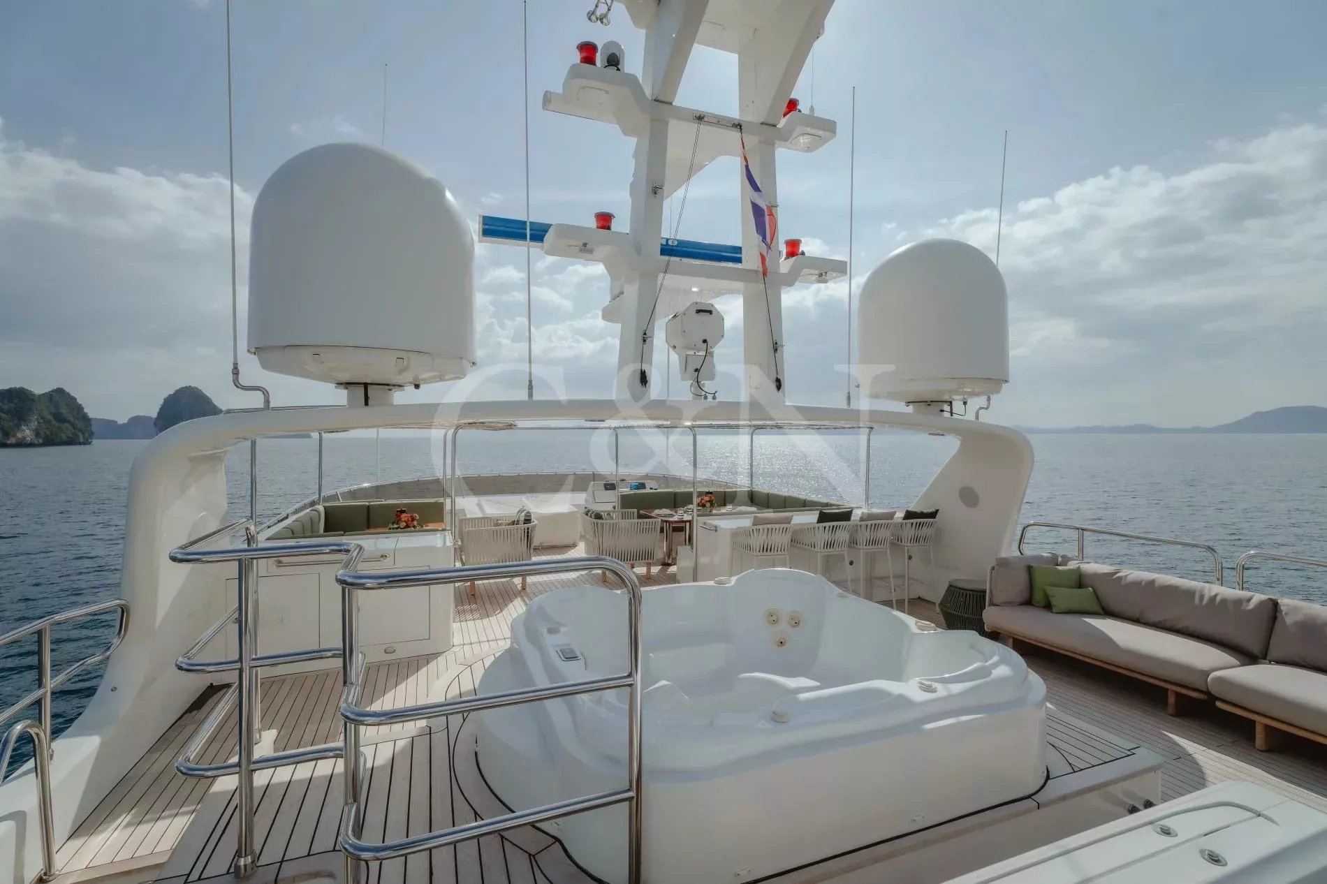 Silentworld is one of the largest yachts for sale in the Pacific today and one of the most capable. She offers true transoceanic range paired with remarkably low fuel consumption, making her ideal for extended cruising. Since her launch in 2006, she has travelled extensively across Southeast Asia, Fiji, Vanuatu, the Cook Islands and Pitcairn, a testament to her reliability and ocean-going pedigree. She also boasts a Thai charter licence and a charter track record, making her a compelling proposition for both private and commercial use.A 2023 interior refit has given Silentworld a more contemporary feel while preserving her warm, traditional soul. Glossy walnut joinery pairs with pale carpets and expansive windows that allows natural light to pour into the salon and dining area, enhancing the sense of space throughout. Above, the sky lounge transforms at whim into a private cinema or game room. Even the operational spaces have been thoughtfully designed, with a large bridge and substantial galley.The main deck master suite rivals those found aboard yachts well over 50 metres, with large vertical windows and forward sliding doors that reveal an en suite clad in pink marble with a central bathtub. Below, a traditional four-cabin layout offers two doubles and two twins, with accommodation for six crew. An additional double cabin on the bridge deck, currently in use as the captain’s quarters, offers additional flexibility and can repurposed as a sixth guest suite, gym or office.Spacious and versatile, her decks are a natural extension of her adventurous soul. The sundeck features a spa pool, BBQ, relaxed al fresco dining beneath twin awnings, and an additional helm station for close-quarters navigation. On the bridge deck aft, a sheltered dining table and lounge offer the perfect backdrop for long breakfasts or breezy dinners at anchor. Loose daybeds, ottomans and coffee tables create a configurable open-air space with sliding semi-automatic doors leading into the upper salon. Lloyd’s Class and commercially registered , Silentworld is fully compliant for charter operation. Her transoceanic range of over 4,000 nautical miles, combined with low fuel consumption of just 145 litres per hour at cruising speed, make her a capable and economical long-range cruiser. In recent years, she has undergone significant mechanical upgrades, including full engine rebuilds, new teak decks, and extensive servicing or replacement of major systems including air conditioning and power management.