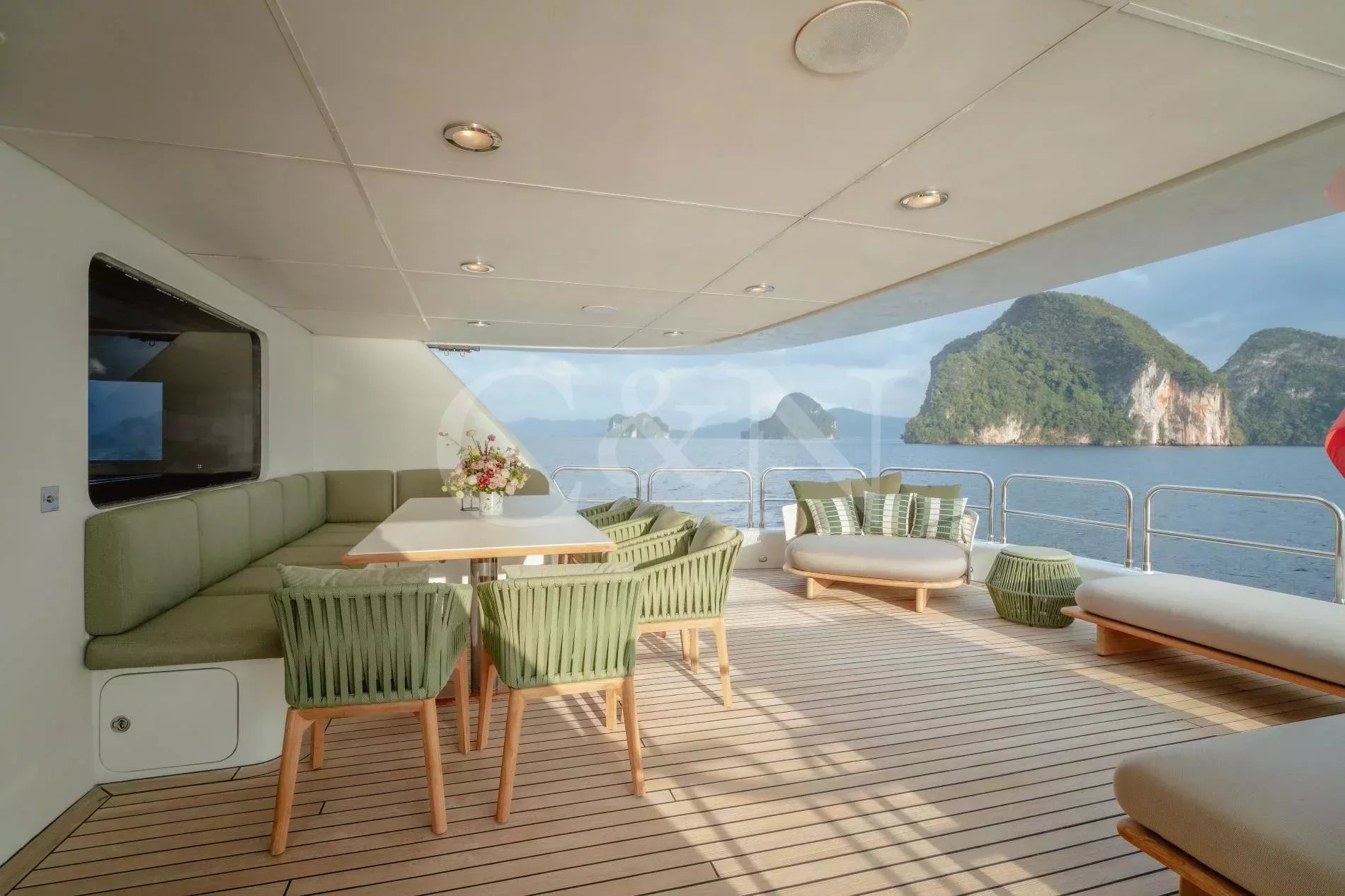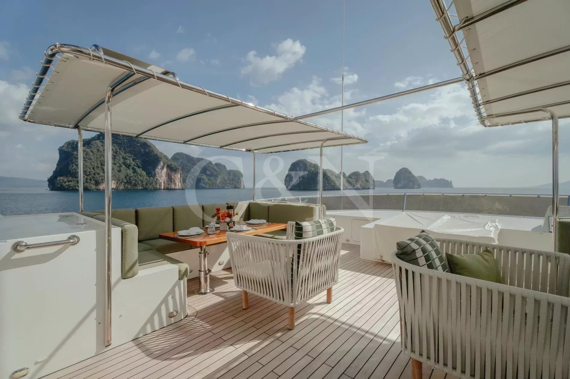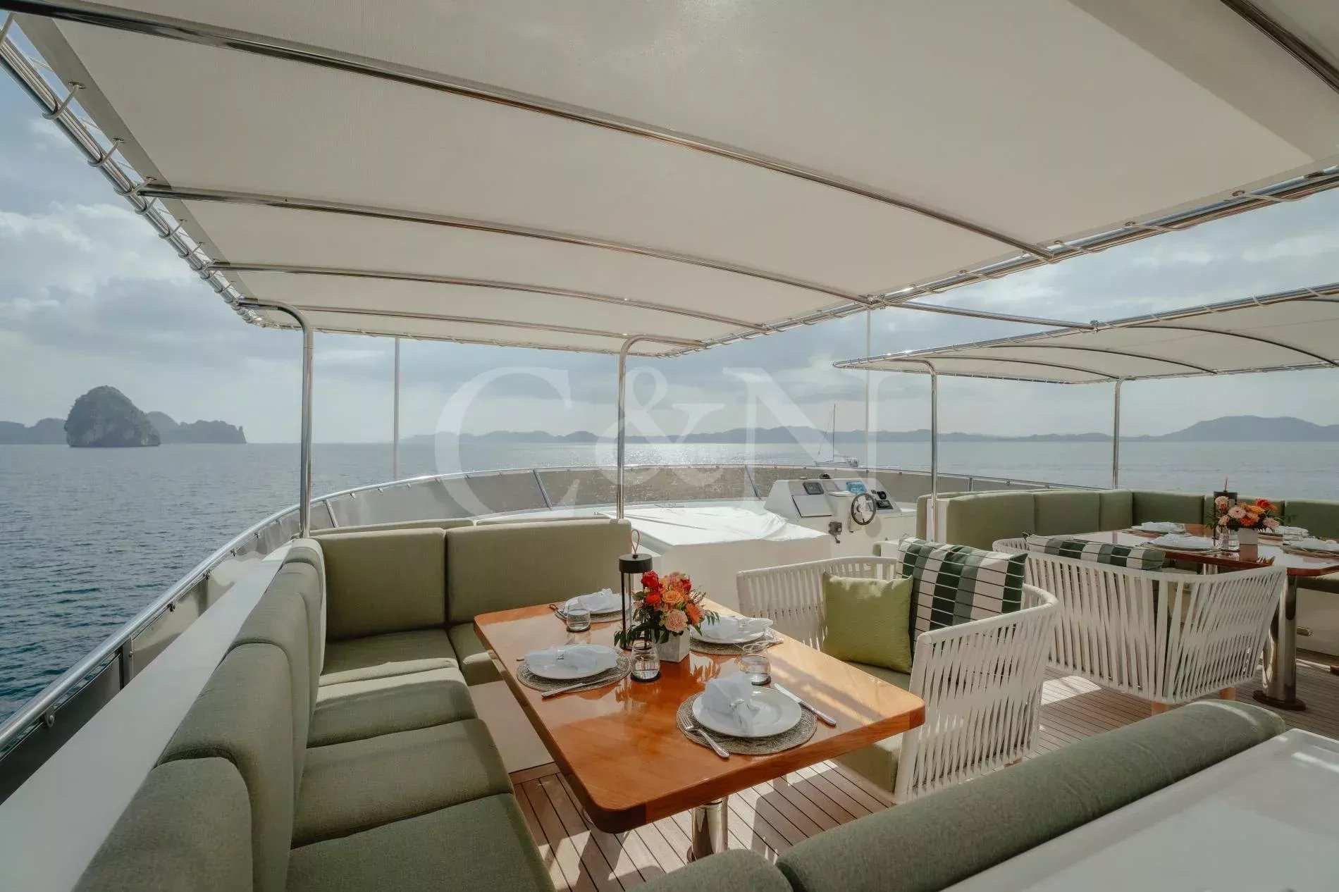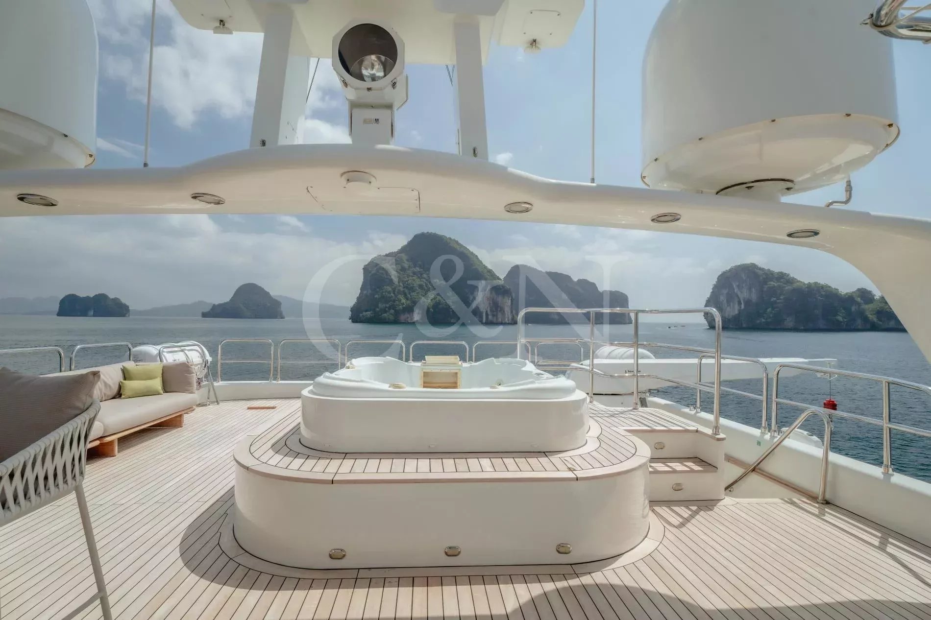 Silentworld is one of the largest yachts for sale in the Pacific today and one of the most capable. She offers true transoceanic range paired with remarkably low fuel consumption, making her ideal for extended cruising. Since her launch in 2006, she has travelled extensively across Southeast Asia, Fiji, Vanuatu, the Cook Islands and Pitcairn, a testament to her reliability and ocean-going pedigree. She also boasts a Thai charter licence and a charter track record, making her a compelling proposition for both private and commercial use.A 2023 interior refit has given Silentworld a more contemporary feel while preserving her warm, traditional soul. Glossy walnut joinery pairs with pale carpets and expansive windows that allows natural light to pour into the salon and dining area, enhancing the sense of space throughout. Above, the sky lounge transforms at whim into a private cinema or game room. Even the operational spaces have been thoughtfully designed, with a large bridge and substantial galley.The main deck master suite rivals those found aboard yachts well over 50 metres, with large vertical windows and forward sliding doors that reveal an en suite clad in pink marble with a central bathtub. Below, a traditional four-cabin layout offers two doubles and two twins, with accommodation for six crew. An additional double cabin on the bridge deck, currently in use as the captain’s quarters, offers additional flexibility and can repurposed as a sixth guest suite, gym or office.Spacious and versatile, her decks are a natural extension of her adventurous soul. The sundeck features a spa pool, BBQ, relaxed al fresco dining beneath twin awnings, and an additional helm station for close-quarters navigation. On the bridge deck aft, a sheltered dining table and lounge offer the perfect backdrop for long breakfasts or breezy dinners at anchor. Loose daybeds, ottomans and coffee tables create a configurable open-air space with sliding semi-automatic doors leading into the upper salon. Lloyd’s Class and commercially registered , Silentworld is fully compliant for charter operation. Her transoceanic range of over 4,000 nautical miles, combined with low fuel consumption of just 145 litres per hour at cruising speed, make her a capable and economical long-range cruiser. In recent years, she has undergone significant mechanical upgrades, including full engine rebuilds, new teak decks, and extensive servicing or replacement of major systems including air conditioning and power management.