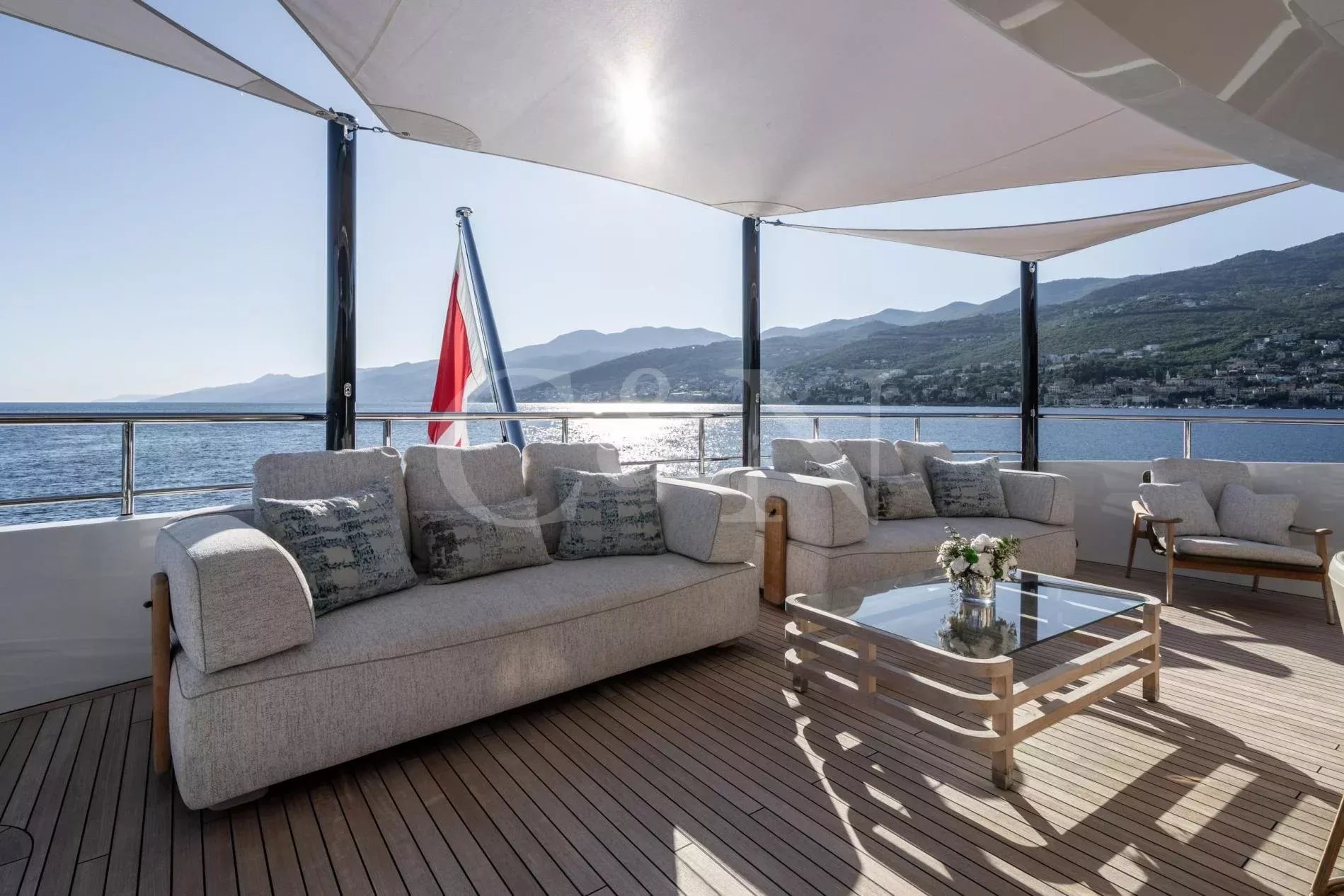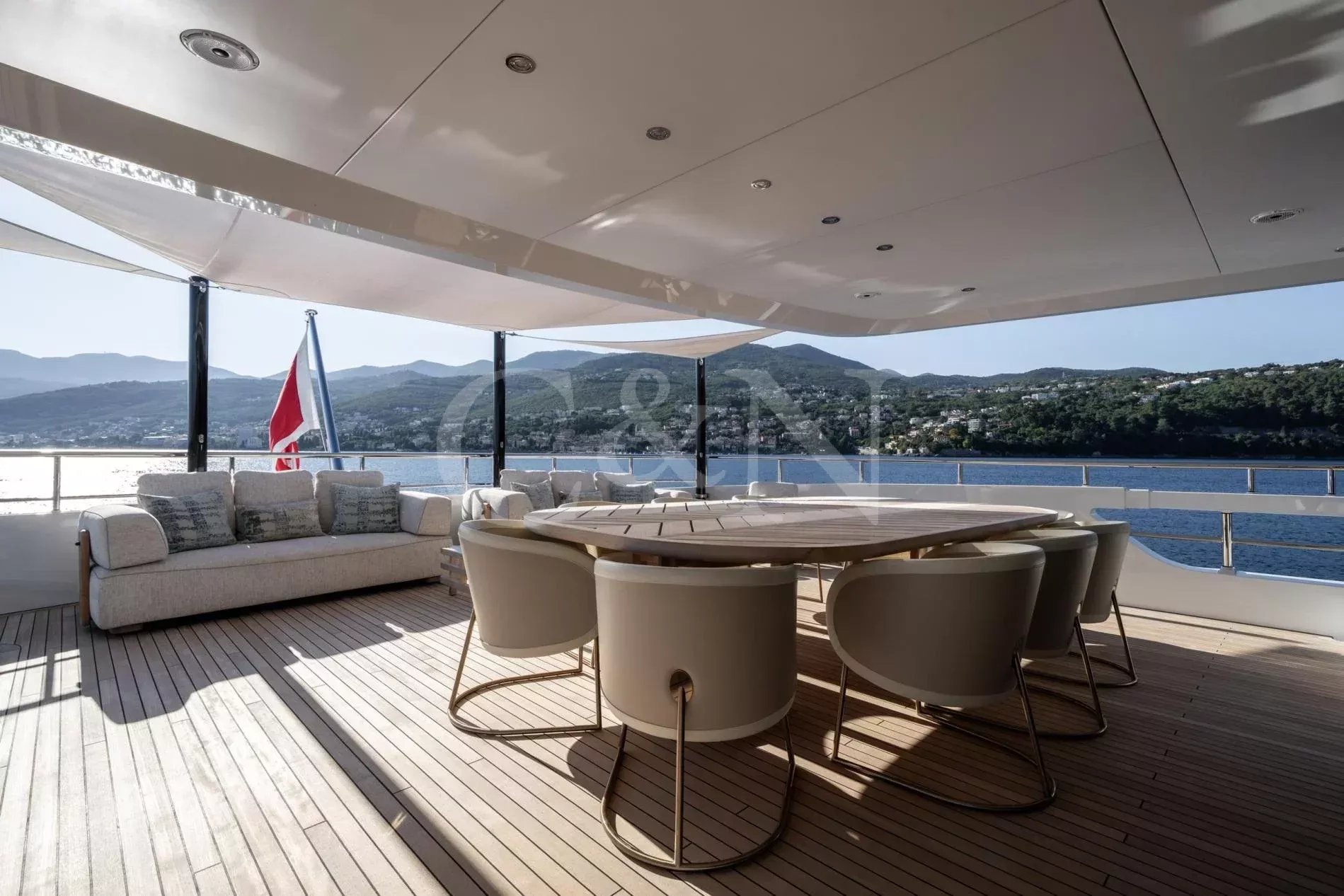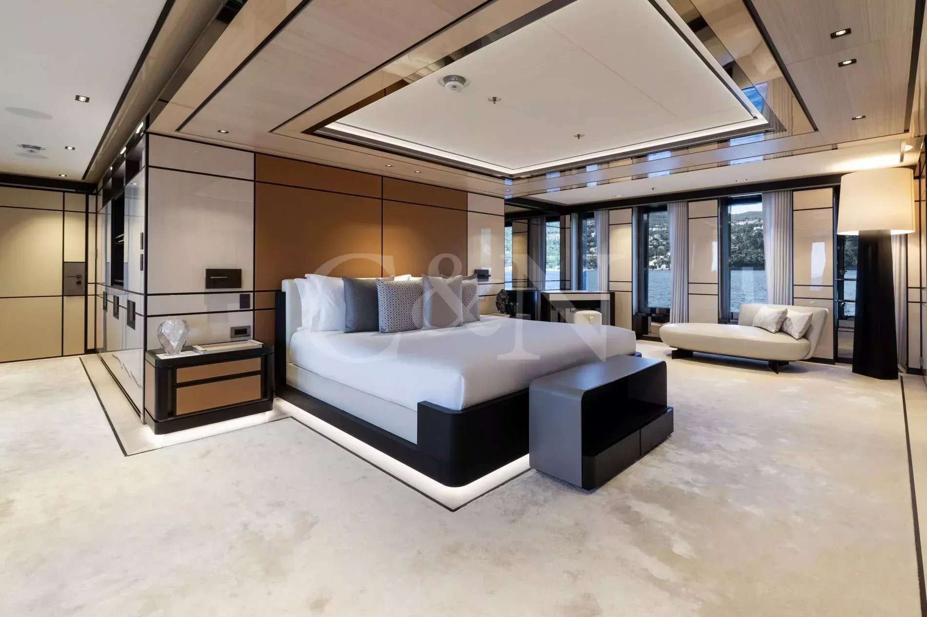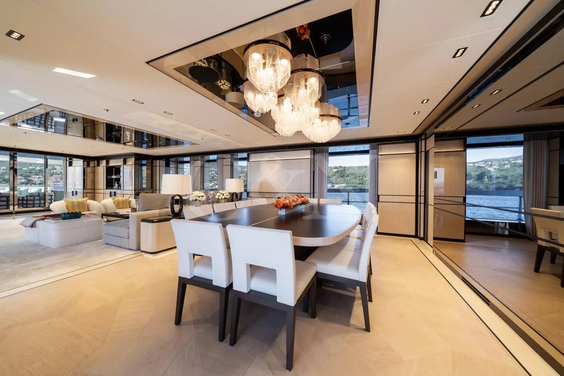 Reliance is the finest evolution of Heesen’s acclaimed 55 Steel Series and the sixth hull delivered by the shipyard. Her fast-displacement steel hull by Van Oossanen delivers class-leading performance and range, while a shark-grey profile by Omega Architects and Luca Dini interior offer a sophisticated blend of Italian design and Dutch engineering. Built on Heesen’s 55 Steel platform, she delivers the space and feel of a 60-metre yacht within a 55-metre design, refined through successive builds and shaped by owner experience.Designed by Frank Laupman of Omega Architects, Reliance’s shark-grey hull and vertical windows capture the bold and balanced profile that defines the 55 Steel line. A distinctive “shark tooth” in the superstructure overhang is a subtle but unmistakable Heesen signature. Outdoor life unfolds across four decks and includes a number of owner-led enhancements. A 110m² sundeck is among the largest in her class, complete with a jacuzzi, teppanyaki bar, and generous sunpads. The upper deck aft is arranged for dining and evening cocktails, while the main deck aft offers a relaxed al fresco lounge. At the stern, the beach club has been re-imagined with a wellness focus. It features Technogym equipment, a sauna, and hammam, all naturally lit through glass panels set into the transom door.Reliance marks Heesen’s first collaboration with Luca Dini Design & Architecture, a partnership that brought a sense of calm and understated elegance to the 55m Steel platform and earned the yacht a nomination at the 2024 World Superyacht Awards. The palette is light and natural: Tay wood, marine leather, and stone, offset by smoky mirrored surfaces, dark oak and bronze detailing. The main salon is arranged around a formal dining area for twelve, its bronze-mirrored ceiling panels amplifying light and space. Above, a full-beam sky lounge is a more intimate setting with bar, sofas, and floor-to-ceiling glass opening onto the aft terrace.Reliance accommodates 12 guests in six cabins, including an 82-square-metre owner’s apartment that sets the standard for the series. Spanning the full beam forward on the main deck, it features large opening windows, a private study, and an en suite finished in exquisite hand-selected marble, with a freestanding bathtub, twin rainfall showers, his-and-hers sinks, and separate dressing rooms. Four guest cabins are located on the lower deck, configured as two doubles and two twins, while a VIP cabin is found on the upper deck.Constructed with a steel hull and aluminium superstructure, Reliance employs Heesen’s Fast Displacement Hull Form (FDHF) by Van Oossanen, delivering efficiency and long-range capability across a variety of cruising conditions. Powered by IMO Tier III-compliant engines, she achieves a 4,500-nautical-mile range at cruising speed, with a 3.17-metre draft. Reliance is run by a crew of 13 with operational areas designed for extended cruising and charter efficiency.