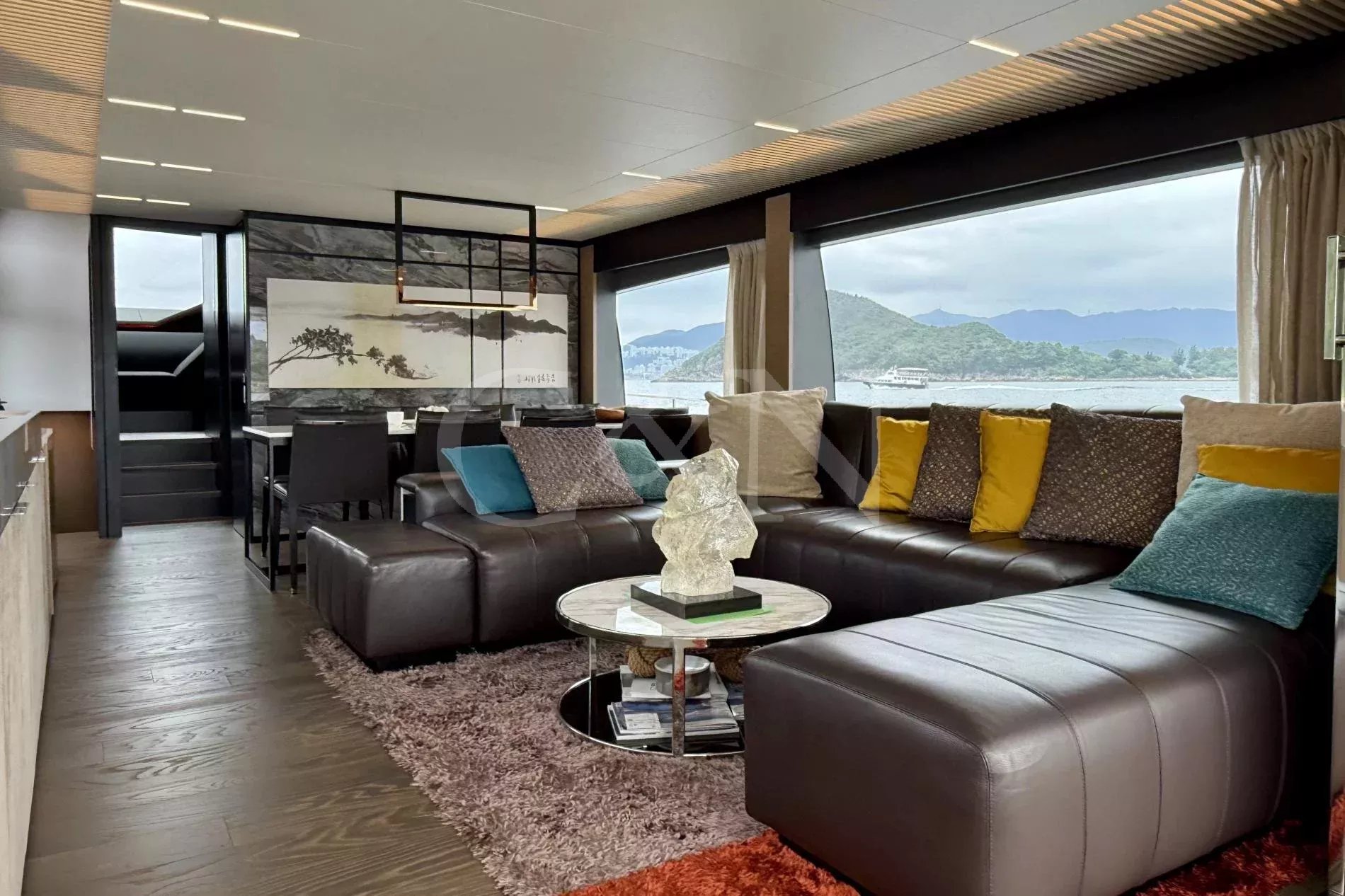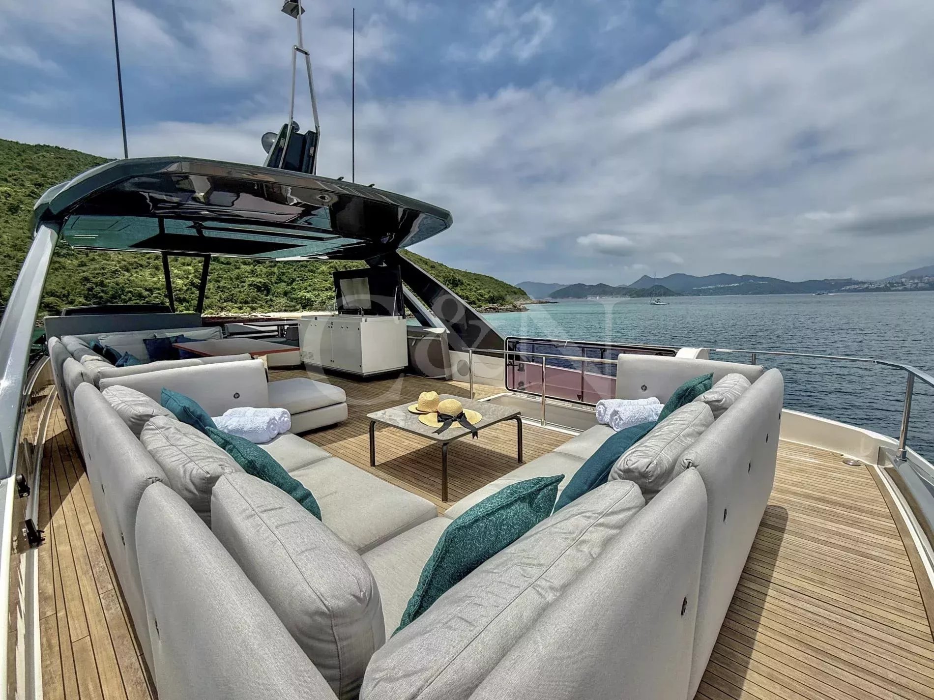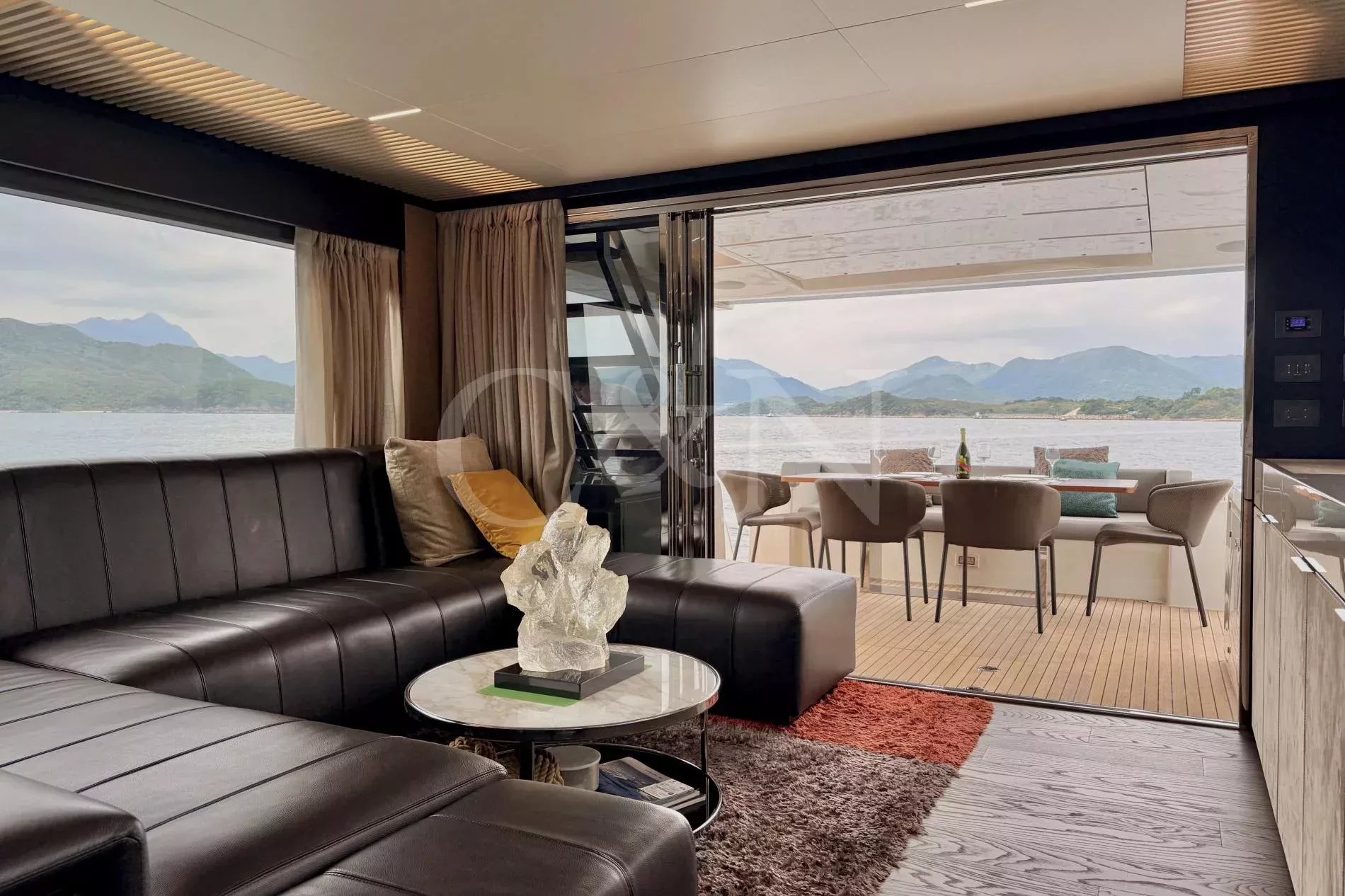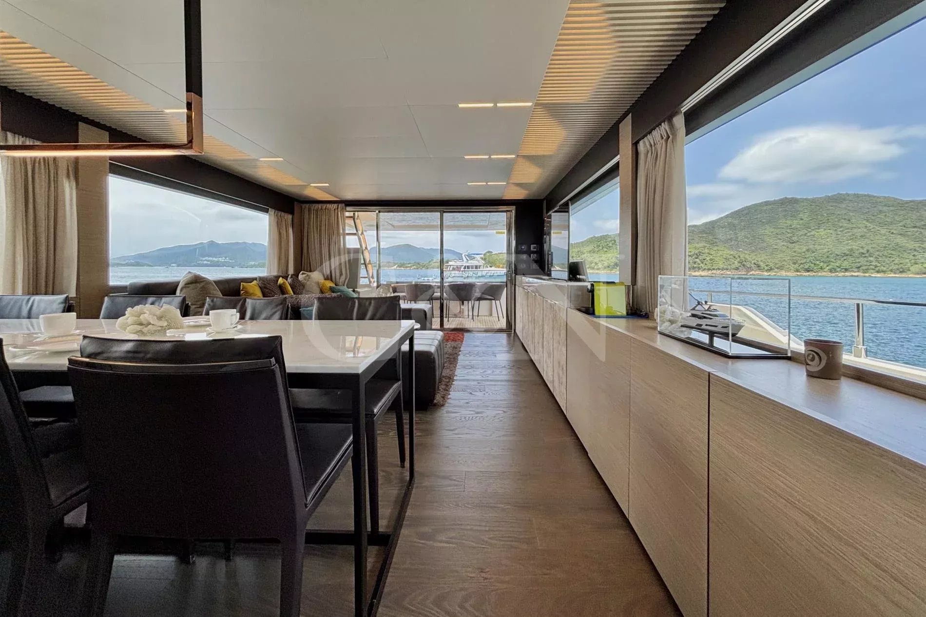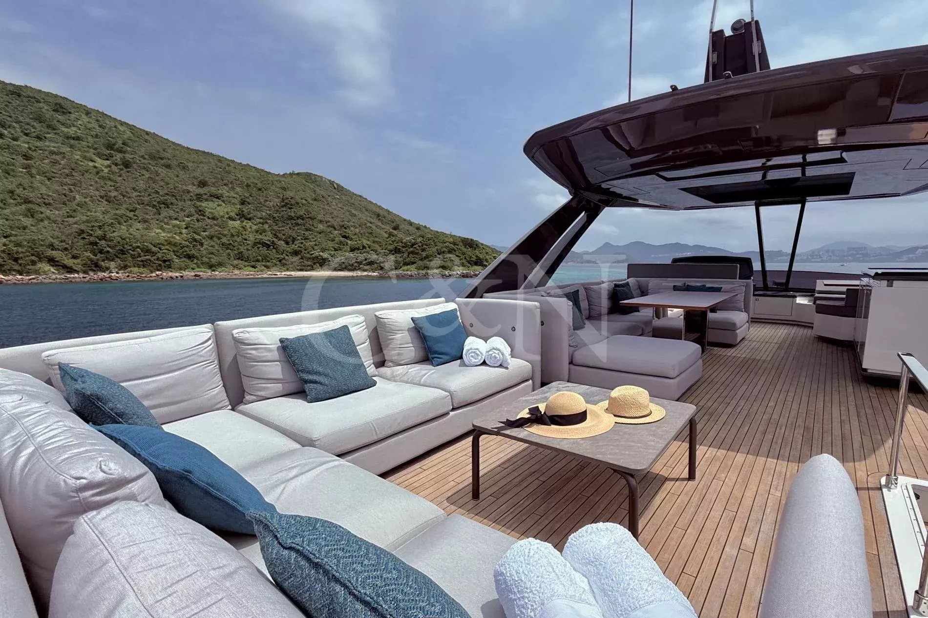 The Ferretti 780 represents one of the most successful models in the shipyard’s history. Launched to wide acclaim, it set a new standard for yachts in the sub-80-foot range with its intelligent layout and exceptional use of space. The series went on to win recognition at the World Yachts Trophies and Motor Boat Awards, for its combination of performance, comfort, and practicality.Delivered in 2018 with just one owner since new and exceptionally low engine hours, this model is offered in excellent condition and represents a substantial saving over the cost of a new yacht, with virtually no compromise.Outside is where the Ferretti 780 really shines. She has a large swim platform with a transom door that folds out to form a sunlounger overlooking action on the water. Hidden storage on either side keeps Seabobs and other toys neatly out of sight, while the aft deck provides a shaded dining area, ideal for breakfast or lunch at anchor. Above, the flybridge is the largest single space on board, spanning 37 square metres and ranking among the most spacious in its class. The layout includes generous seating with sofas and a dining table, along with a double BBQ, sink, and fridge, all beneath a carbon-reinforced hardtop with a glass inset. The aft section remains open to the sun with modular furniture can be rearranged to suit individual owner preferences.Forward, the bow area adds another outdoor zone, with a fold-out table, sunpad, and bench seating.The main salon features curved windows that enhance the sense of space and allow plenty of natural light, complemented by a three-section sliding glass door that opens directly to the aft deck.The space is open plan with large sofa and a dedicated dining area forward. The galley is well equipped with upgraded appliances and arranged for both private family use and efficient crew operation. Forward, a spacious wheelhouse provides excellent visibility and a comfortable driving position for longer passages.Accommodation is for eight guests in four cabins on the lower deck. The full-beam master suite amidships is exceptional for a yacht under 80 feet, offering ample floor space, a large en suite, and a generous wardrobe.Guests are accommodated in a forward VIP cabin and two twin guest cabins, with crew quarters aft. This layout suits family cruising perfectly, offering a balance between manageable size and comfort. Built using advanced resin-infusion techniques for strength and weight efficiency, the Ferretti 780 delivers quiet, stable performance across a cruising range of 16 to 25 knots thanks to twin MAN V12 engines. Fly-by-wire electro-hydraulic steering and a Simrad-Naviop integrated navigation suite provide precise control, while excellent sound insulation keeps the interior quiet underway.