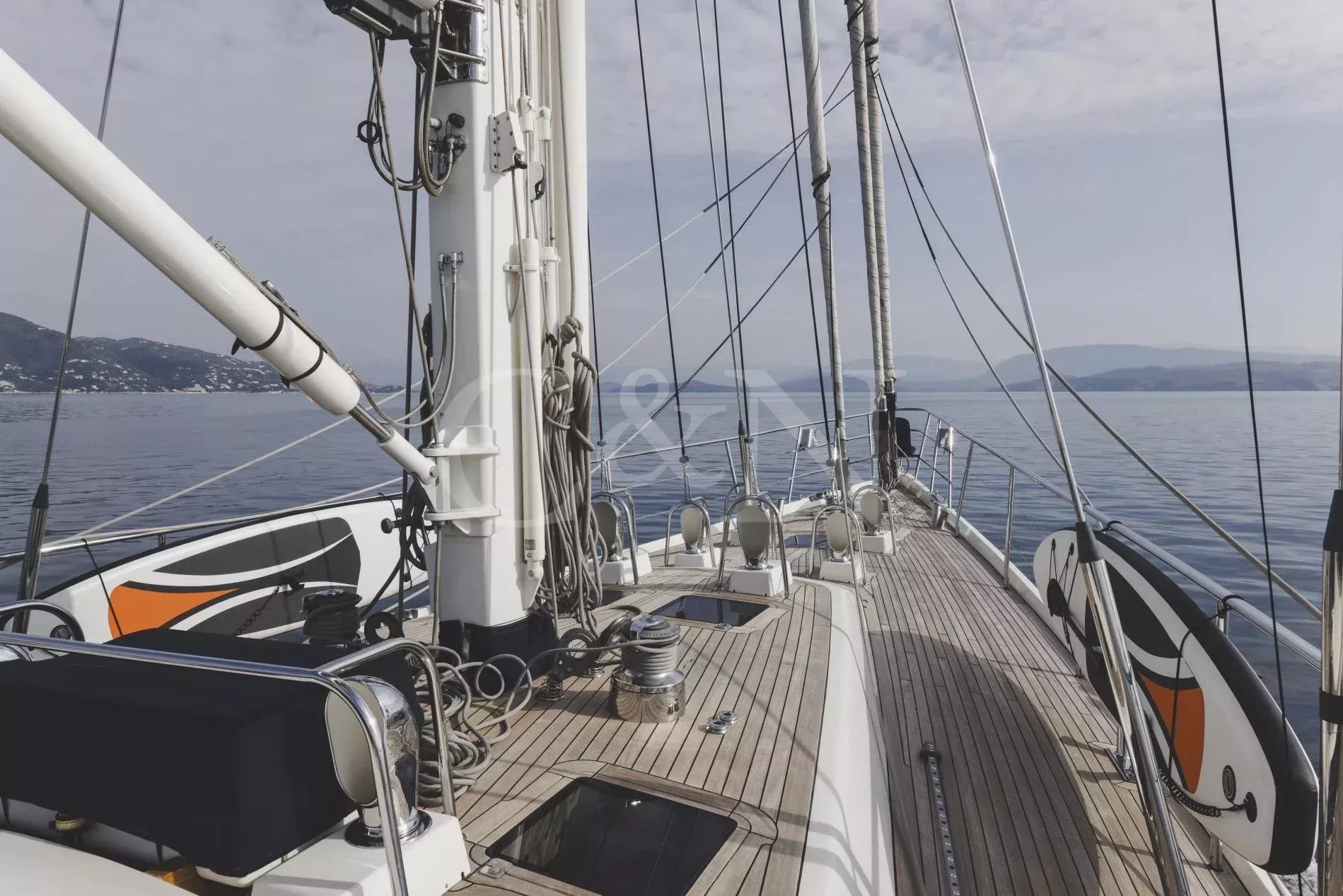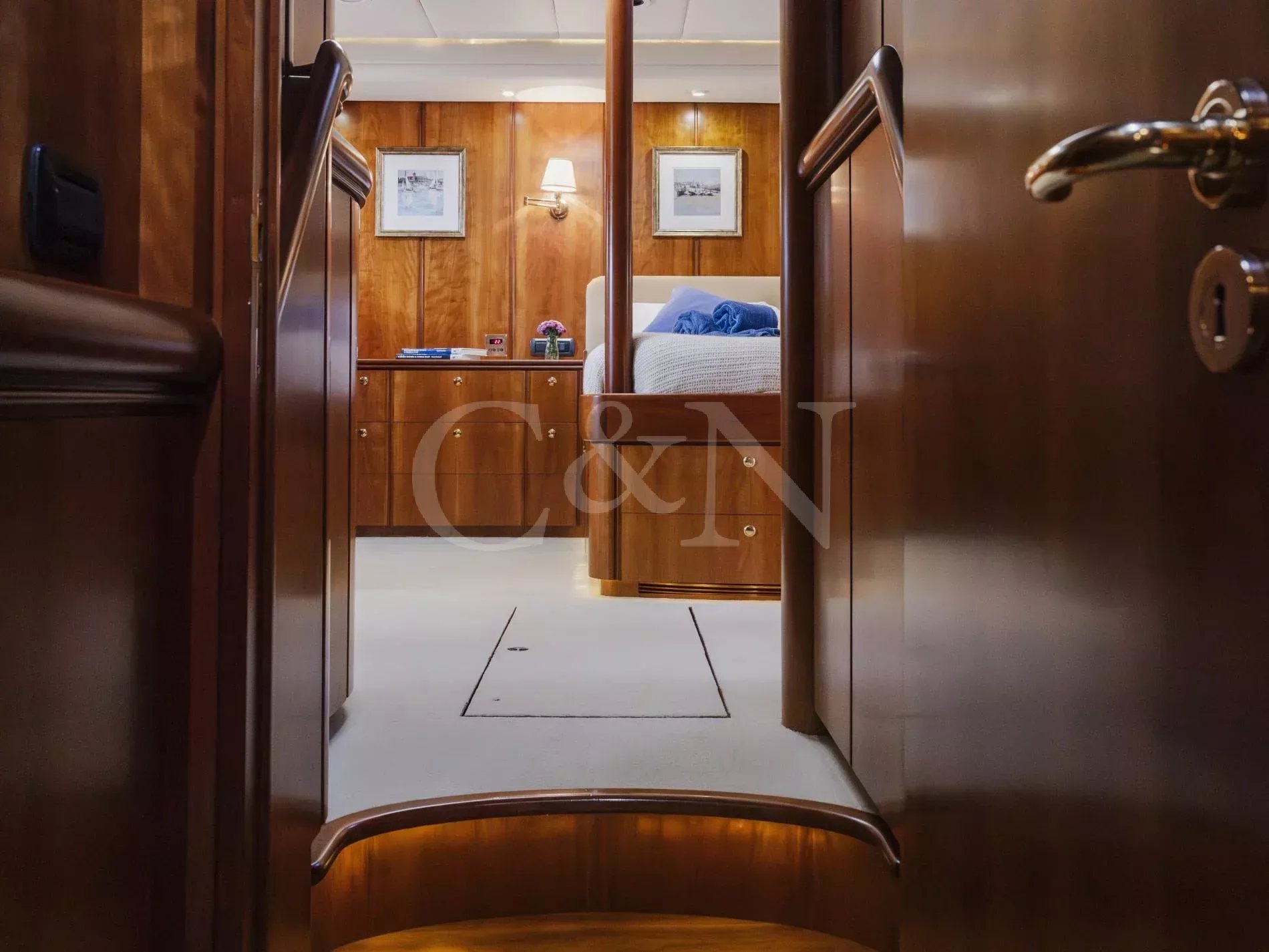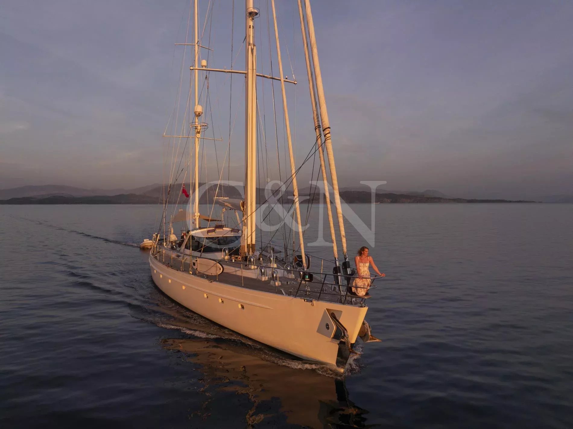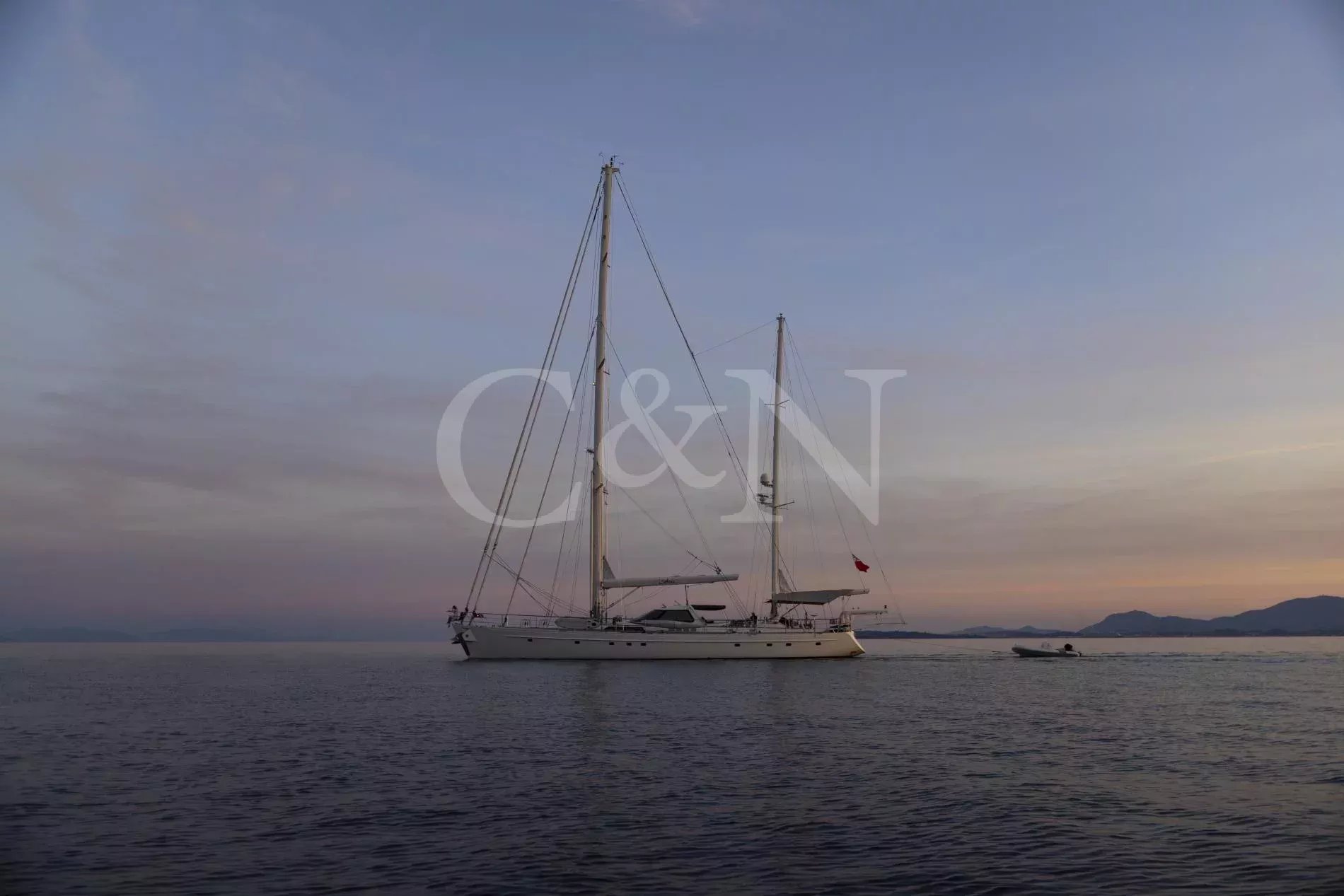 Built by Van Dam Nordia and designed by Robert Van Dam, Sultana is a custom bluewater ketch delivered to an experienced owner in 2003. Her construction followed an exacting brief for a vessel capable of coastal cruising and offshore passages, combining a strong aluminium build, a safe ketch rig and systems specified for reliability at sea.Sultana features Hall Spars masts, Reckman headsail furlers and Lewmar winches, while her ketch sail plan divides power across two smaller mains, keeping loads manageable and making reefing and trimming more controlled in heavy weather. A protected cockpit offers a sheltered position when underway and serves as the primary social space on deck at anchor.Her interior is traditional in style with an open galley, comfortable seating and a large screen forming the main living area. The joinery shows Dutch workmanship in both guest and crew spaces, and ventilation, stowage and equipment are arranged with usability in mind.Sultana accommodates eight guests in three en suite cabins: the owner’s cabin aft offers generous space, while the two guest cabins each sleep three. Crew spaces forward and aft support three crew.Sultana is powered by a single 425 hp Lugger engine with an engine room often compared to those on much larger yachts. Major works include new teak decks and a full repaint (2014), rebuilt machinery (2014), updated navigation instruments (2021), full line replacement (2022), serviced cockpit winches (2023) and serviced hydraulic furlers (2024).