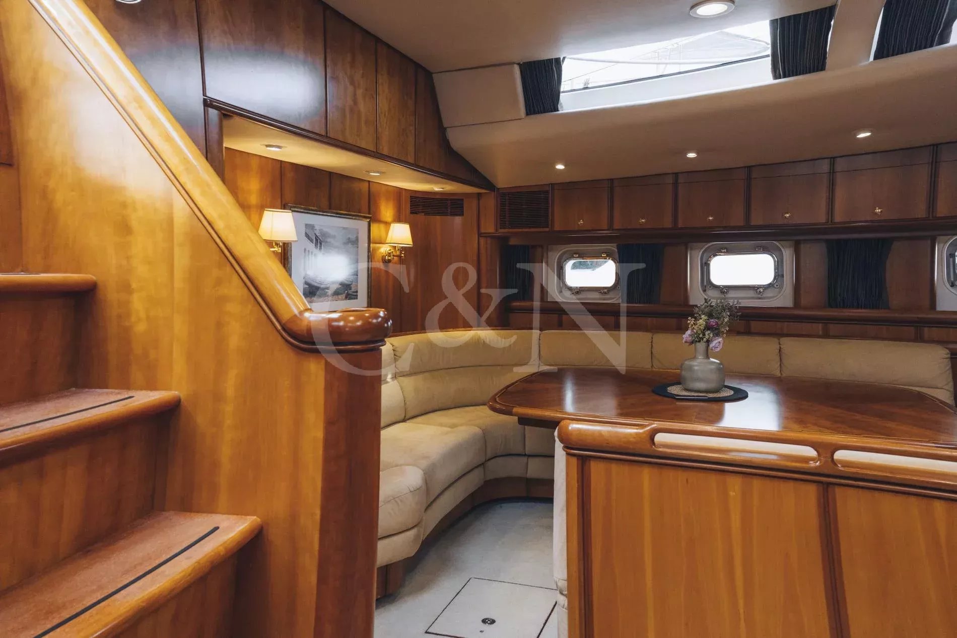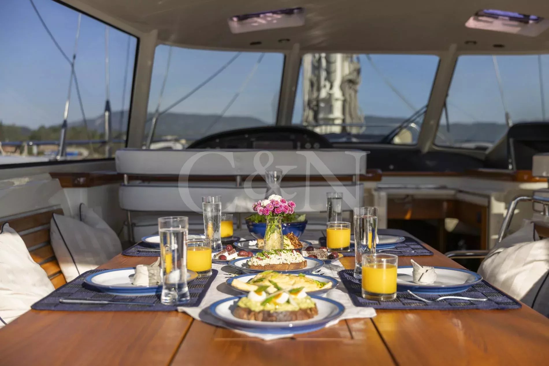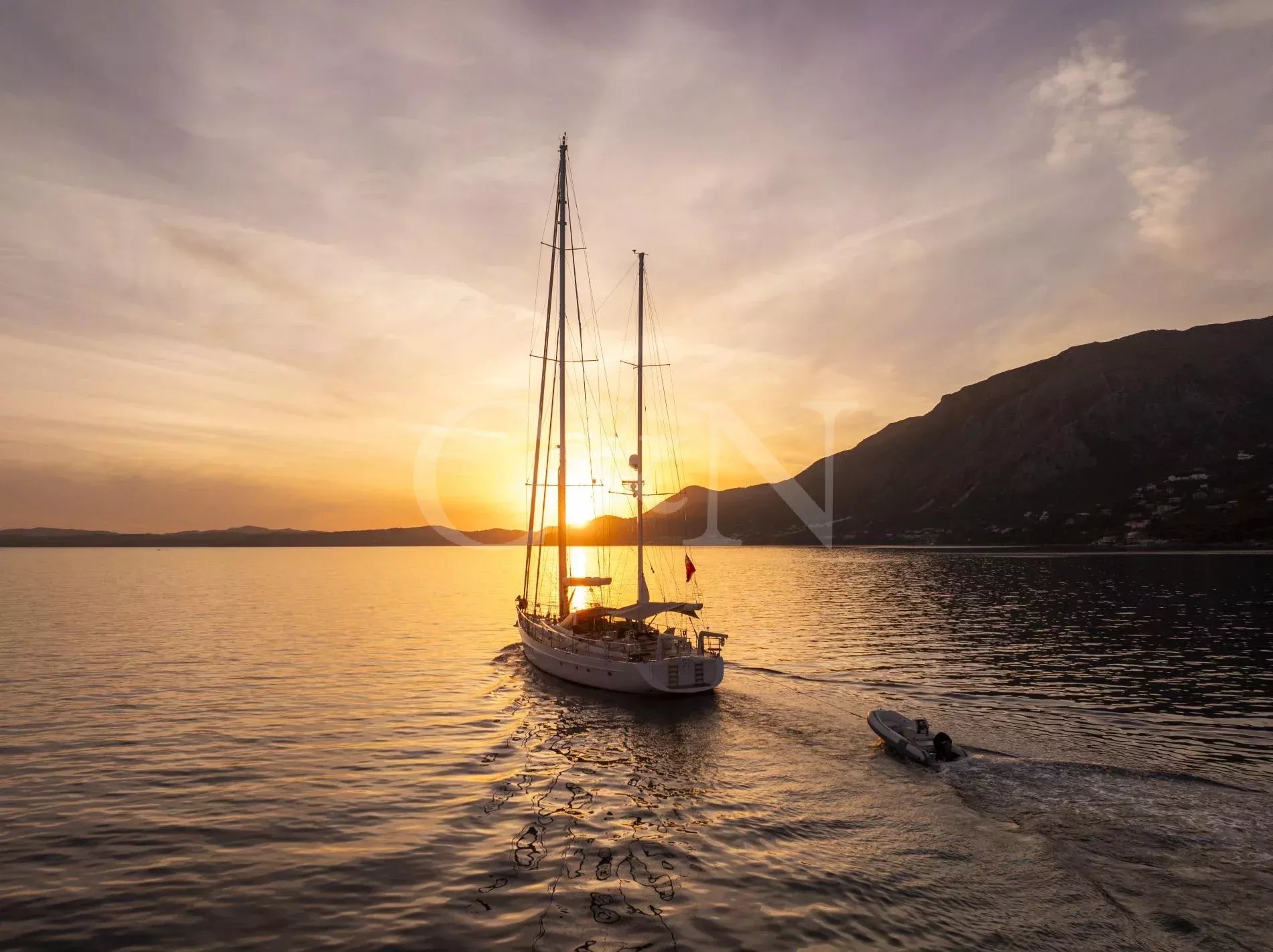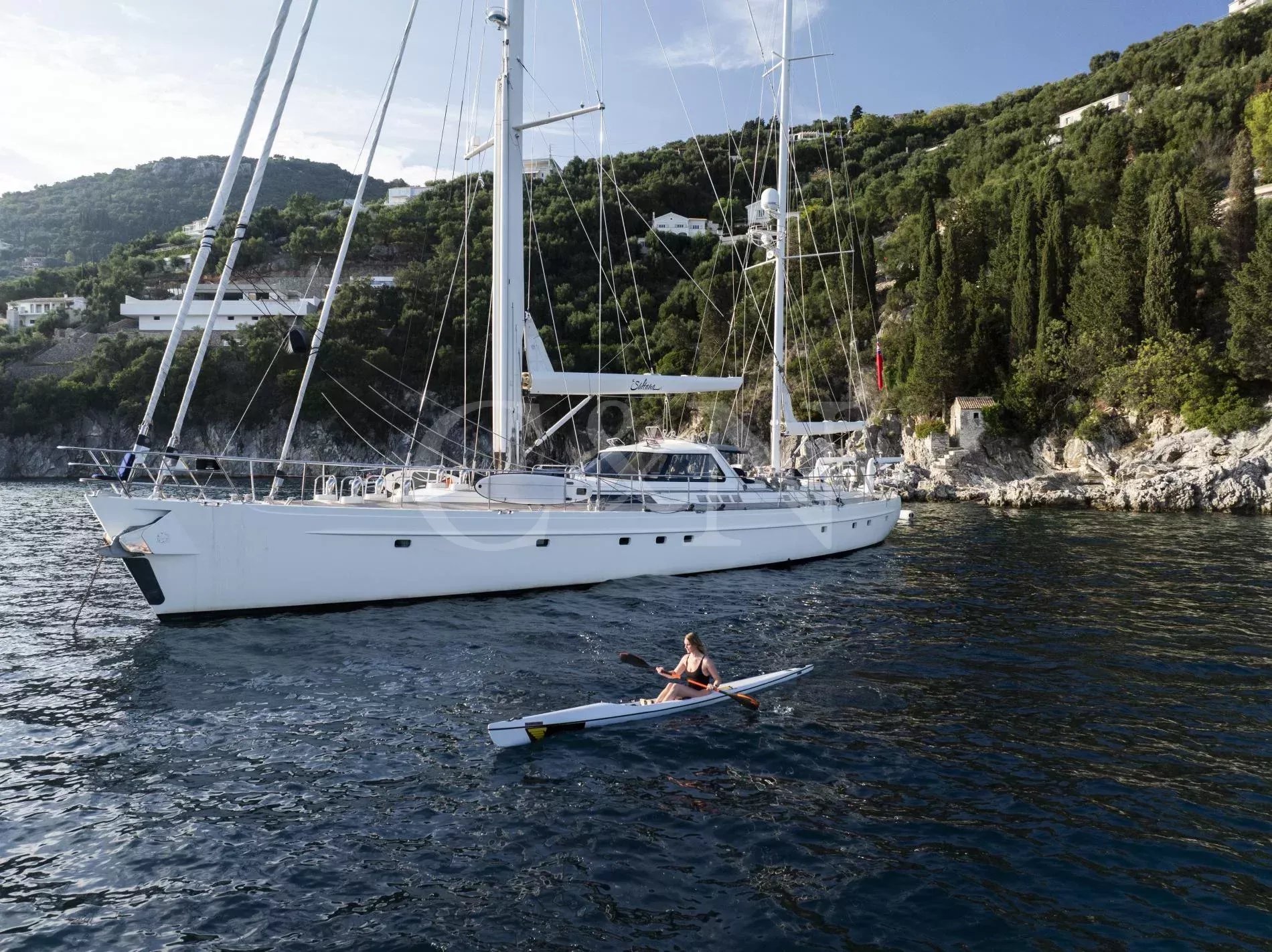Built by Van Dam Nordia and designed by Robert Van Dam, Sultana is a custom bluewater ketch delivered to an experienced owner in 2003. Her construction followed an exacting brief for a vessel capable of coastal cruising and offshore passages, combining a strong aluminium build, a safe ketch rig and systems specified for reliability at sea.Sultana features Hall Spars masts, Reckman headsail furlers and Lewmar winches, while her ketch sail plan divides power across two smaller mains, keeping loads manageable and making reefing and trimming more controlled in heavy weather. A protected cockpit offers a sheltered position when underway and serves as the primary social space on deck at anchor.Her interior is traditional in style with an open galley, comfortable seating and a large screen forming the main living area. The joinery shows Dutch workmanship in both guest and crew spaces, and ventilation, stowage and equipment are arranged with usability in mind.Sultana accommodates eight guests in three en suite cabins: the owner’s cabin aft offers generous space, while the two guest cabins each sleep three. Crew spaces forward and aft support three crew.Sultana is powered by a single 425 hp Lugger engine with an engine room often compared to those on much larger yachts. Major works include new teak decks and a full repaint (2014), rebuilt machinery (2014), updated navigation instruments (2021), full line replacement (2022), serviced cockpit winches (2023) and serviced hydraulic furlers (2024).