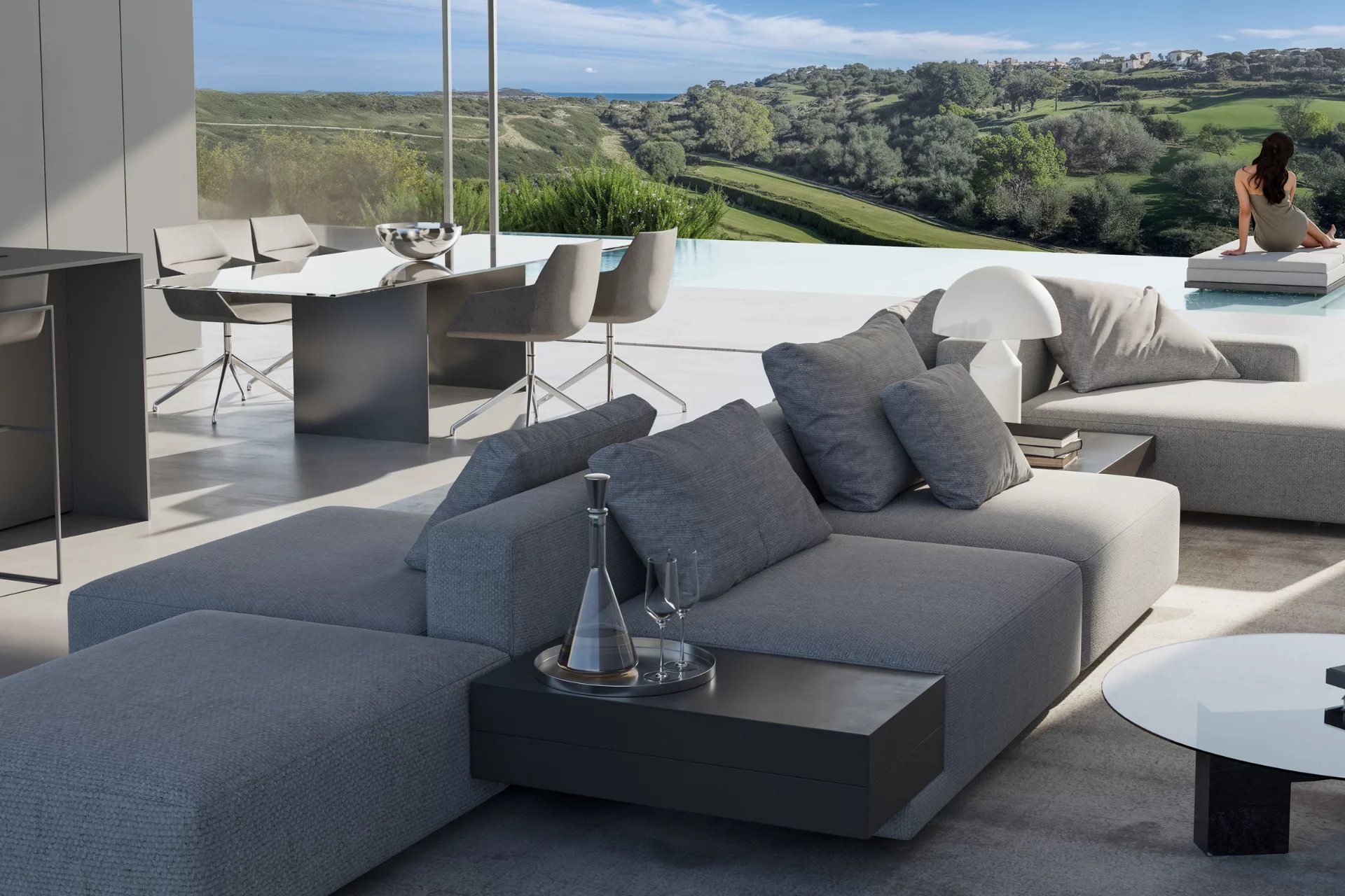 ONE SEVEN Villas offer you the exclusive opportunity to customize both the outdoor solarium space and the interior ambiance of your new home. Choose from four elegant design options: Ivory, Sand, Platinum and Aluminum. Transform your living space with exquisite wall paneling, stunning flooring, sleek furnishings, state-of-the-art kitchens and bathrooms. Each palette is carefully selected to bring sophistication and comfort, allowing you to create a unique retreat that reflects your personal style. Discover the luxury of choosing ONE SEVEN, where your vision becomes reality.